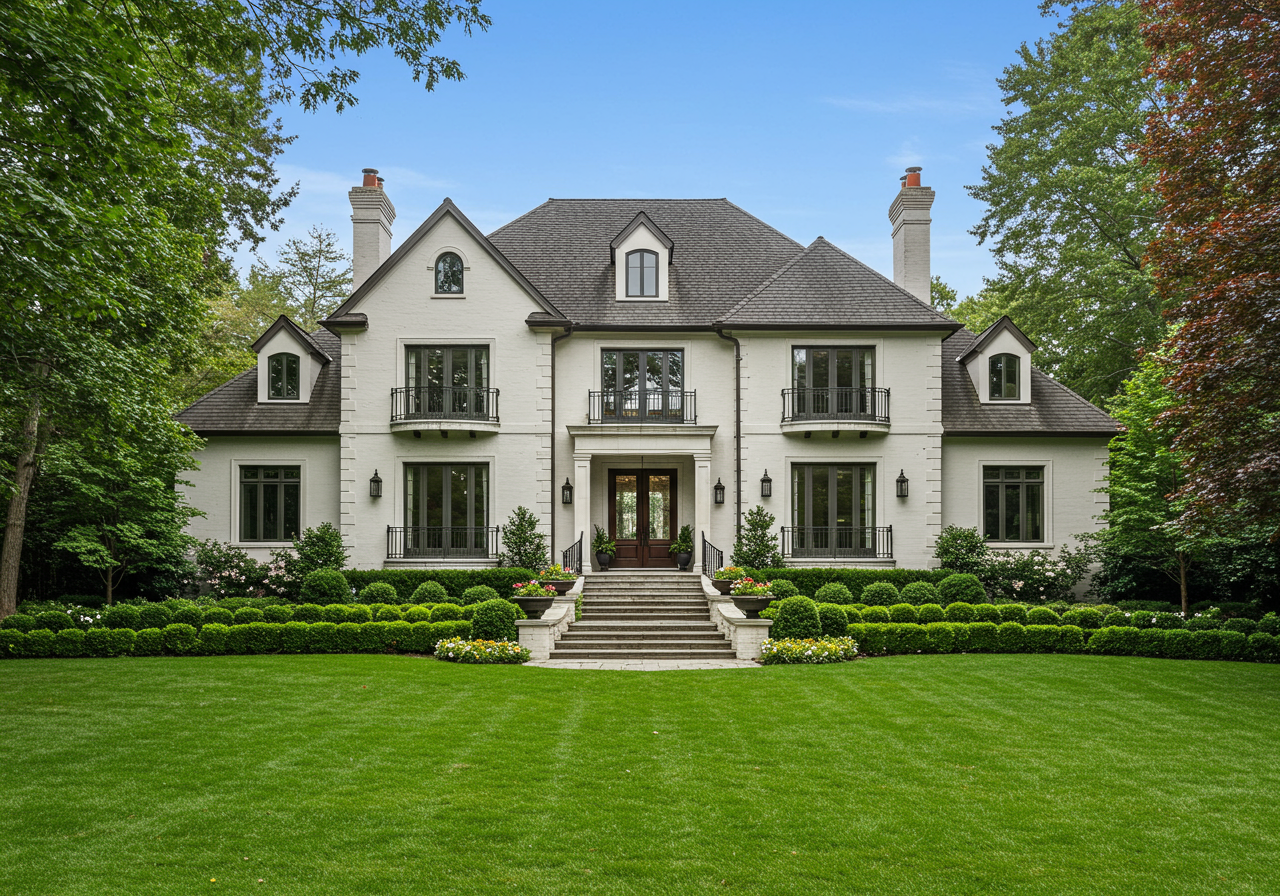 These fine touches are observable everywhere—from the wooden paneling and coffered ceilings in the formal living room at the far end of the main hall, to the exquisitely coordinated accents in metal, plaster, and limestone that lend such stateliness to the light-filled dining room.