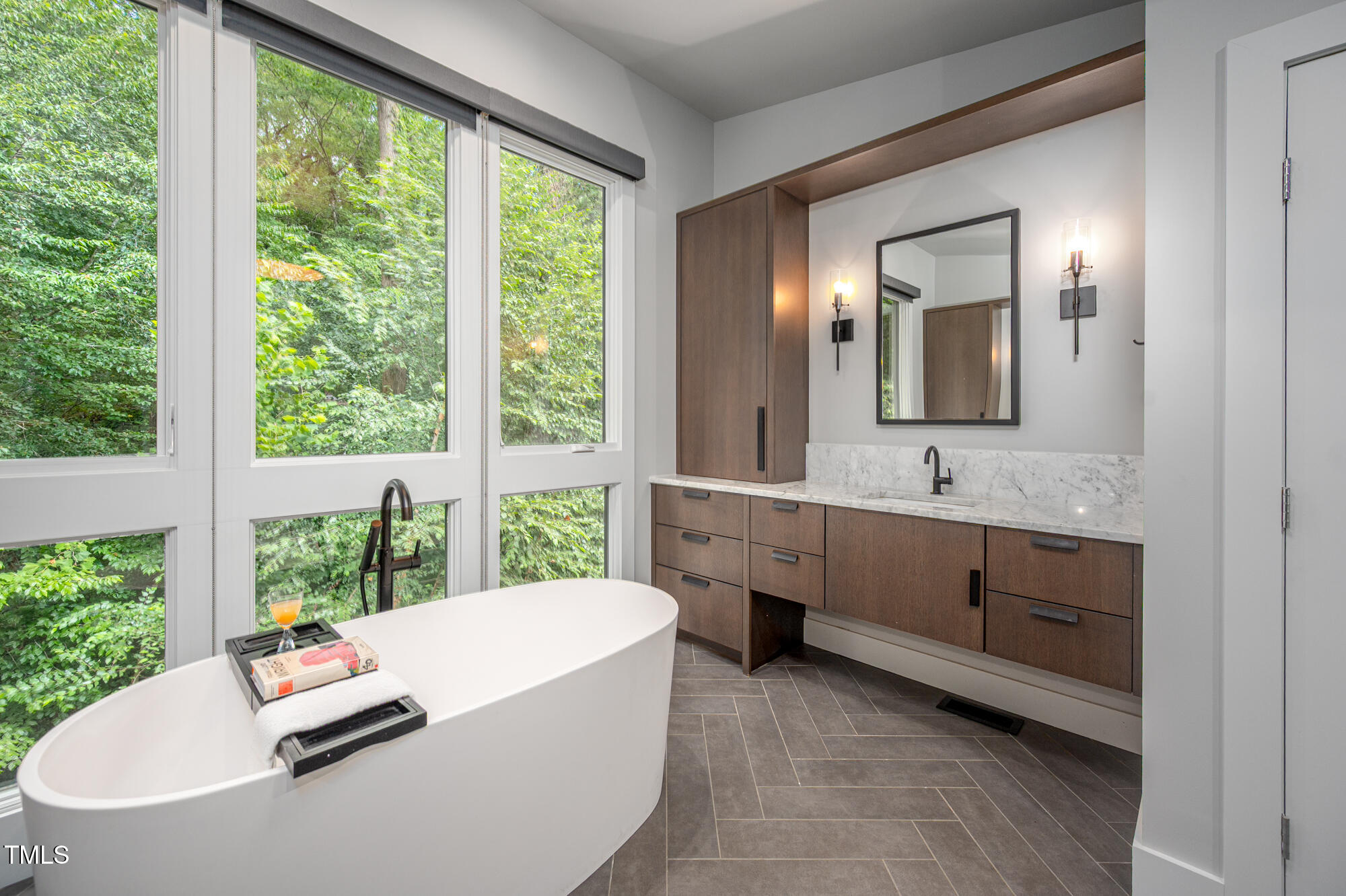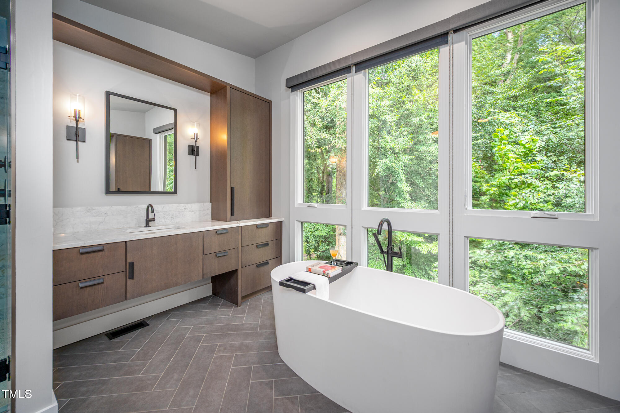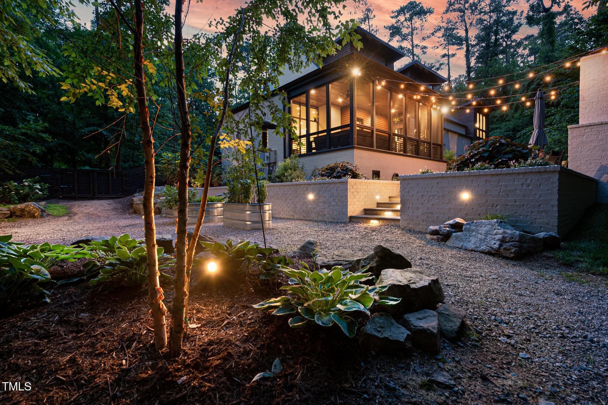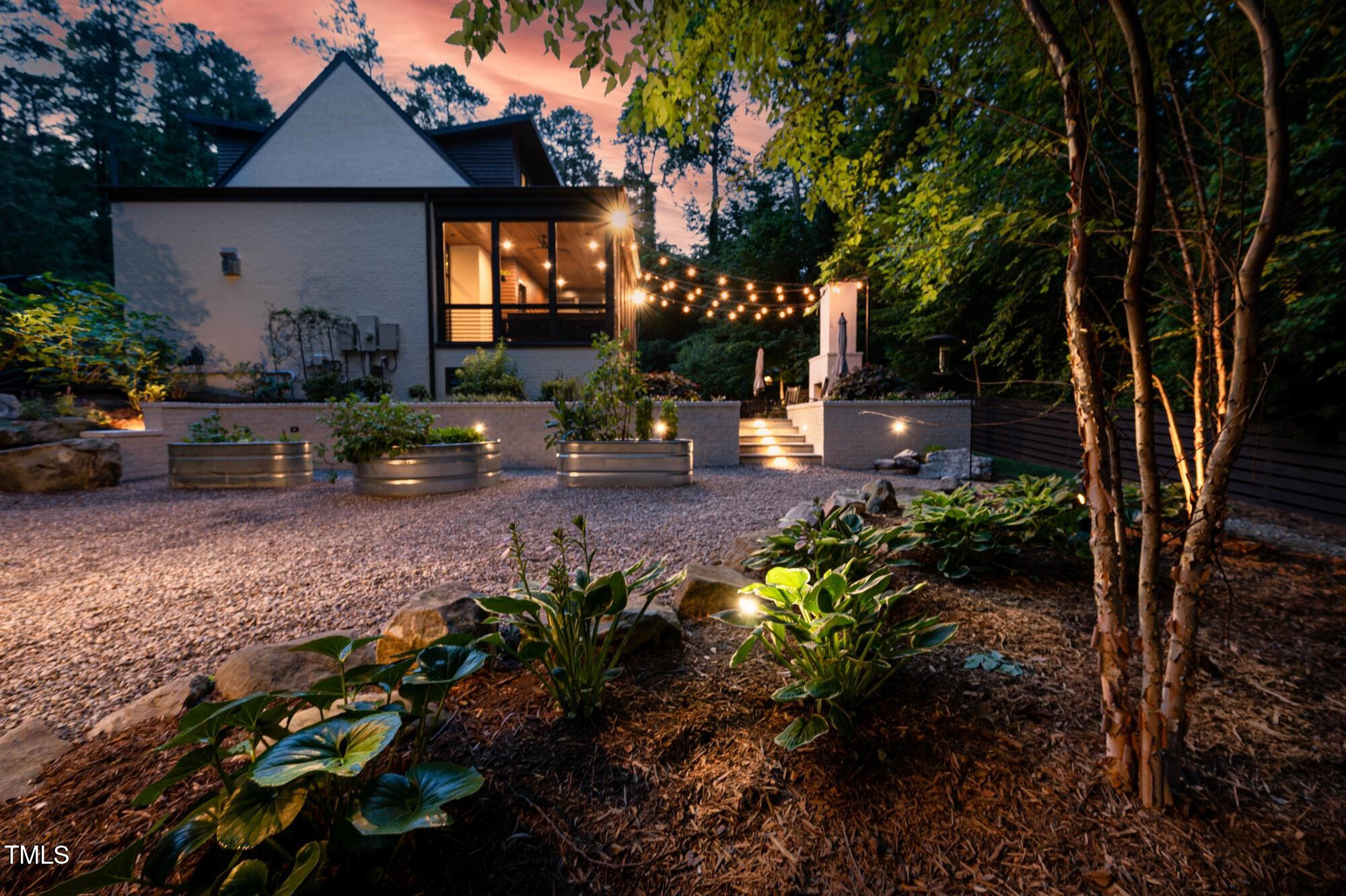 You WILL NOT find this kind of newer, modern luxury home anywhere else in Chapel Hill! 101 Botanical Way is a magazine-worthy masterpiece with so many upgrades in the last year alone. This stunning home was built by and was the the personal residence of award-winning Cali-based builder Curt Hendrickson, features a floating steel staircase, casement windows, European White Oak flooring, Dacor & Sub-Zero appliances, and bespoke lighting. Use the detached studio for music or other creative delights, relish the beauty of the raised garden beds, and enjoy a drink by the outdoor fireplace - just in time for fall!