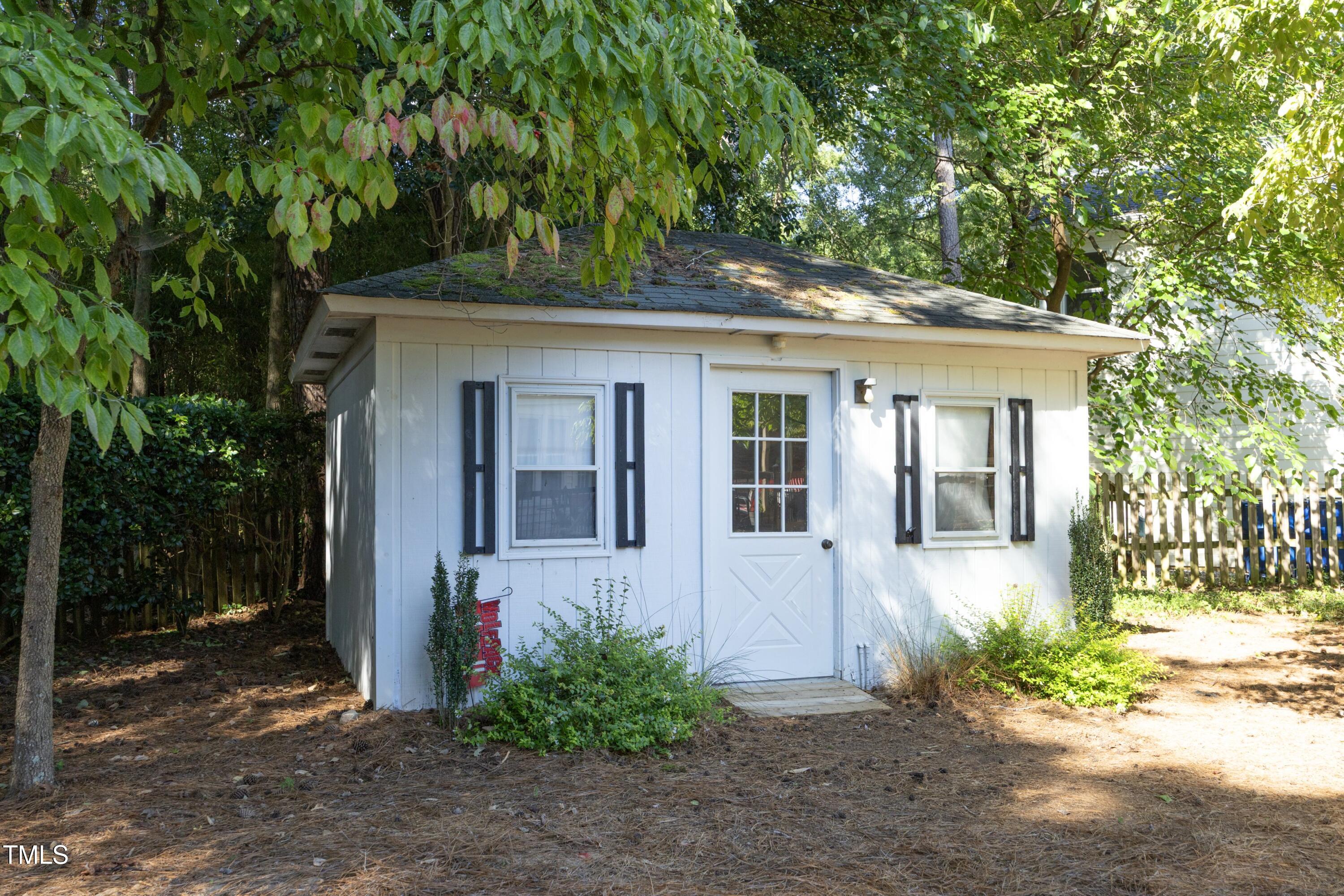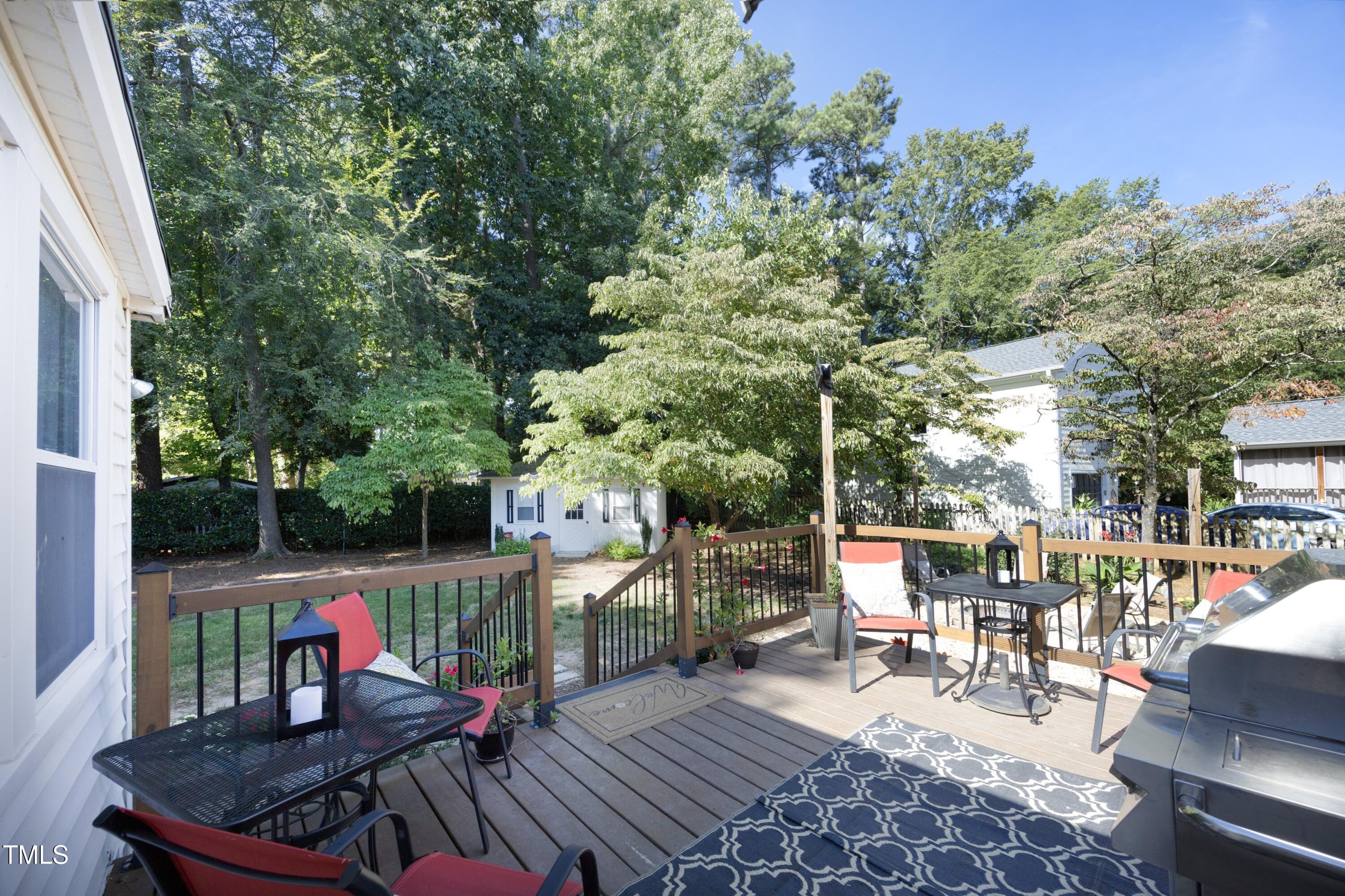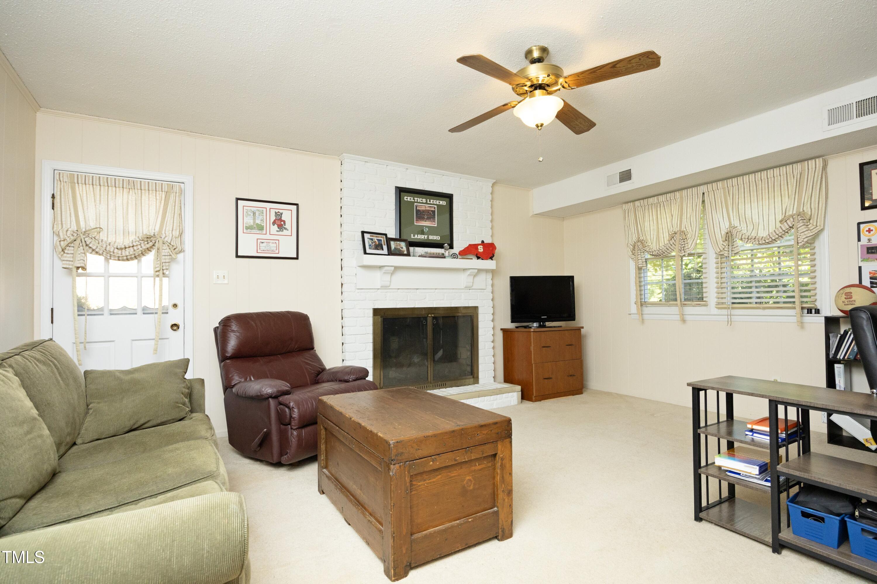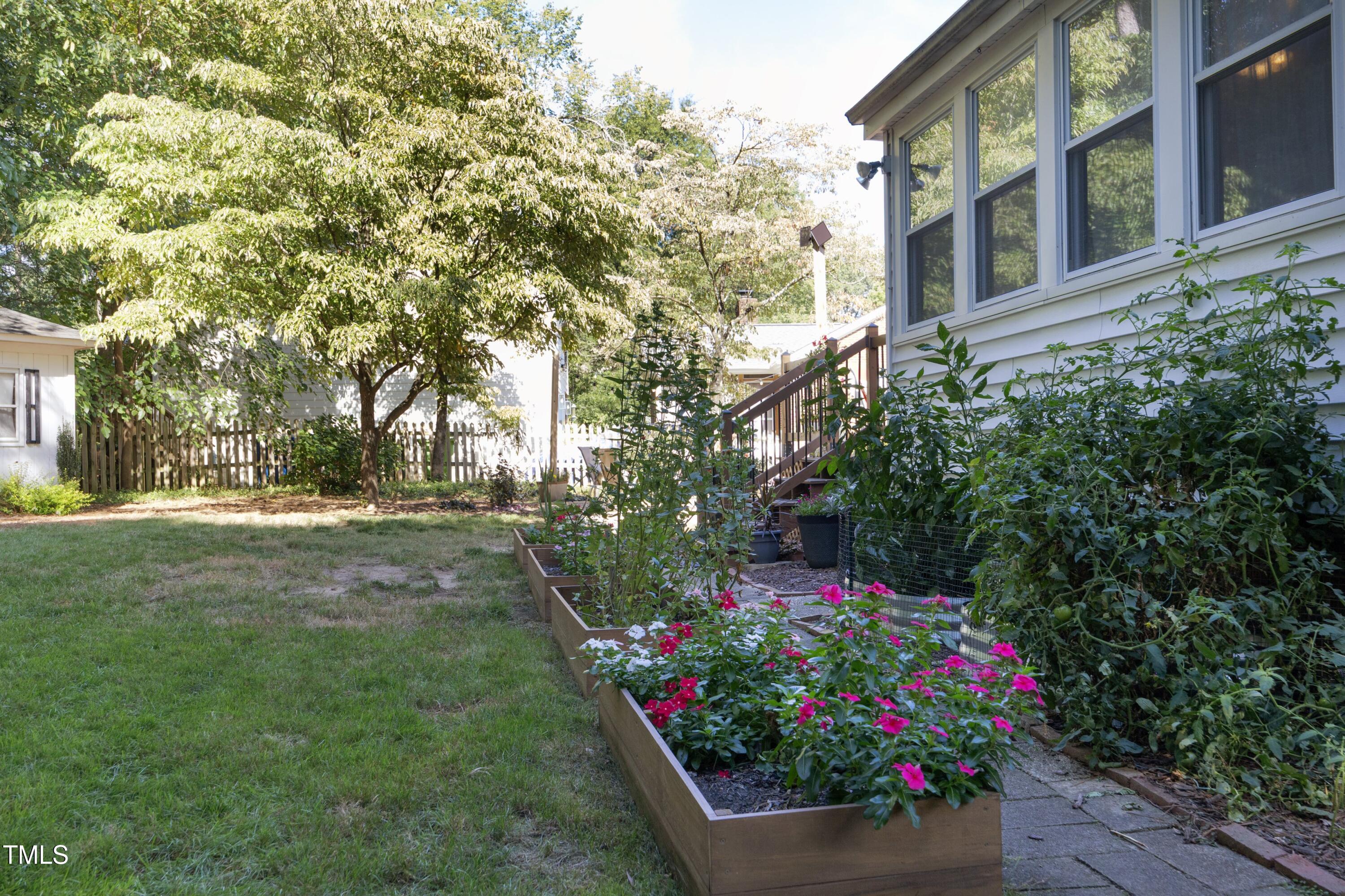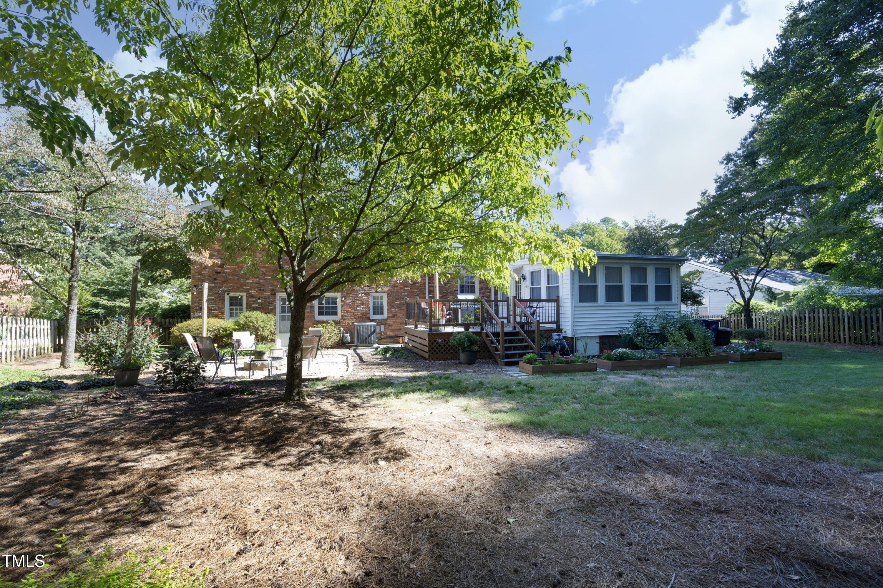Welcome to 1028 Cedarhurst Drive - a charming split-level home in Raleigh's highly desirable Quail Hollow community. From the moment you arrive, you'll notice the beautifully maintained homesite with its manicured lawn, fenced backyard, and mature greenery providing privacy. Step inside to a welcoming foyer that opens into a spacious living and dining room, accented by gleaming hardwood floors. The dining room flows seamlessly into the kitchen, with beautiful white cabinets, decorative tile backsplash, and solid surface countertops create an inviting space. Just off the kitchen, a sunroom addition with walls of windows fills the home with natural light and offers views of the private backyard. A side door leads to the grilling deck and a built-in wood-burning fire pit--perfect for outdoor gatherings. The backyard also includes two storage sheds, one ideal for a workshop and the other for lawn equipment. Hardwood floors continue upstairs, where you'll find the primary suite with its own full bath and walk-in shower, plus two additional bedrooms and a hall bath. The lower level features a cozy den with a gas fireplace, another full bath, a secondary bedroom, and a spacious laundry room with extra storage and outdoor access. Additional highlights include a carport with storage, extended driveway, and plenty of parking. Conveniently located near popular shopping and dining at North Hills and Quail Corners, and with optional memberships available at Quail Hollow Swim and Tennis Club, this home offers the perfect blend of comfort, charm, and community. Don't miss this wonderful opportunity to live in one of Raleigh's most sought-after neighborhoods!