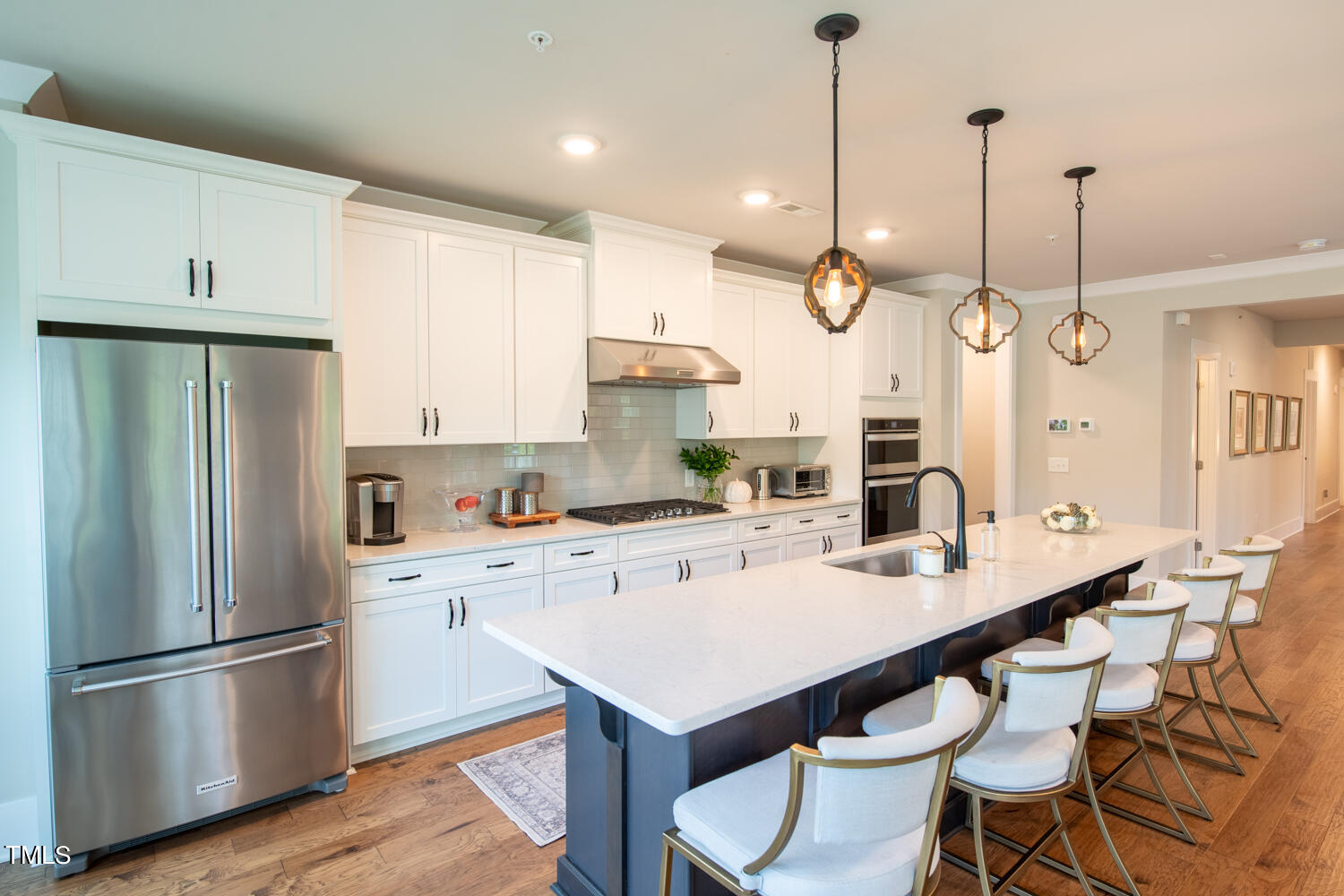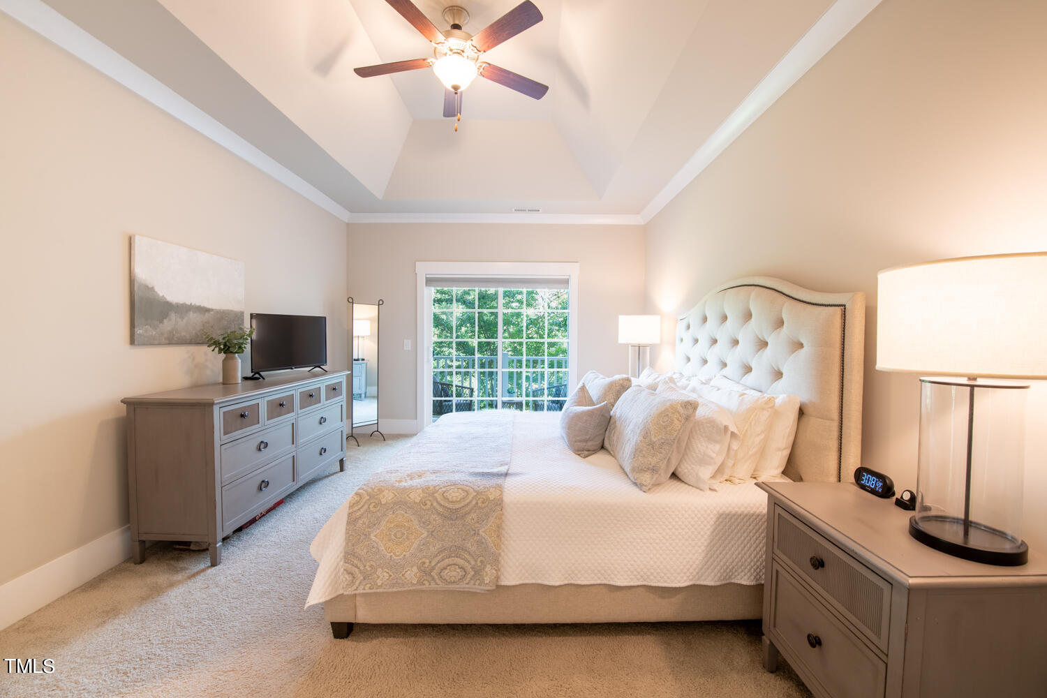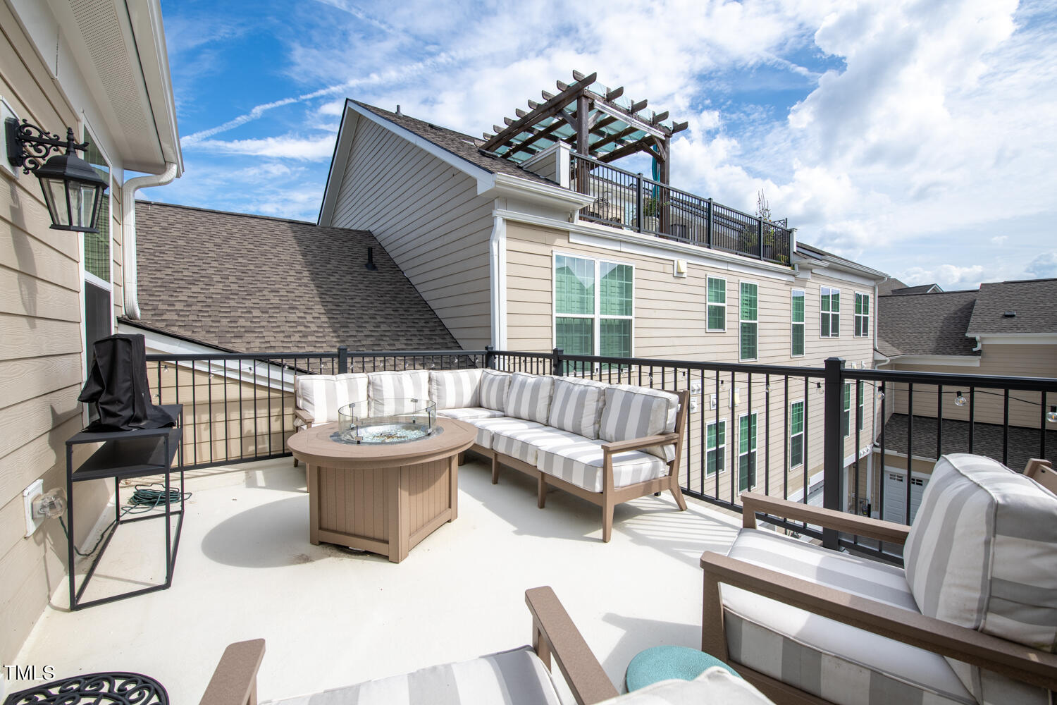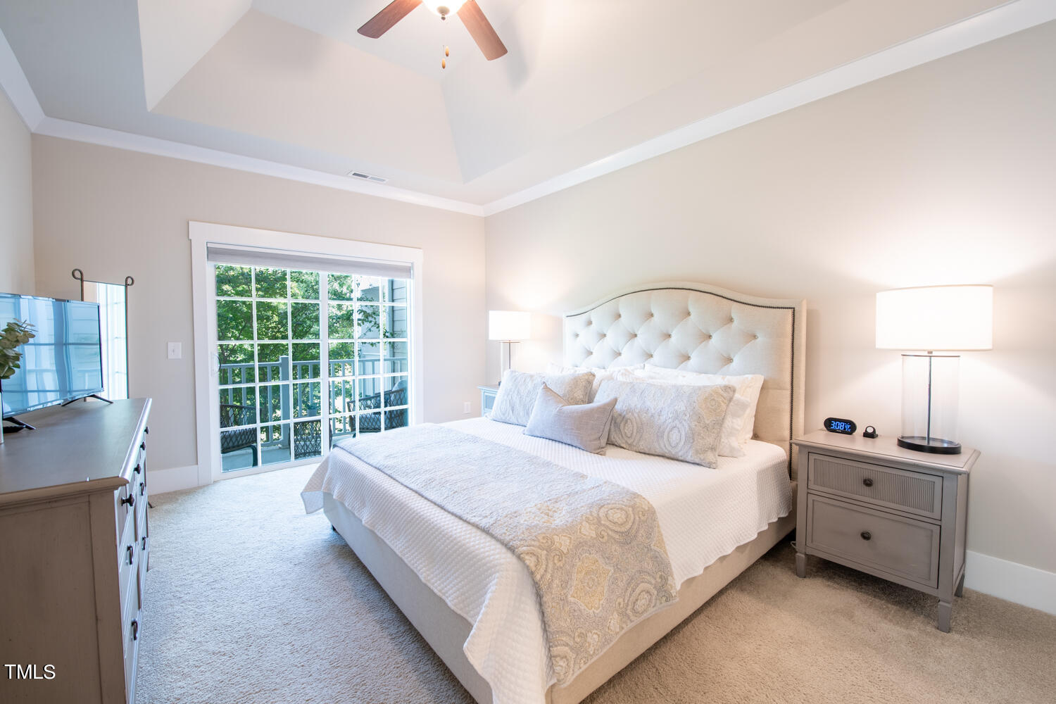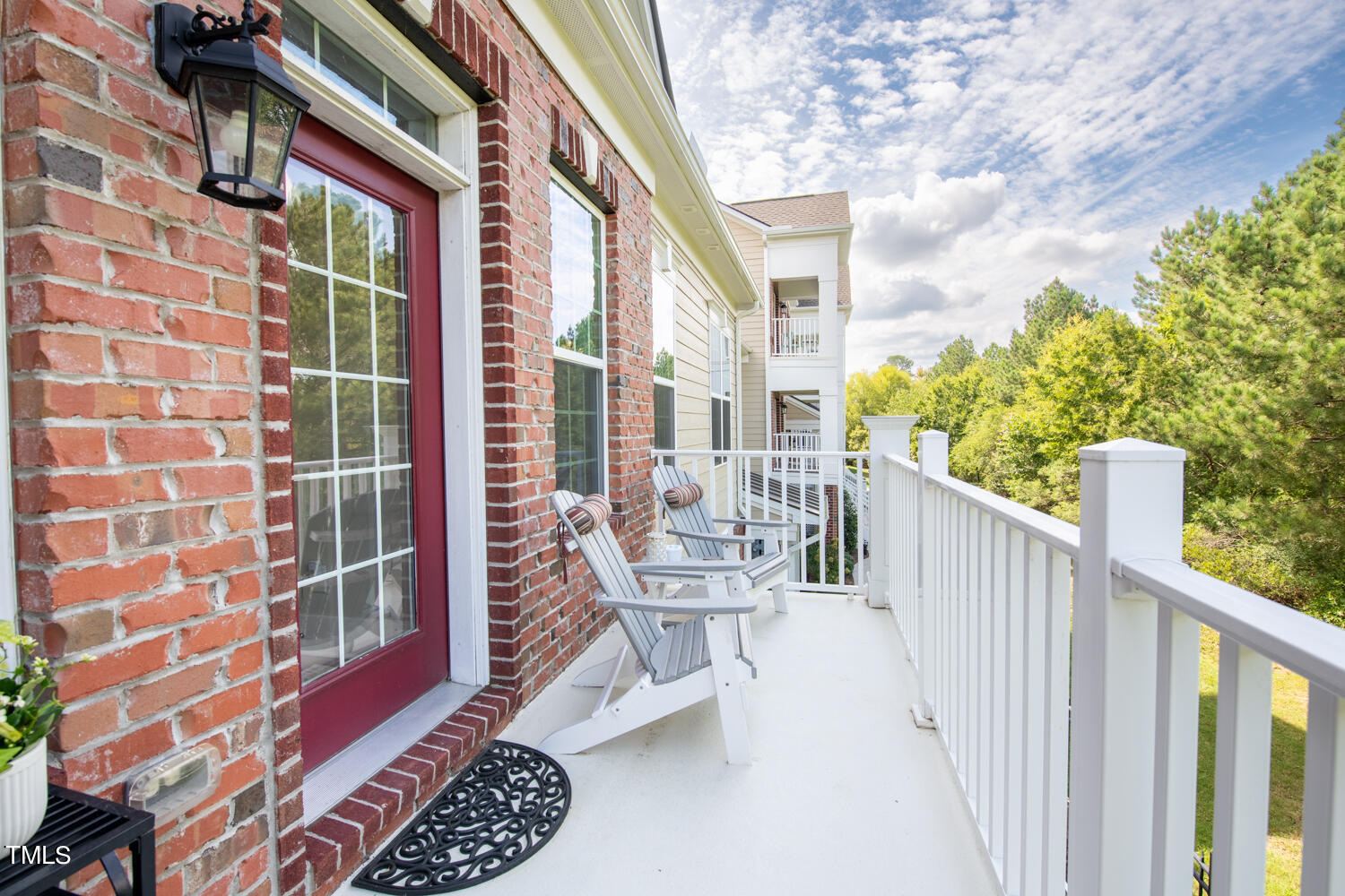 Immaculate townhome-like living with all the upgrades! Three-story condo with private elevator that features spacious living spaces and tons of natural light! A gourmet kitchen with oversized island, stainless steel appliance package. Master suite showcases a coffered ceiling with large walk-in closet, exercise room and a private balcony! Better than new construction with custom lighting fixtures throughout and custom blinds! California Custom Closet systems in every closet. All the bedrooms have blackout curtains. Wonderful bonus room on second floor with outdoor patio! Low-maintenance luxury living in the heart of Brier Creek!! Liquid granite on flooring in two car garage!