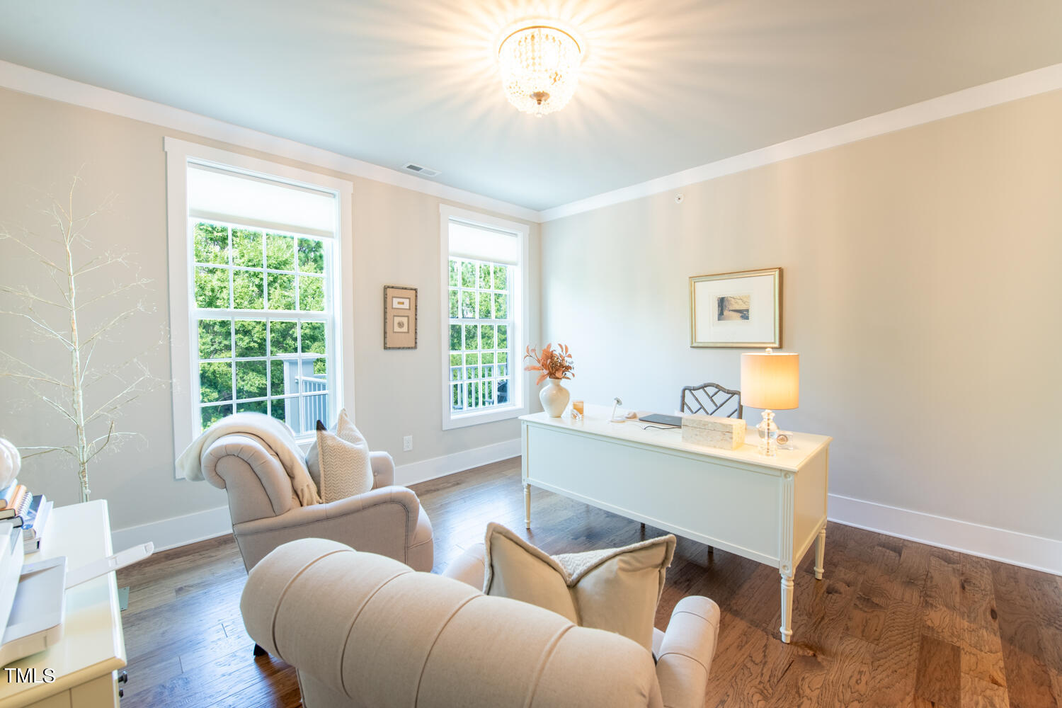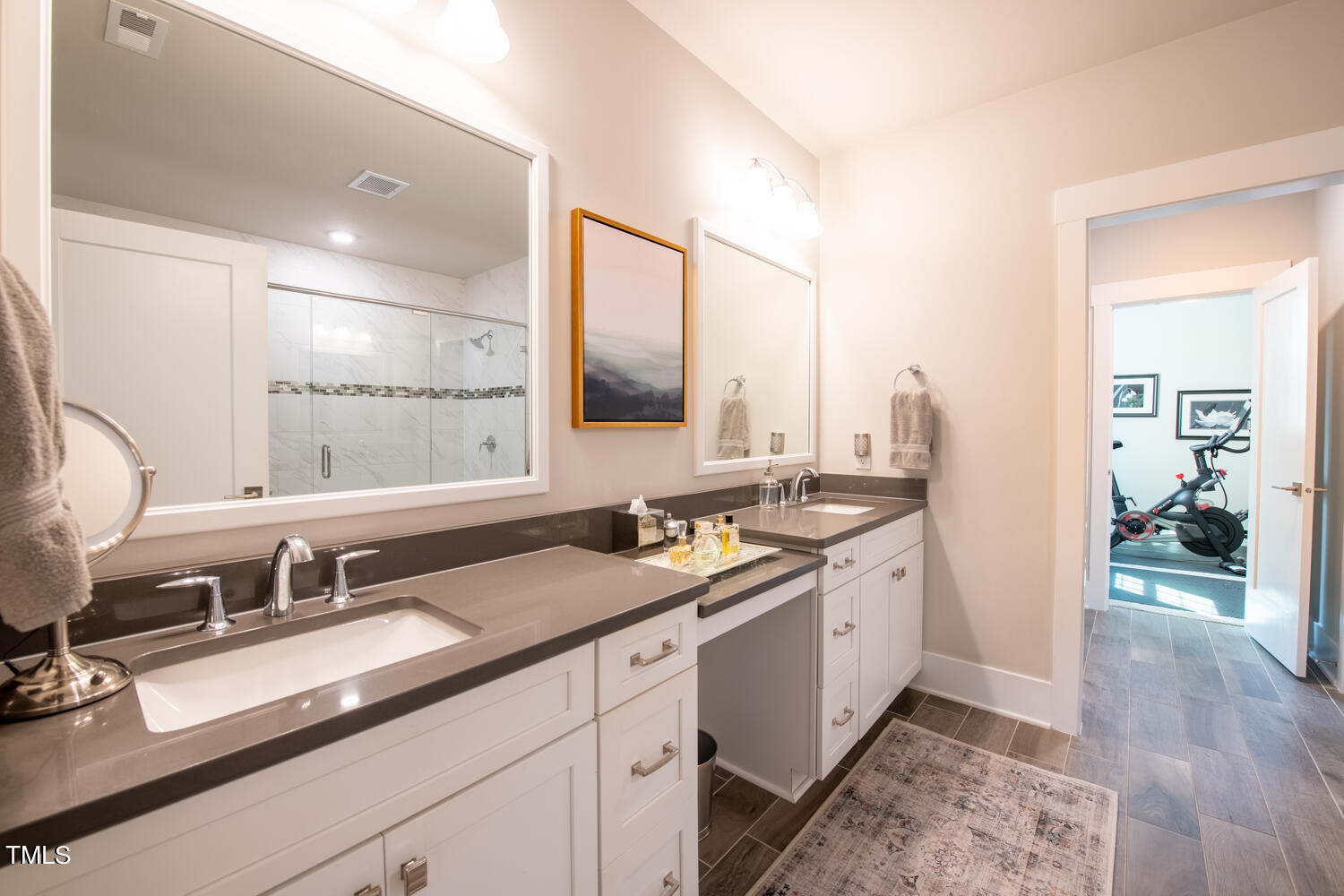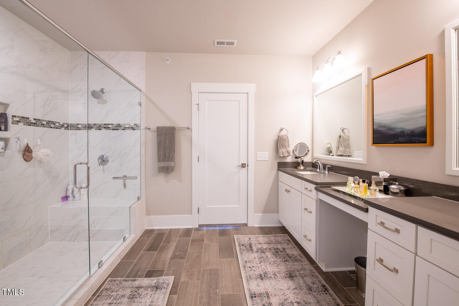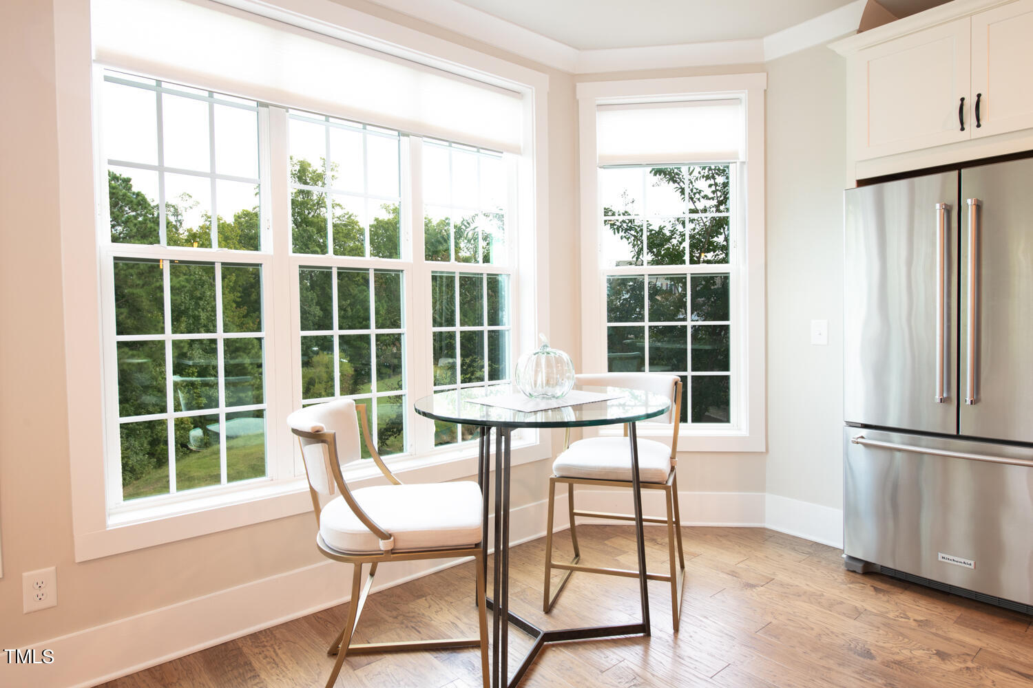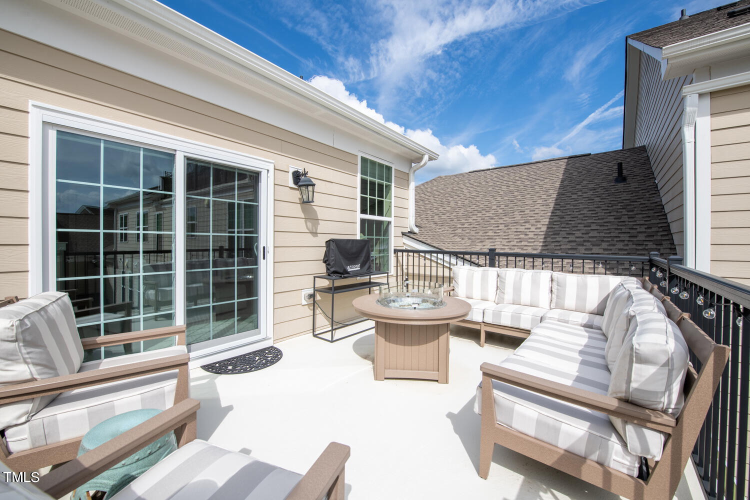 Immaculate townhome-like living with all the upgrades! Three-story condo with private elevator that features spacious living spaces and tons of natural light! A gourmet kitchen with oversized island, stainless steel appliance package. Master suite showcases a coffered ceiling with large walk-in closet, exercise room and a private balcony! Better than new construction with custom lighting fixtures throughout and custom blinds! California Custom Closet systems in every closet. All the bedrooms have blackout curtains. Wonderful bonus room on second floor with outdoor patio! Low-maintenance luxury living in the heart of Brier Creek!! Liquid granite on flooring in two car garage!