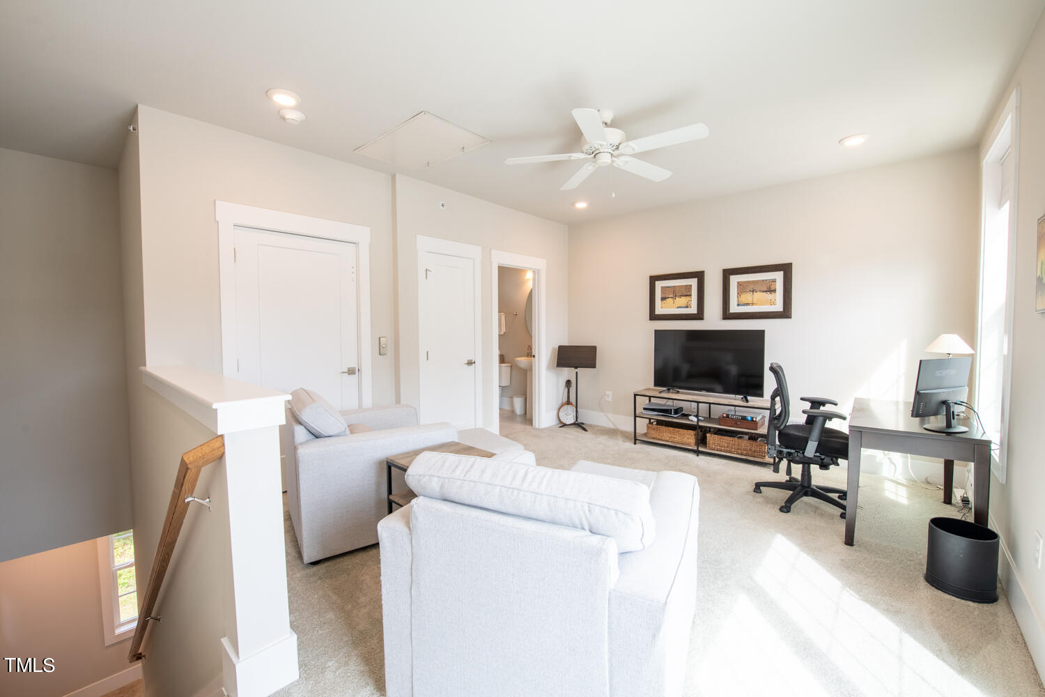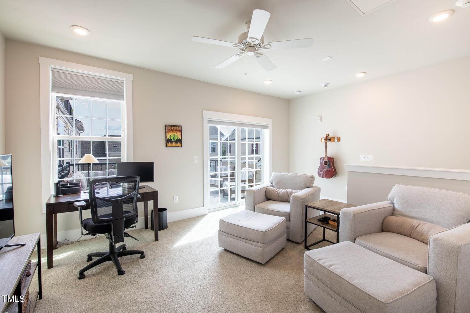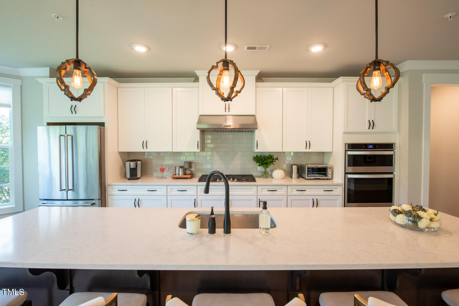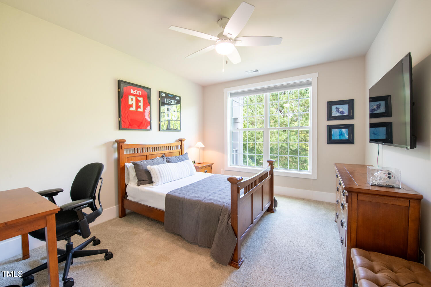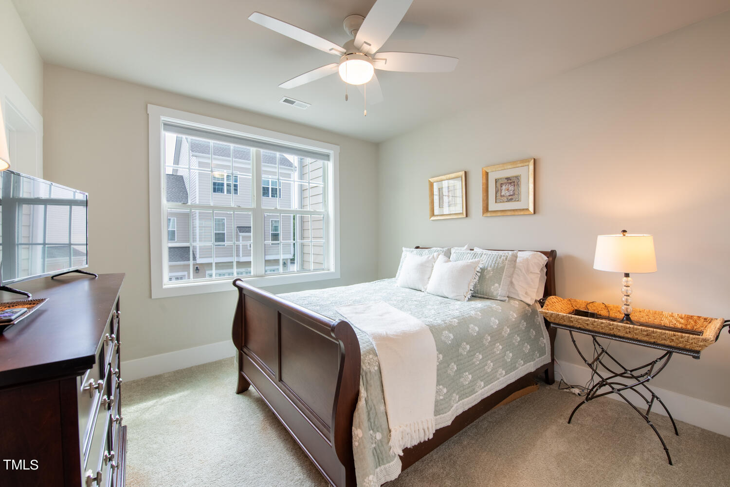Immaculate townhome-like living with all the upgrades! Three-story condo with private elevator that features spacious living spaces and tons of natural light! A gourmet kitchen with oversized island, stainless steel appliance package. Master suite showcases a coffered ceiling with large walk-in closet, exercise room and a private balcony! Better than new construction with custom lighting fixtures throughout and custom blinds! California Custom Closet systems in every closet. All the bedrooms have blackout curtains. Wonderful bonus room on second floor with outdoor patio! Low-maintenance luxury living in the heart of Brier Creek!! Liquid granite on flooring in two car garage!
