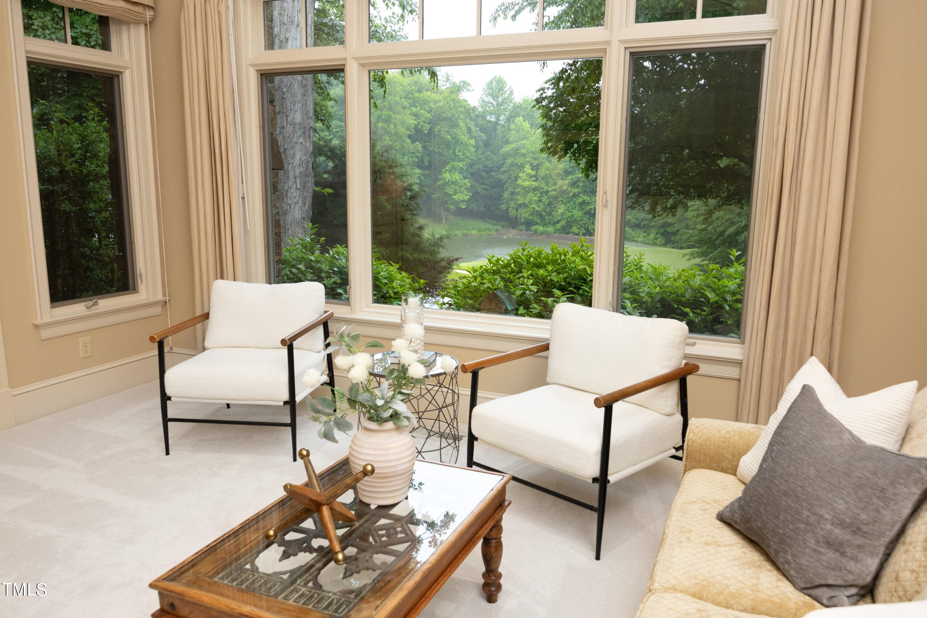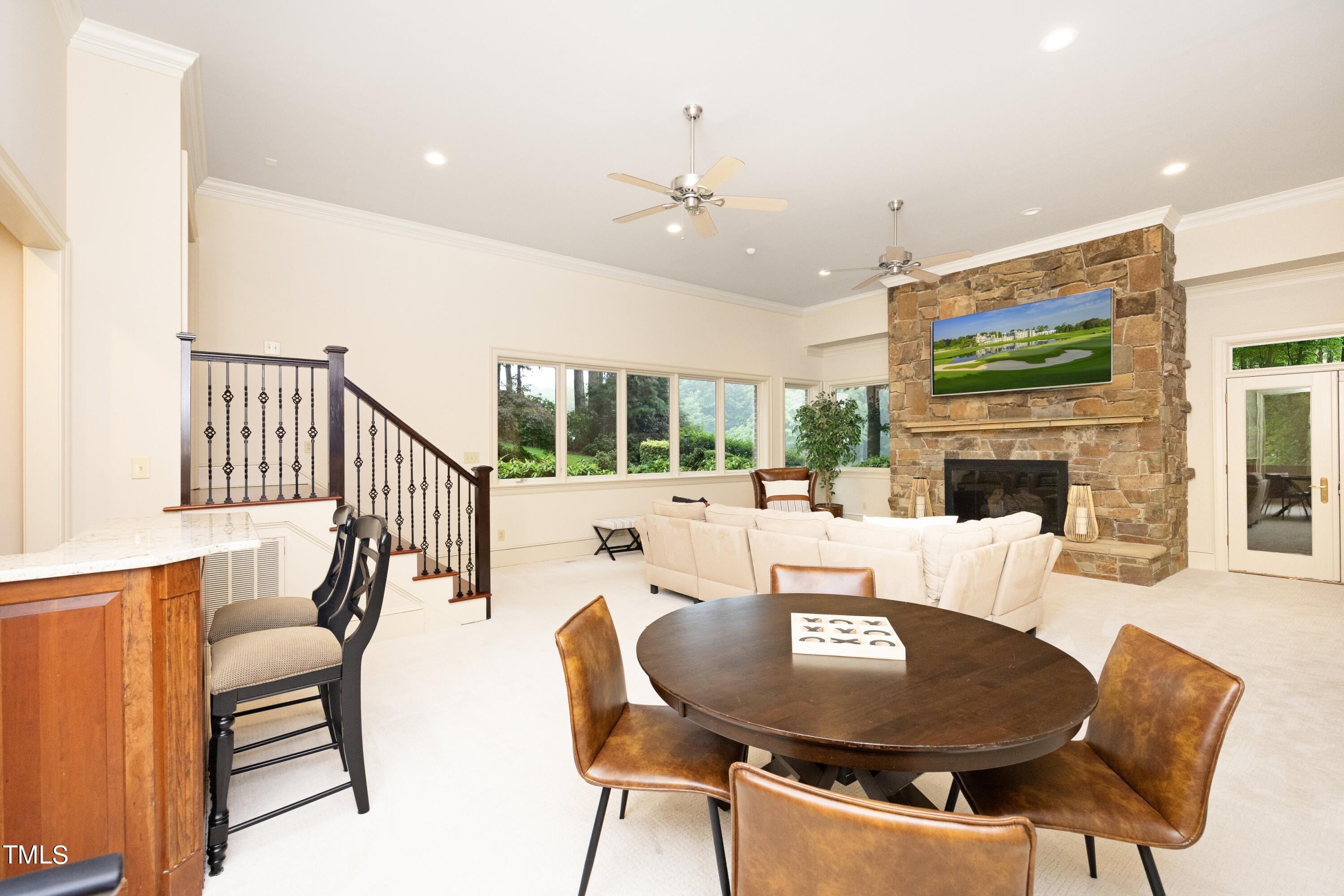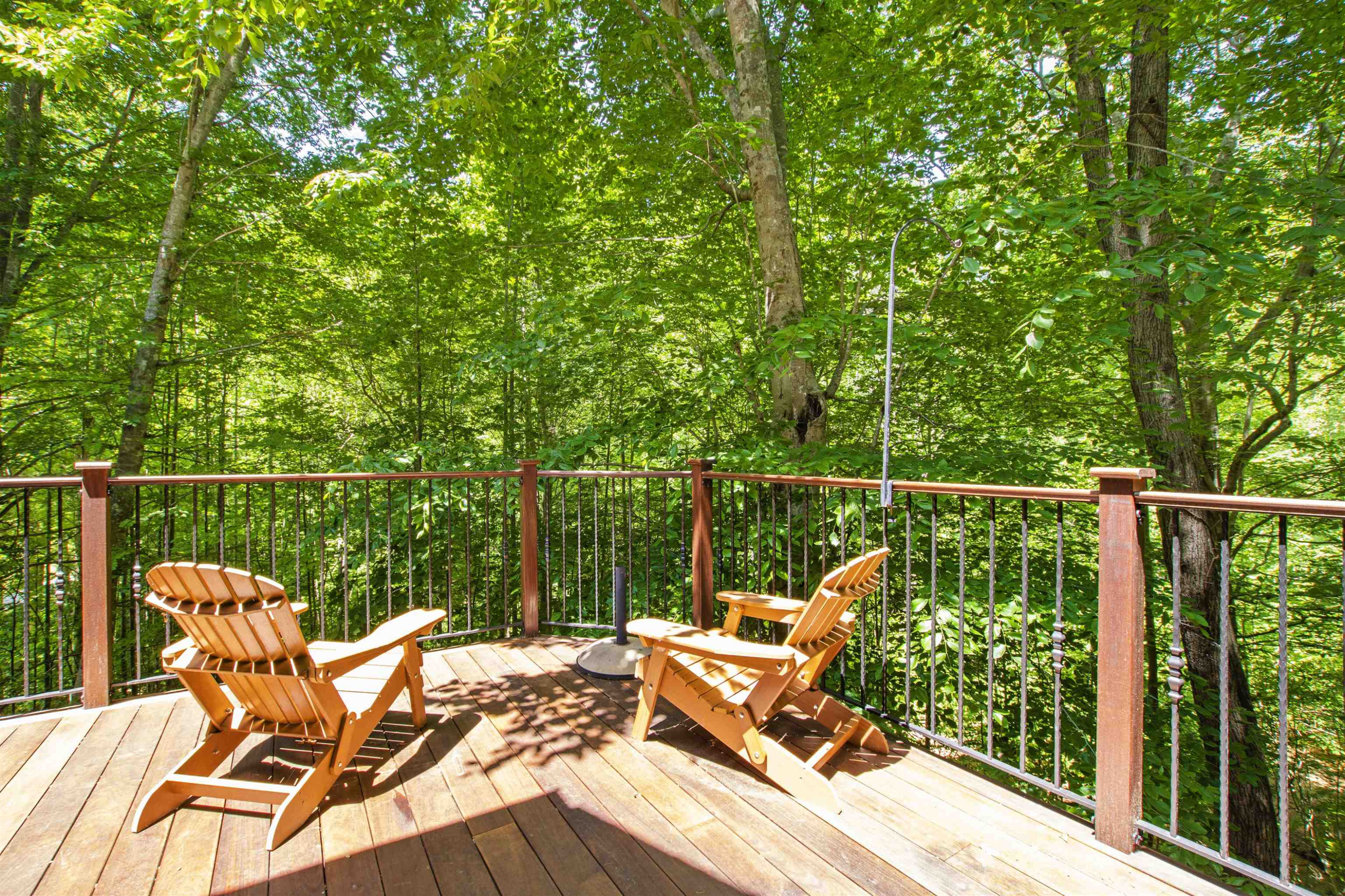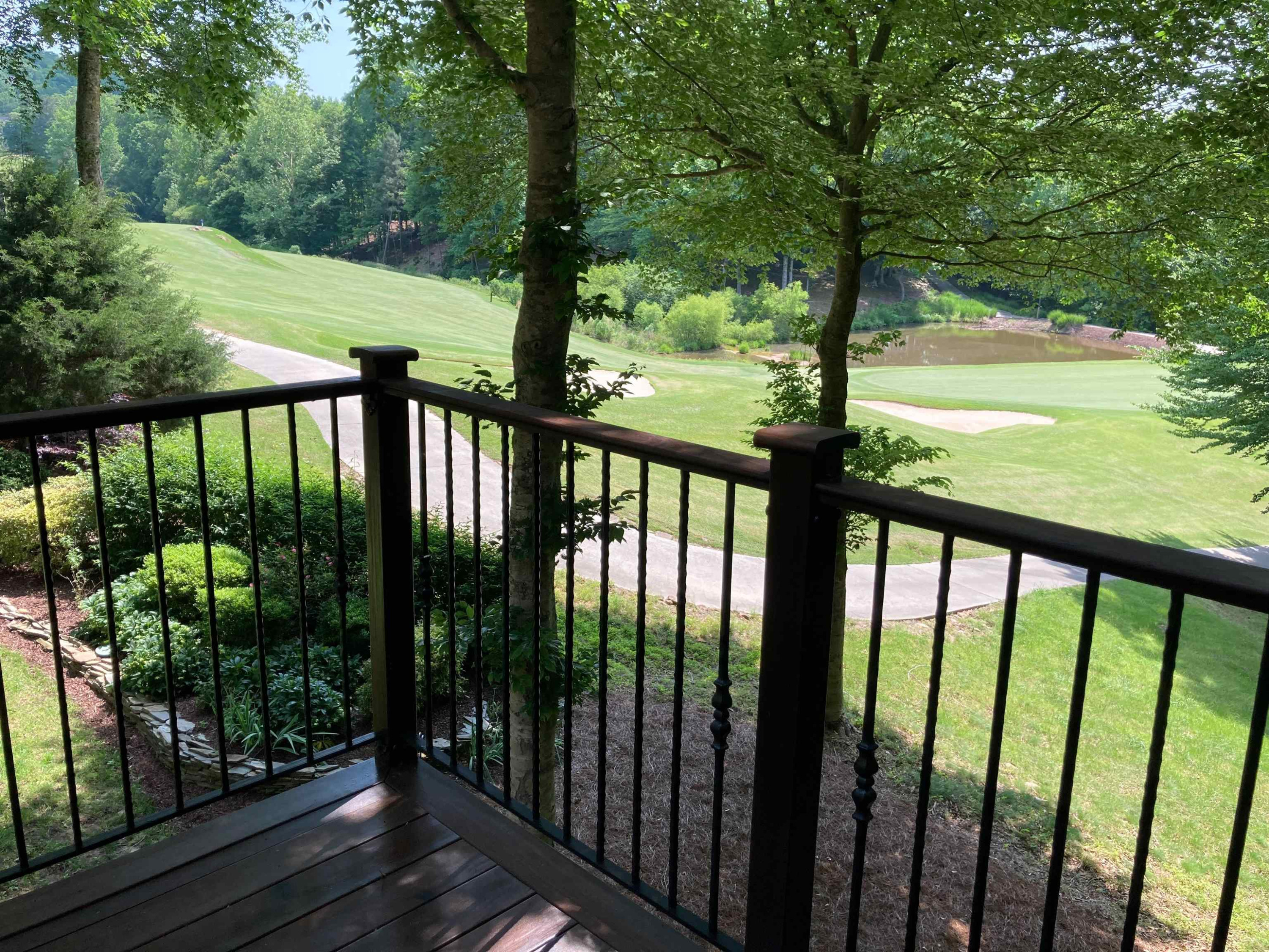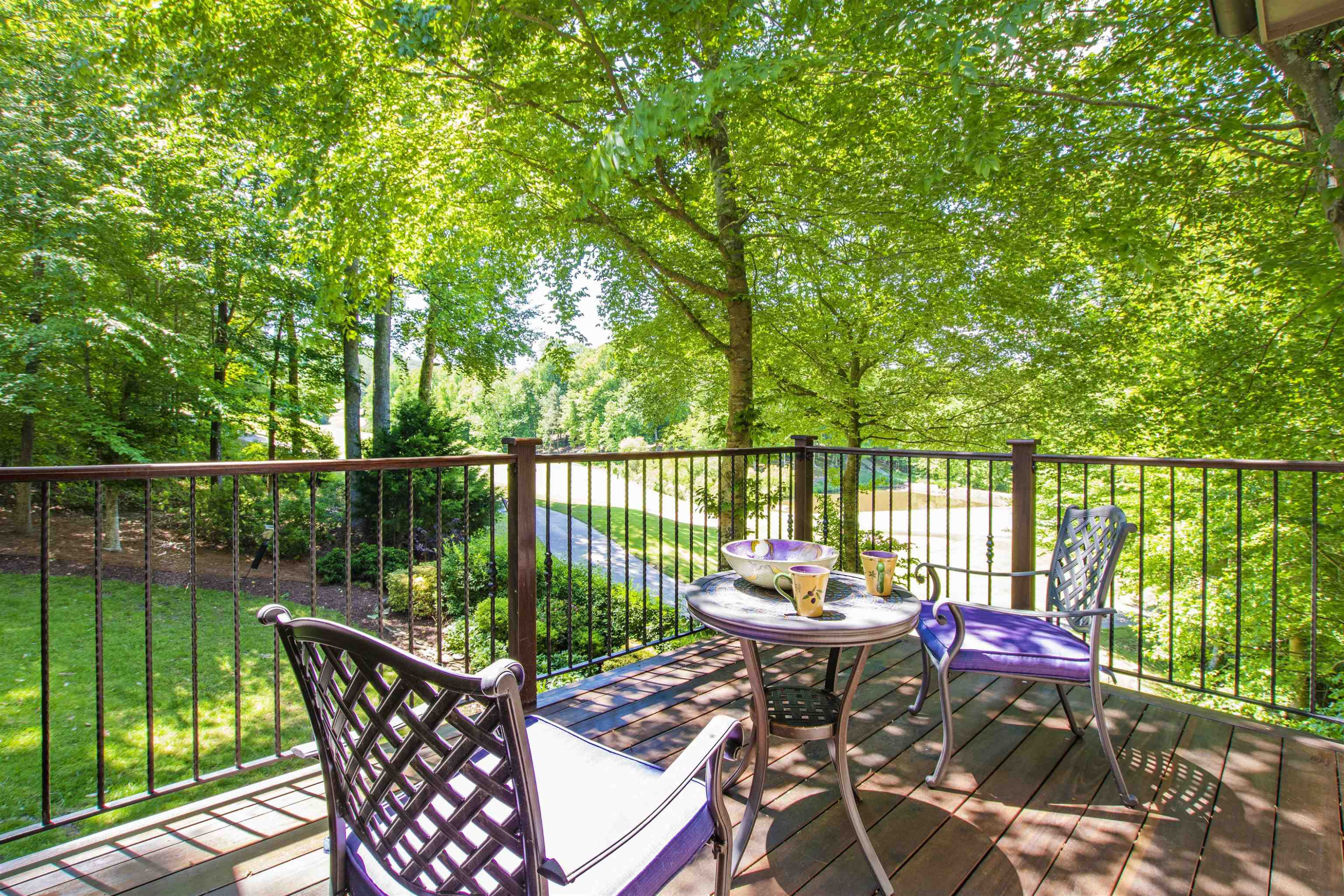 Experience your private mountain estate minutes from downtown Chapel Hill. On a 1.09 acre lot at the end of its own road, this stone and brick masterpiece features a long view of fairway and mountain, near views of a pond and golf course and 180 degree views of woods and Cub Creek. Two decks, sunroom and screened porch on the main level and Phantom screened porch on lower level with hot tub and fireplace. Recently renovated - new gourmet kitchen, floors, paint. Roof replaced in 2022. Wine cellar.