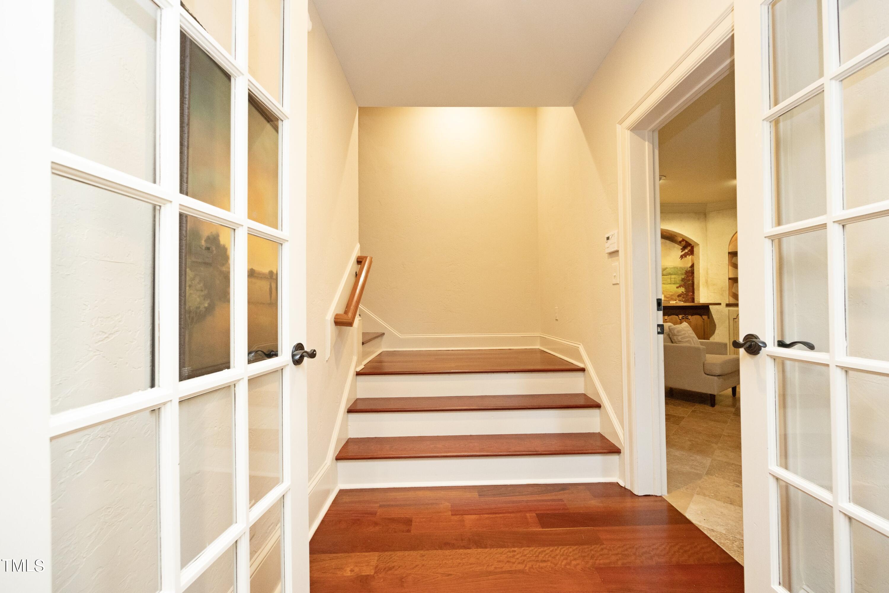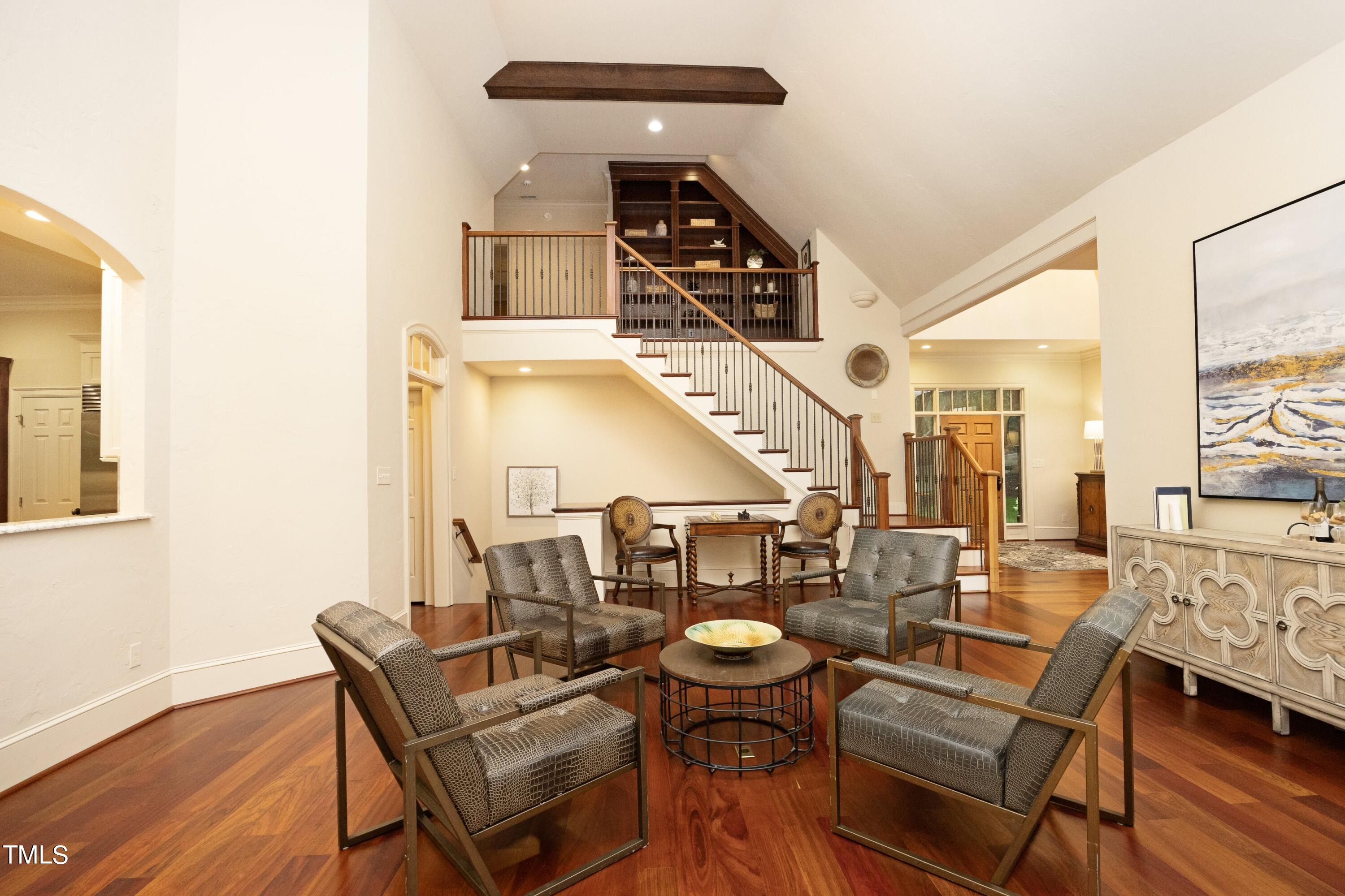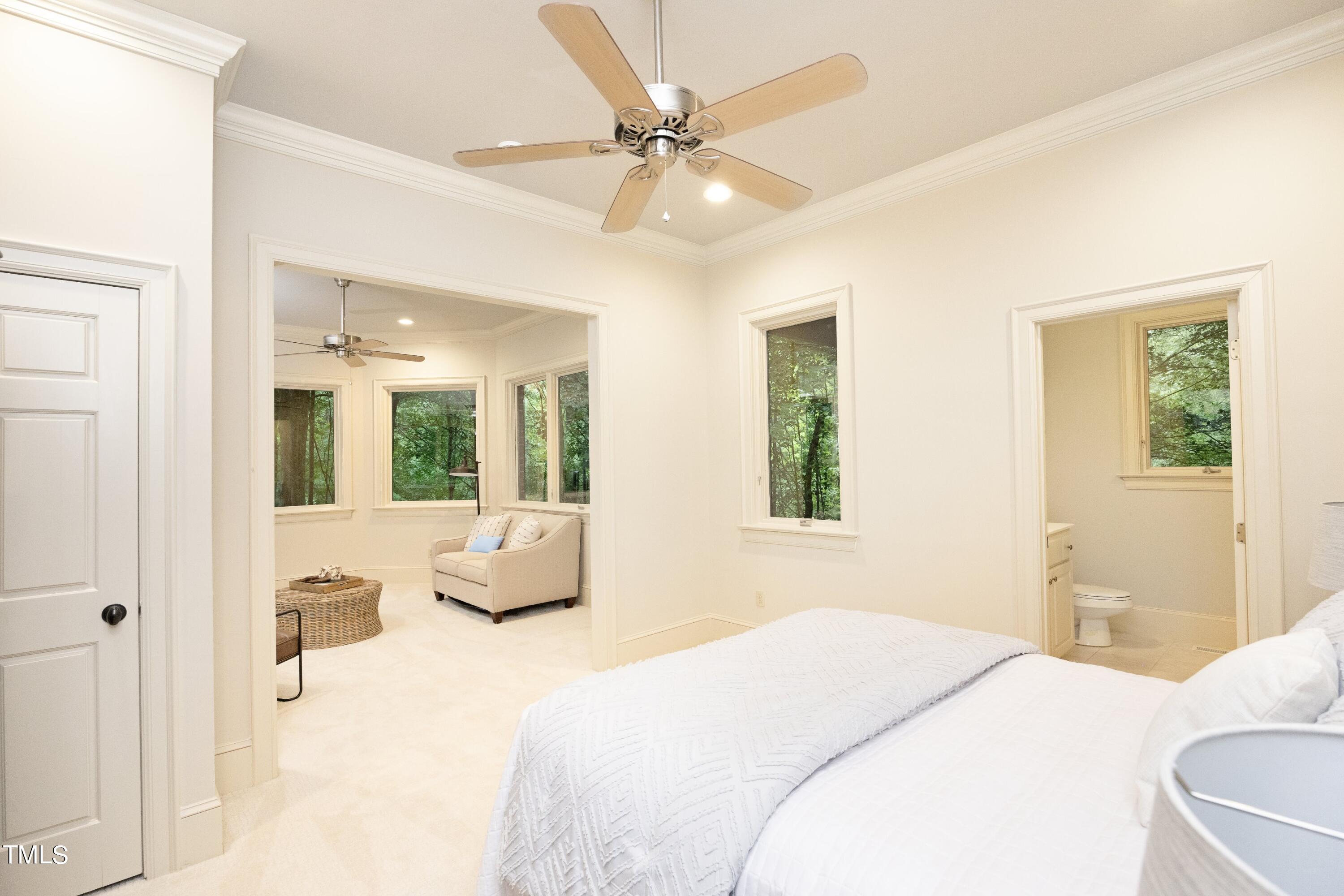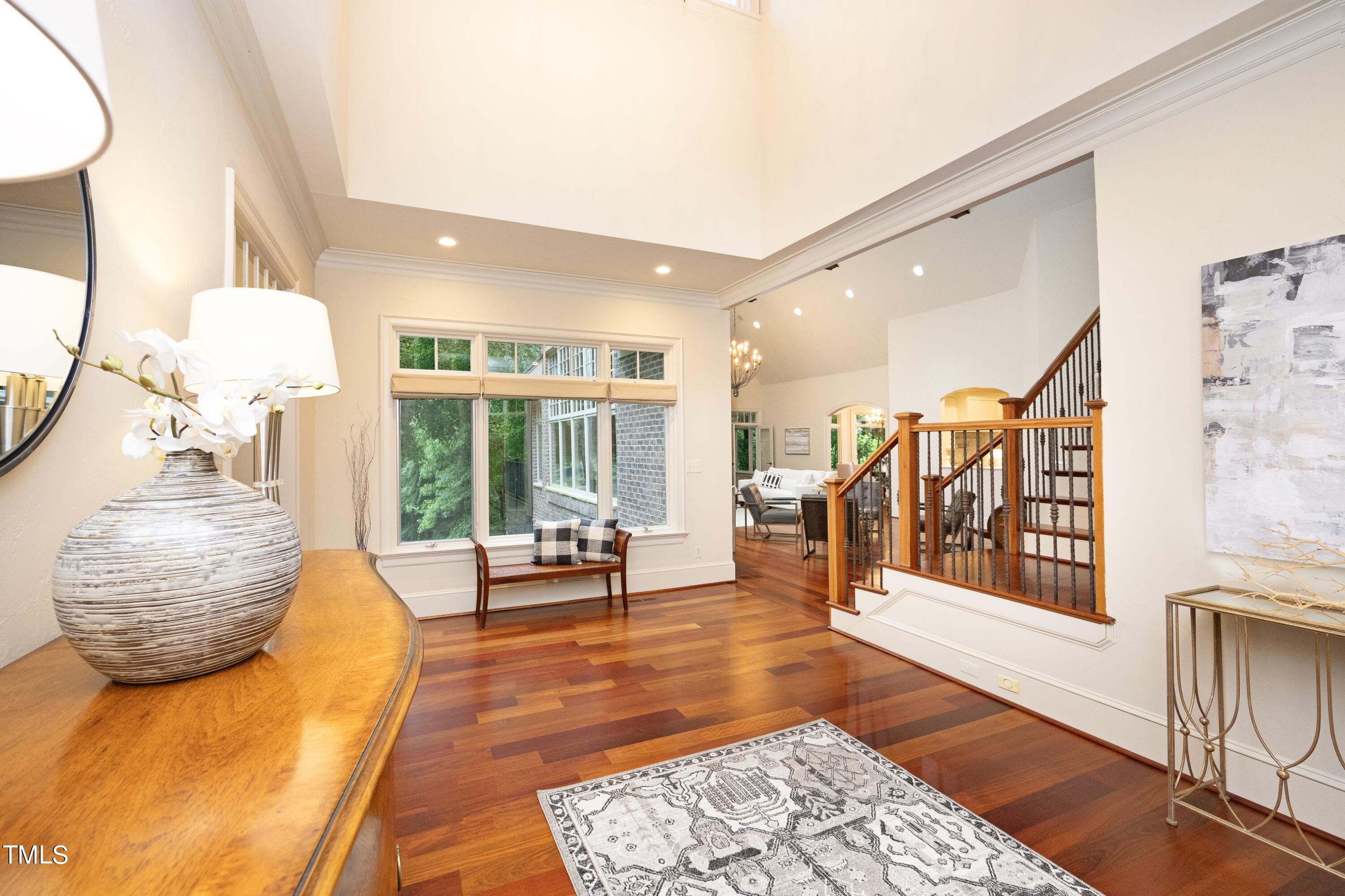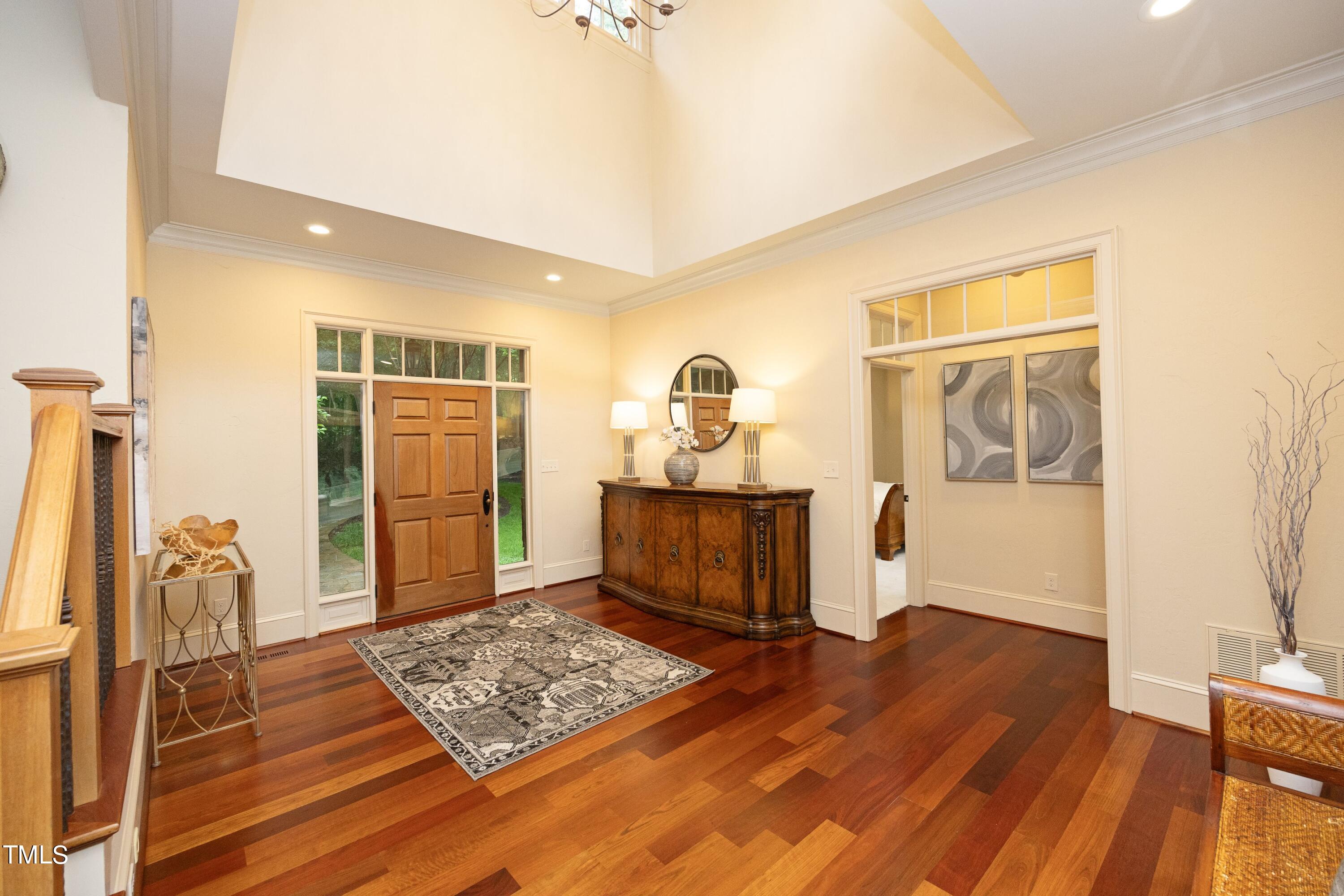 Experience your private mountain estate minutes from downtown Chapel Hill. On a 1.09 acre lot at the end of its own road, this stone and brick masterpiece features a long view of fairway and mountain, near views of a pond and golf course and 180 degree views of woods and Cub Creek. Two decks, sunroom and screened porch on the main level and Phantom screened porch on lower level with hot tub and fireplace. Recently renovated - new gourmet kitchen, floors, paint. Roof replaced in 2022. Wine cellar.