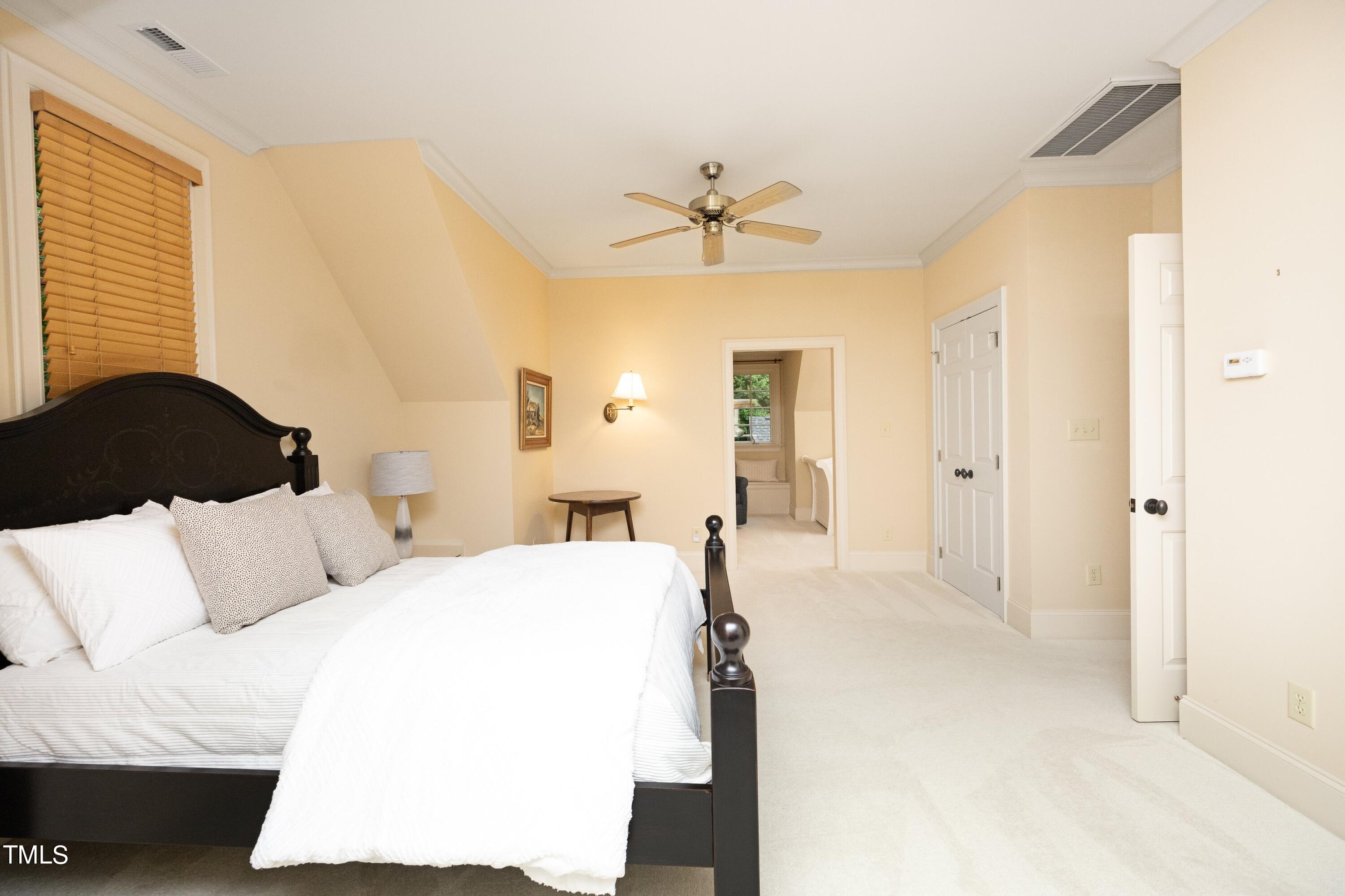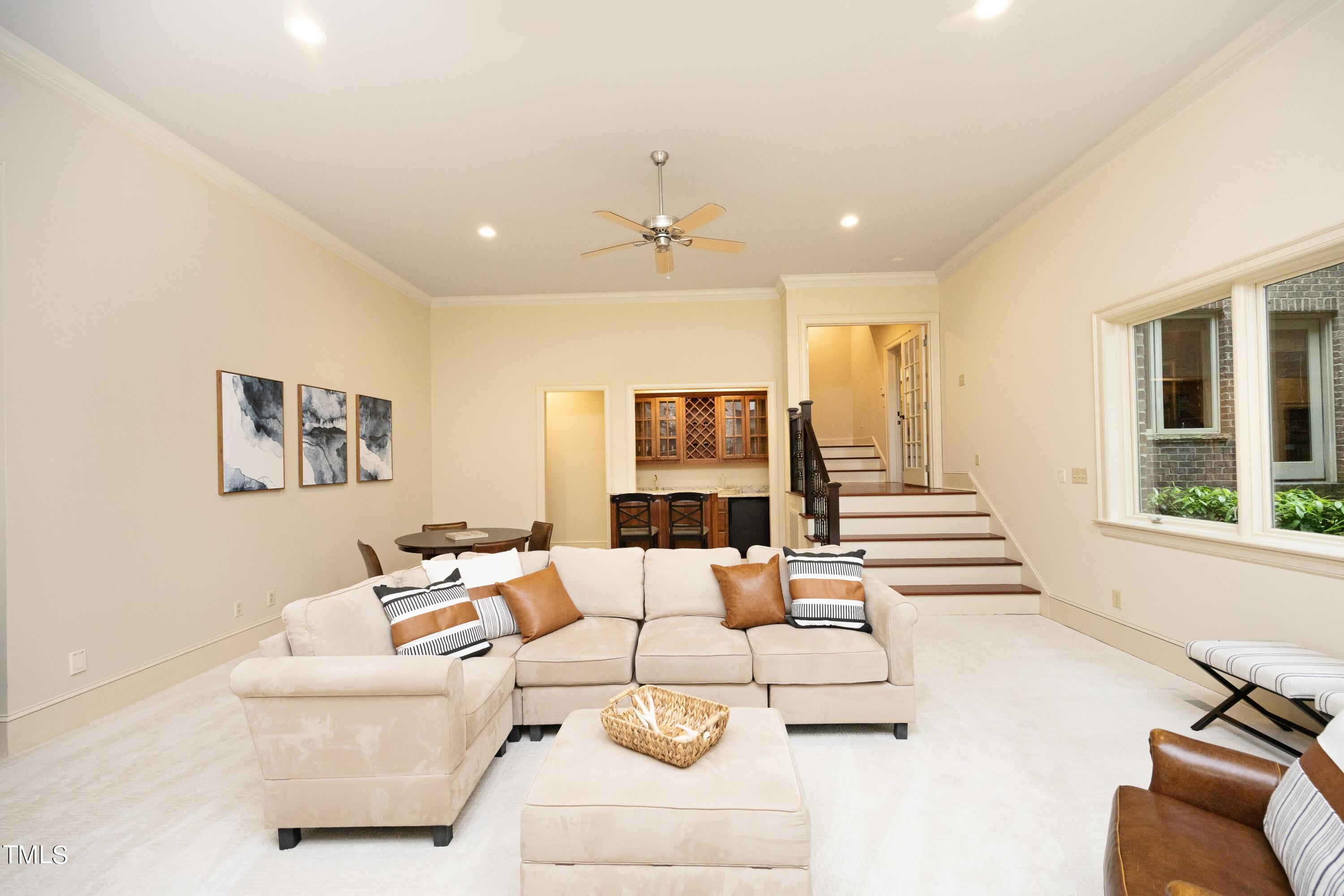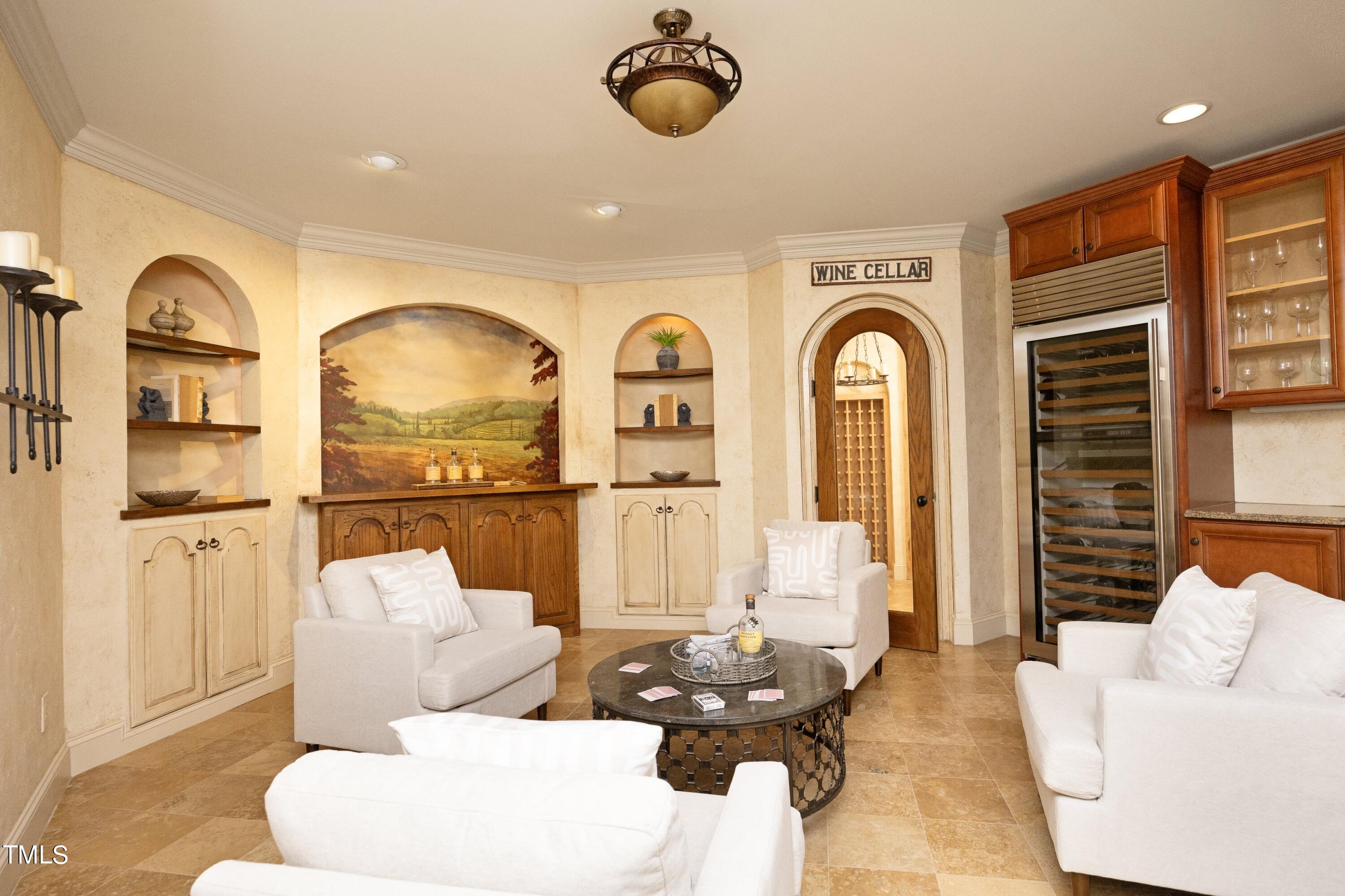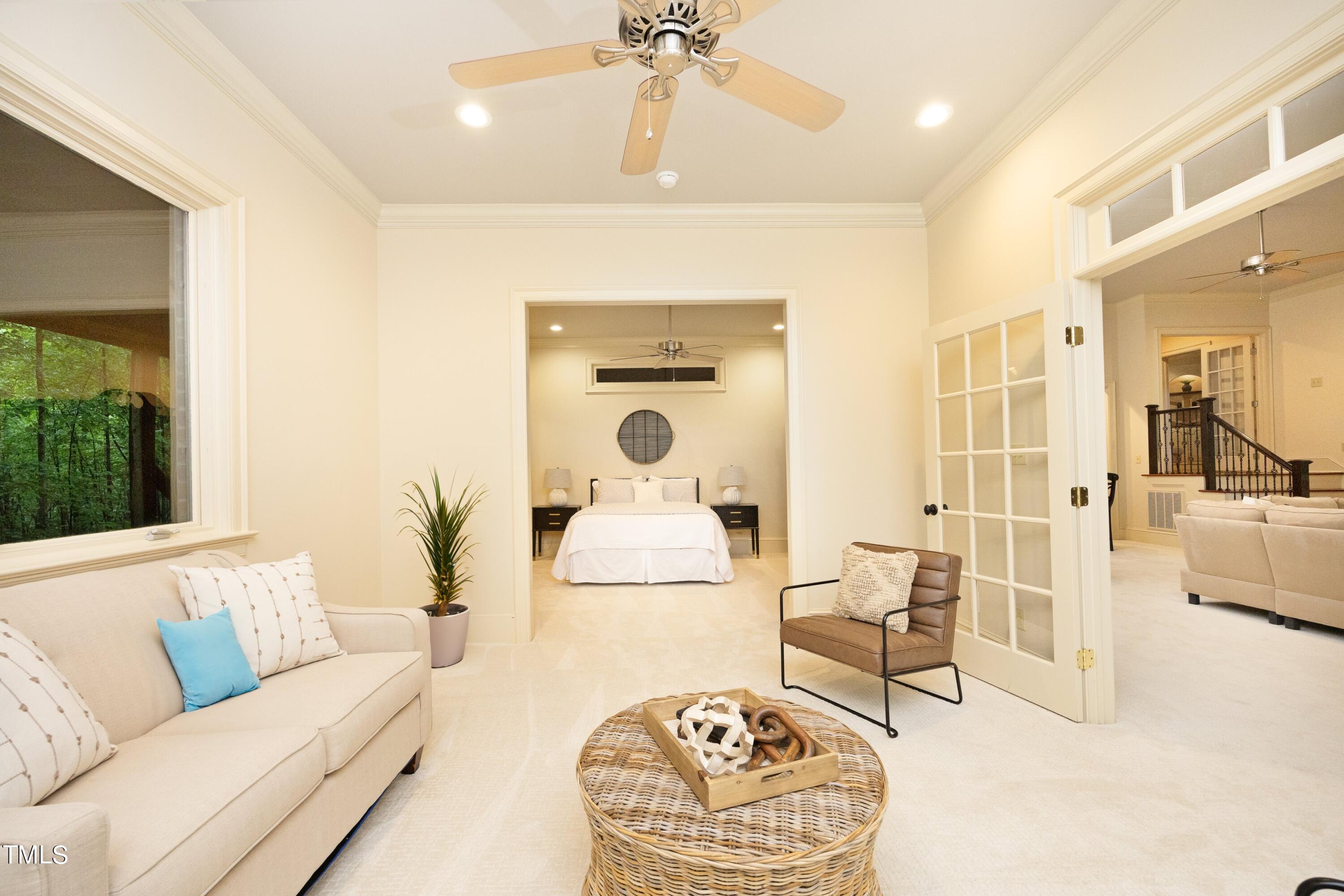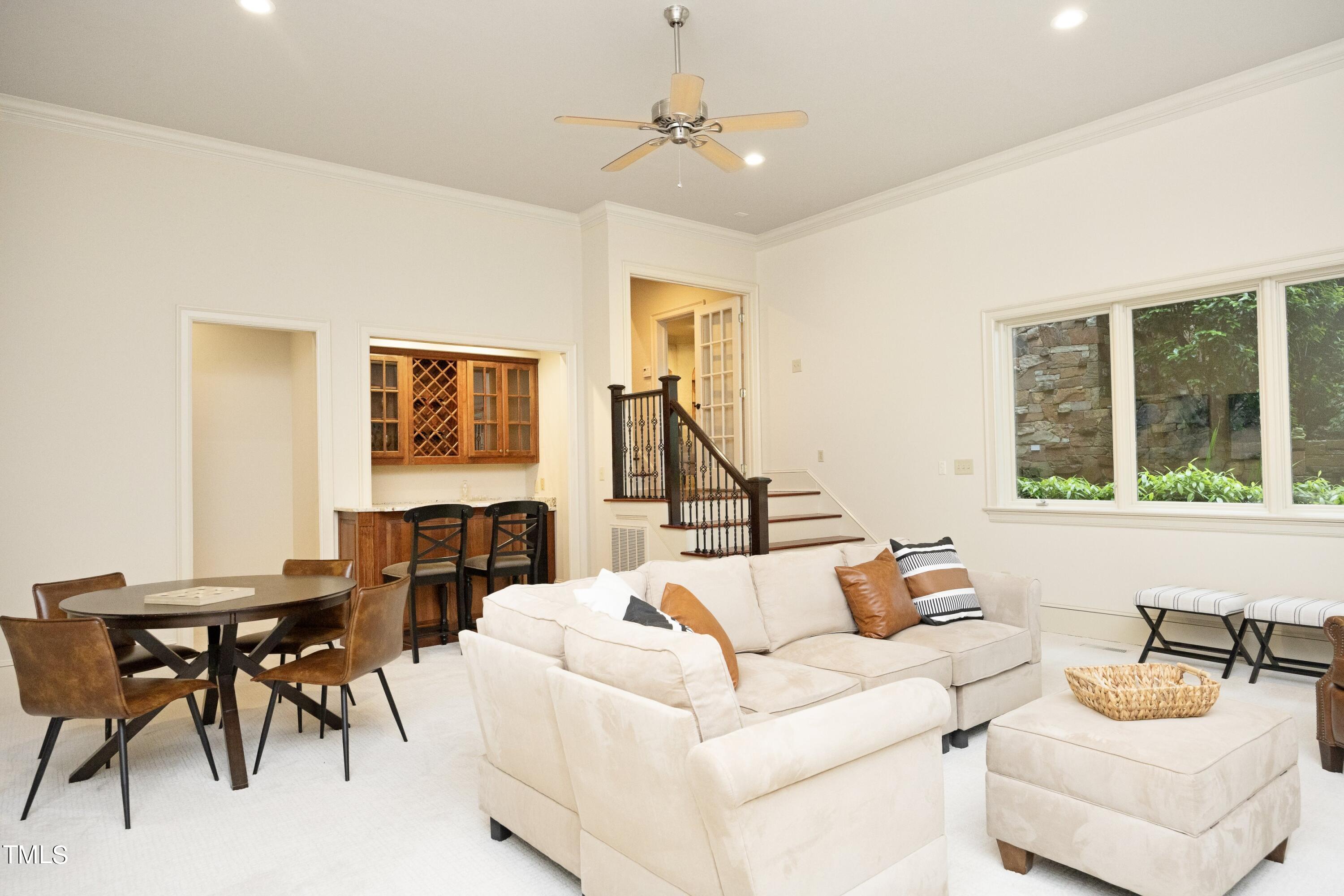 Experience your private mountain estate minutes from downtown Chapel Hill. On a 1.09 acre lot at the end of its own road, this stone and brick masterpiece features a long view of fairway and mountain, near views of a pond and golf course and 180 degree views of woods and Cub Creek. Two decks, sunroom and screened porch on the main level and Phantom screened porch on lower level with hot tub and fireplace. Recently renovated - new gourmet kitchen, floors, paint. Roof replaced in 2022. Wine cellar.