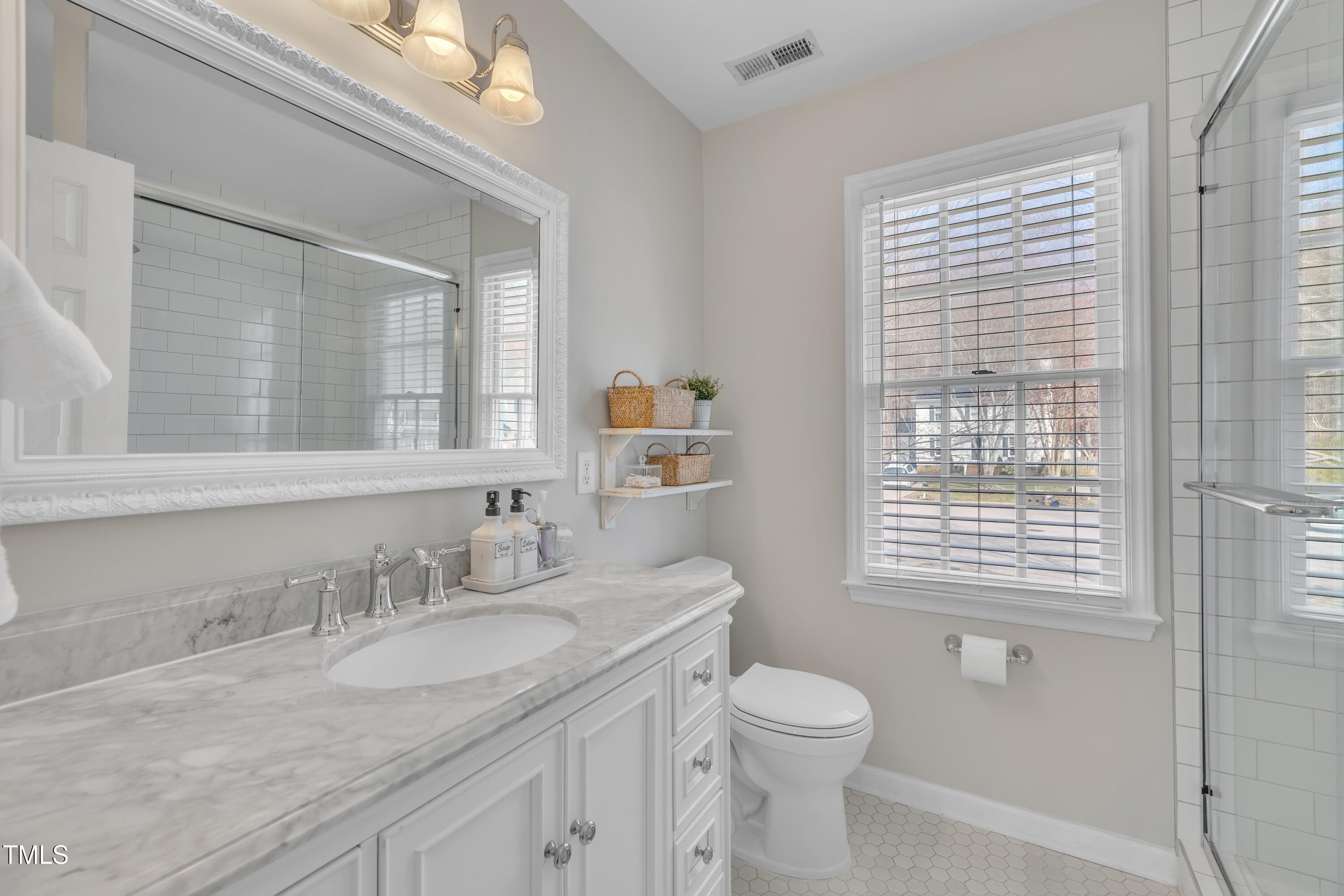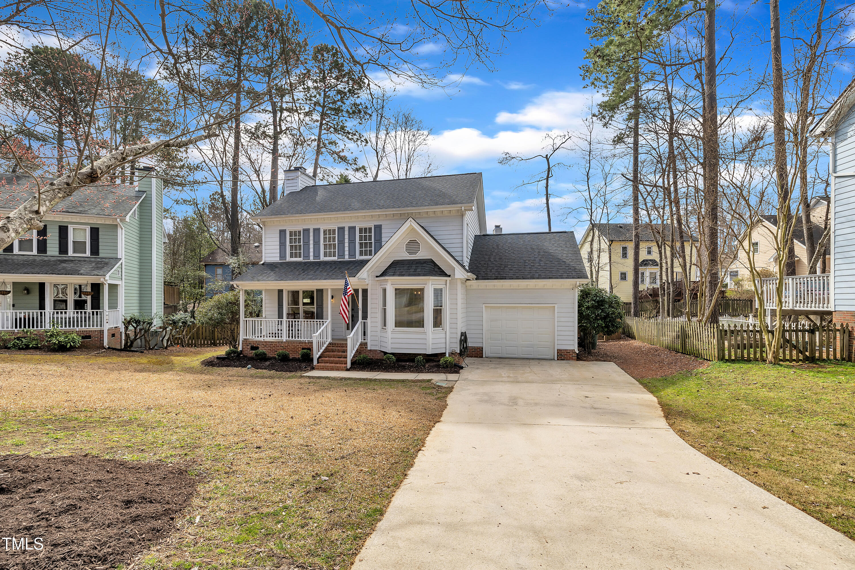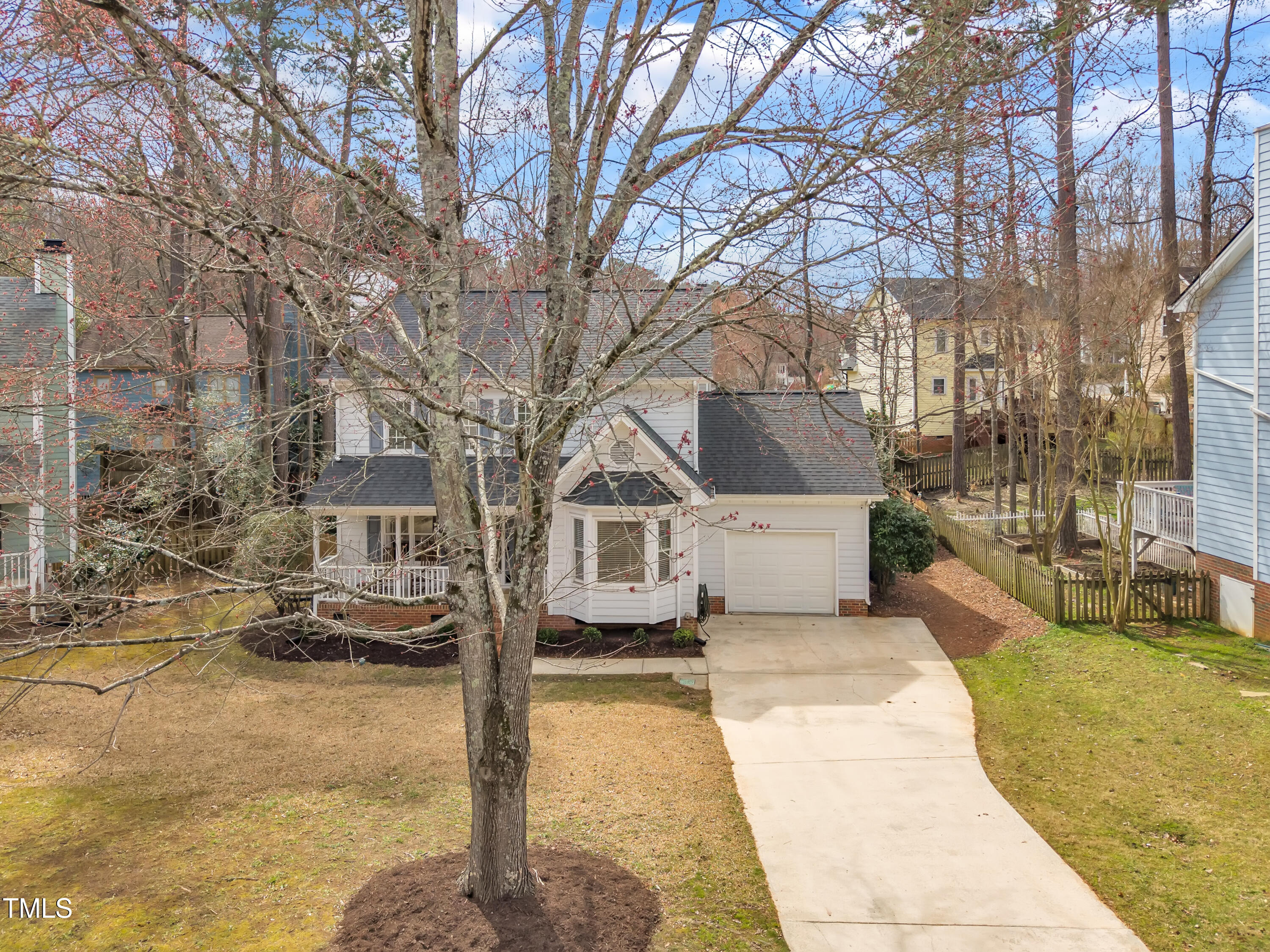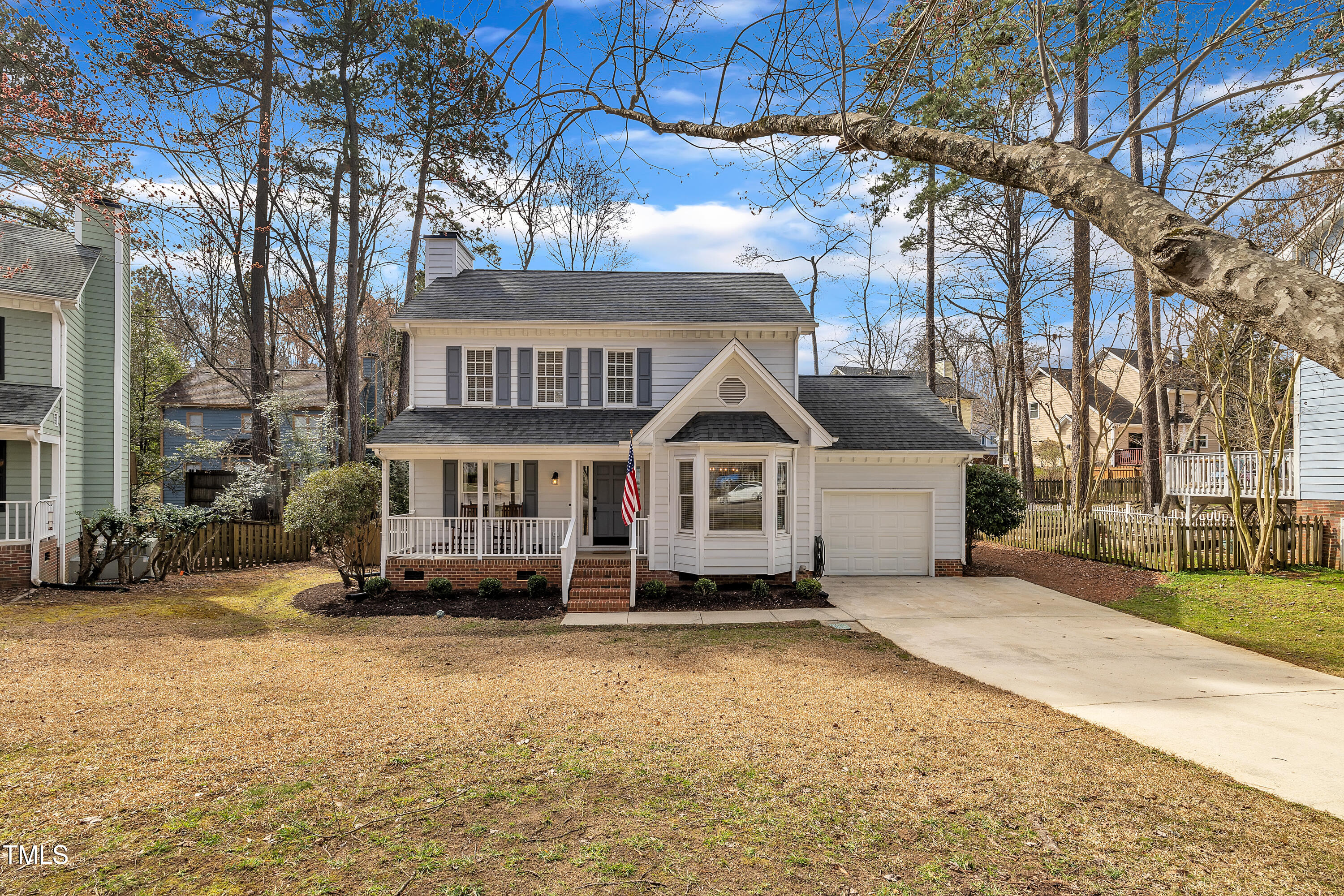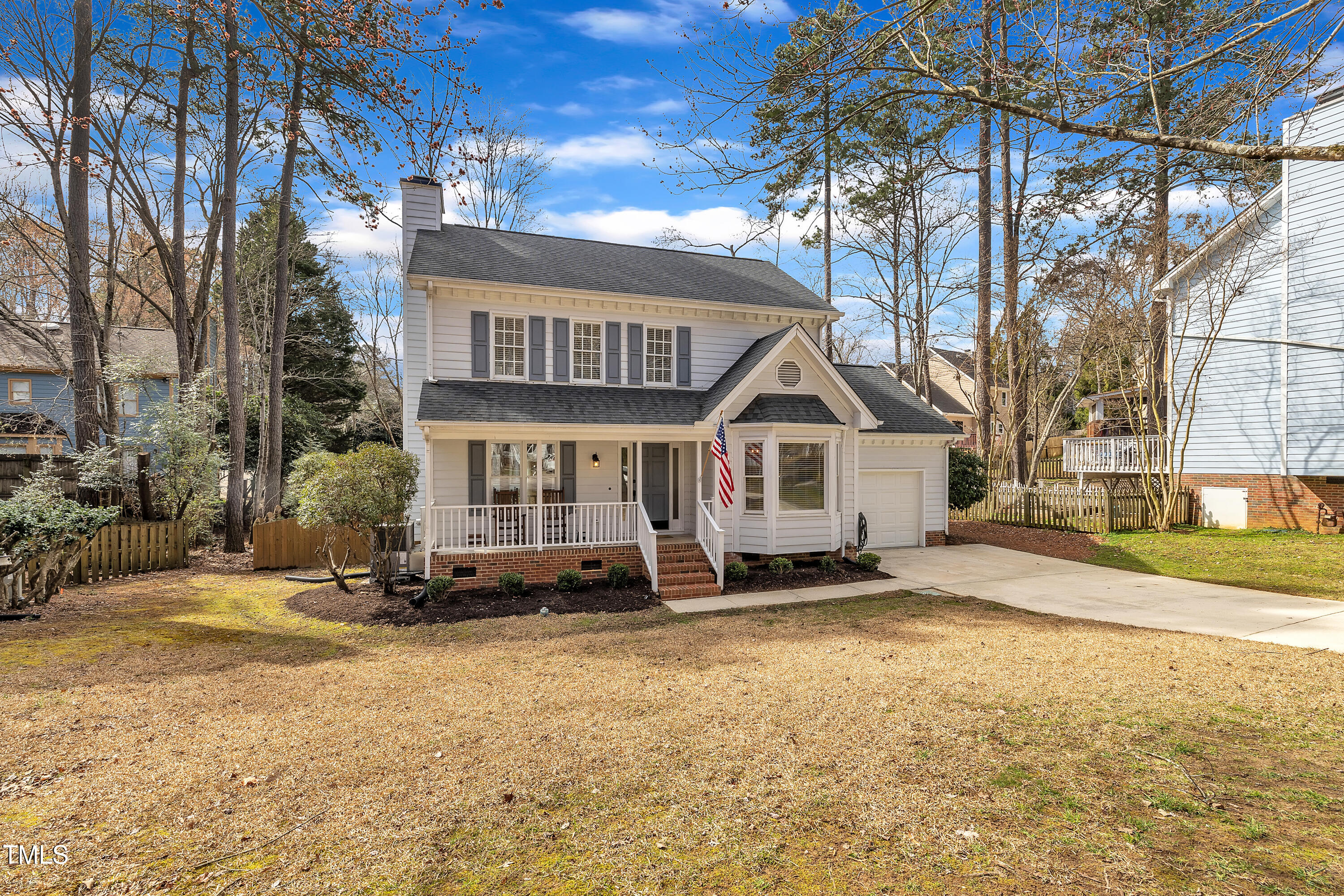 Stunning 3-bedroom home with a fully renovated kitchen & primary bath, convenient to downtown Cary, I-40, RTP, RDU & greenway trails. This beautifully updated two-story home on a cul-de-sac lot offers 3 spacious bedrooms, 2.5 baths, and a perfect blend of modern updates and classic charm. As you step inside, you'll be greeted by gorgeous hardwood floors that flow throughout the main living areas, creating a warm and inviting atmosphere. The formal dining room provides an elegant space ideal for hosting family dinners and holiday gatherings, & the cozy living room with a wood burning fireplace is the perfect spot for relaxing after a long day or enjoying time with loved ones. The heart of the home is the fully renovated kitchen (2021), a chef's dream featuring gorgeous quartz countertops, a farmhouse sink, and Diamond cabinetry with convenient drawer dividers and pull-out tray. Cooking is a breeze with the gas range, custom hood, and ample storage. The perfect space for preparing meals and entertaining guests! Upstairs, the primary suite is an oasis of relaxation. Renovated in 2022, the luxurious bathroom boasts a quartz vanity, tile floors, a spacious walk-in tile shower, sliding glass doors, and thoughtful touches like soft-close drawers and built-in shelving. It's a retreat you'll love coming home to. Outside, enjoy your own private haven in the beautifully landscaped fenced backyard, complete with lush fescue grass, arborvitae trees, and a garden box ready for your green thumb. The deck overlooks the serene yard, offering the perfect spot to unwind and entertain. This home combines modern elegance with everyday comfort and convenience. Don't miss out on this incredible opportunityaEUR"schedule your private showing today! 2019 Roof Shingles & 2019 HVAC system. See full list of upgrades & special features in MLS Docs. Preferred closing within 30-45 days & occupancy until June 3rd.