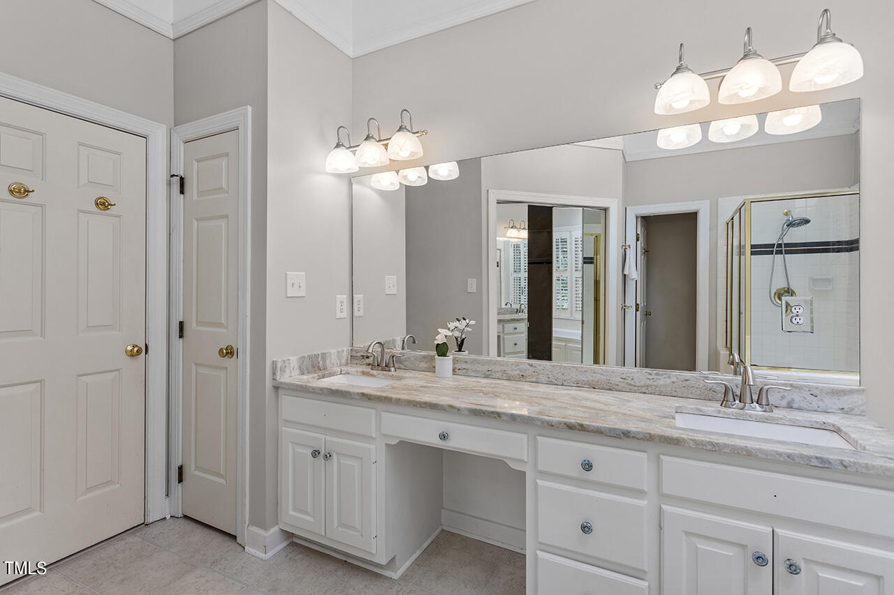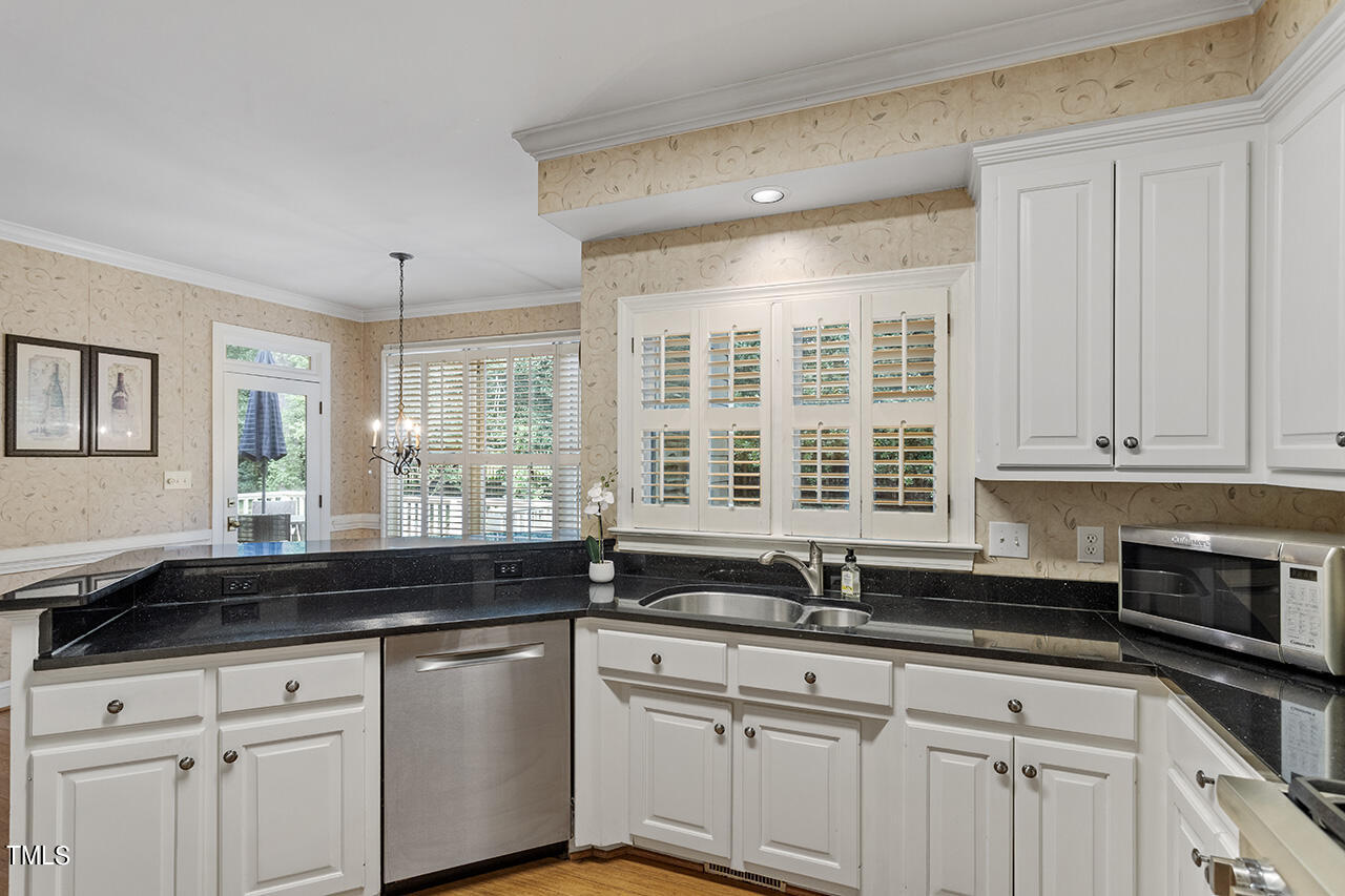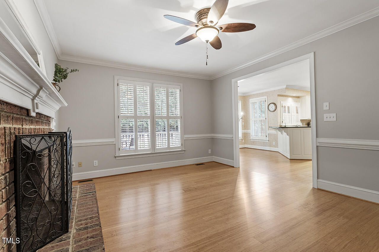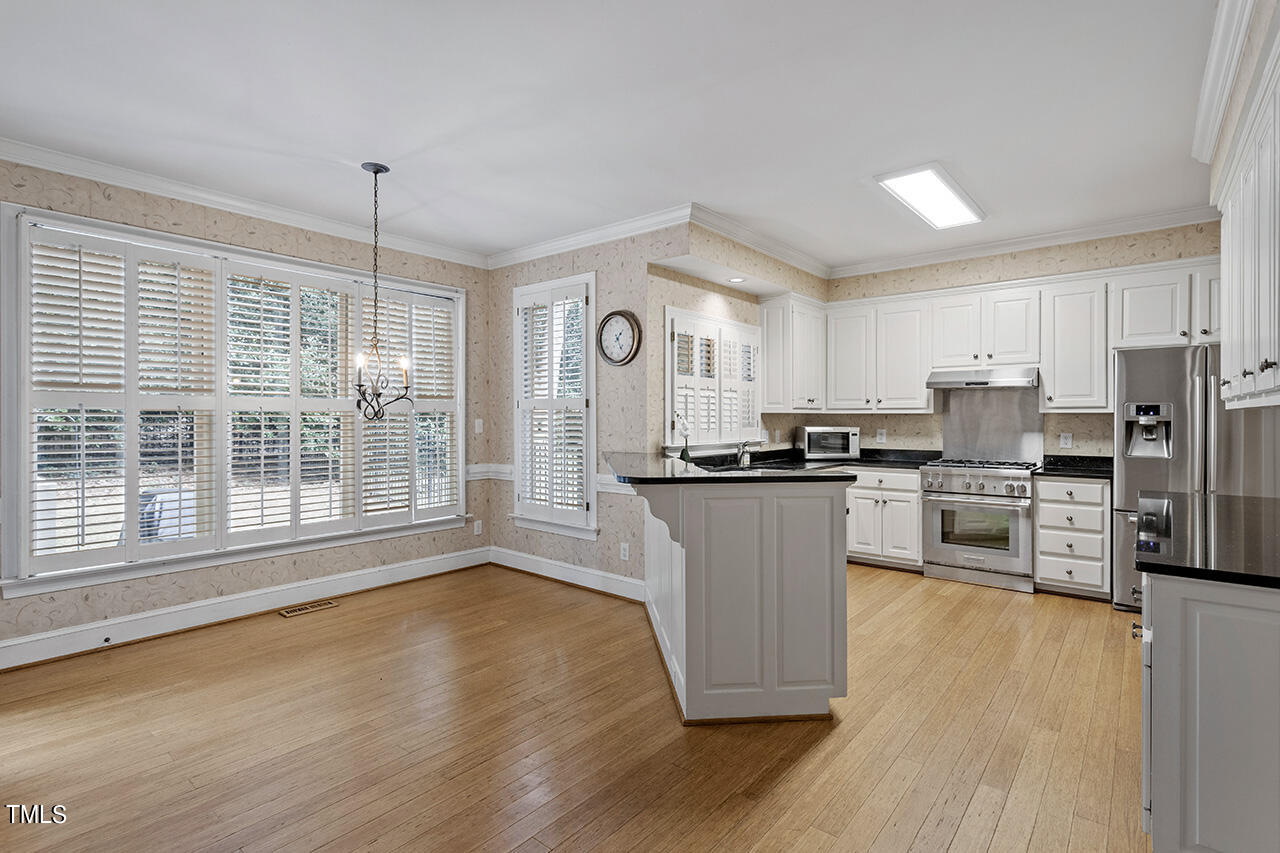Rare Opportunity in storybook subdivision of Edinborough Pointe! Located on a peaceful culdesac, surrounded by mature trees, sits this beauty built with all the upgrades. Wood flooring throughout the first floor leads you past the office and oversized, bright dining room with crown and wainscoting. Stunning kitchen with granite countertops, Thermador range, French wallpaper and plantation shutters open to cozy family room perfect for cuddling around a fire or entertaining during the holidays. Primary Retreat is complete with a high trey ceiling, walk-in closet, luxurious bath with marble dual vanity, a whirlpool tub, separate tiled shower & a vaulted ceiling. HUGE Bonus room, w/ bar and mini fridge, ready for the personal touch of a new owner. Huge walk-up attic is perfect space for storage or finishing and adding SF. Fenced, private yard with deck and so much space. Steps to Lochmere Pavillion, Waverly Place, Crossroads and Fenton, as well as walking trails, parks and highways.