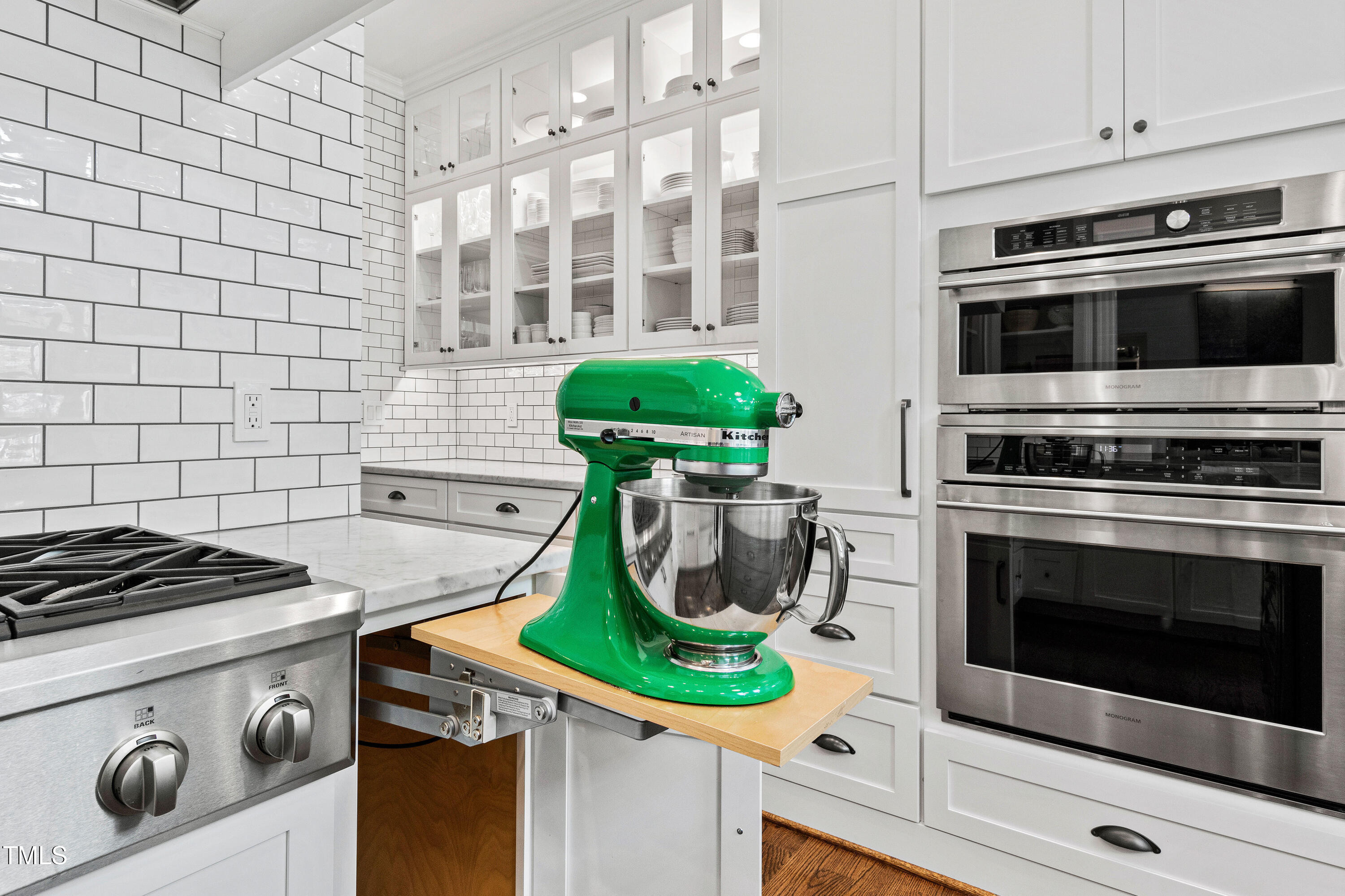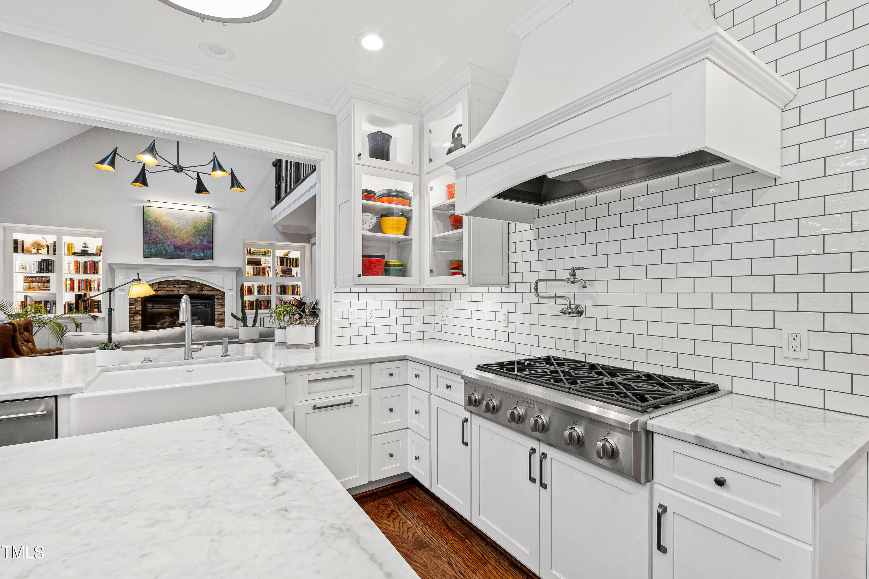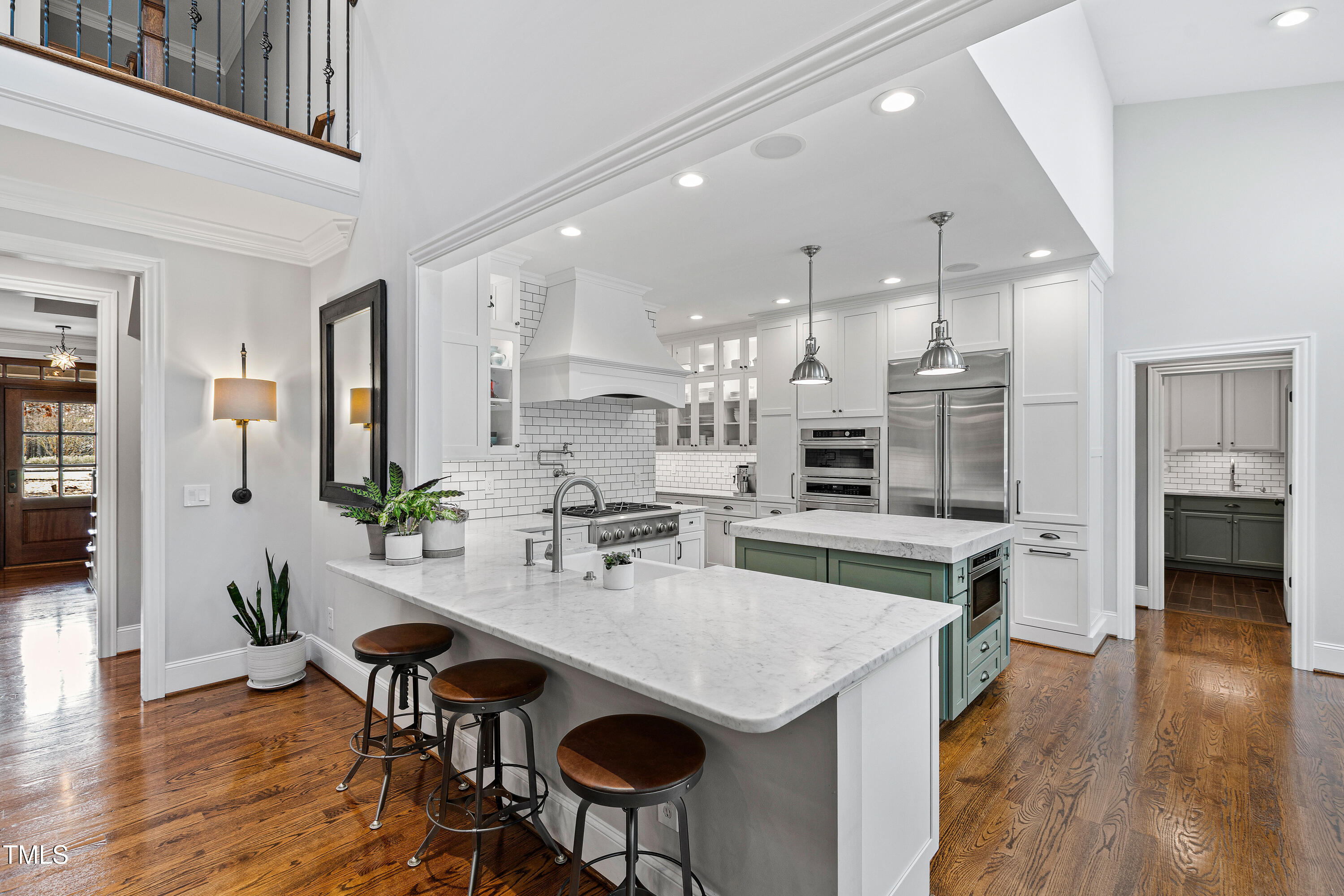 Welcome to 106 Woodkirk. Discover this remarkable home just minutes from downtown Chapel Hill, a true hidden gem set on 3 picturesque acres. This Cape Cod-inspired residence offers an oasis of tranquility from the moment you arrive. Enjoy the beauty of updated hardwood floors and a meticulously remodeled eat-in kitchen by Luxe-Mark Kitchens, featuring high-end Monogram appliances, speed oven, drawer microwave, gas cooktop, and a dedicated cabinet for the KitchenAid mixer.