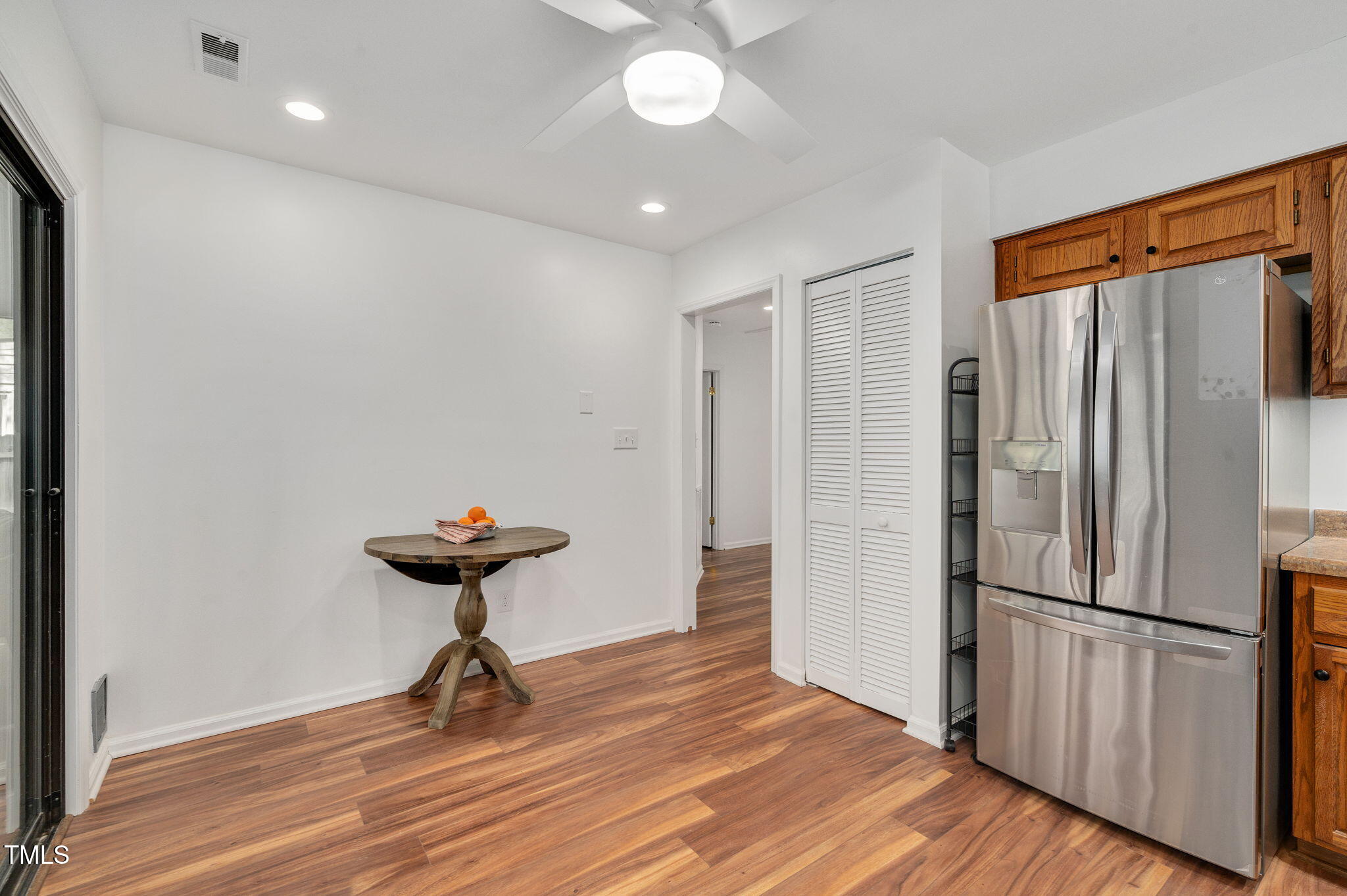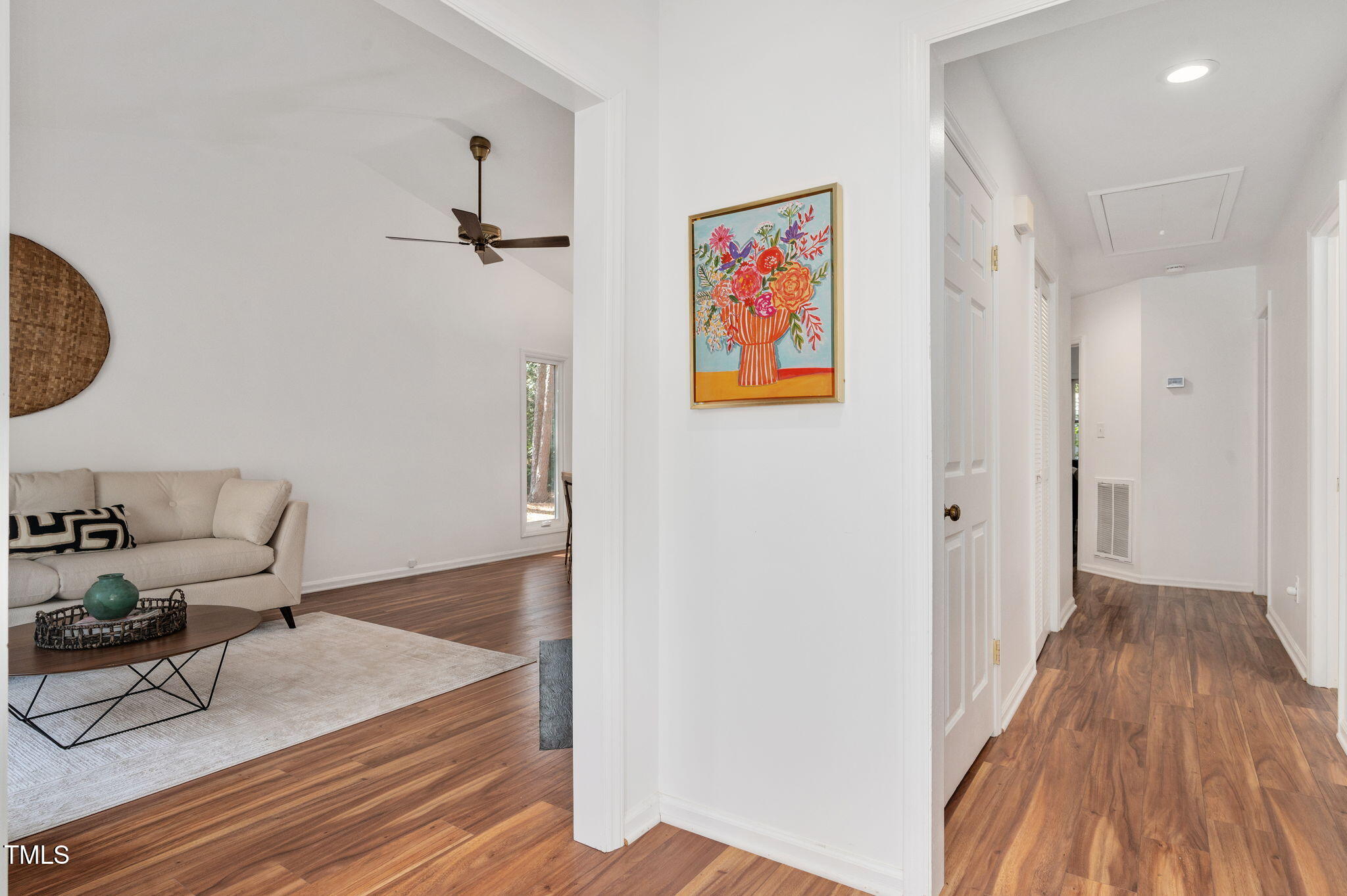 Open and spacious townhome in Summerfield Crossing offers easy single-story living close to everything Chapel Hill has to offer. This well-designed end unit features soaring ceilings in the living and dining rooms, perfect for gathering, plus a comfortable 3 bedroom, 2 bath layout. Many upgrades in recent years: remodeled primary en suite bathroom with walk-in shower (renovation by Buckley Construction); new flooring installed throughout; popcorn ceilings removed and interior fully repainted; new casement windows in living room, dining room, kitchen and one of the bedrooms; new refrigerator, microwave and stainless steel Kraus sink; new recessed lighting and more. Concept plans for renovating the kitchen were prepared (four different options) and are included in the purchase price. Refrigerator and washer/dryer convey. Wired for Google Fiber (modem/router do not convey). Highly rated Chapel Hill schools. Close to so many amenities -- Booker Creek Trail, Eastgate Shopping Center (Trader Joes, Aldi, Guglhupf, Shake Shack, Snooze, and many more!), Whole Foods, Franklin Street, CH Public Library, plus easy highway access to UNC, Durham, Raleigh, etc. HOA fee covers, among other things, maintenance and repair of exterior siding, gutters and roof so you don't have to deal with those, Wonderful comfort and convenience, all for under $375,000. Don't wait on this one!