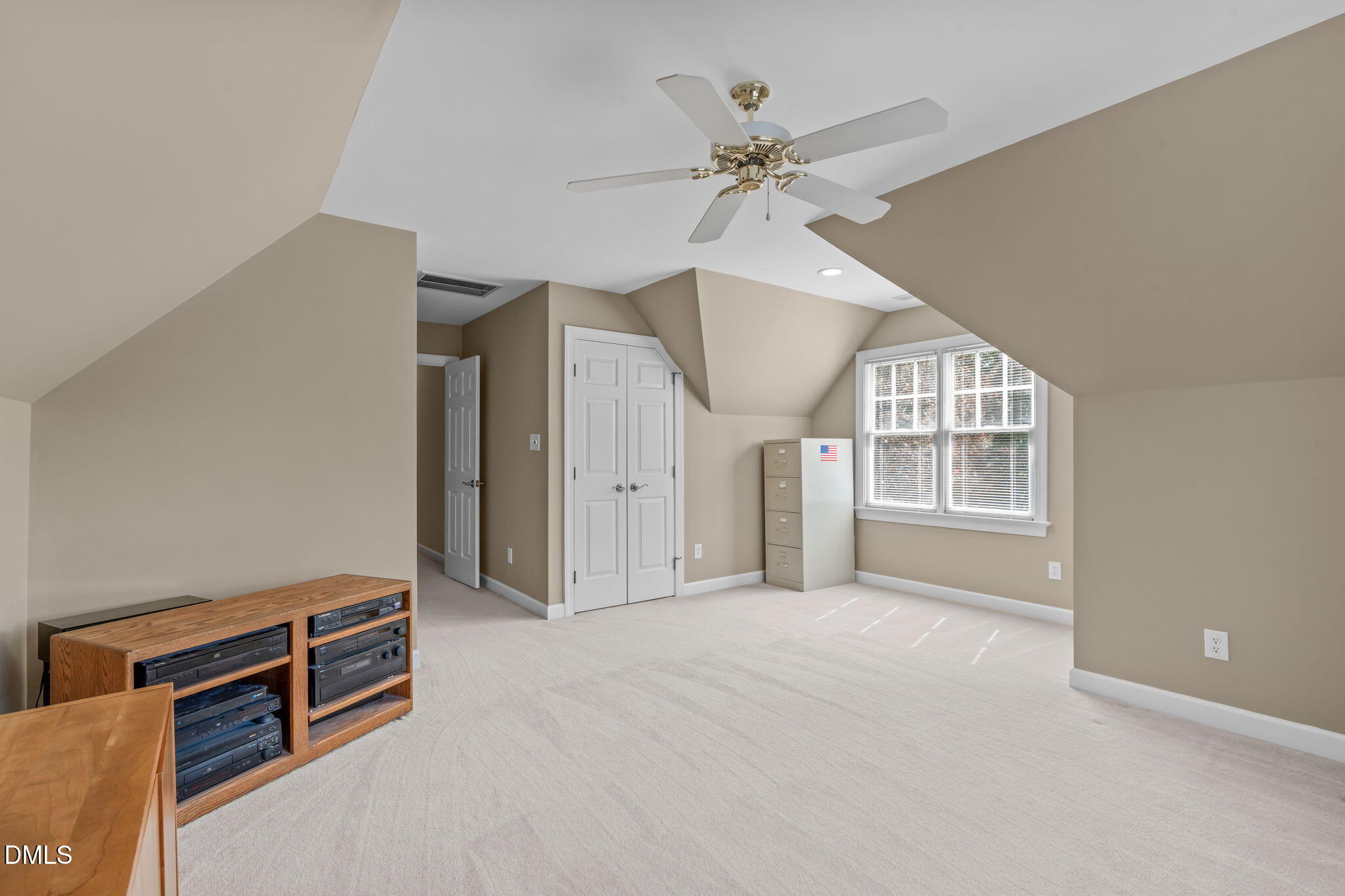 Upstairs, the primary suite includes a walk in closet and an upgraded bath with a tile shower, dual granite vanity, jetted soaking tub, and a private water closet. Three additional bedrooms provide plenty of flexibility for family, guests, or a home office. The finished third floor is perfect for a game room, TV room, or a dedicated work from home space, and also includes walk in attic storage.