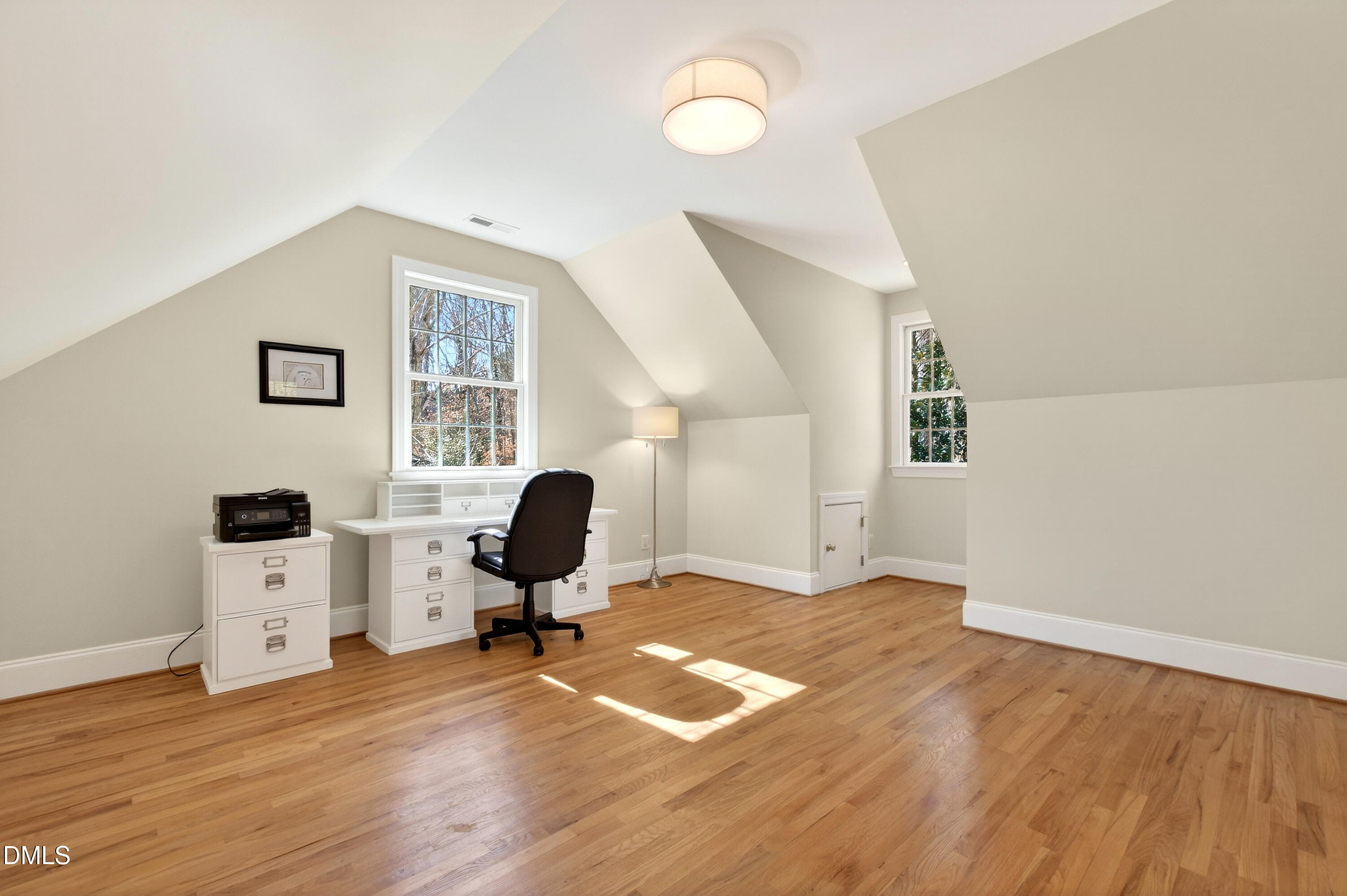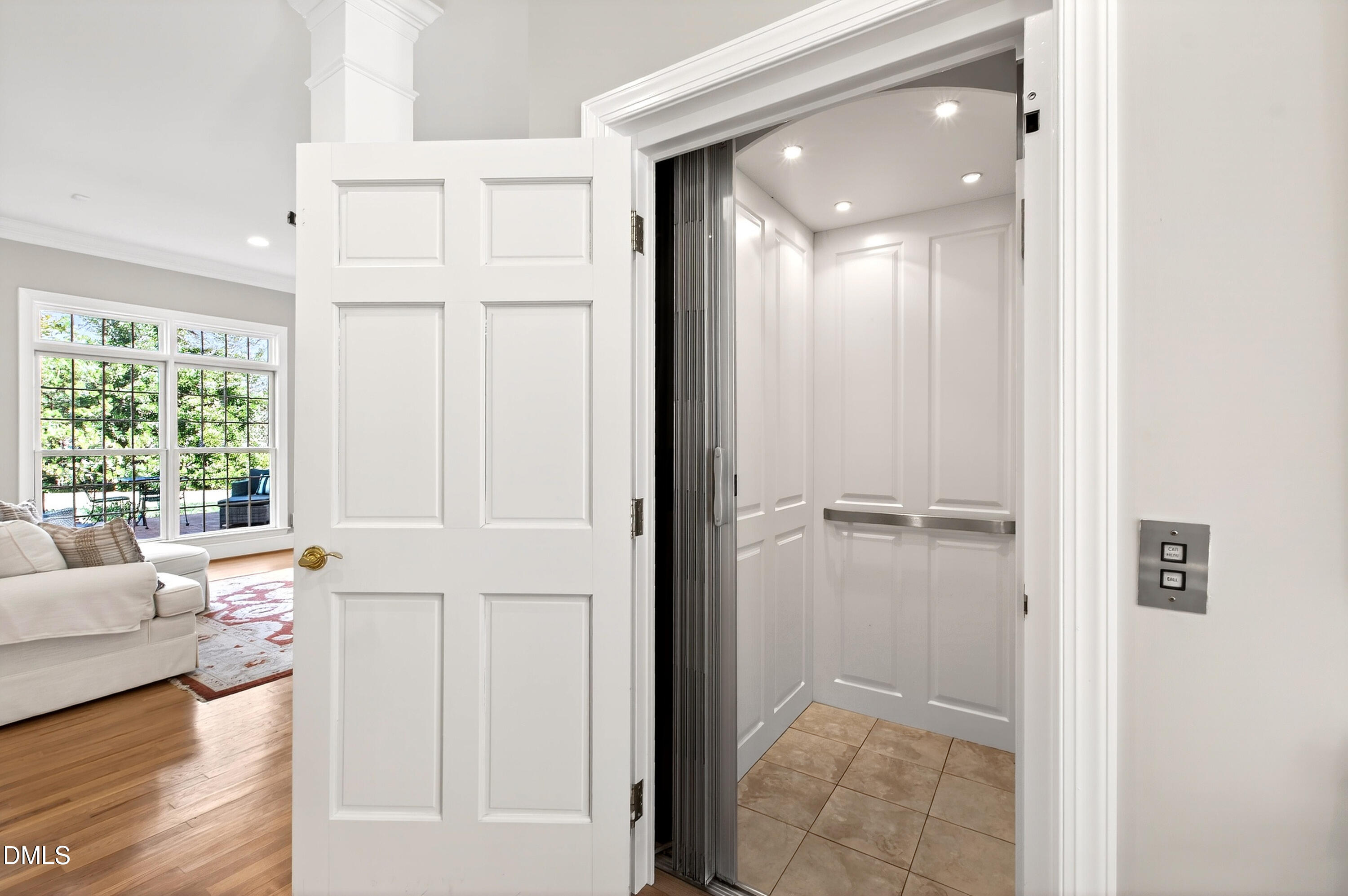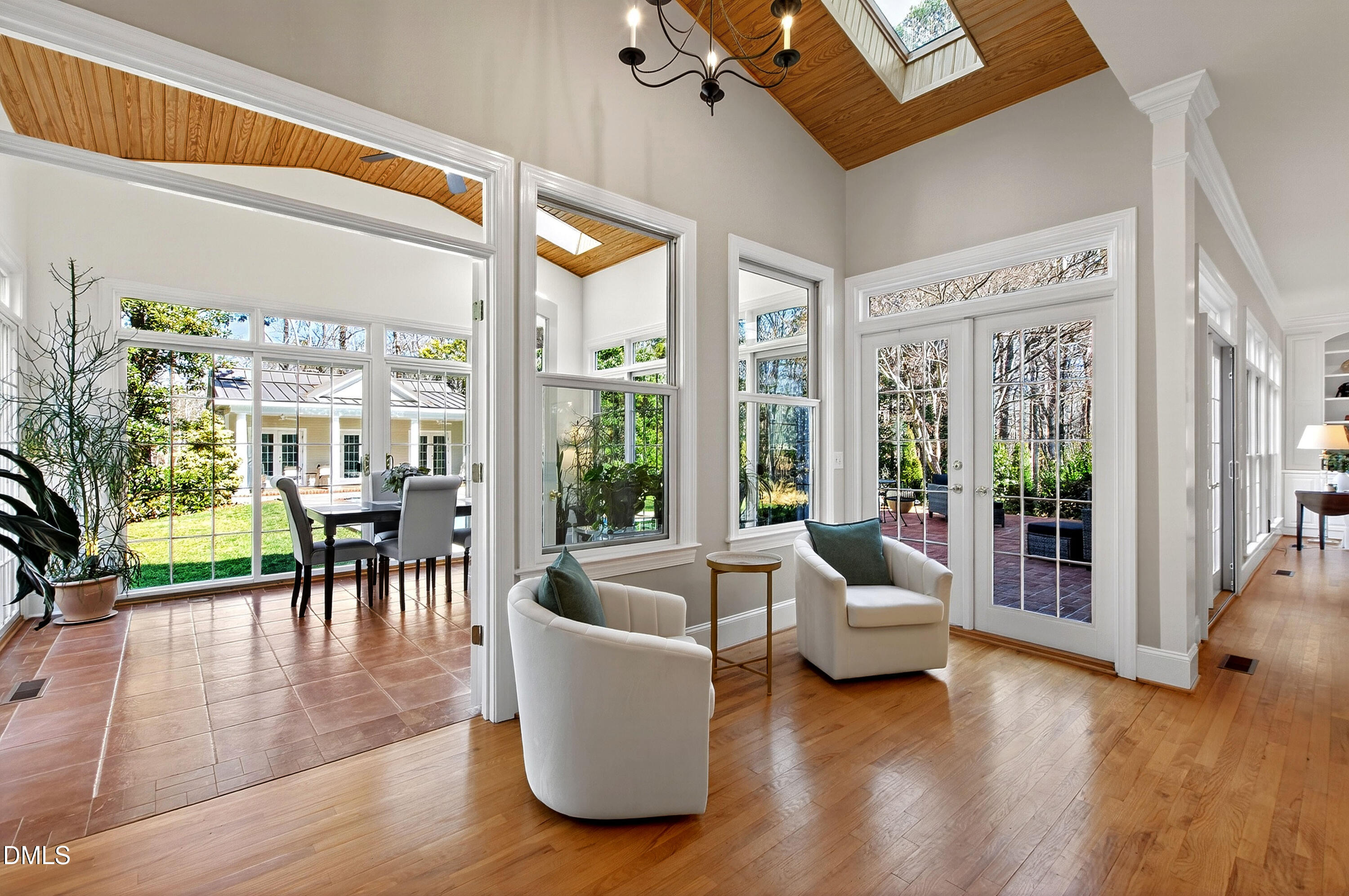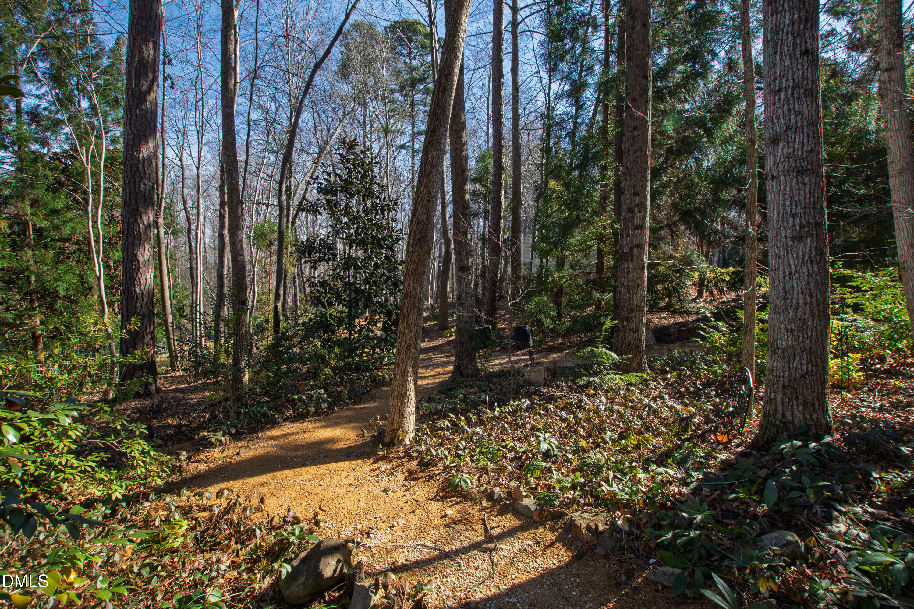 Designed by its owners with exceptional attention to proportion, flow, and architectural detail, the home balances quiet grandeur with warmth and livability. Expansive windows invite natural light throughout, framing serene woodland views and creating a seamless dialogue between interior elegance and the surrounding landscape. The setting feels tranquil and removed, yet remains moments from the very best of Chapel Hill.