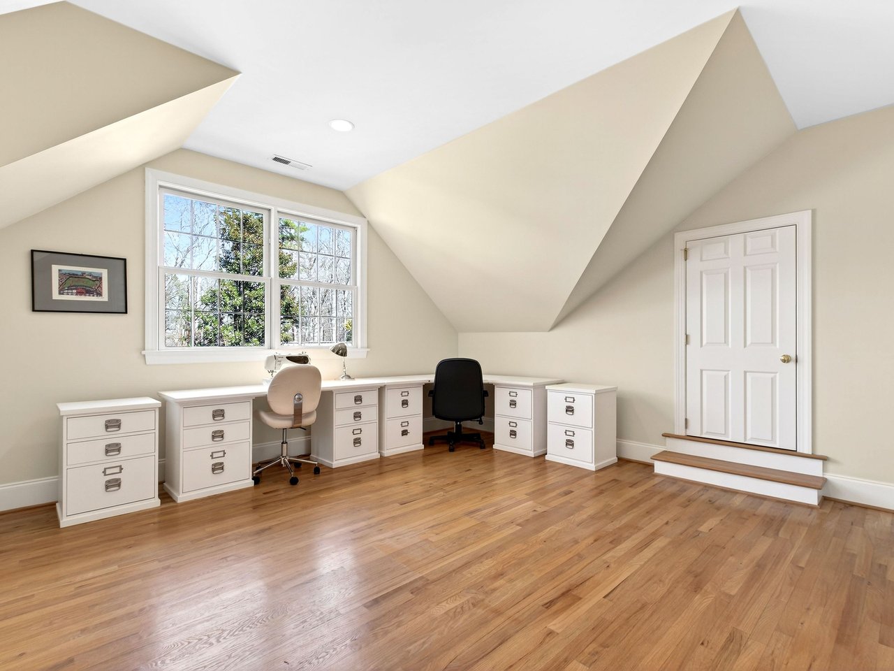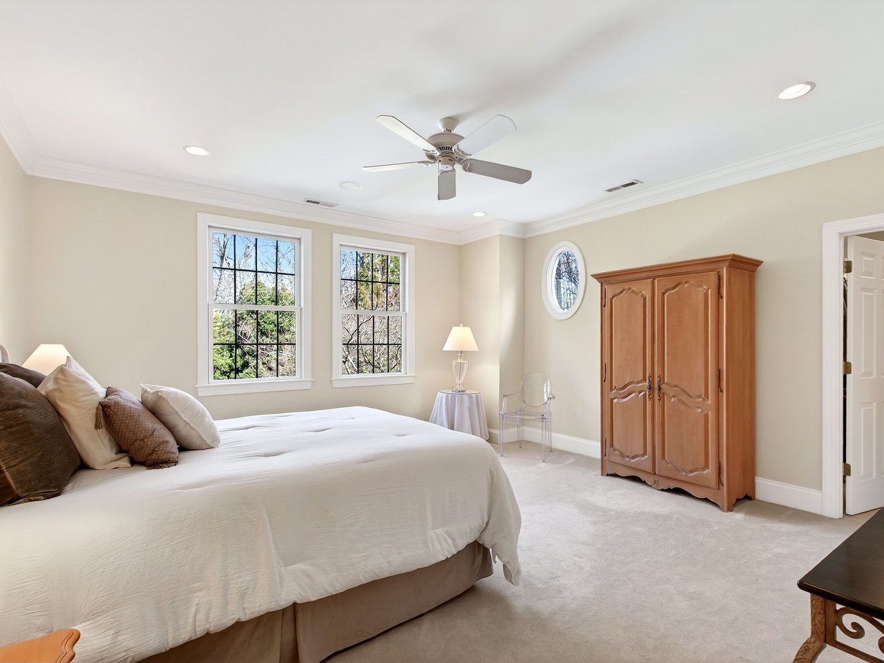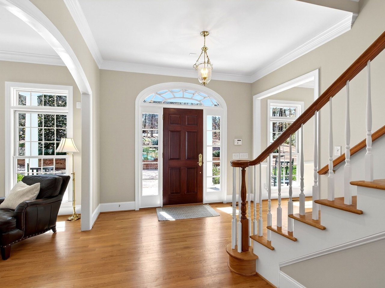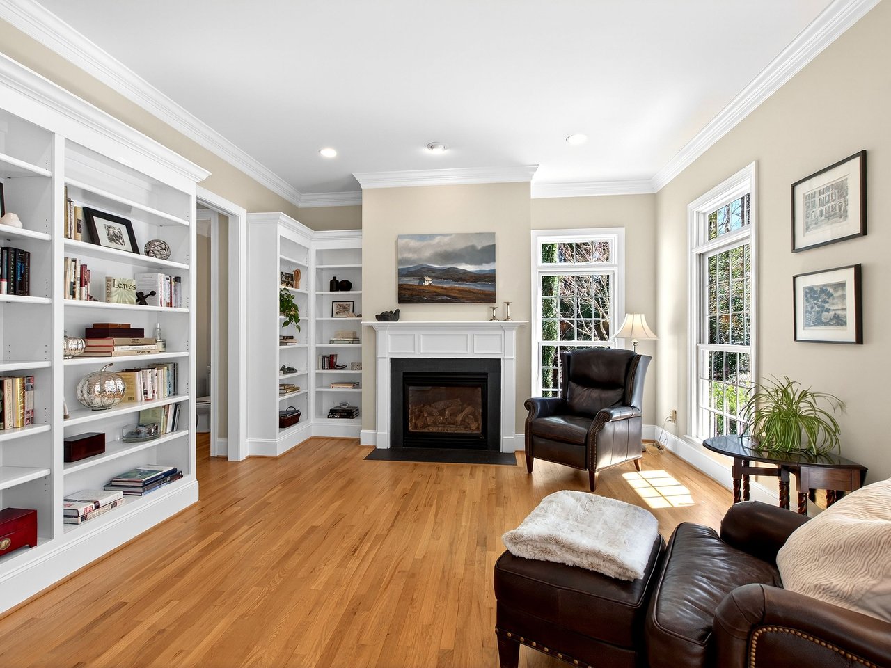 Privately positioned on over 1.6 acres within Chapel Hill's highly regarded The Reserve, and quietly tucked at the end of a peaceful cul-de-sac, this distinguished custom residence offers nearly 7,700 square feet of beautifully considered living across three refined levels, providing both privacy and a true sense of retreat. Designed by its owners with exceptional attention to proportion, flow, and architectural detail, the home balances quiet grandeur with warmth and livability. Expansive windows invite natural light throughout, framing serene woodland views and creating a seamless dialogue between interior elegance and the surrounding landscape. The setting feels tranquil and removed, yet remains moments from the very best of Chapel Hill. The principal suite is thoughtfully situated on the main level, allowing for sophisticated first-floor living. Formal entertaining rooms are gracefully composed, while a richly appointed library offers a more intimate retreat. Every space has been curated to feel elevated, welcoming, and entirely at ease. An exceptional collection of lifestyle amenities further distinguishes the residence, including a private cinema, games room, creative studio, executive offices, whole house generator and elevator access to all floors, ensuring both everyday convenience and long-term livability. Outdoors, the estate transforms into a private resort. A stunning pool and accompanying pool house create a sanctuary reminiscent of a boutique retreat, where summer afternoons unfold effortlessly and evenings are designed for gathering beneath the Carolina sky. The cul-de-sac location enhances the sense of calm, offering a quiet and peaceful environment rarely found at this scale. Beyond the main residence, a charming guest house and separate temperature-controlled studio provide remarkable flexibility for extended family, visitors, or independent work arrangements. Immaculately presented and complete with a three-car garage, this residence exudes quiet confidence. It offers scale, privacy, resort-caliber amenities, and enduring quality in one of Chapel Hill's most established and desirable communities.