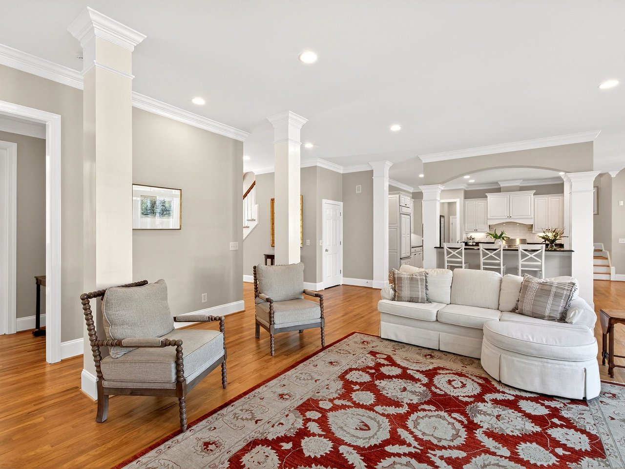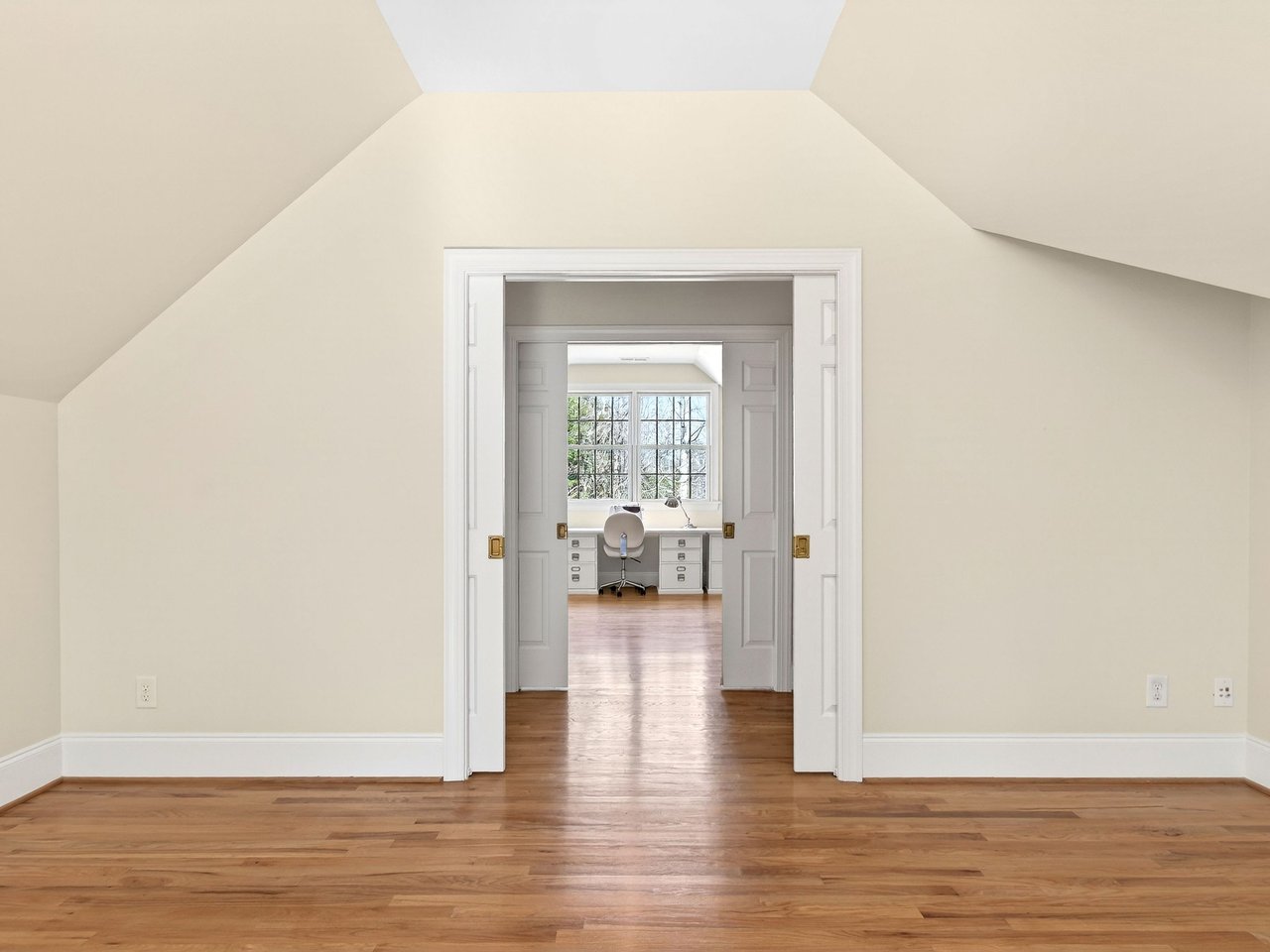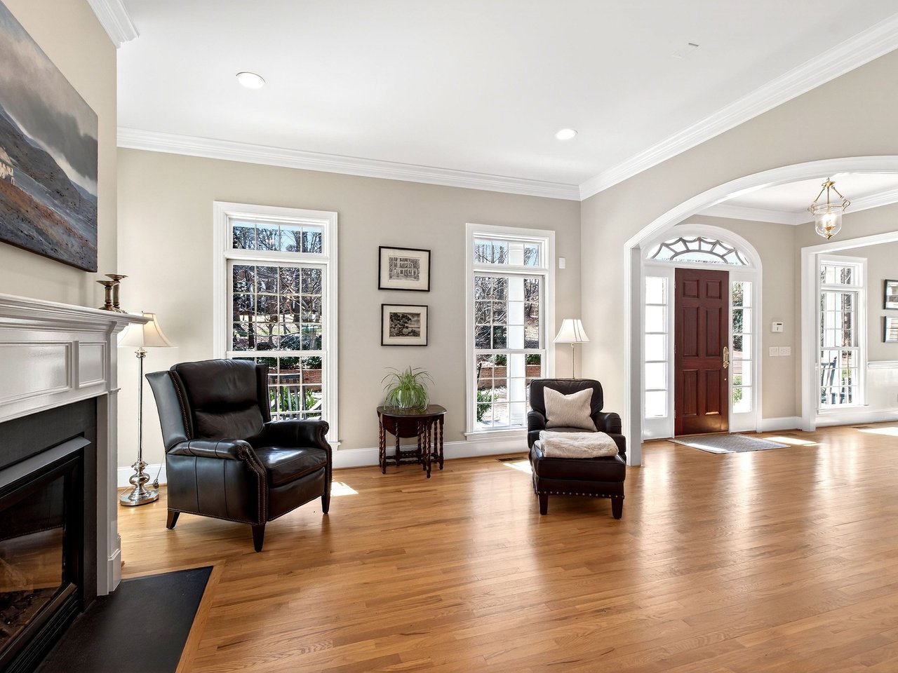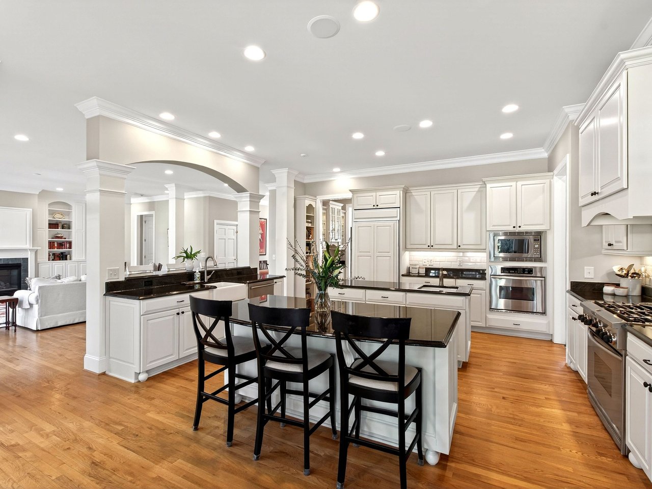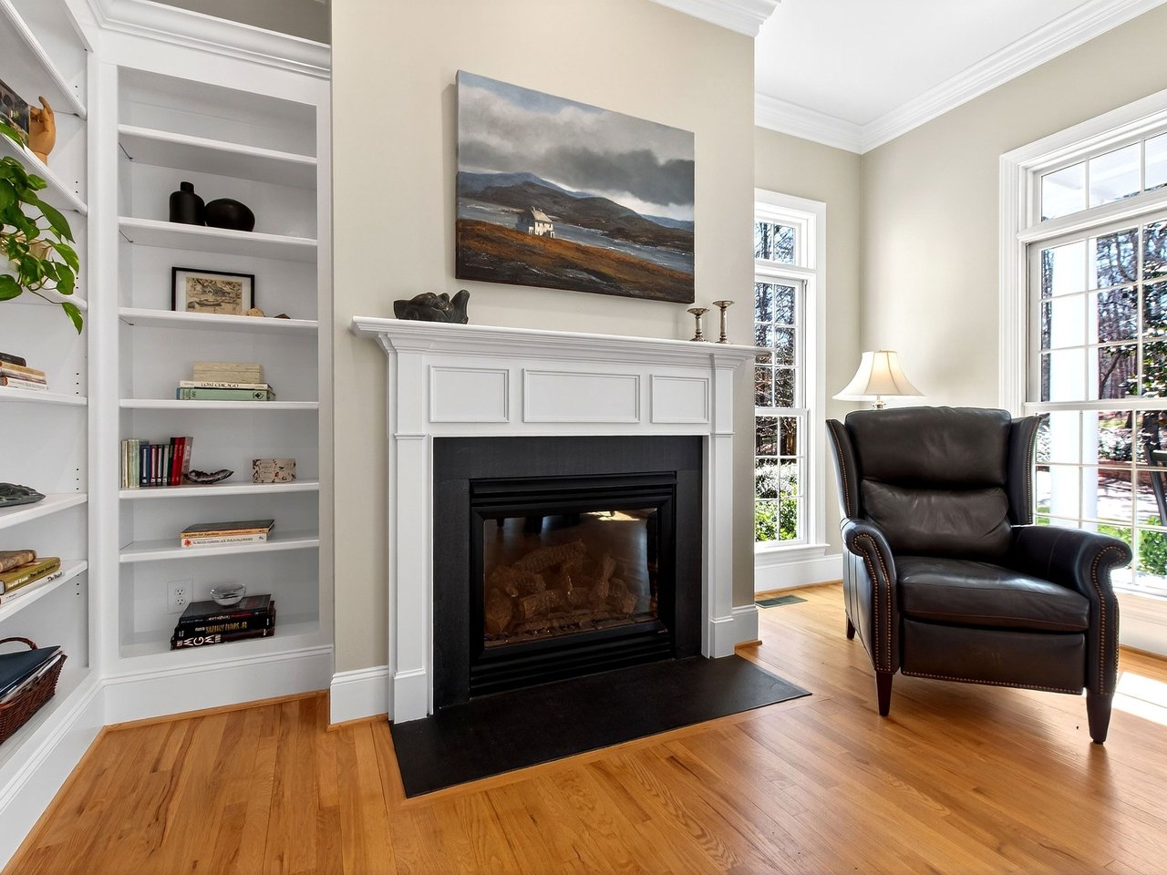 Privately positioned on over 1.6 acres within Chapel Hill's highly regarded The Reserve, and quietly tucked at the end of a peaceful cul-de-sac, this distinguished custom residence offers nearly 7,700 square feet of beautifully considered living across three refined levels, providing both privacy and a true sense of retreat. Designed by its owners with exceptional attention to proportion, flow, and architectural detail, the home balances quiet grandeur with warmth and livability. Expansive windows invite natural light throughout, framing serene woodland views and creating a seamless dialogue between interior elegance and the surrounding landscape. The setting feels tranquil and removed, yet remains moments from the very best of Chapel Hill. The principal suite is thoughtfully situated on the main level, allowing for sophisticated first-floor living. Formal entertaining rooms are gracefully composed, while a richly appointed library offers a more intimate retreat. Every space has been curated to feel elevated, welcoming, and entirely at ease. An exceptional collection of lifestyle amenities further distinguishes the residence, including a private cinema, games room, creative studio, executive offices, whole house generator and elevator access to all floors, ensuring both everyday convenience and long-term livability. Outdoors, the estate transforms into a private resort. A stunning pool and accompanying pool house create a sanctuary reminiscent of a boutique retreat, where summer afternoons unfold effortlessly and evenings are designed for gathering beneath the Carolina sky. The cul-de-sac location enhances the sense of calm, offering a quiet and peaceful environment rarely found at this scale. Beyond the main residence, a charming guest house and separate temperature-controlled studio provide remarkable flexibility for extended family, visitors, or independent work arrangements. Immaculately presented and complete with a three-car garage, this residence exudes quiet confidence. It offers scale, privacy, resort-caliber amenities, and enduring quality in one of Chapel Hill's most established and desirable communities.