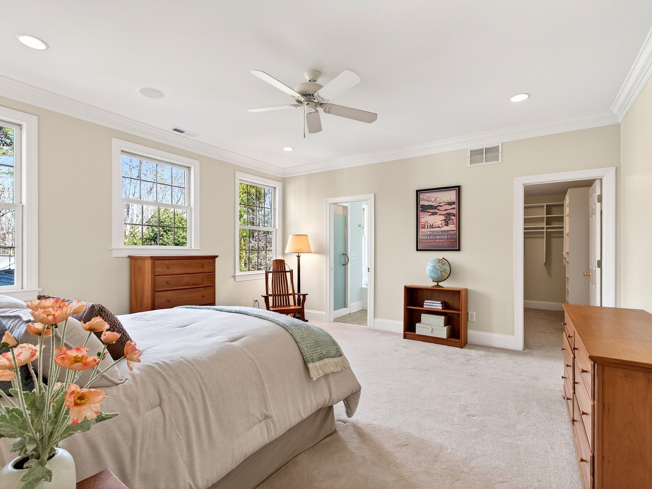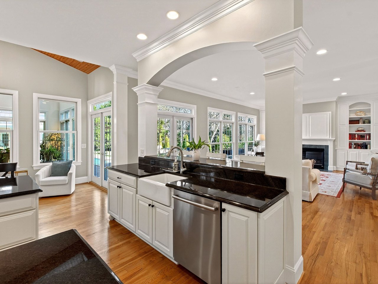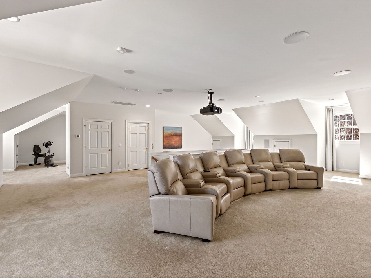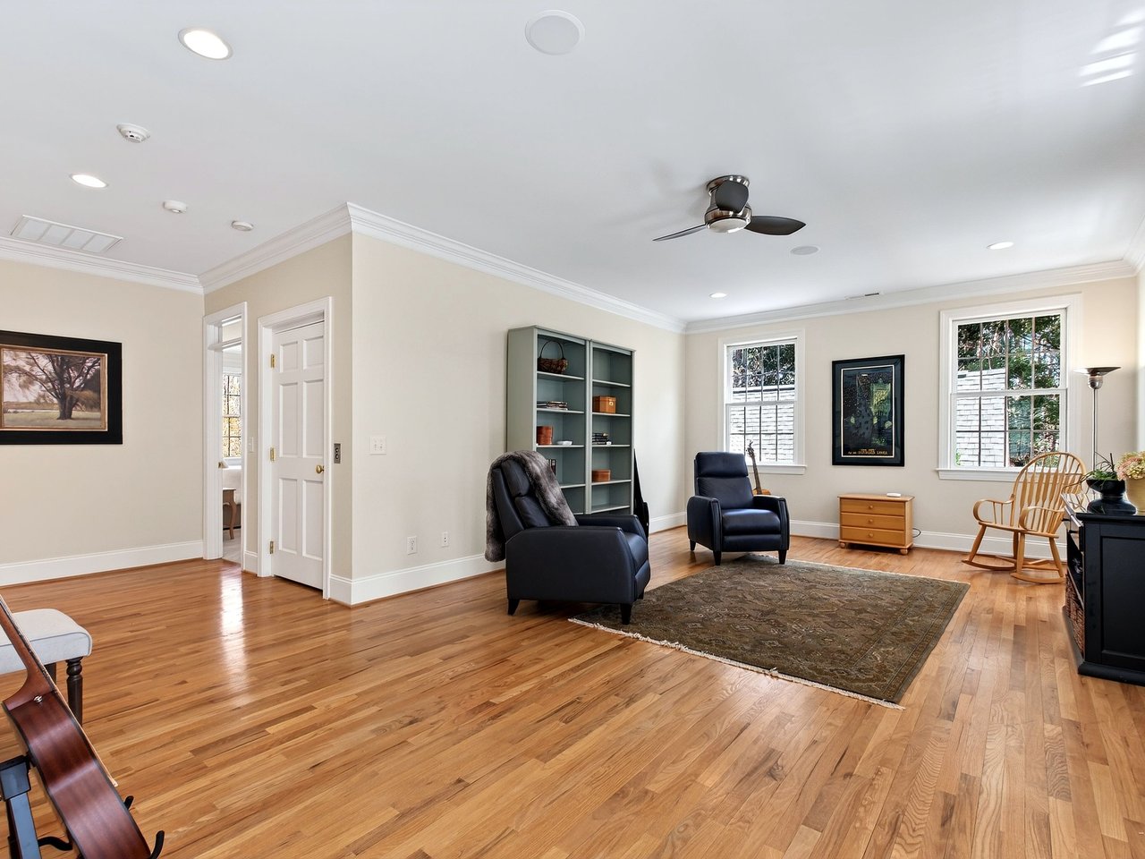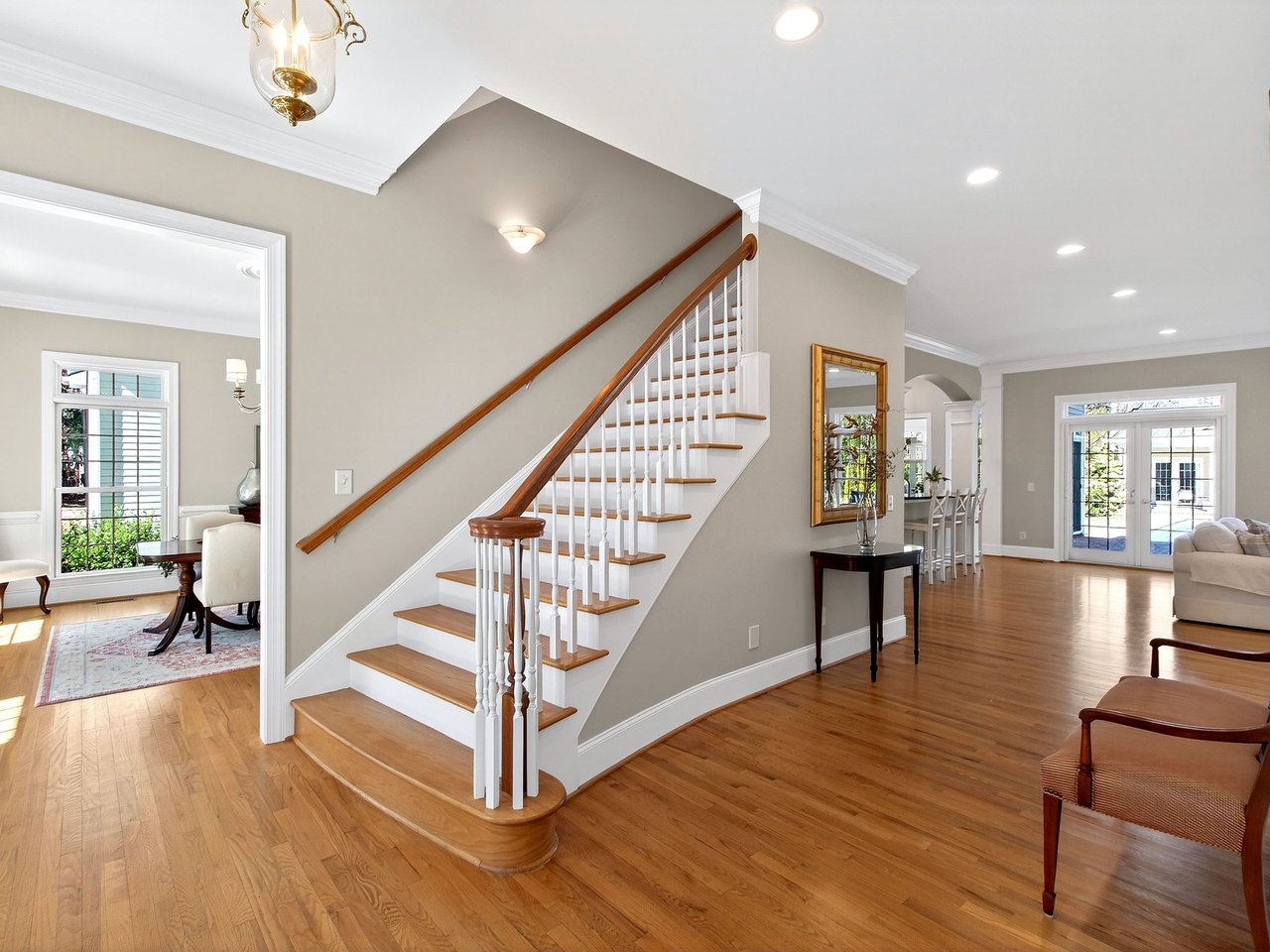 Privately positioned on over 1.6 acres within Chapel Hill's highly regarded The Reserve, and quietly tucked at the end of a peaceful cul-de-sac, this distinguished custom residence offers nearly 7,700 square feet of beautifully considered living across three refined levels, providing both privacy and a true sense of retreat. Designed by its owners with exceptional attention to proportion, flow, and architectural detail, the home balances quiet grandeur with warmth and livability. Expansive windows invite natural light throughout, framing serene woodland views and creating a seamless dialogue between interior elegance and the surrounding landscape. The setting feels tranquil and removed, yet remains moments from the very best of Chapel Hill. The principal suite is thoughtfully situated on the main level, allowing for sophisticated first-floor living. Formal entertaining rooms are gracefully composed, while a richly appointed library offers a more intimate retreat. Every space has been curated to feel elevated, welcoming, and entirely at ease. An exceptional collection of lifestyle amenities further distinguishes the residence, including a private cinema, games room, creative studio, executive offices, whole house generator and elevator access to all floors, ensuring both everyday convenience and long-term livability. Outdoors, the estate transforms into a private resort. A stunning pool and accompanying pool house create a sanctuary reminiscent of a boutique retreat, where summer afternoons unfold effortlessly and evenings are designed for gathering beneath the Carolina sky. The cul-de-sac location enhances the sense of calm, offering a quiet and peaceful environment rarely found at this scale. Beyond the main residence, a charming guest house and separate temperature-controlled studio provide remarkable flexibility for extended family, visitors, or independent work arrangements. Immaculately presented and complete with a three-car garage, this residence exudes quiet confidence. It offers scale, privacy, resort-caliber amenities, and enduring quality in one of Chapel Hill's most established and desirable communities.