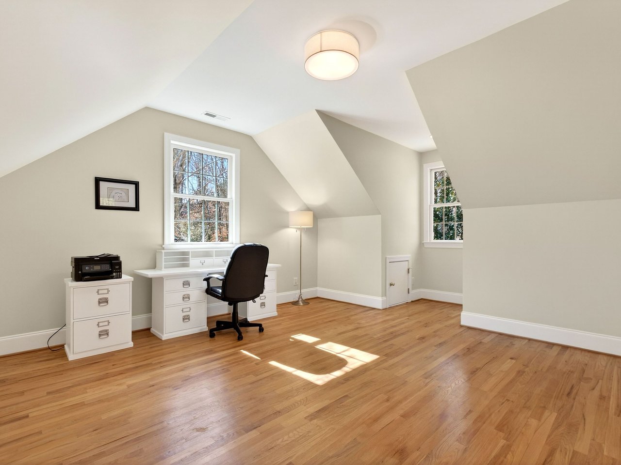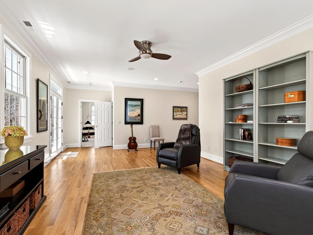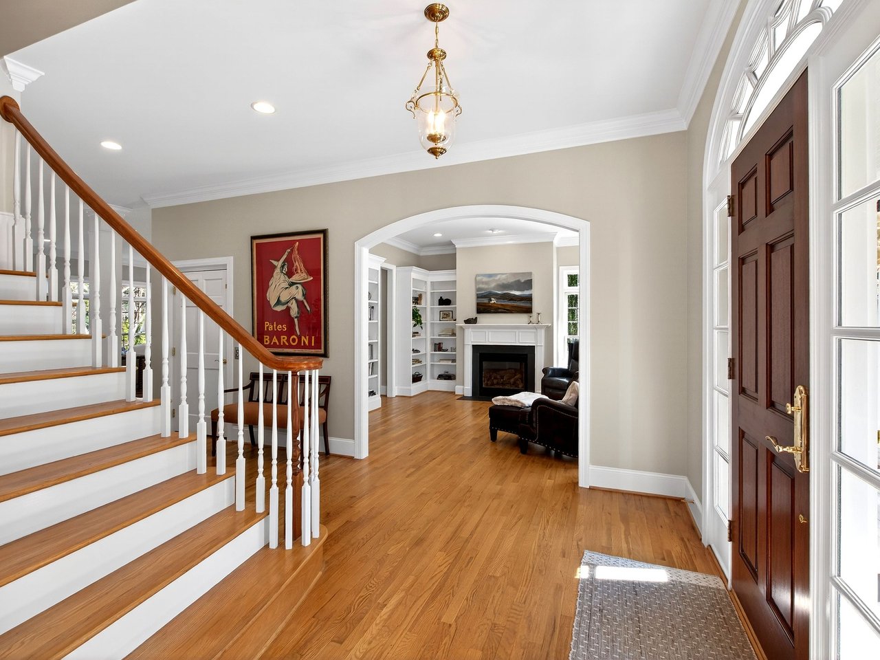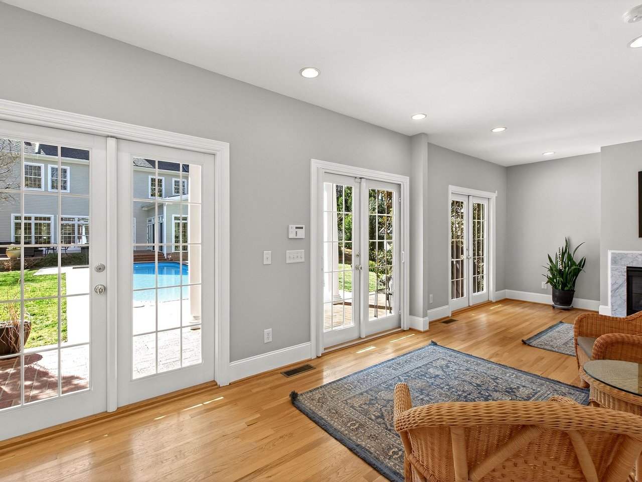 Privately positioned on over 1.6 acres within Chapel Hill's highly regarded The Reserve, and quietly tucked at the end of a peaceful cul-de-sac, this distinguished custom residence offers nearly 7,700 square feet of beautifully considered living across three refined levels, providing both privacy and a true sense of retreat. Designed by its owners with exceptional attention to proportion, flow, and architectural detail, the home balances quiet grandeur with warmth and livability. Expansive windows invite natural light throughout, framing serene woodland views and creating a seamless dialogue between interior elegance and the surrounding landscape. The setting feels tranquil and removed, yet remains moments from the very best of Chapel Hill. The principal suite is thoughtfully situated on the main level, allowing for sophisticated first-floor living. Formal entertaining rooms are gracefully composed, while a richly appointed library offers a more intimate retreat. Every space has been curated to feel elevated, welcoming, and entirely at ease. An exceptional collection of lifestyle amenities further distinguishes the residence, including a private cinema, games room, creative studio, executive offices, whole house generator and elevator access to all floors, ensuring both everyday convenience and long-term livability. Outdoors, the estate transforms into a private resort. A stunning pool and accompanying pool house create a sanctuary reminiscent of a boutique retreat, where summer afternoons unfold effortlessly and evenings are designed for gathering beneath the Carolina sky. The cul-de-sac location enhances the sense of calm, offering a quiet and peaceful environment rarely found at this scale. Beyond the main residence, a charming guest house and separate temperature-controlled studio provide remarkable flexibility for extended family, visitors, or independent work arrangements. Immaculately presented and complete with a three-car garage, this residence exudes quiet confidence. It offers scale, privacy, resort-caliber amenities, and enduring quality in one of Chapel Hill's most established and desirable communities.