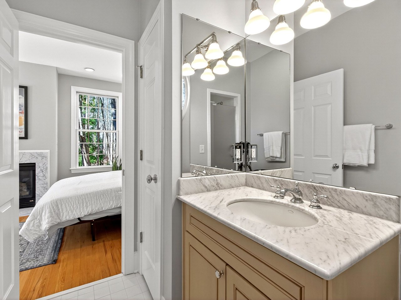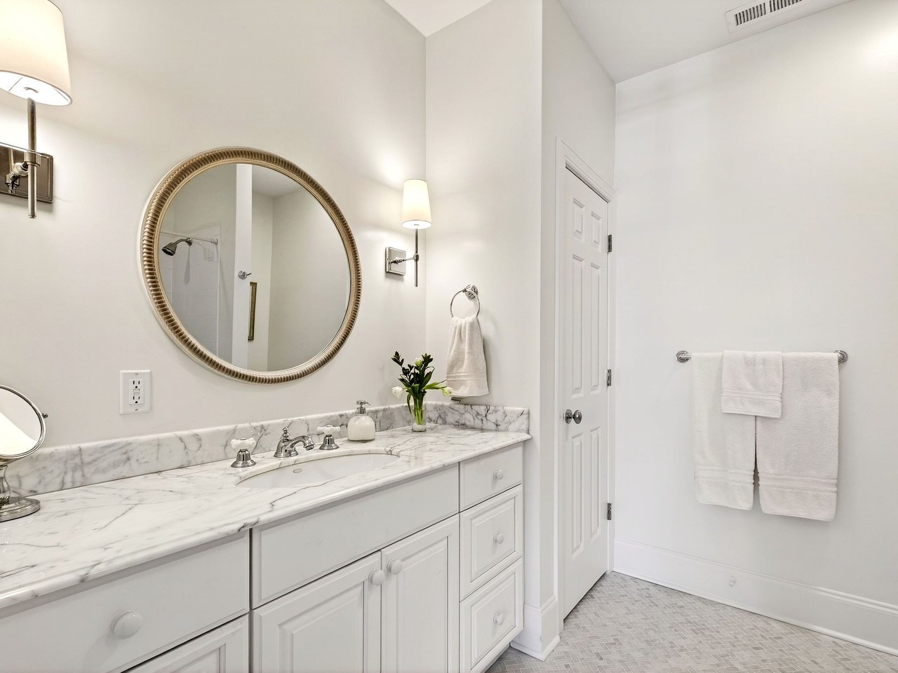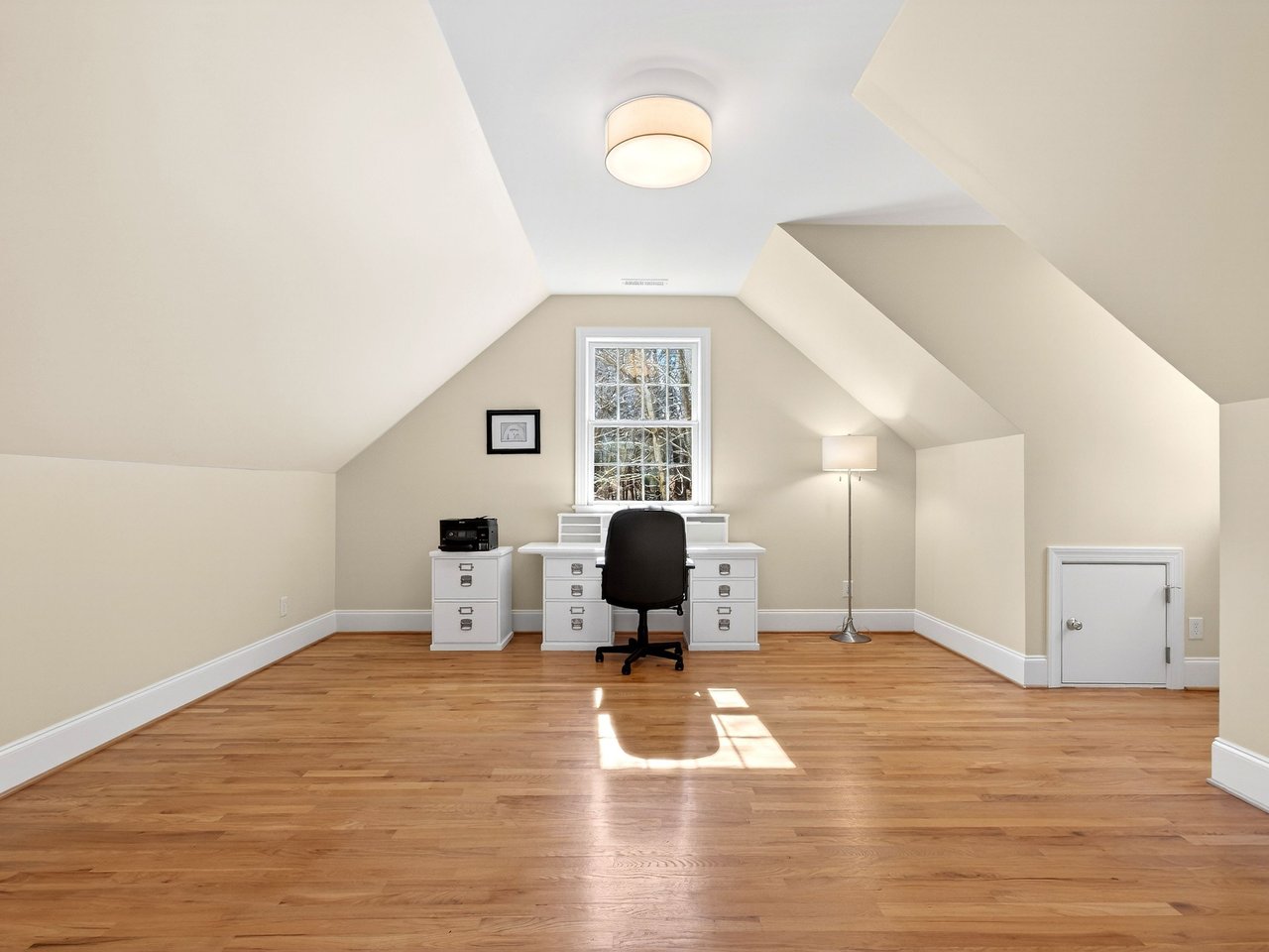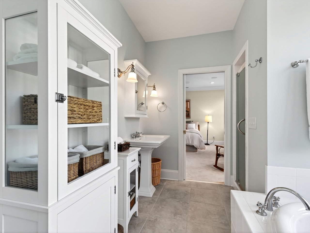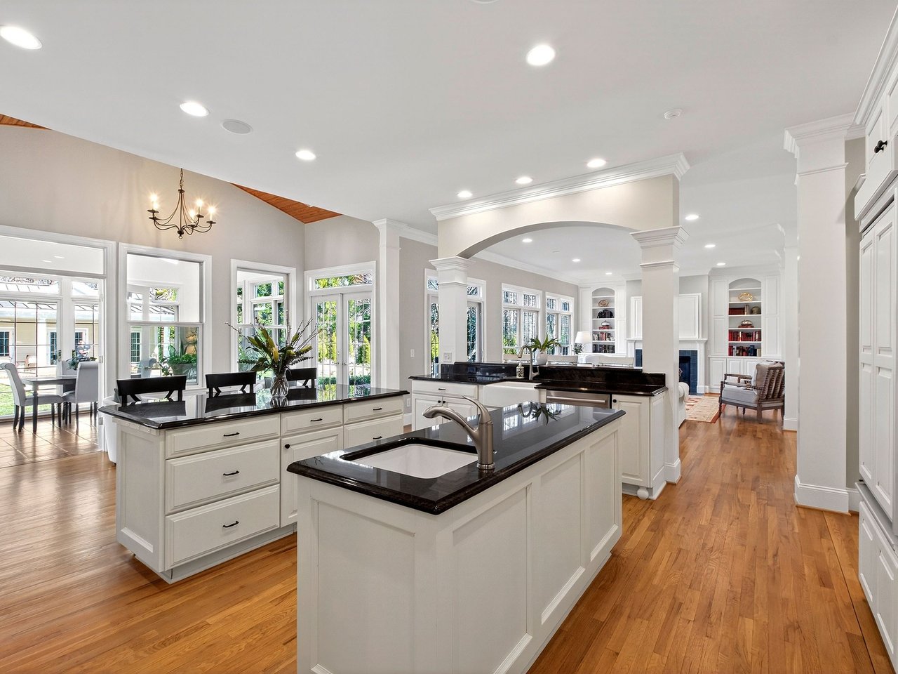 Privately positioned on over 1.6 acres within Chapel Hill's highly regarded The Reserve, and quietly tucked at the end of a peaceful cul-de-sac, this distinguished custom residence offers nearly 7,700 square feet of beautifully considered living across three refined levels, providing both privacy and a true sense of retreat. Designed by its owners with exceptional attention to proportion, flow, and architectural detail, the home balances quiet grandeur with warmth and livability. Expansive windows invite natural light throughout, framing serene woodland views and creating a seamless dialogue between interior elegance and the surrounding landscape. The setting feels tranquil and removed, yet remains moments from the very best of Chapel Hill. The principal suite is thoughtfully situated on the main level, allowing for sophisticated first-floor living. Formal entertaining rooms are gracefully composed, while a richly appointed library offers a more intimate retreat. Every space has been curated to feel elevated, welcoming, and entirely at ease. An exceptional collection of lifestyle amenities further distinguishes the residence, including a private cinema, games room, creative studio, executive offices, whole house generator and elevator access to all floors, ensuring both everyday convenience and long-term livability. Outdoors, the estate transforms into a private resort. A stunning pool and accompanying pool house create a sanctuary reminiscent of a boutique retreat, where summer afternoons unfold effortlessly and evenings are designed for gathering beneath the Carolina sky. The cul-de-sac location enhances the sense of calm, offering a quiet and peaceful environment rarely found at this scale. Beyond the main residence, a charming guest house and separate temperature-controlled studio provide remarkable flexibility for extended family, visitors, or independent work arrangements. Immaculately presented and complete with a three-car garage, this residence exudes quiet confidence. It offers scale, privacy, resort-caliber amenities, and enduring quality in one of Chapel Hill's most established and desirable communities.