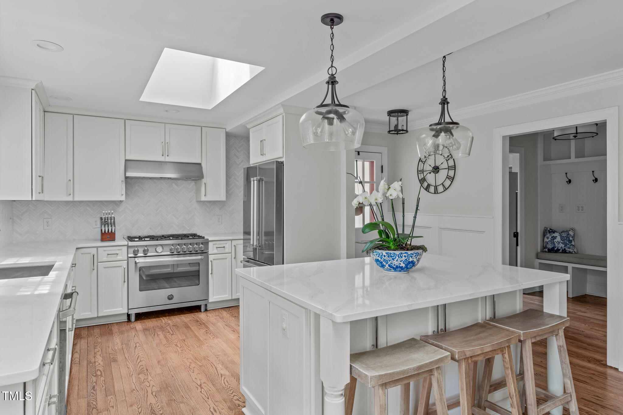 Searching for a home that embodies classic ITB charm with a modern twist? Look no further! This stunning all brick home is nestled in the Glen Eden neighborhood known for its highly-rated schools, mature trees, welcoming neighbors, and generations of Southern hospitality. Completely renovated in 2021, this home offers 4 spacious bedrooms, 3.5 baths, custom built-ins, garage, expansive front porch (2023), a picturesque backyard and outdoor living space perfect for entertaining. The gorgeous chef's kitchen offers Calcutta Gold quartz countertops, high-end Bertazzoni appliances, Italian marble backsplash, and a walk-in pantry. First-floor guest suite provides flexible living options with a low-entry shower. The primary bedroom has a stunning ensuite spa bathroom, modern-day walk-in closet space, and a double-door entry to the sunroom. The sunroom can serve as a private retreat, home office, plant studio, or yoga/pilates room! Perfectly situated near award-winning restaurants, shopping, entertainment, parks, and greenway trails. Close to UNC Rex Healthcare, PNC Arena (Canes), NC Museum of Art, and downtown Raleigh.