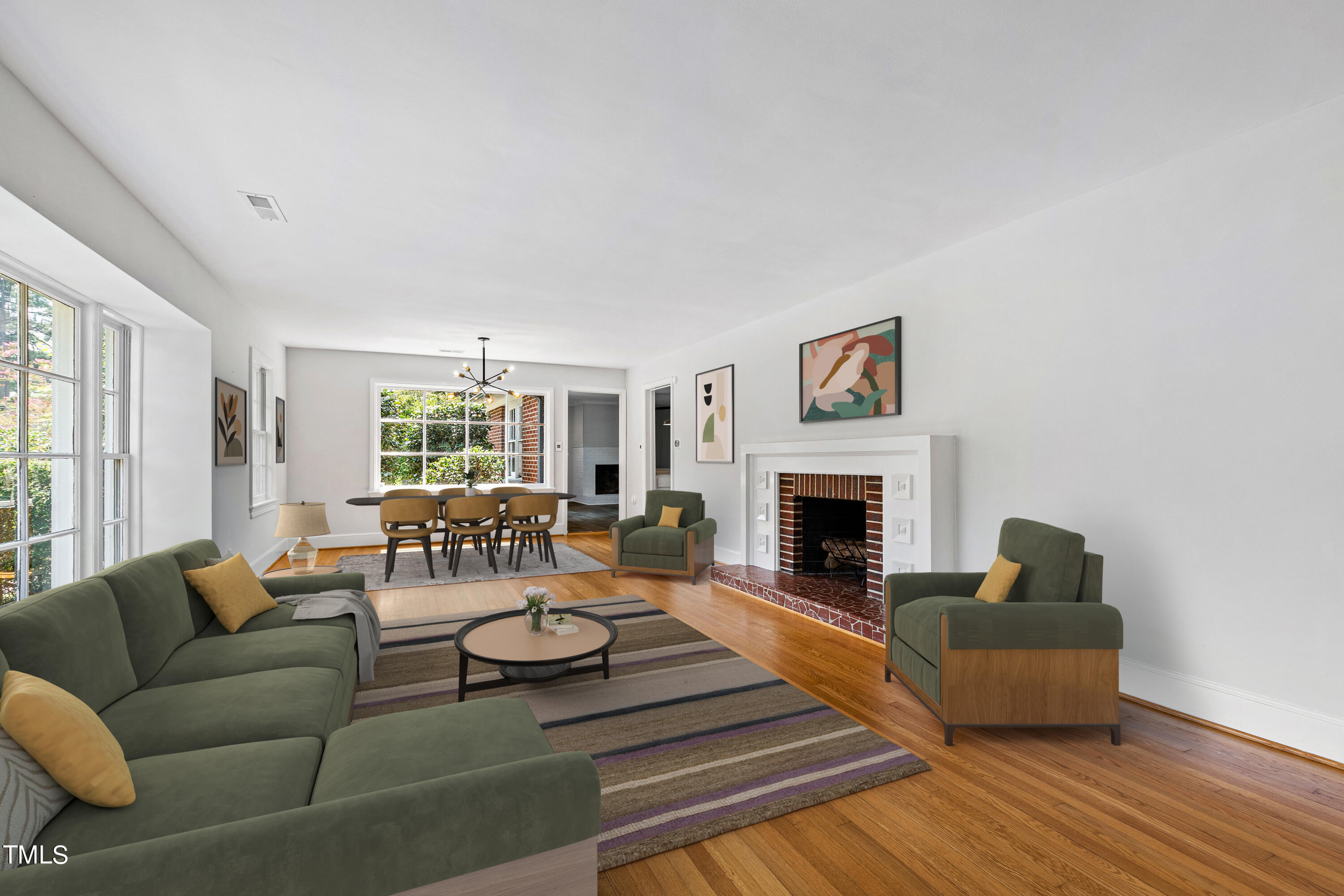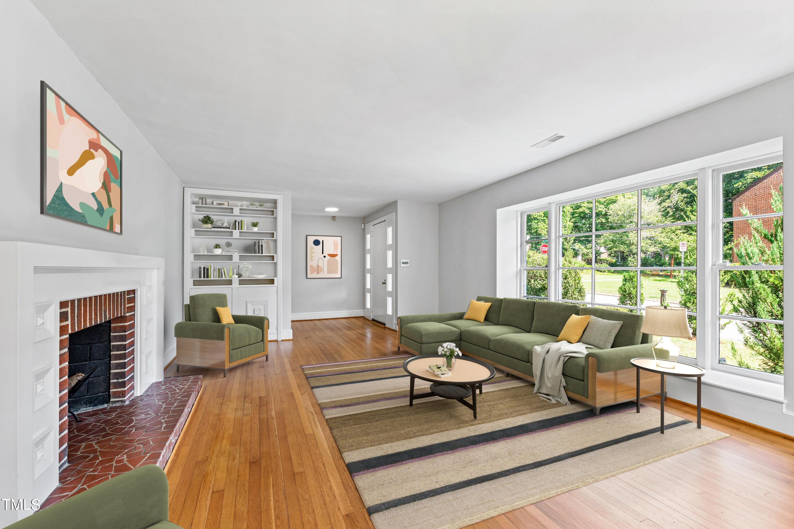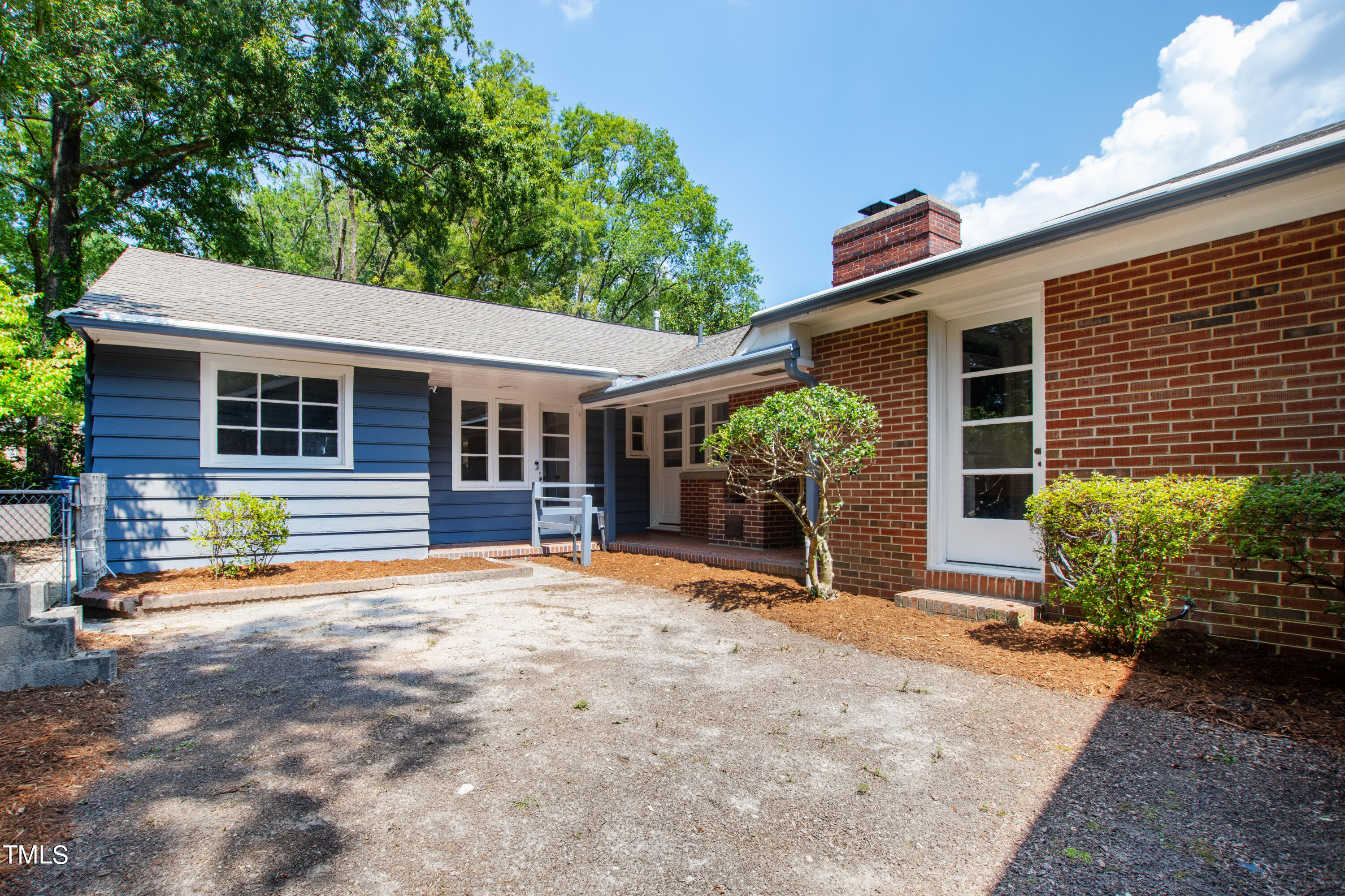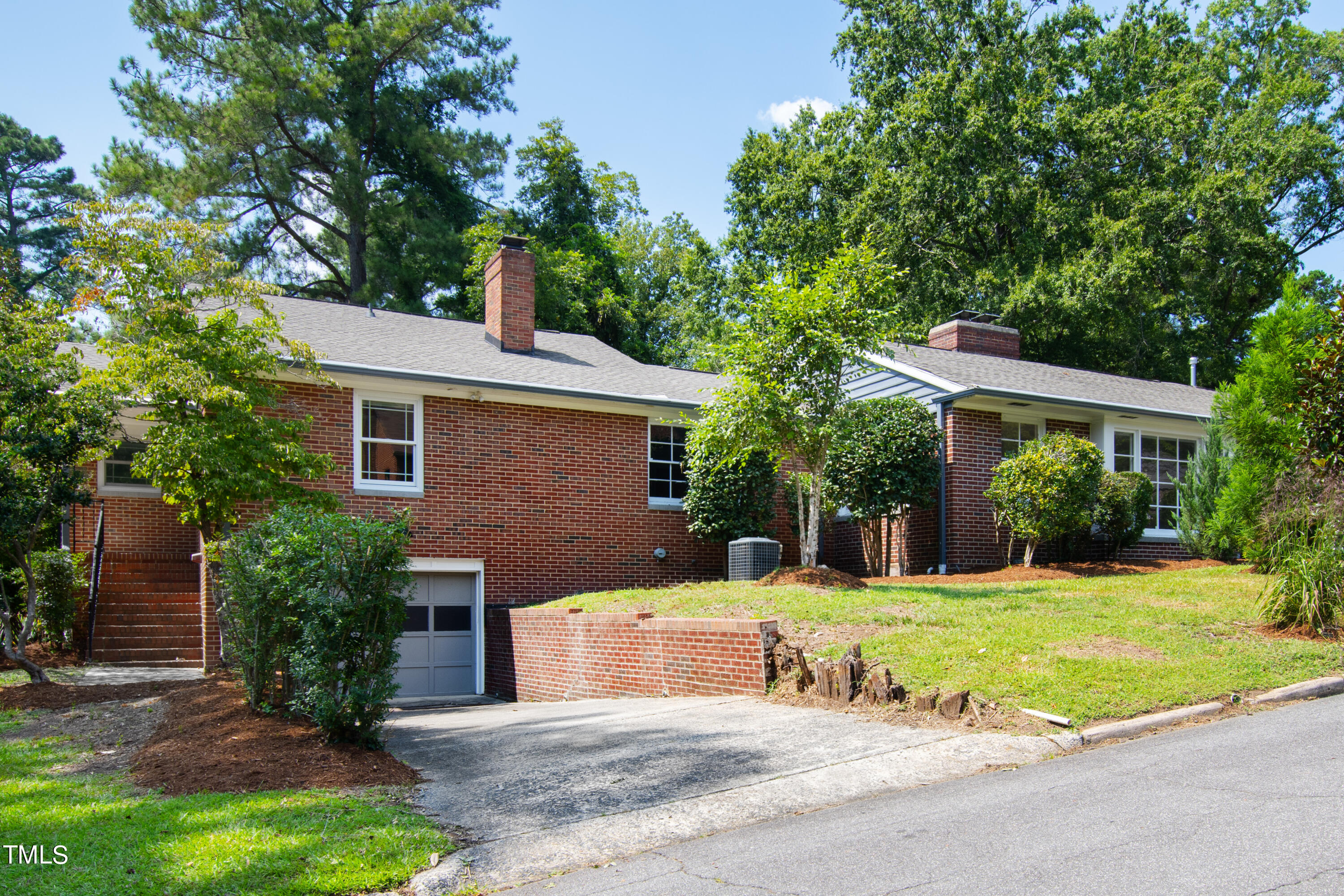 111 Hilton Ave. is a sprawling mid-century ranch that is centrally located, offering easy access to all of Durham. Built by an engineer in 1950, it has an East Wing-West Wing layout with two garages and two driveways, one on each side. Flexible and flowing, its five entrances and ample street parking make it ideal for a multi-generational home, a home-based business, or an investment property. Nestled between the walkable Rockwood and Lakewood neighborhoods, enjoy a 5-minute walk to Durham favorites like Nana's, Q-Shack, and the Boot Room or a 5-minute bike ride to Gugelhupf for brunch. DPAC and downtown are a 5-minute drive away, and you can be anywhere on the Duke University campus, including the Medical Center, in less than 10 minutes. Along with the exceptional convenience, its hillside, singular location on the block offers exceptional privacy, making it uniquely suited for a music studio or social gatherings. Inside, this 'Architects Special' features three ensuite bathrooms, original oak hardwood floors, two fireplaces and a large, unfinished basement offering endless possibilities for the design-oriented. Outside find an enclosed courtyard perfect for a jungle gym, a Zen Garden, or backyard fun with the pups!