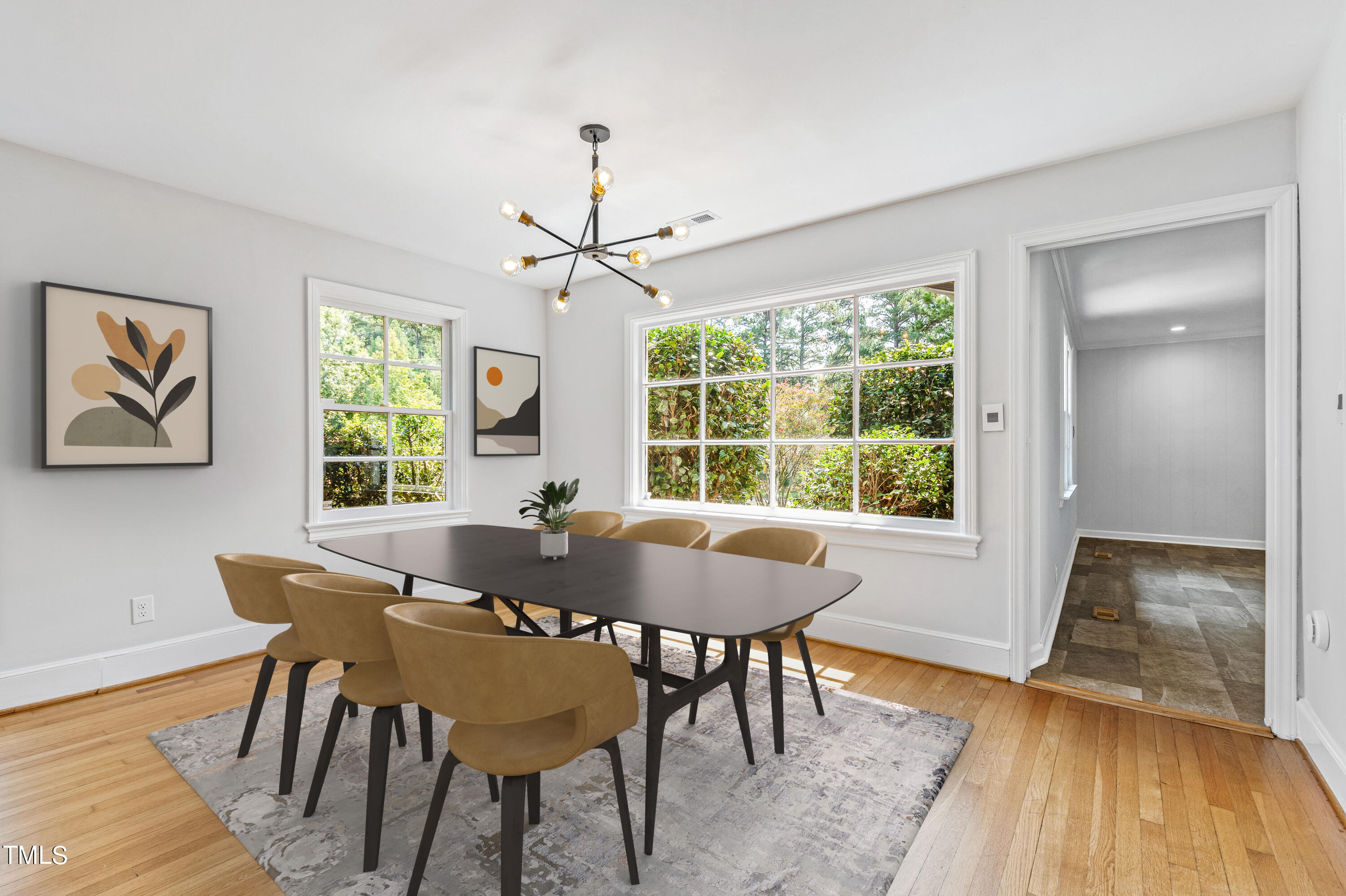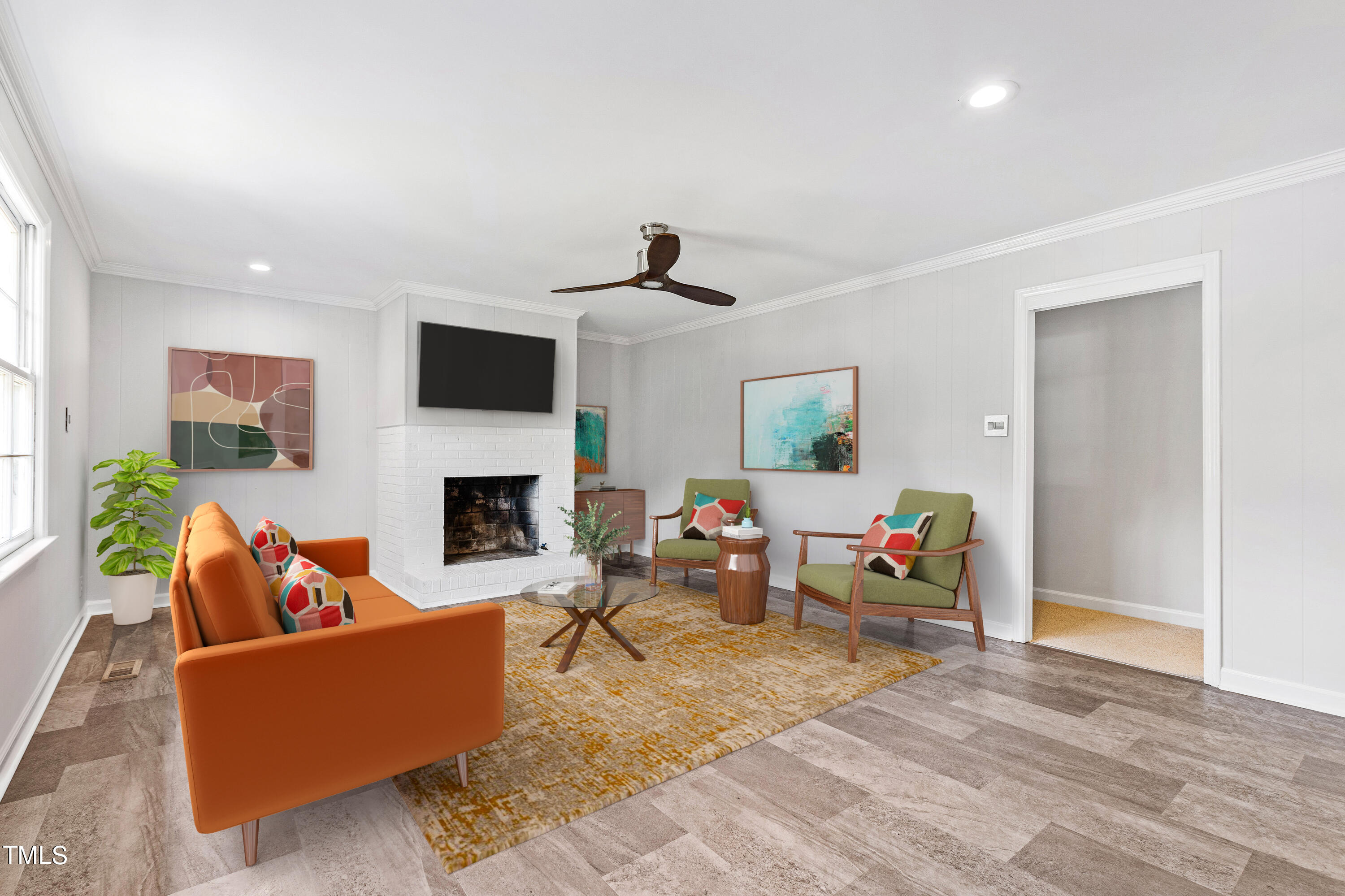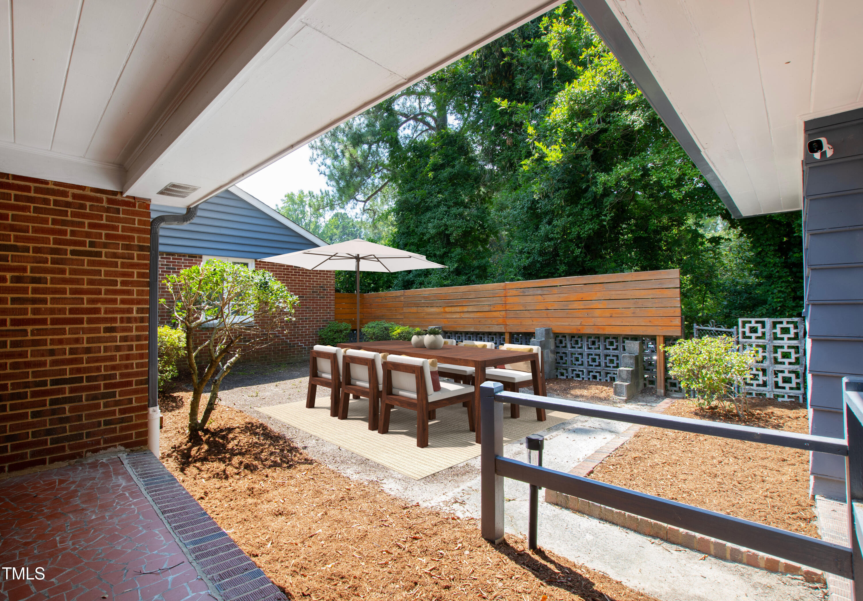 111 Hilton Ave. is a sprawling mid-century ranch that is centrally located, offering easy access to all of Durham. Built by an engineer in 1950, it has an East Wing-West Wing layout with two garages and two driveways, one on each side. Flexible and flowing, its five entrances and ample street parking make it ideal for a multi-generational home, a home-based business, or an investment property. Nestled between the walkable Rockwood and Lakewood neighborhoods, enjoy a 5-minute walk to Durham favorites like Nana's, Q-Shack, and the Boot Room or a 5-minute bike ride to Gugelhupf for brunch. DPAC and downtown are a 5-minute drive away, and you can be anywhere on the Duke University campus, including the Medical Center, in less than 10 minutes. Along with the exceptional convenience, its hillside, singular location on the block offers exceptional privacy, making it uniquely suited for a music studio or social gatherings. Inside, this 'Architects Special' features three ensuite bathrooms, original oak hardwood floors, two fireplaces and a large, unfinished basement offering endless possibilities for the design-oriented. Outside find an enclosed courtyard perfect for a jungle gym, a Zen Garden, or backyard fun with the pups!