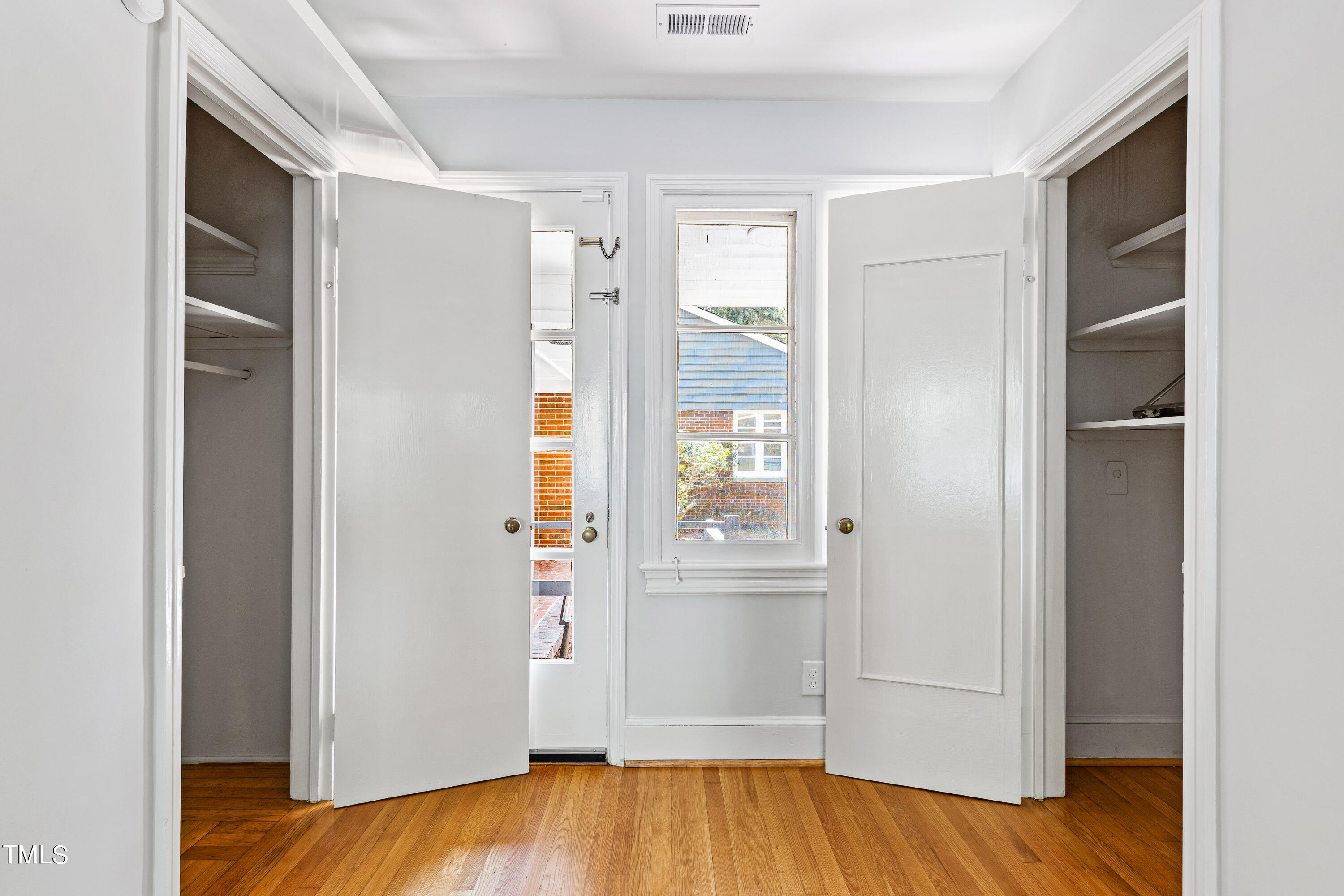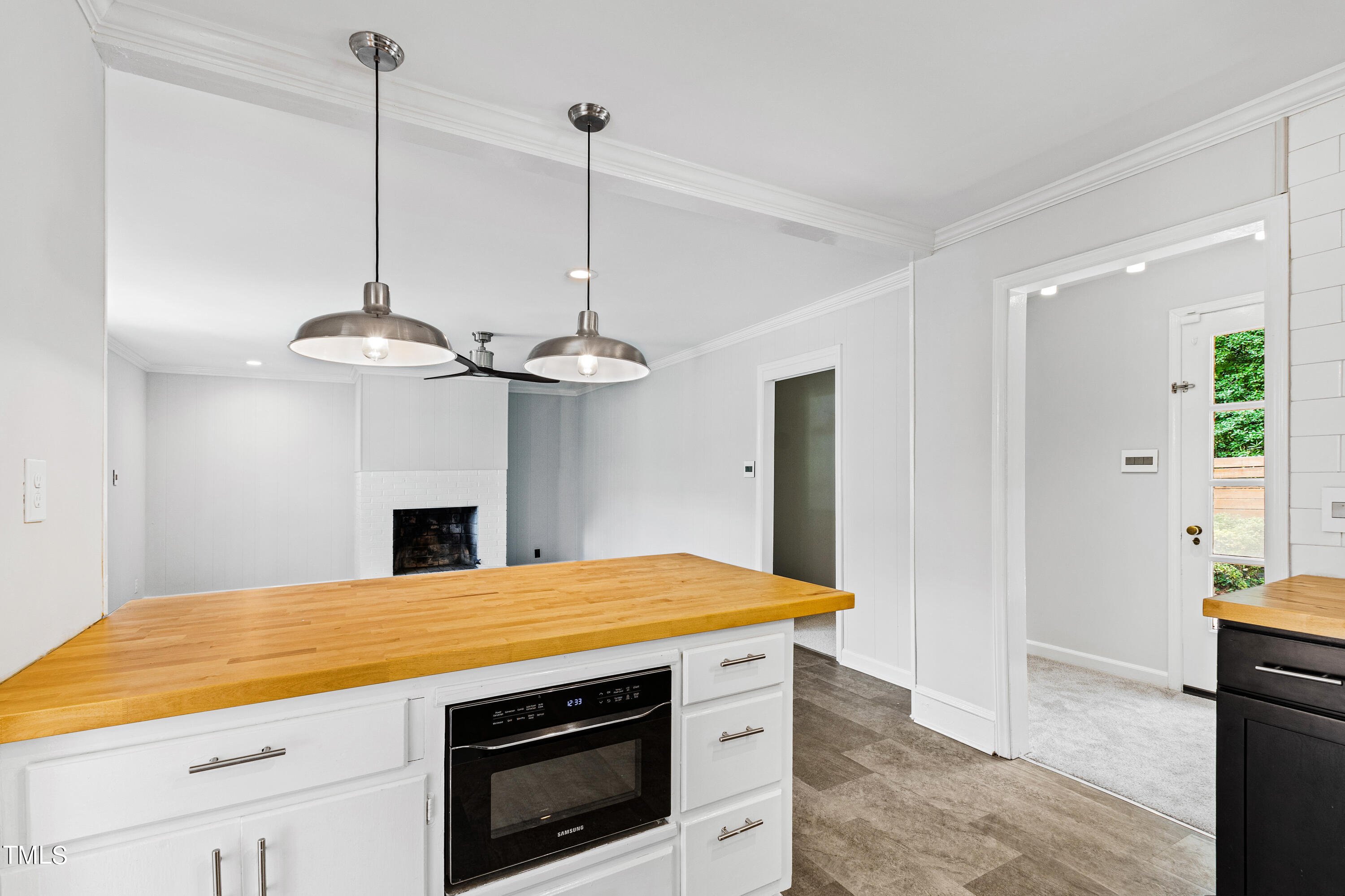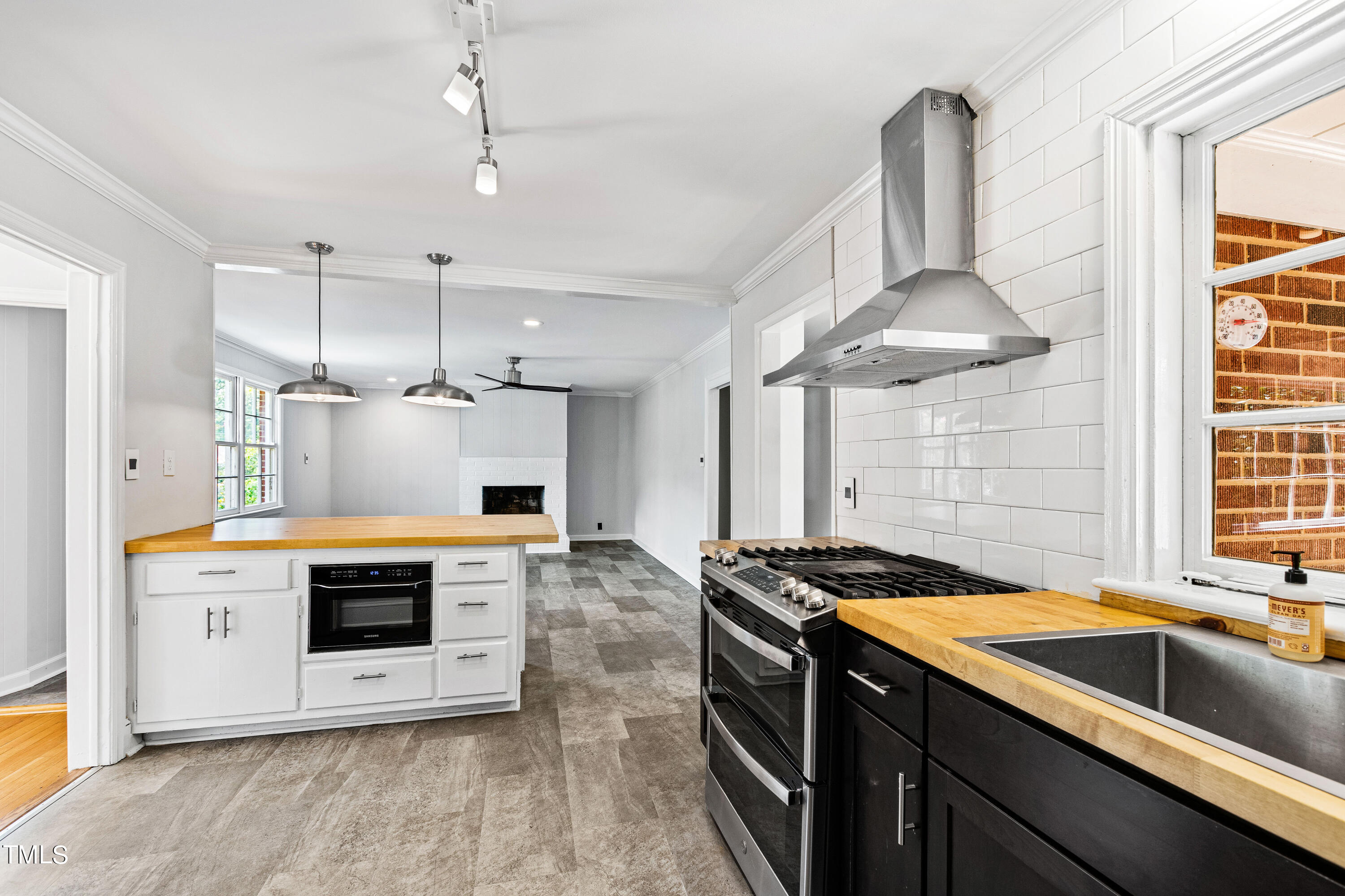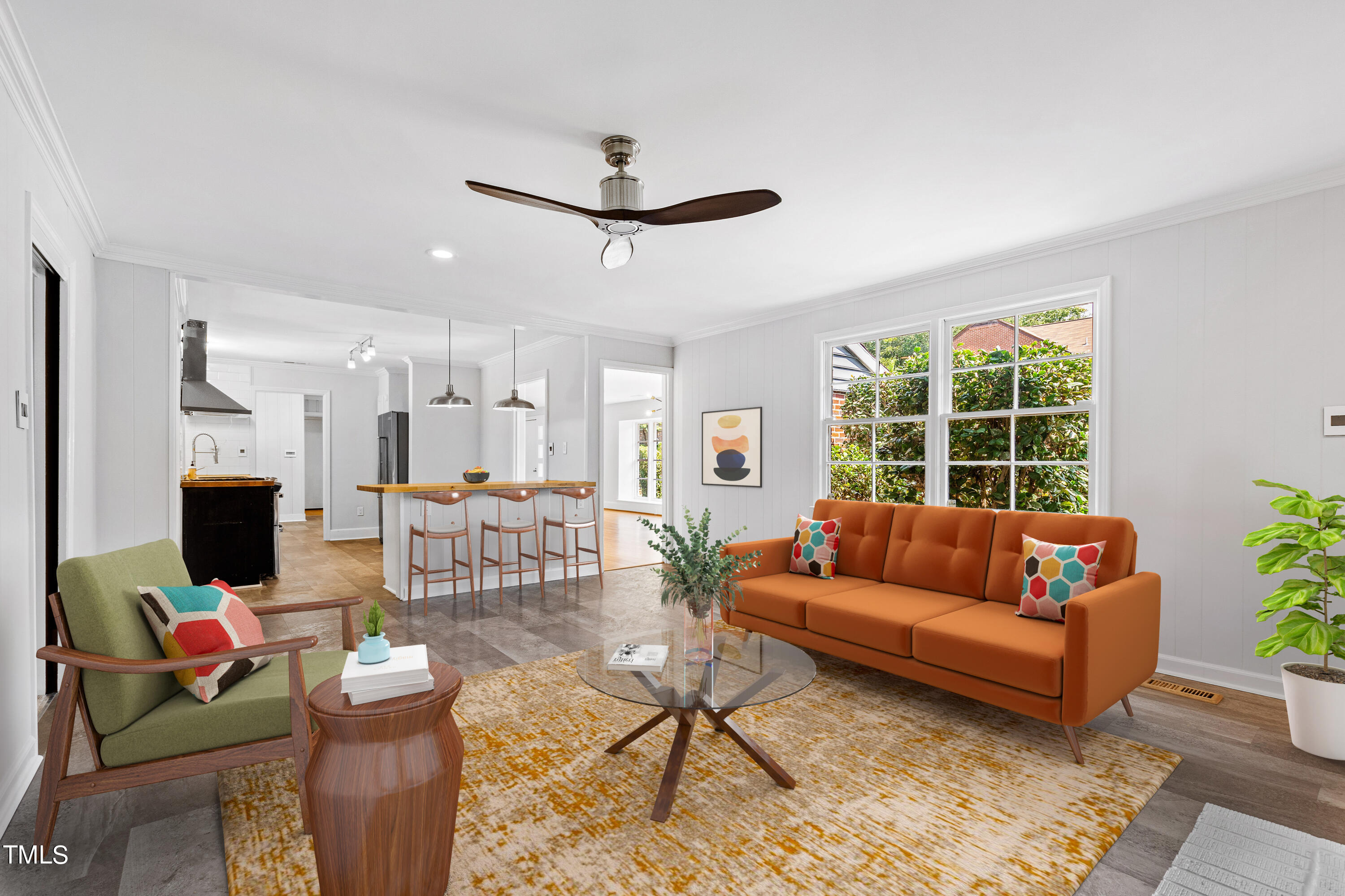 111 Hilton Ave. is a sprawling mid-century ranch that is centrally located, offering easy access to all of Durham. Built by an engineer in 1950, it has an East Wing-West Wing layout with two garages and two driveways, one on each side. Flexible and flowing, its five entrances and ample street parking make it ideal for a multi-generational home, a home-based business, or an investment property. Nestled between the walkable Rockwood and Lakewood neighborhoods, enjoy a 5-minute walk to Durham favorites like Nana's, Q-Shack, and the Boot Room or a 5-minute bike ride to Gugelhupf for brunch. DPAC and downtown are a 5-minute drive away, and you can be anywhere on the Duke University campus, including the Medical Center, in less than 10 minutes. Along with the exceptional convenience, its hillside, singular location on the block offers exceptional privacy, making it uniquely suited for a music studio or social gatherings. Inside, this 'Architects Special' features three ensuite bathrooms, original oak hardwood floors, two fireplaces and a large, unfinished basement offering endless possibilities for the design-oriented. Outside find an enclosed courtyard perfect for a jungle gym, a Zen Garden, or backyard fun with the pups!