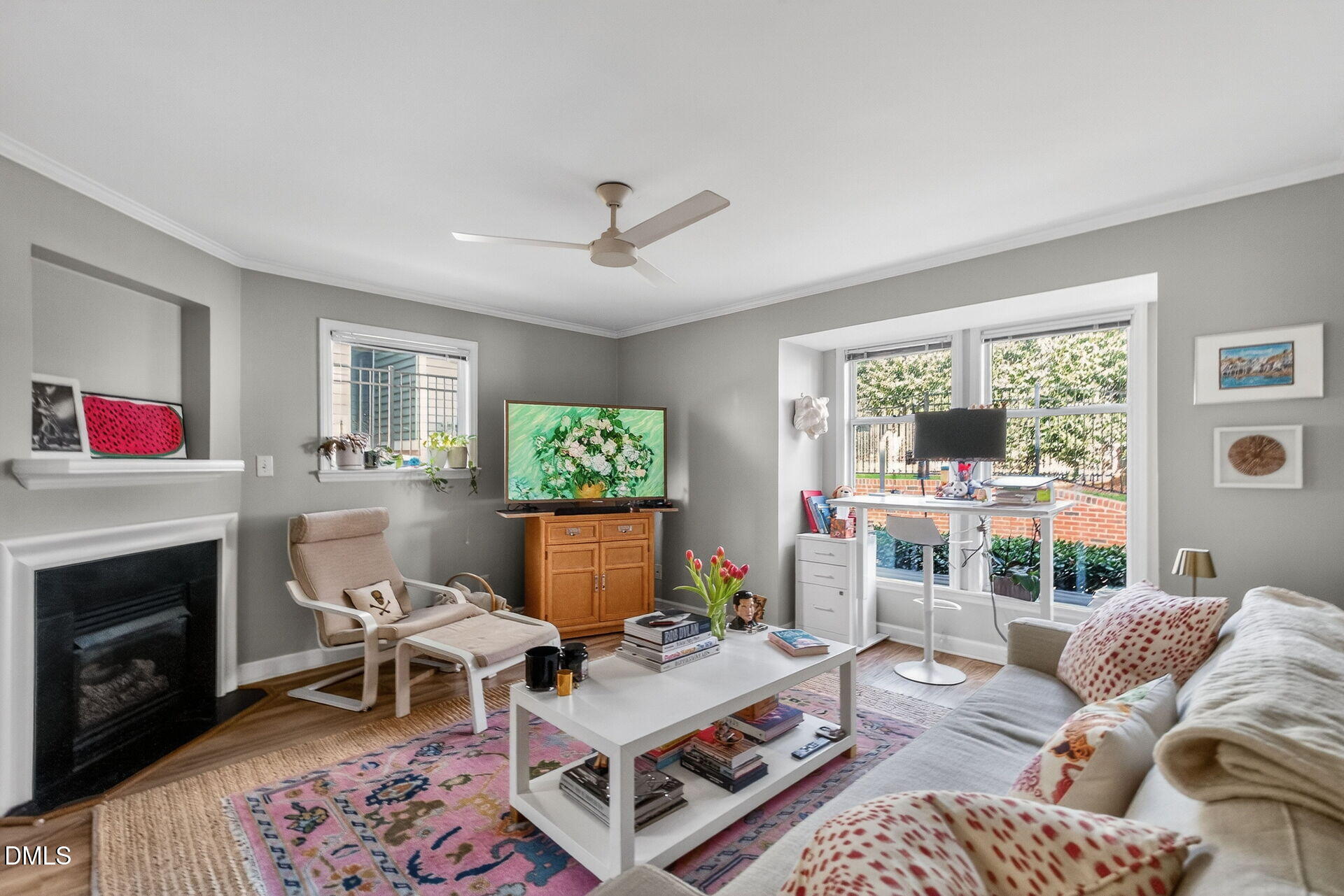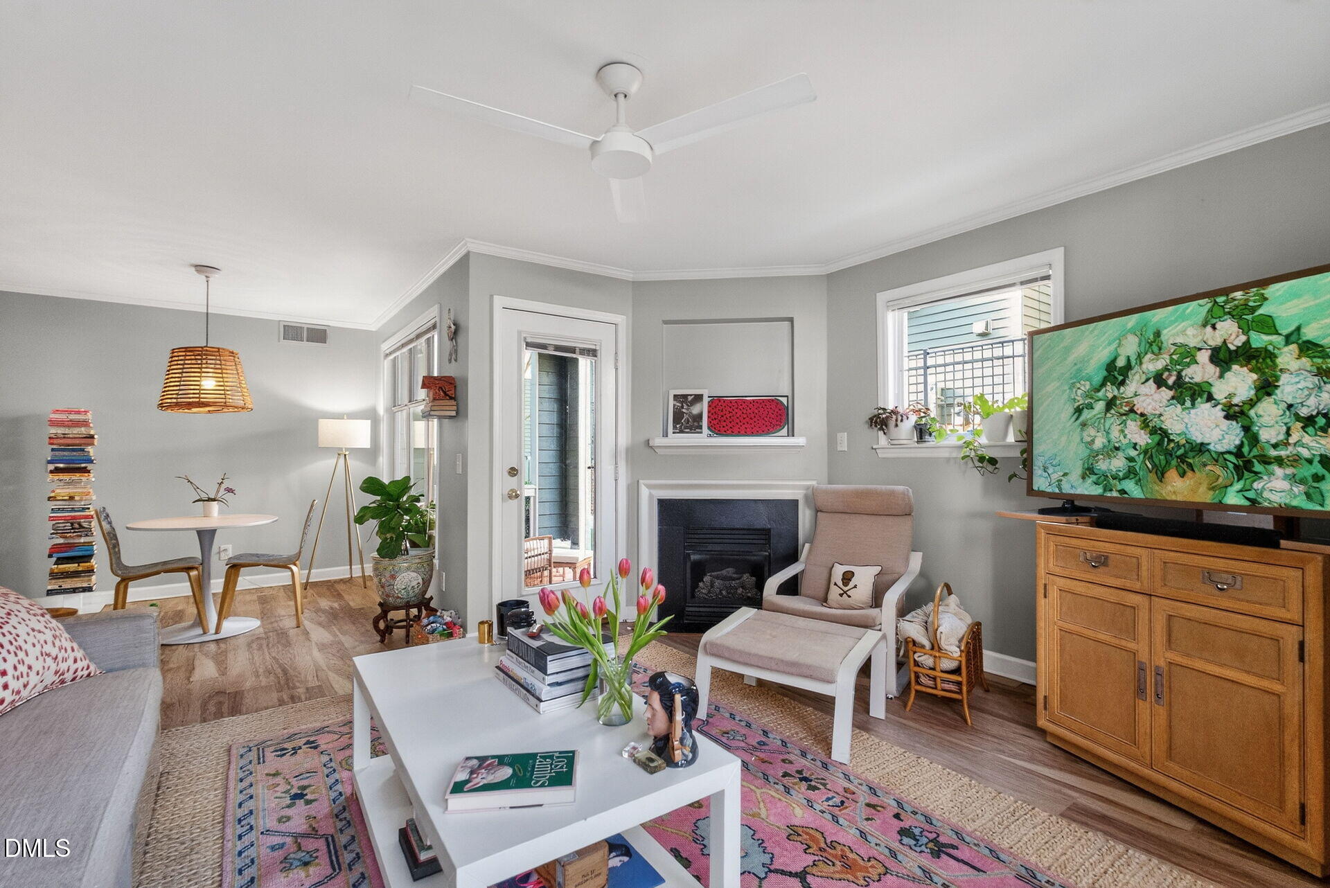 This charming and hard-to-find first-floor condo offers convenient one-level living just a short walk from The Village District, Fletcher Park, and Five Points. Inside, you'll find updated flooring, new water heater (2025), sleek quartz countertops, a cozy gas fireplace, and an open-concept layout that leads to a private patio. Enjoy easy access to the community pool and the benefits of a low HOA fee. Whether you're a first-time buyer, looking to downsize with no stairs, or seeking a smart investment opportunity, this home checks all the boxes.