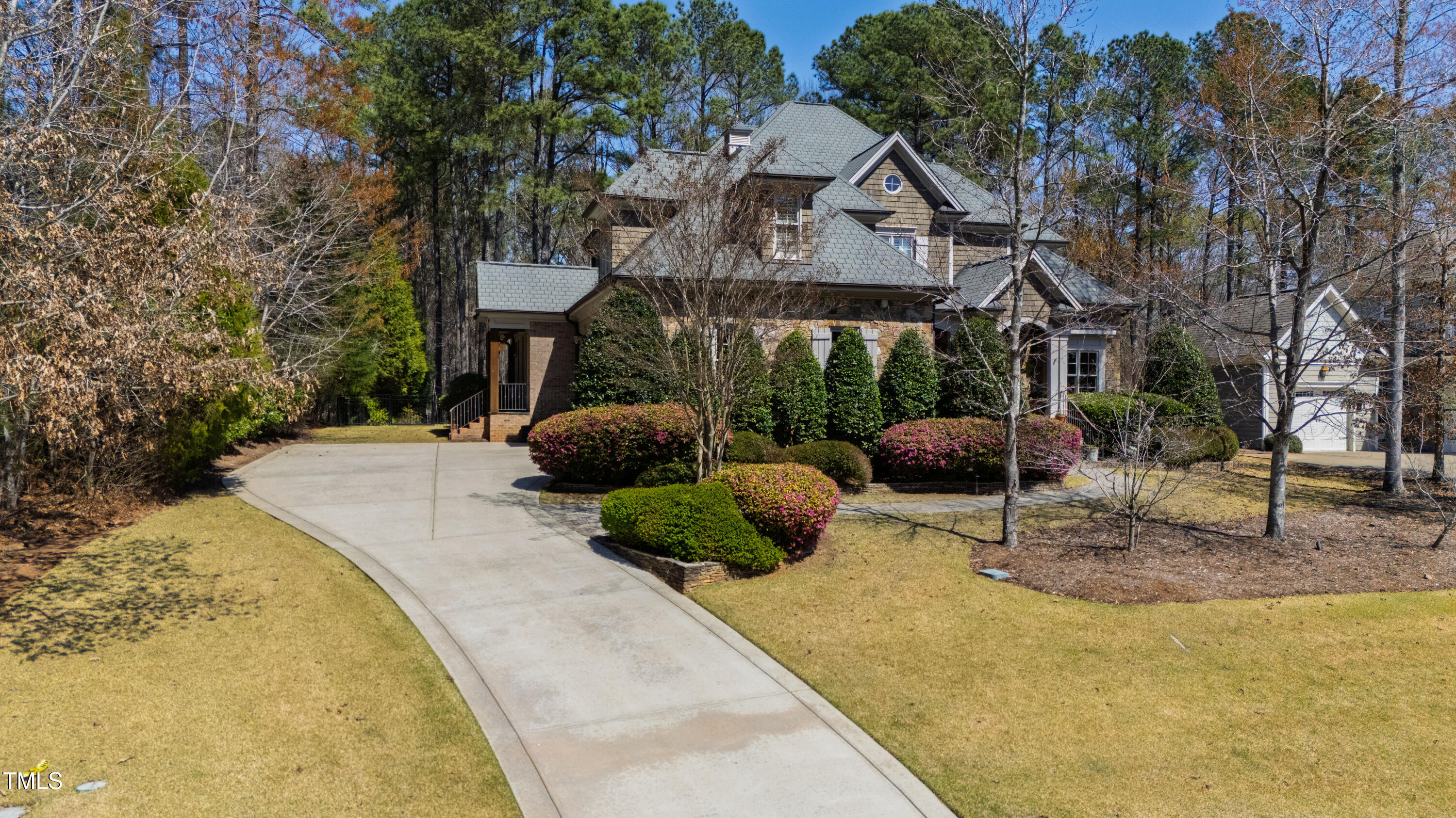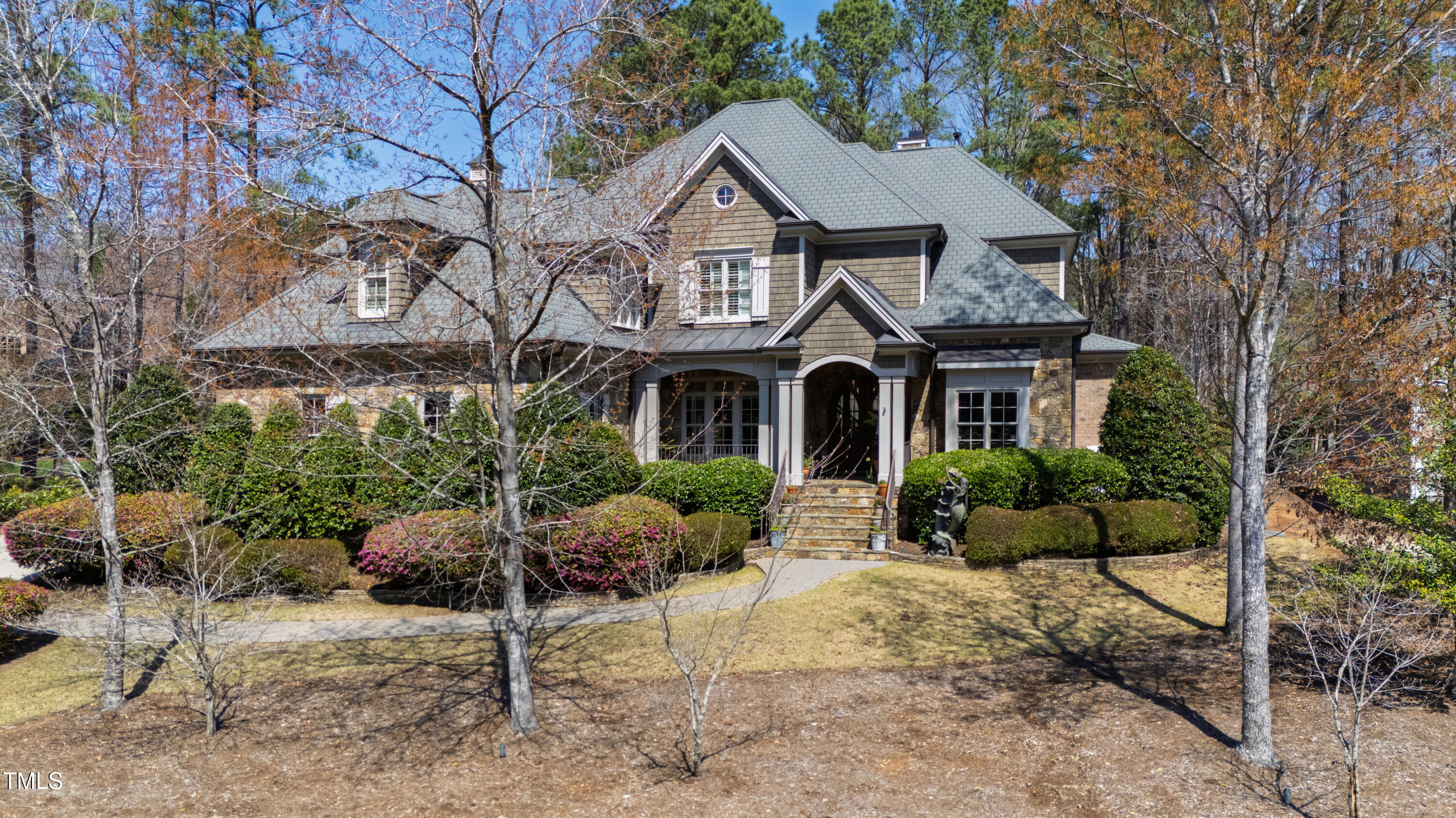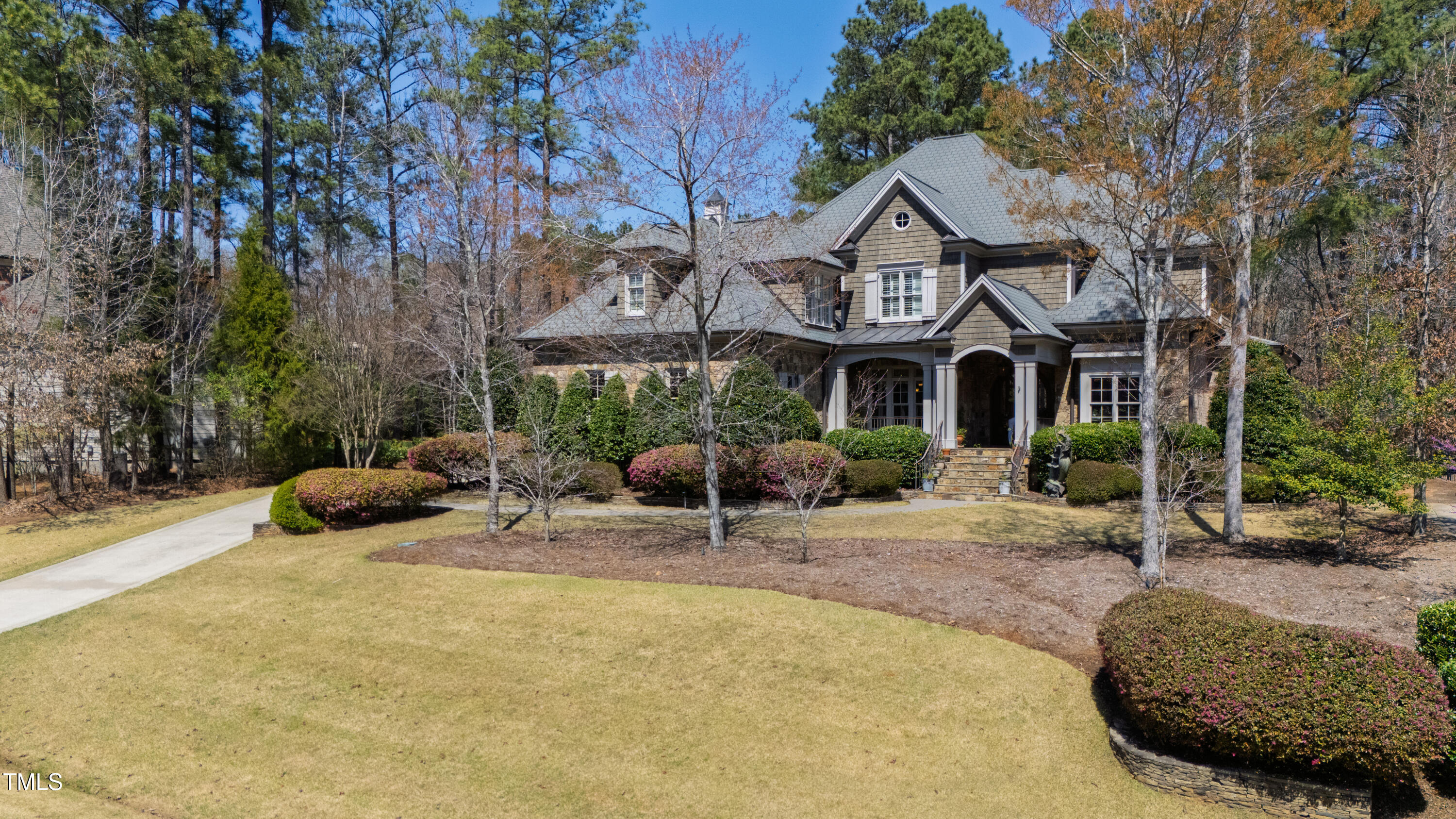Experience luxurious living in a custom-designed Sundance residence, now available in one of the Triangle's foremost country club communities. This stunning property, nestled on a spacious private lot in Hasentree, welcomes you with its impressive stone porch. As you step into the grand foyer, you are met with soaring ceilings alongside exquisite reclaimed walnut hardwood floors. The open-concept layout seamlessly connects the gourmet kitchen, equipped with high-end appliances, to the breathtaking great room. A uniquely designed dining area, a cozy breakfast nook, and a substantial island provide ample space for family gatherings. Two bedrooms conveniently located on the main level are ideal for hosting in-laws, and a main-level laundry facilitates comfortable aging in place. The primary suite is magnificent, featuring a row of large windows, tray ceiling, a luxurious ensuite bathroom, and an expansive custom closet. A door from the primary room leads out to a stunning patio that includes a fire pit, grill, and a carefully maintained hot tub. Additionally, a screened porch enhances the indoor-outdoor flow, allowing you to enjoy the vibrant flowers and greenery of the large fenced yard with an irrigation system.