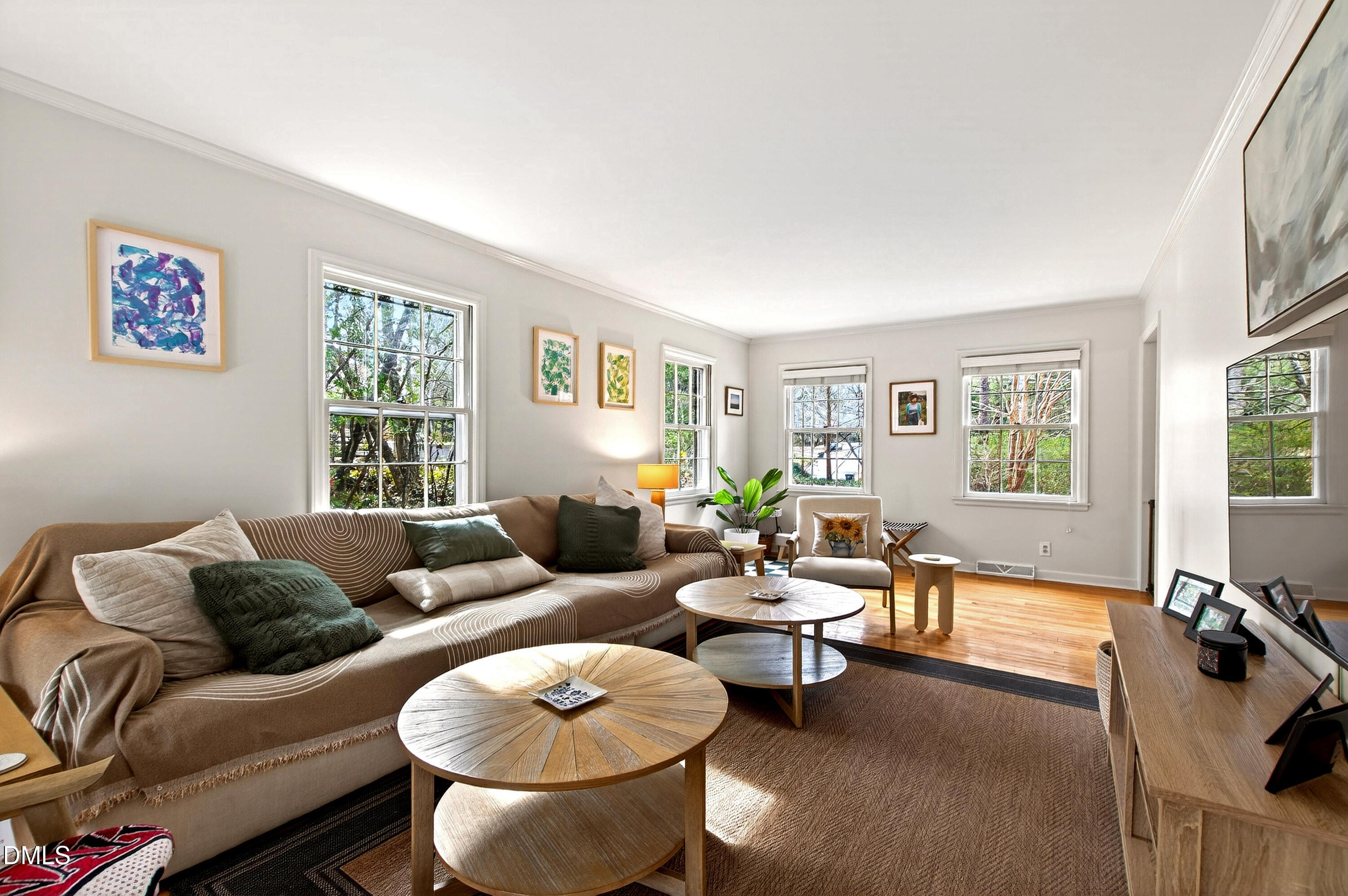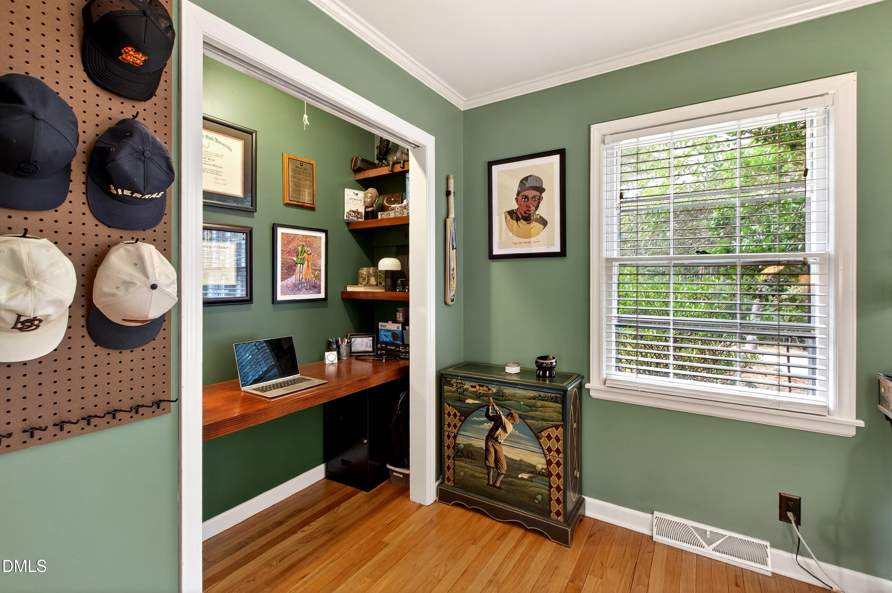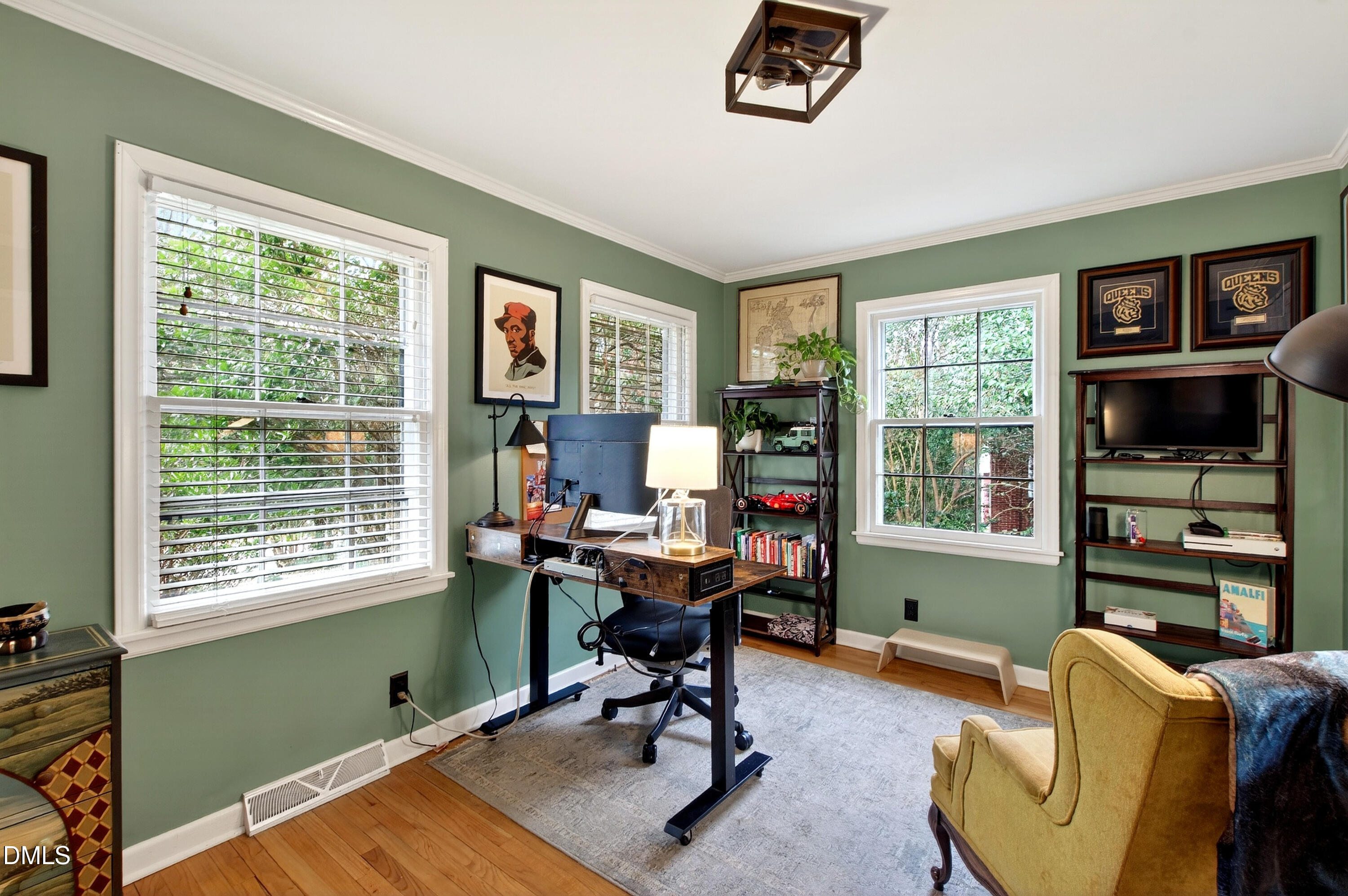 Tucked away on a beautifully manicured private lot, nestled in the heart of Central Durham, 1125 Anderson Street masterfully unites enduring sophistication with refined contemporary upgrades. With unrivaled curb appeal and timeless brick architecture, this move-in ready home offers an abundance of charm and a truly peaceful homecoming experience--just minutes from Duke University, downtown Durham, and all the Bull City has to offer. As you step inside, you are immediately greeted by a warm, inviting interior filled with natural light and hardwood floors running throughout. The flexible floor plan features spacious areas that feel intimate yet open--ideal for both everyday living and effortless entertaining. The abode's cozy sitting room is centered around a traditional wood-burning fireplace, adding endless character, while the expansive family room beams with sunlight, creating a bright and welcoming gathering space. The updated kitchen blends style and function with classic white cabinetry, granite countertops, impressive stainless-steel appliances, and an appealing tile backsplash. A main-level bedroom and full bath offer versatility for guests, a home office, or multigenerational living. Upstairs, retreat to a generous primary suite complete with a deep walk-in closet and beautifully tiled ensuite bath. Two additional secondary bedrooms, a full bath, and an extra office or nursery provide privacy and room to spread out. Downstairs, a basement unlike any other offering incredible flexibility, an abundance of storage, dedicated laundry space, a recently finished full bath, workshop potential, a second wood-burning fireplace and parking for two cars. The opportunities for this space truly are endless. Step outside to your own private retreat. The fenced backyard features blooming perennials and low-maintenance landscaping, along with expansive patio space perfect for all of North Carolina's beautiful seasons. Cosmetically appealing but also peace of mind come to life here in that major systems have been cared for. Recently replaced HVAC, water heater, breaker box, whole-house surge protector, and reglazed windows are just some of the wins that make this truly a turnkey home, ensuring immediate enjoyment without deferred projects. Distinctive, tasteful, and charming--1125 Anderson Street is ready to welcome you home.