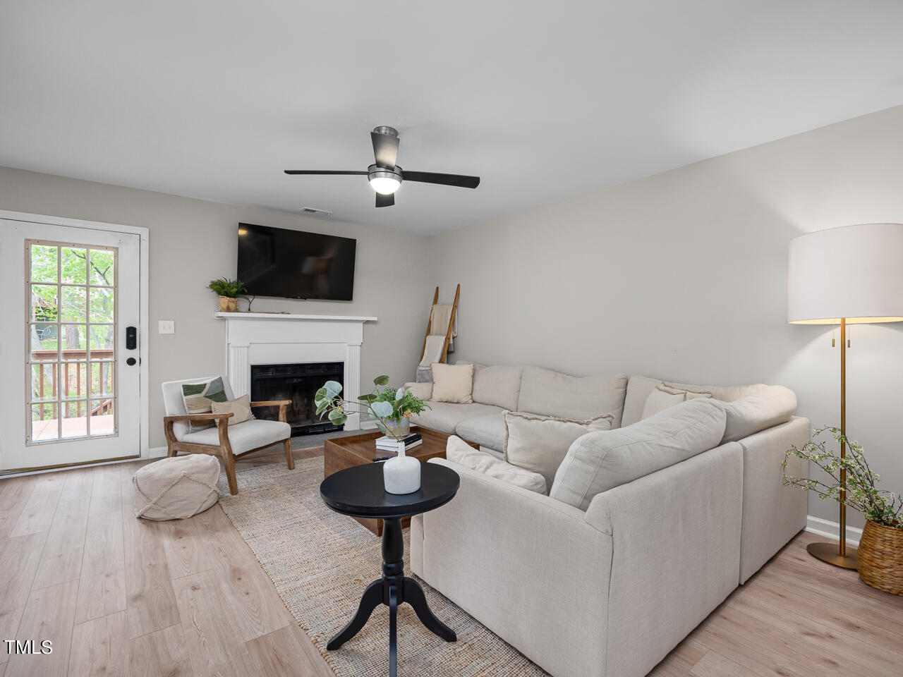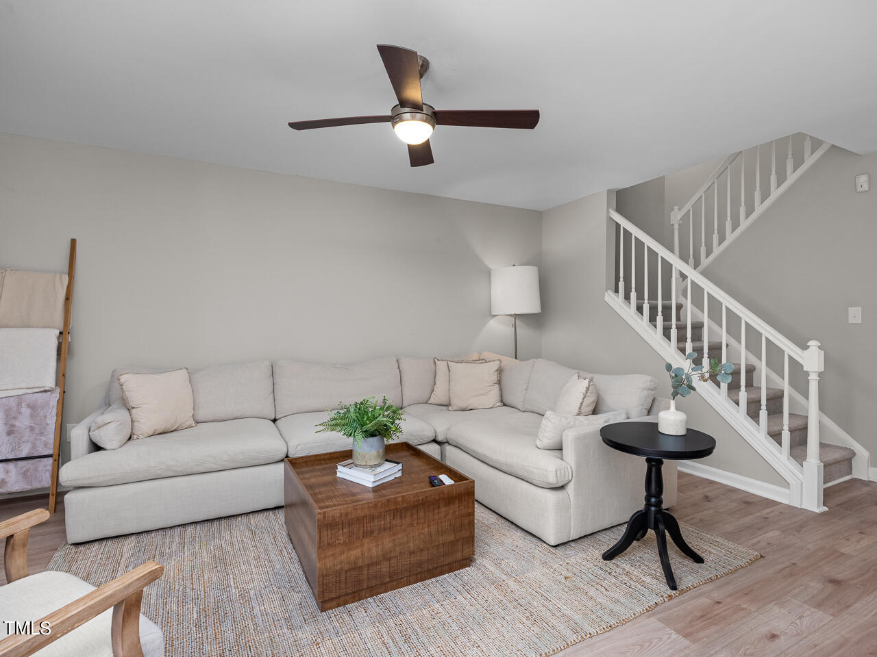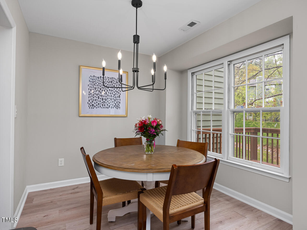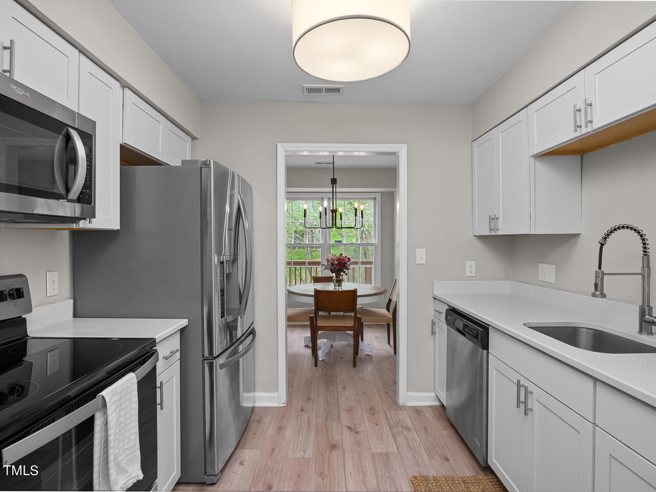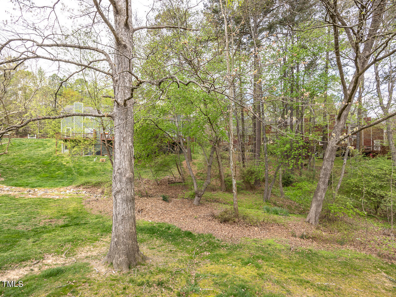 The best that Woodcroft has to offer - a serene place to call home with all conveniences close by. The fresh landscaping at the front door welcomes you to a light, bright, move-in-ready home. A brand new HVAC, maintenance free LVP flooring, quartz countertops, stainless steel appliances, chic light fixtures...the list of updates goes on and on. Rare and coveted floorplan features first floor double door office plus three spacious bedrooms upstairs including vaulted ceiling primary suite with naturally skylit bathroom and walk in closet. Relax in the cozy den with wood burning fireplace or open the door to expansive deck that overlooks private natural area with wildlife and creek. Plenty of space for roommates or guests, updated bathrooms, covered front porch and 6 miles of walking trails throughout the neighborhood with direct access to the American Tobacco Trail. No headaches, no design updates to think about....just move right in!