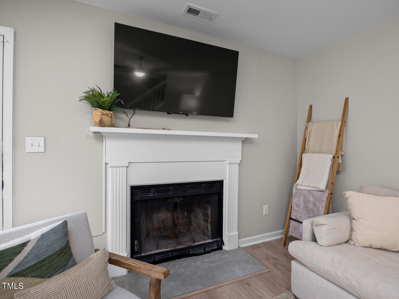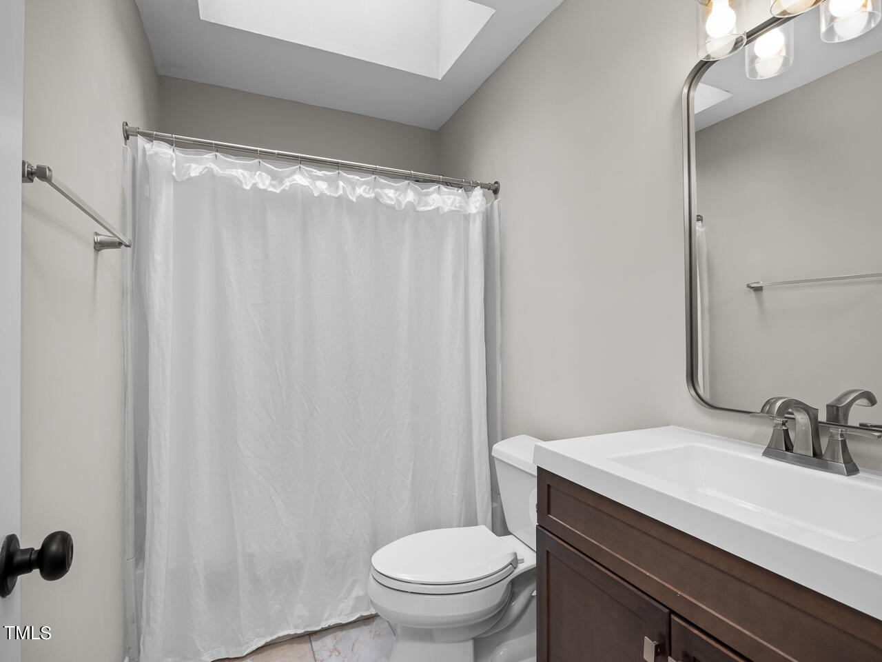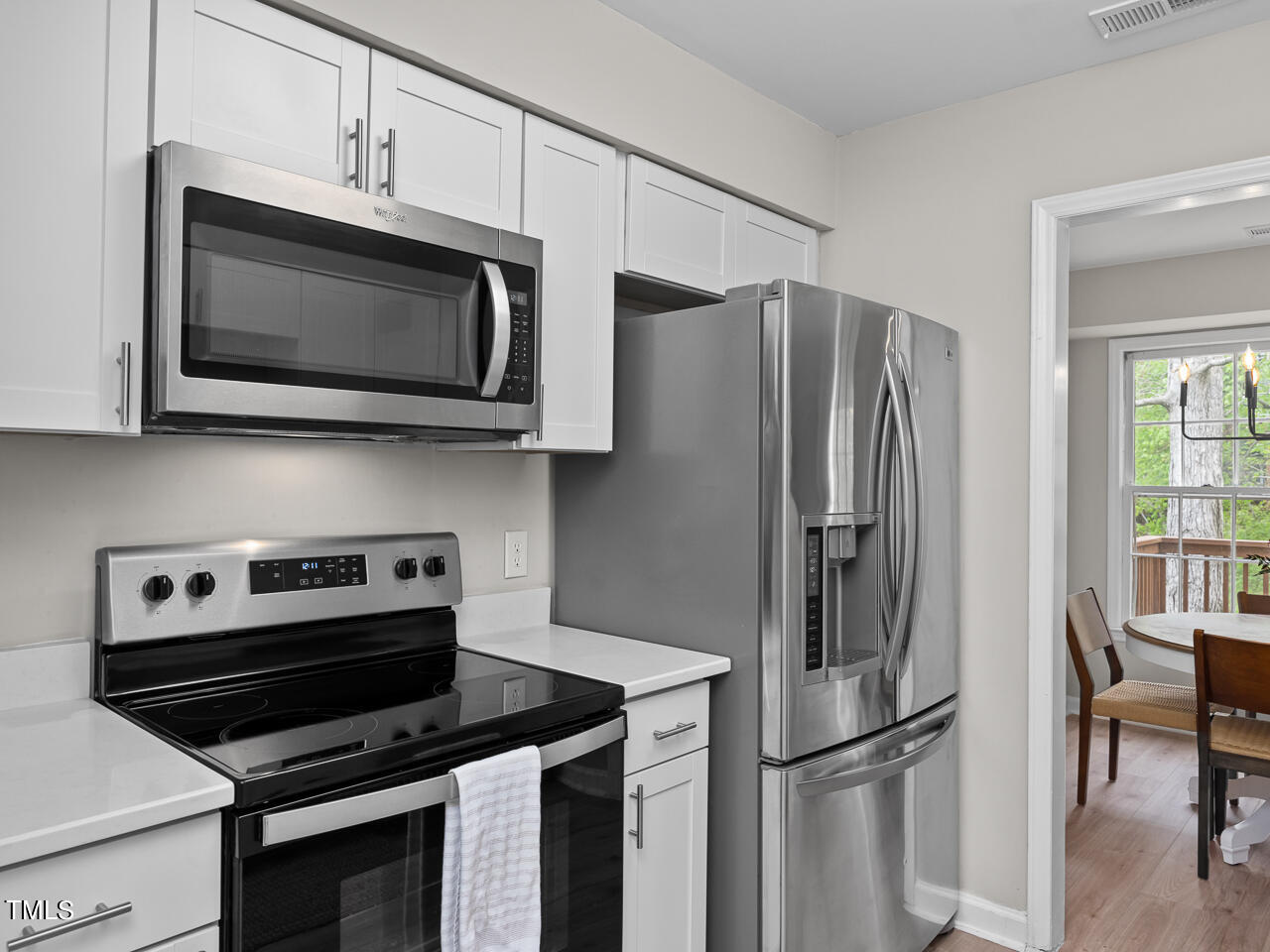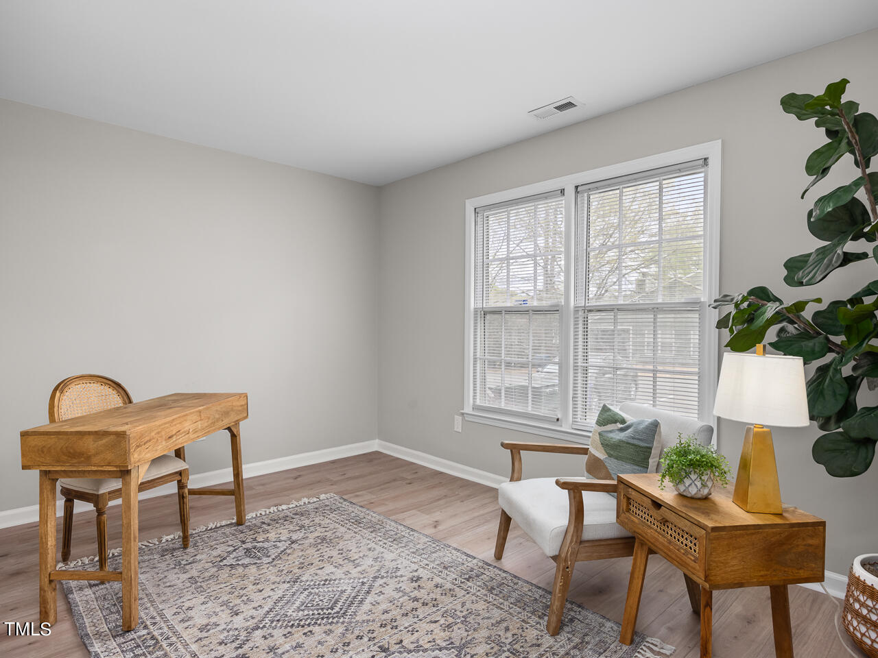 The best that Woodcroft has to offer - a serene place to call home with all conveniences close by. The fresh landscaping at the front door welcomes you to a light, bright, move-in-ready home. A brand new HVAC, maintenance free LVP flooring, quartz countertops, stainless steel appliances, chic light fixtures...the list of updates goes on and on. Rare and coveted floorplan features first floor double door office plus three spacious bedrooms upstairs including vaulted ceiling primary suite with naturally skylit bathroom and walk in closet. Relax in the cozy den with wood burning fireplace or open the door to expansive deck that overlooks private natural area with wildlife and creek. Plenty of space for roommates or guests, updated bathrooms, covered front porch and 6 miles of walking trails throughout the neighborhood with direct access to the American Tobacco Trail. No headaches, no design updates to think about....just move right in!