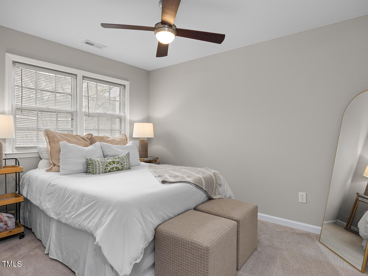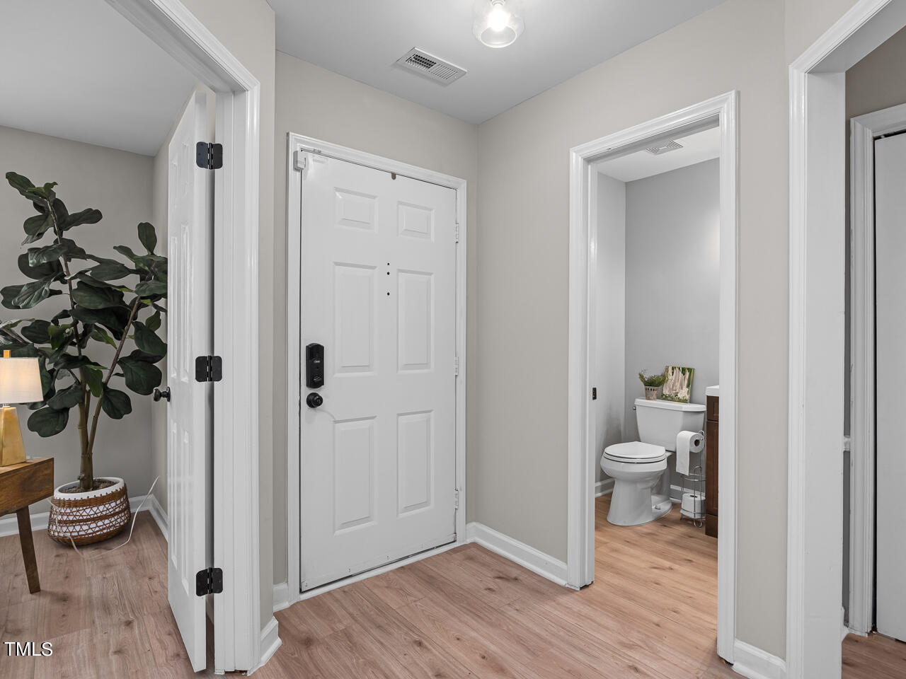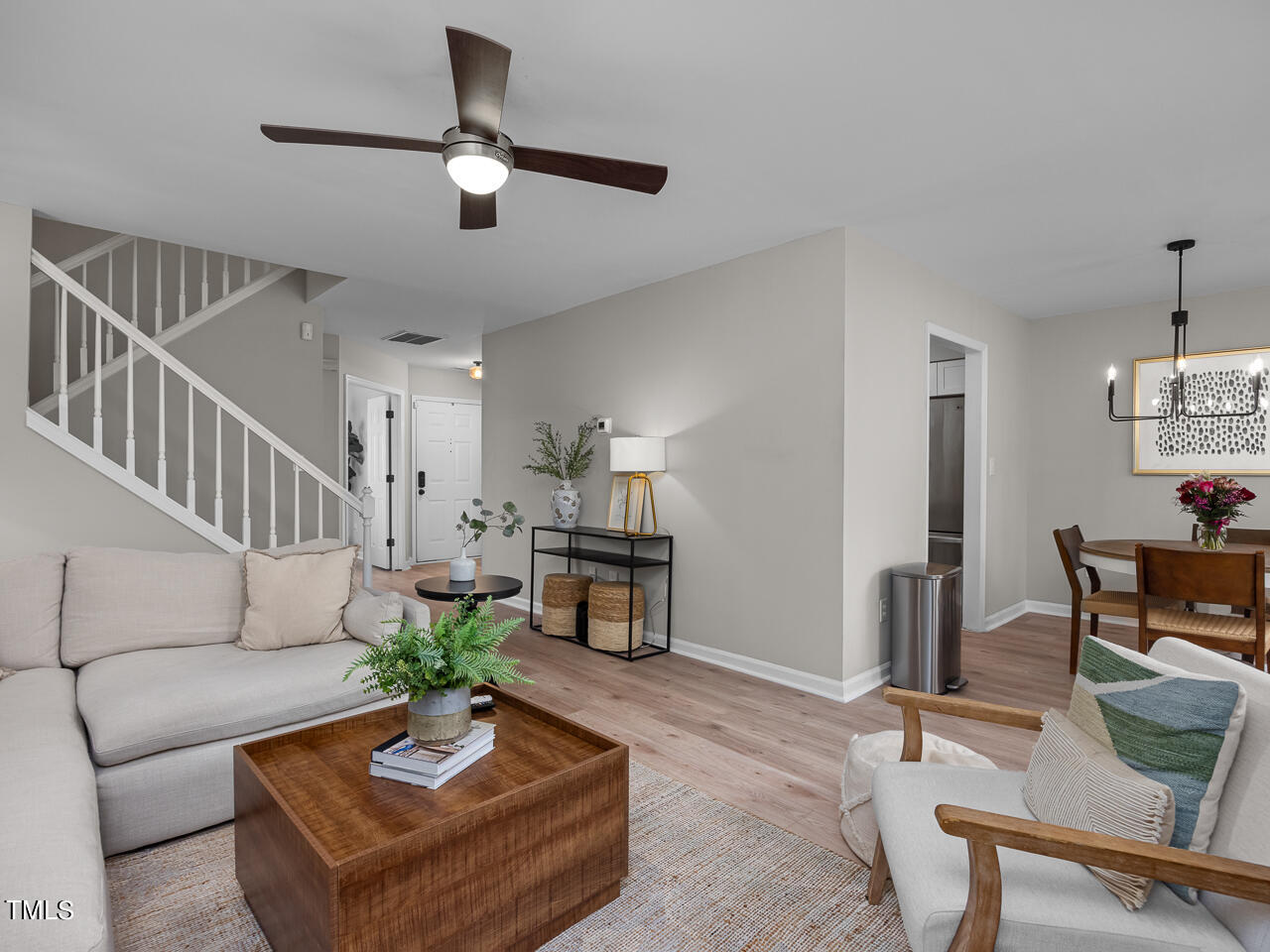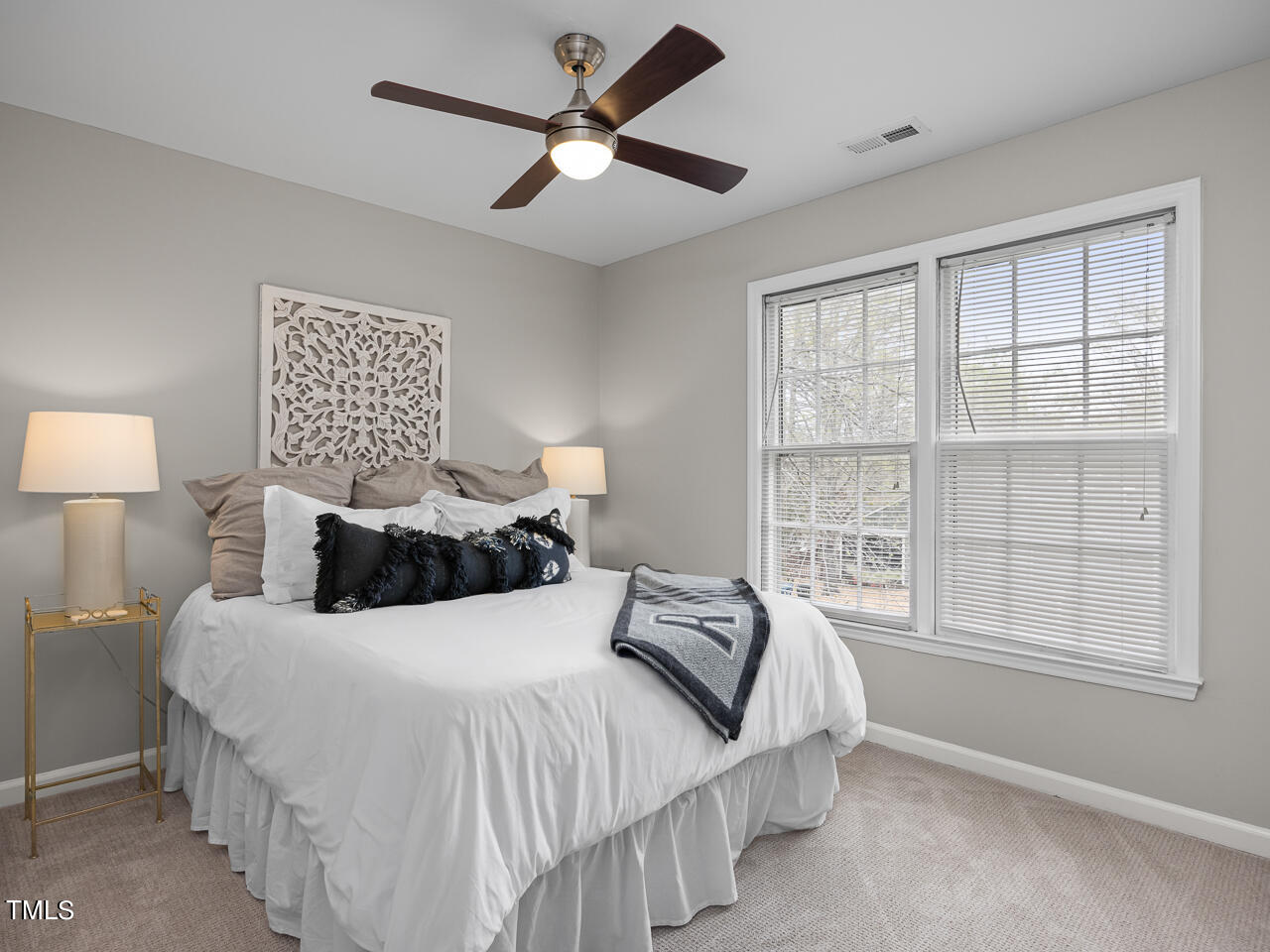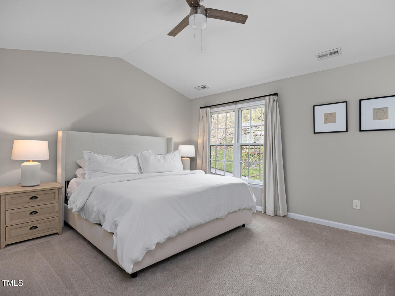 The best that Woodcroft has to offer - a serene place to call home with all conveniences close by. The fresh landscaping at the front door welcomes you to a light, bright, move-in-ready home. A brand new HVAC, maintenance free LVP flooring, quartz countertops, stainless steel appliances, chic light fixtures...the list of updates goes on and on. Rare and coveted floorplan features first floor double door office plus three spacious bedrooms upstairs including vaulted ceiling primary suite with naturally skylit bathroom and walk in closet. Relax in the cozy den with wood burning fireplace or open the door to expansive deck that overlooks private natural area with wildlife and creek. Plenty of space for roommates or guests, updated bathrooms, covered front porch and 6 miles of walking trails throughout the neighborhood with direct access to the American Tobacco Trail. No headaches, no design updates to think about....just move right in!