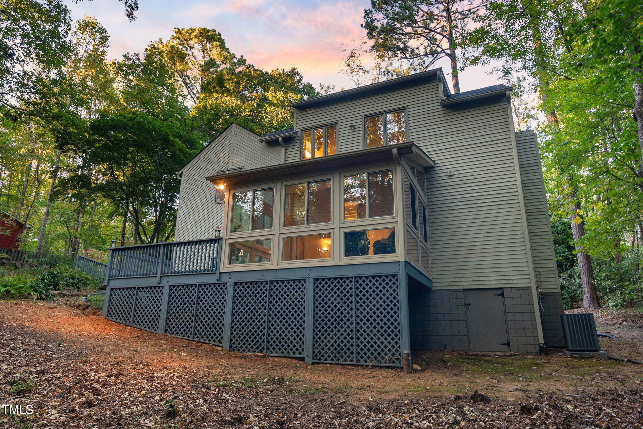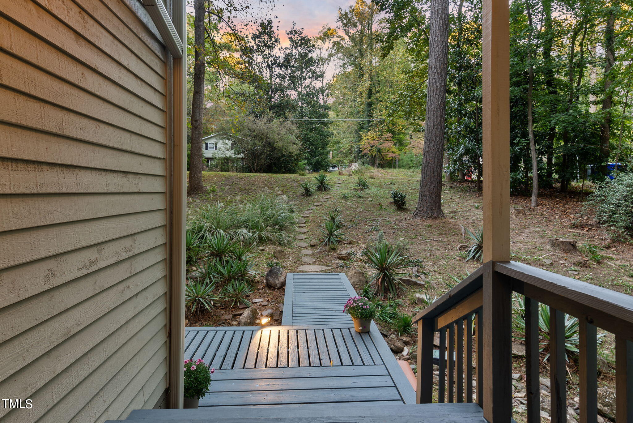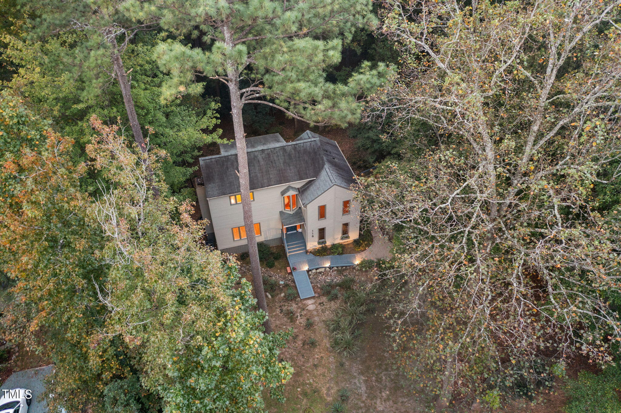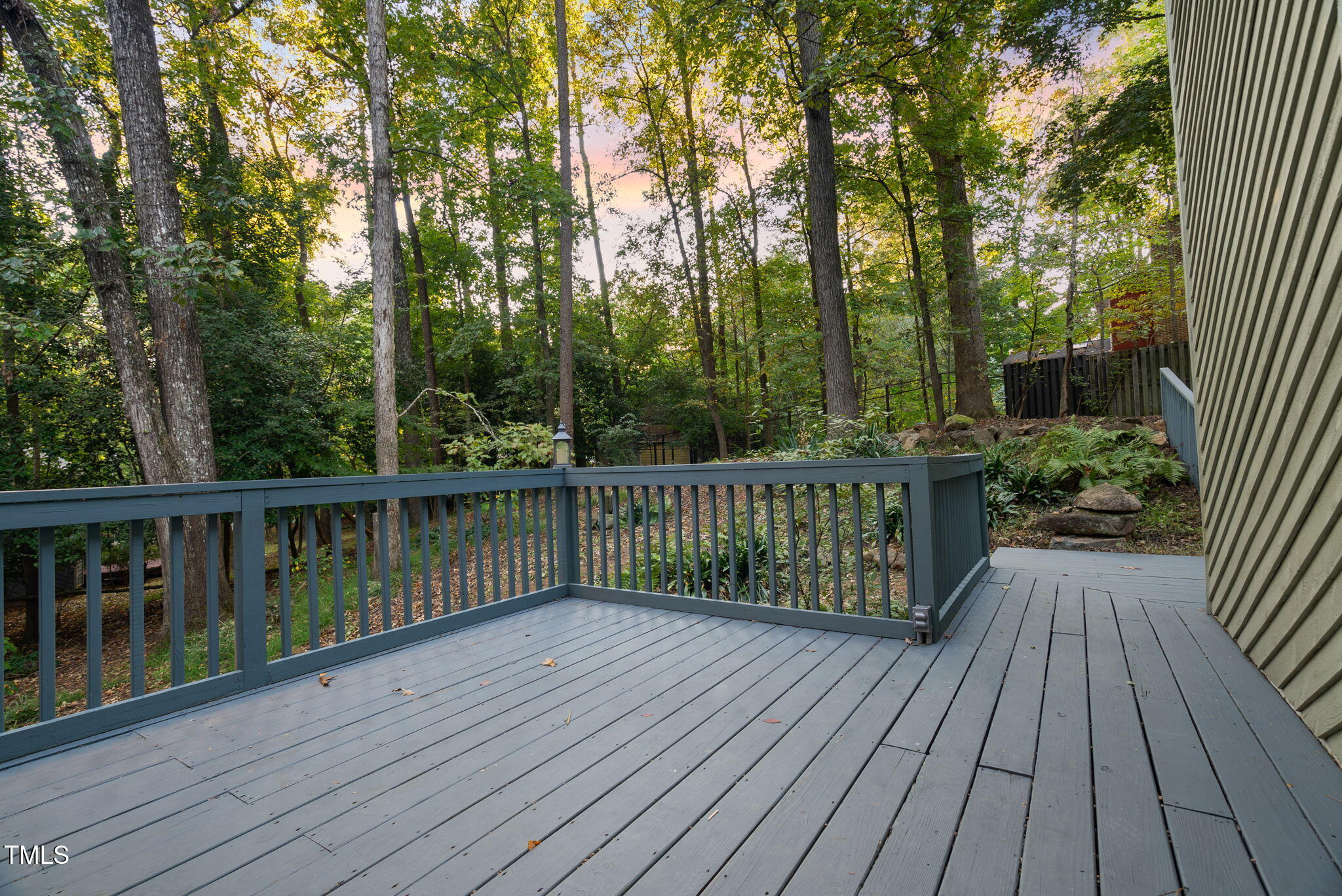 Welcome to this stunning home nestled in the sought-after North Forest Hills neighborhood, located within the top-rated Chapel Hill-Carrboro school district. This home's unique architecture makes for a truly special living experience. Step into the light-filled 4-season room with brand new flooring, overlooking a serene, private, tree-lined backyard that connects to a spacious deck--perfect for outdoor entertaining. The professionally landscaped yard adds to the home's beauty and tranquility.