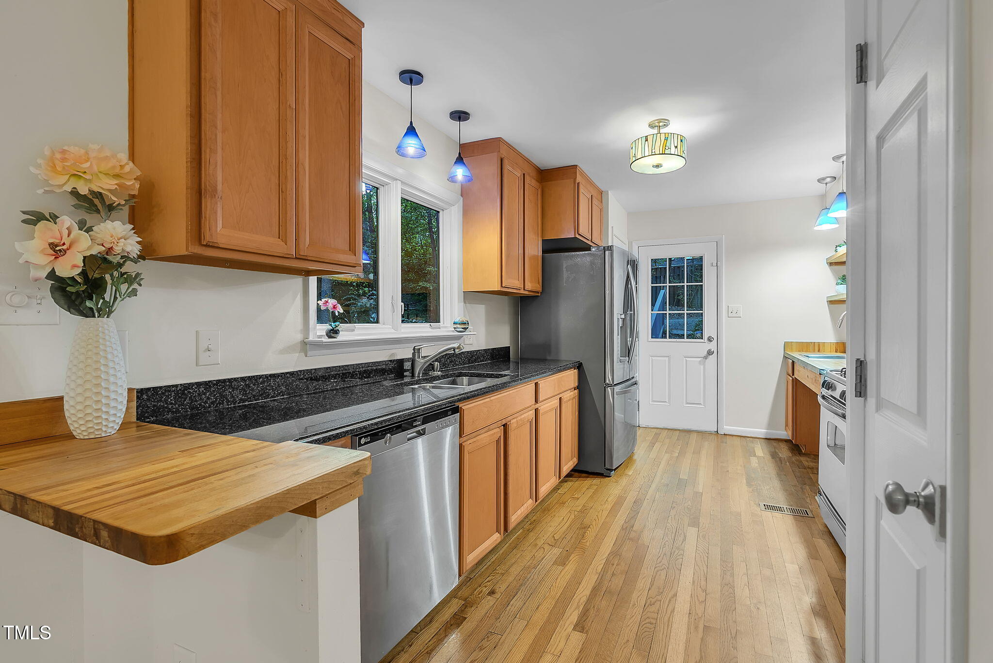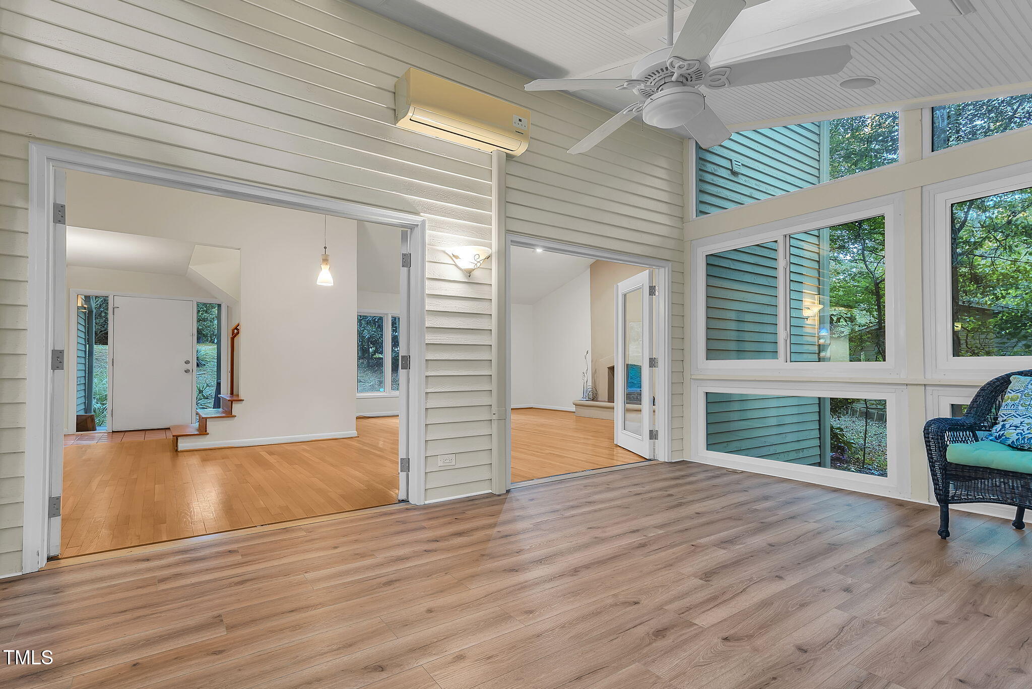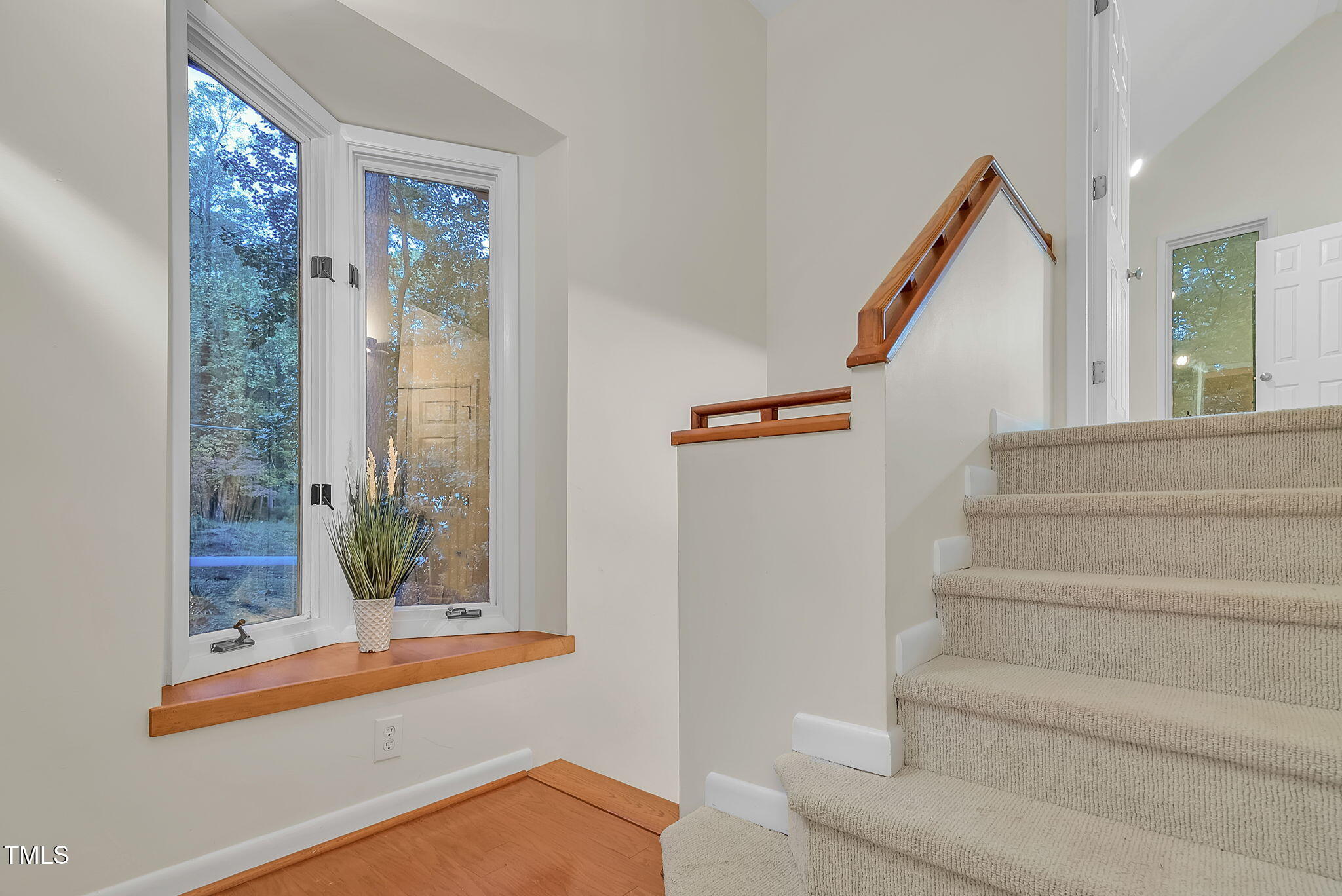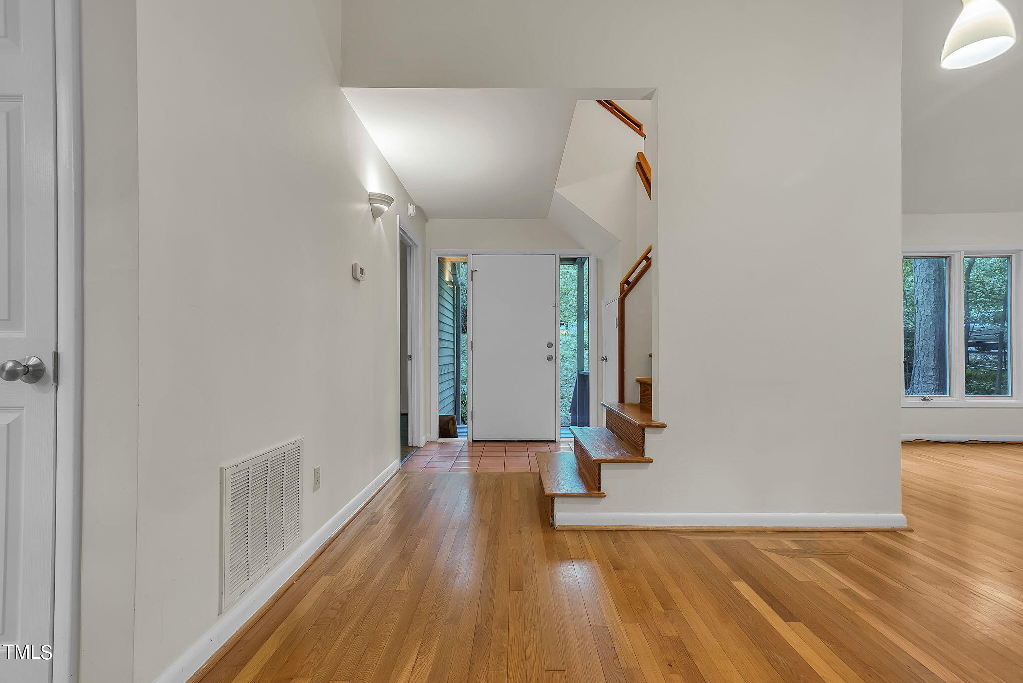 Welcome to this stunning home nestled in the sought-after North Forest Hills neighborhood, located within the top-rated Chapel Hill-Carrboro school district. This home's unique architecture makes for a truly special living experience. Step into the light-filled 4-season room with brand new flooring, overlooking a serene, private, tree-lined backyard that connects to a spacious deck--perfect for outdoor entertaining. The professionally landscaped yard adds to the home's beauty and tranquility.