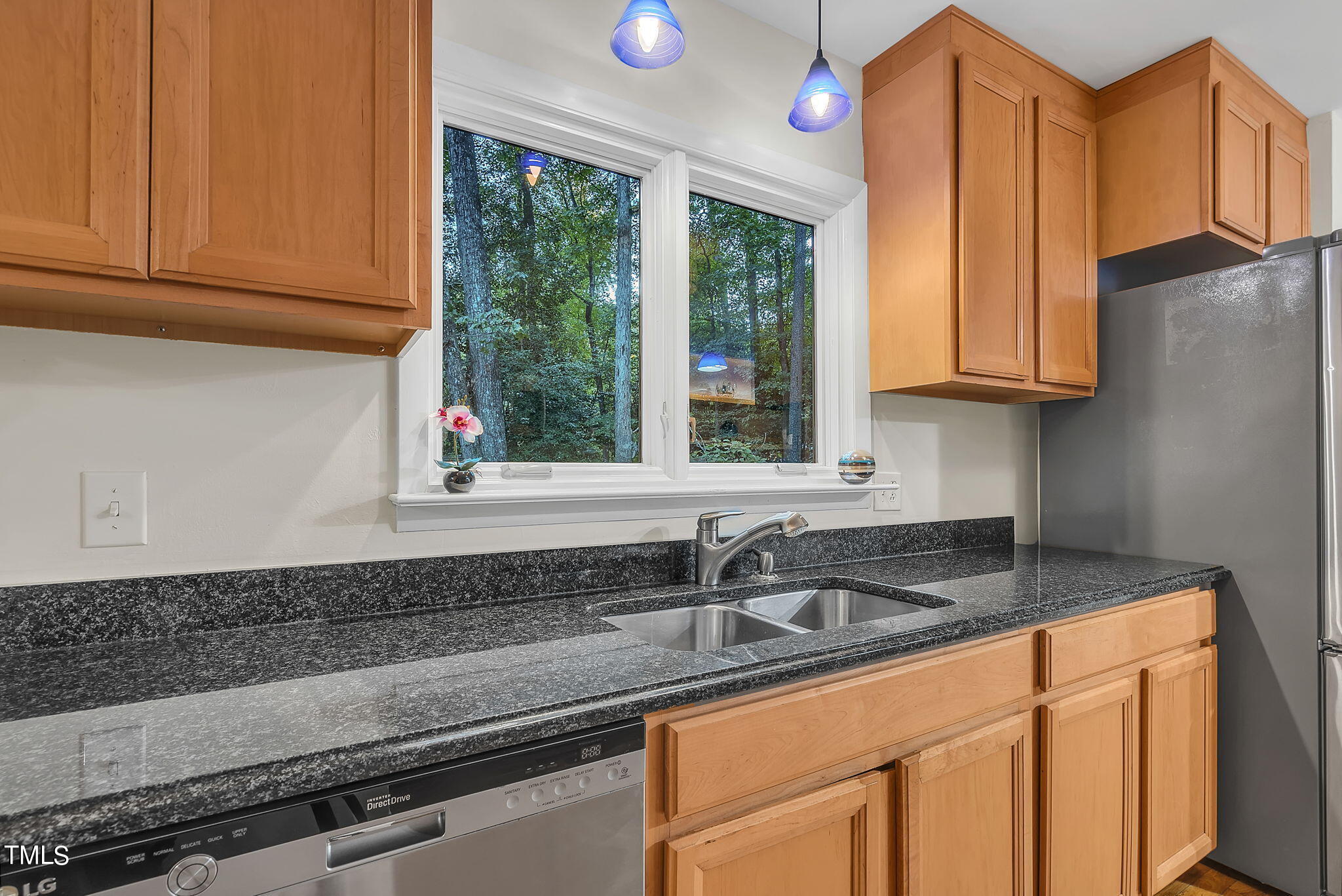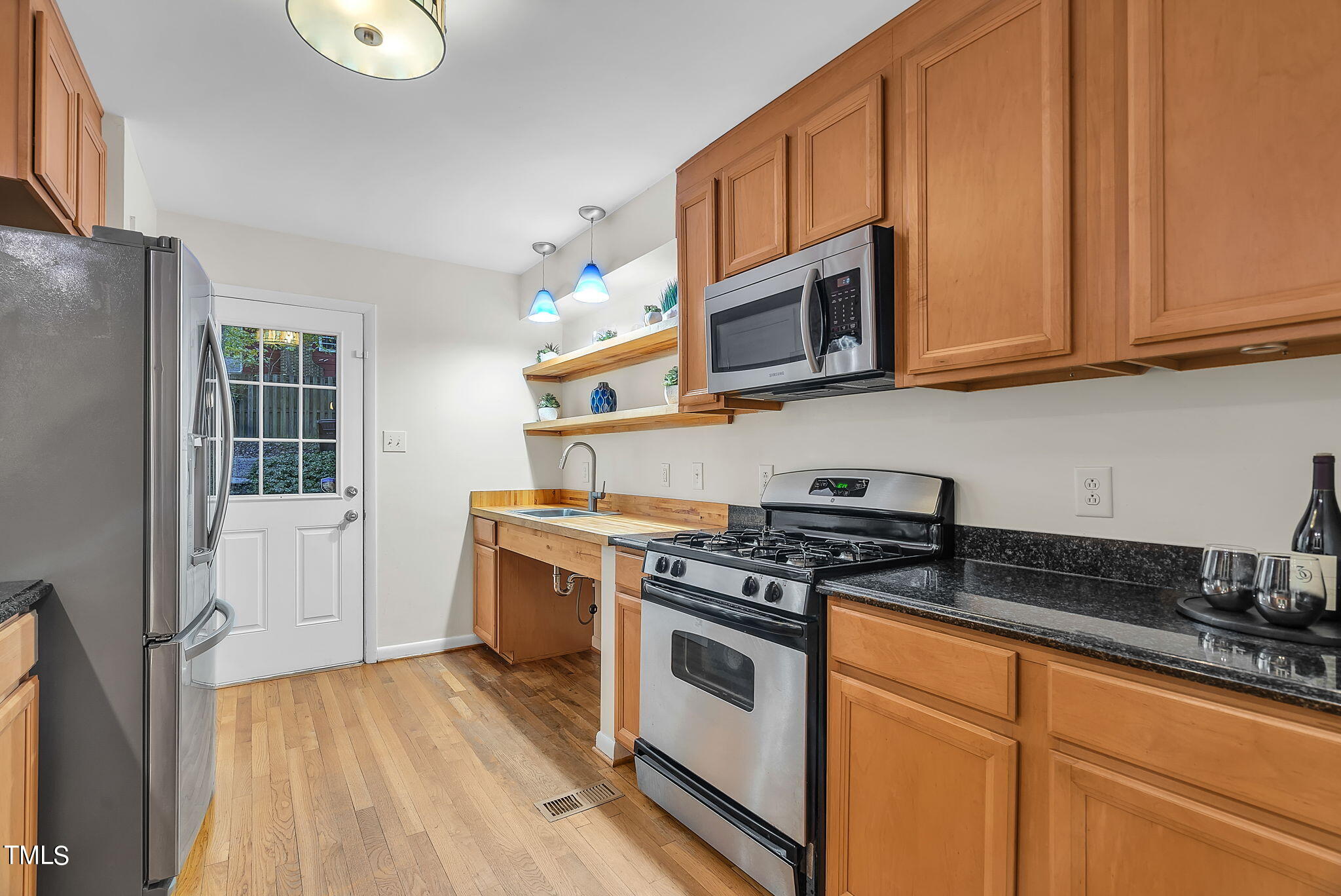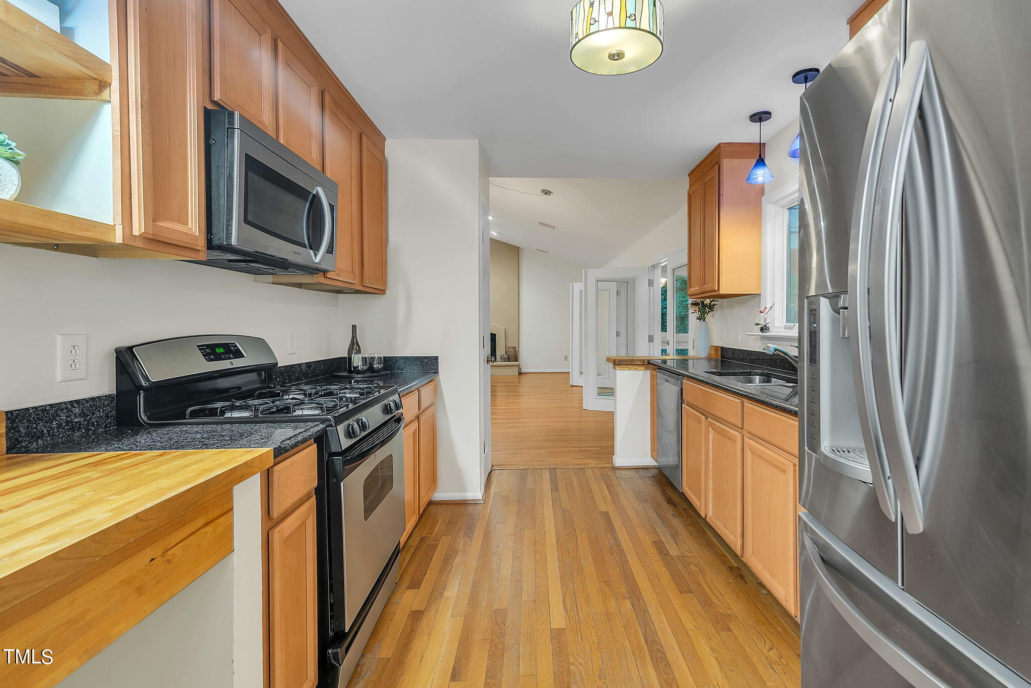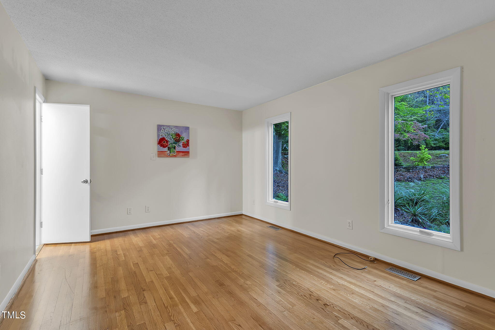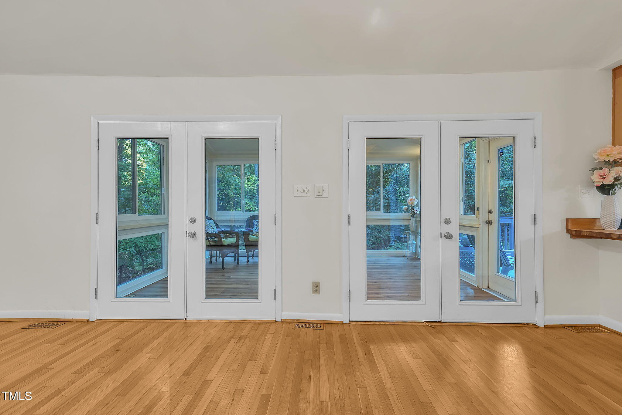 Welcome to this stunning home nestled in the sought-after North Forest Hills neighborhood, located within the top-rated Chapel Hill-Carrboro school district. This home's unique architecture makes for a truly special living experience. Step into the light-filled 4-season room with brand new flooring, overlooking a serene, private, tree-lined backyard that connects to a spacious deck--perfect for outdoor entertaining. The professionally landscaped yard adds to the home's beauty and tranquility.