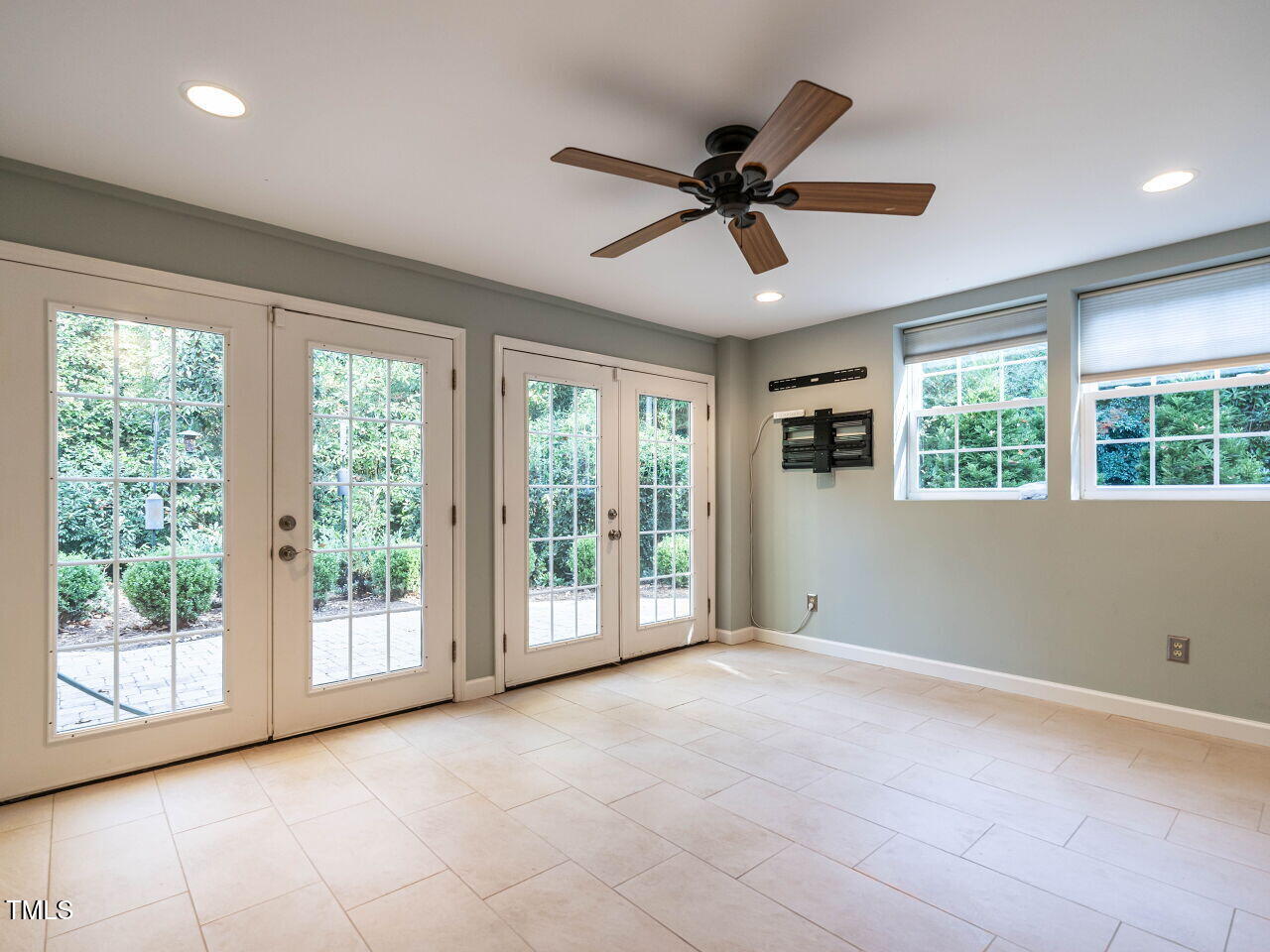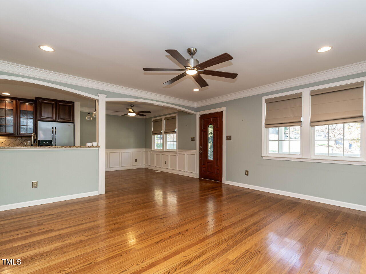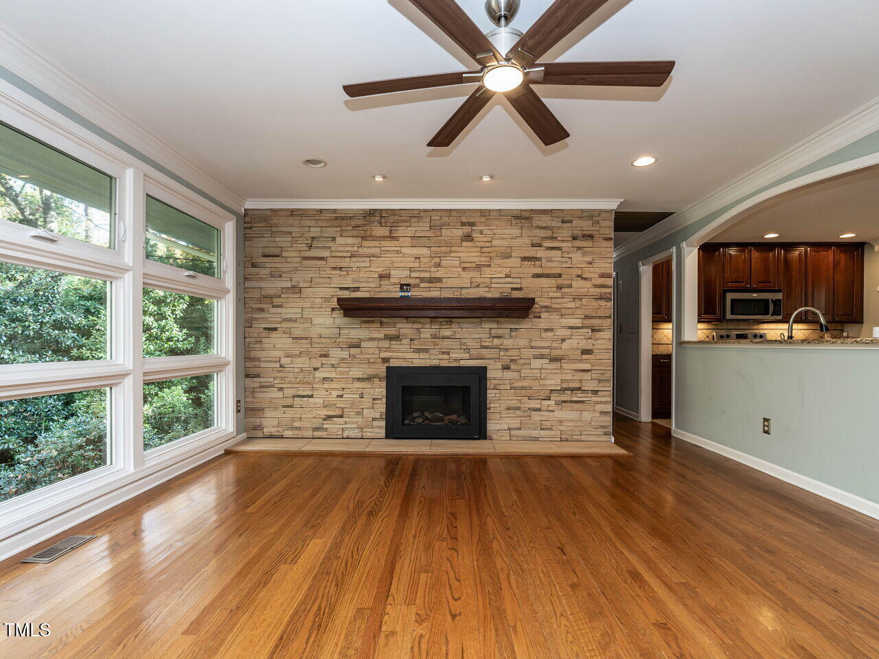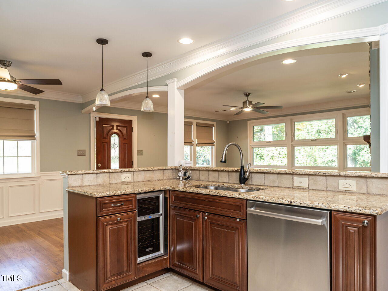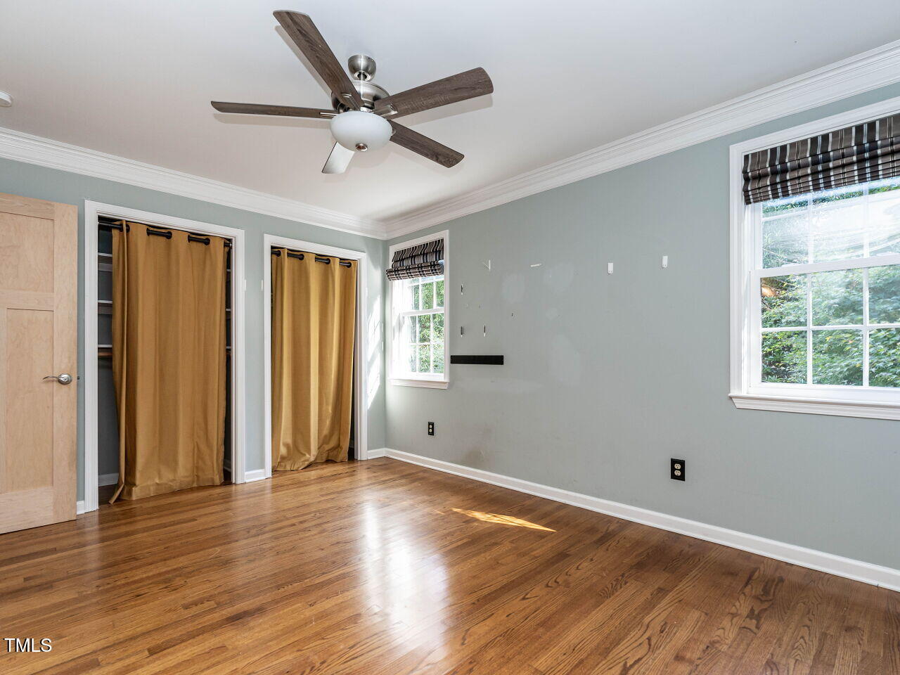 Charming ranch with covered front porch and finished daylight basement framed by a well-groomed, .42-acre lot - the open plan features spacious light-filled rooms with access to numerous outdoor spaces - the family room boasts a ''wall of windows'' plus a stacked stone wall with gas fireplace - the centrally located, updated kitchen features stainless steel appliances, tile floor and side access to the private terrace - the primary bedroom includes two closets with Jacuzzi soaking tub/shower and oversized vanity - the versatile basement was previously MBR suite and features French doors to massive, wrap-around patio with water feature - excellent schools - attached carport with great storage - concrete drive with ample parking - walk/bike to nearby Ridgewood S/C and Crabtree Creek Greenway - great house!
