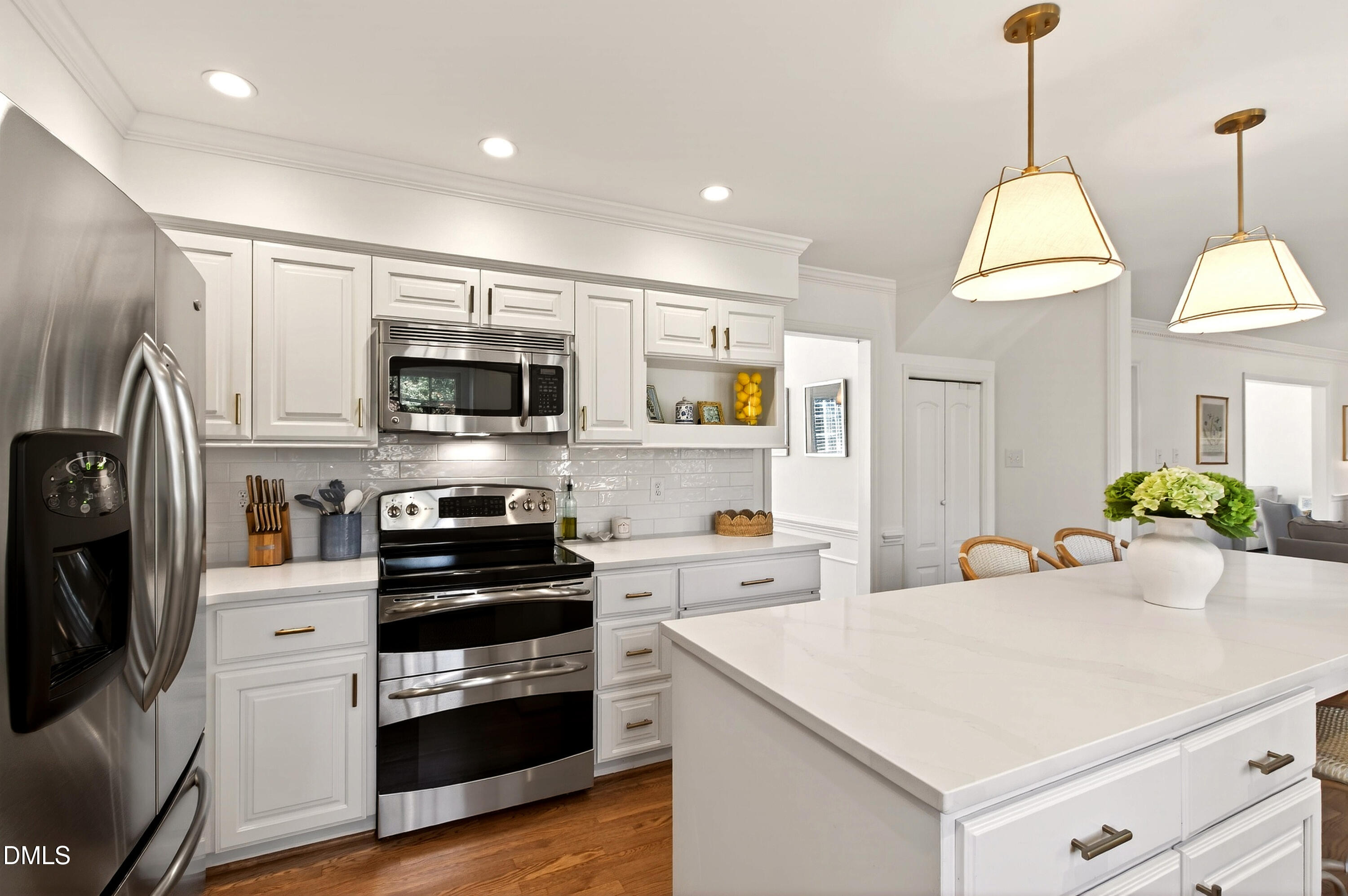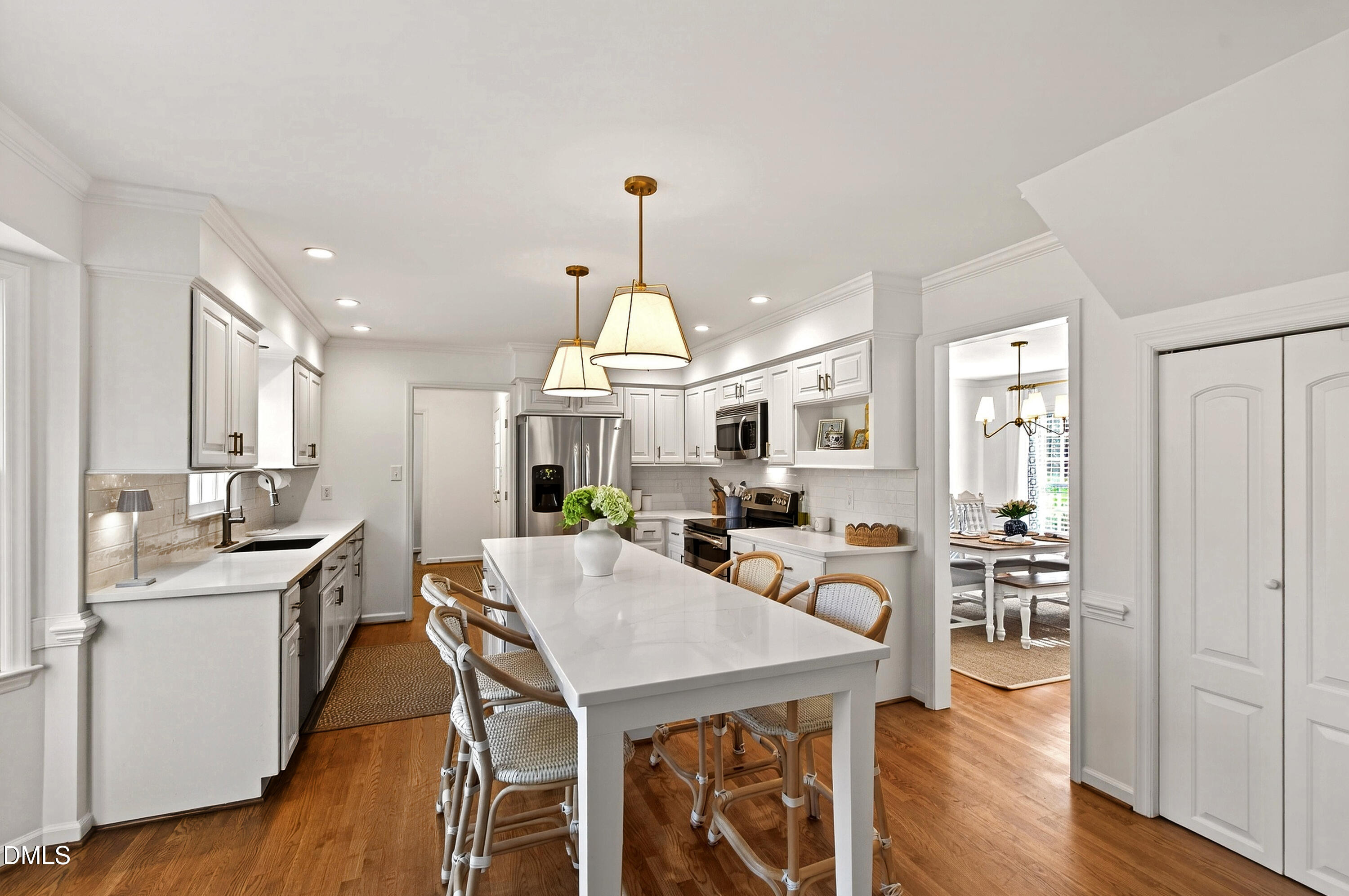 Conveniently located in Northwest Raleigh, this home has been thoughtfully updated with meticulous attention to detail throughout. Fresh paint and a reimagined layout create a bright, open feel, anchored by a beautifully updated kitchen with a large island perfect for gathering. The kitchen features white painted cabinets, new countertops, and backsplash. Hardwood floors have been added and refinished to match, tying the main level together nicely. Upstairs, you will find a large owner's suite with a spacious ensuite bath and walk-in closet. Three additional bedrooms make this home functional for a wide range of buyer needs. The bonus room provides flexible space that could work well as a playroom, office, or second living area. Out back, the fenced yard offers plenty of room to spread out, with both a patio and deck that make it easy to enjoy time outside. Nearly every corner of this home has been touched, you will not be disappointed.
