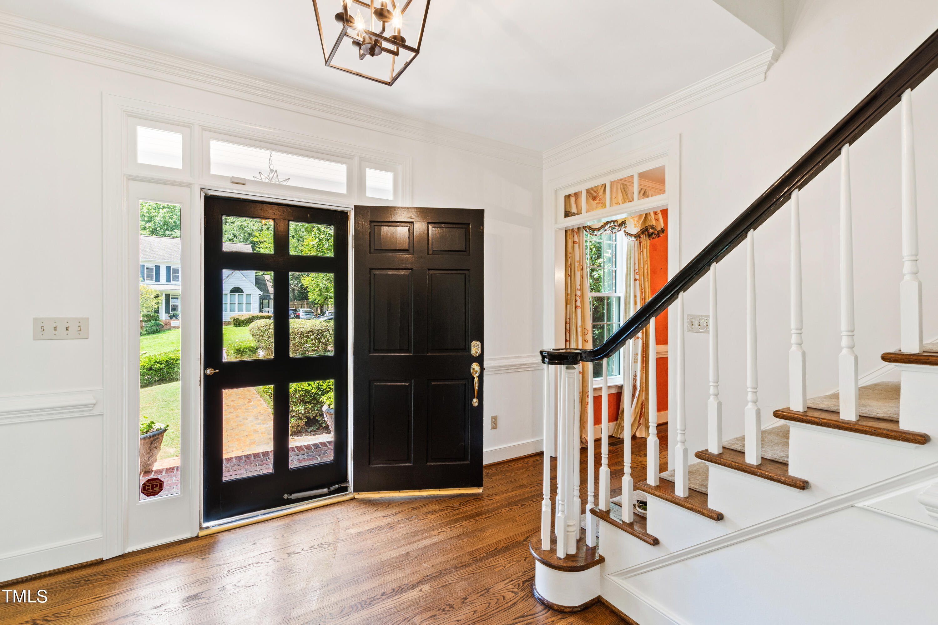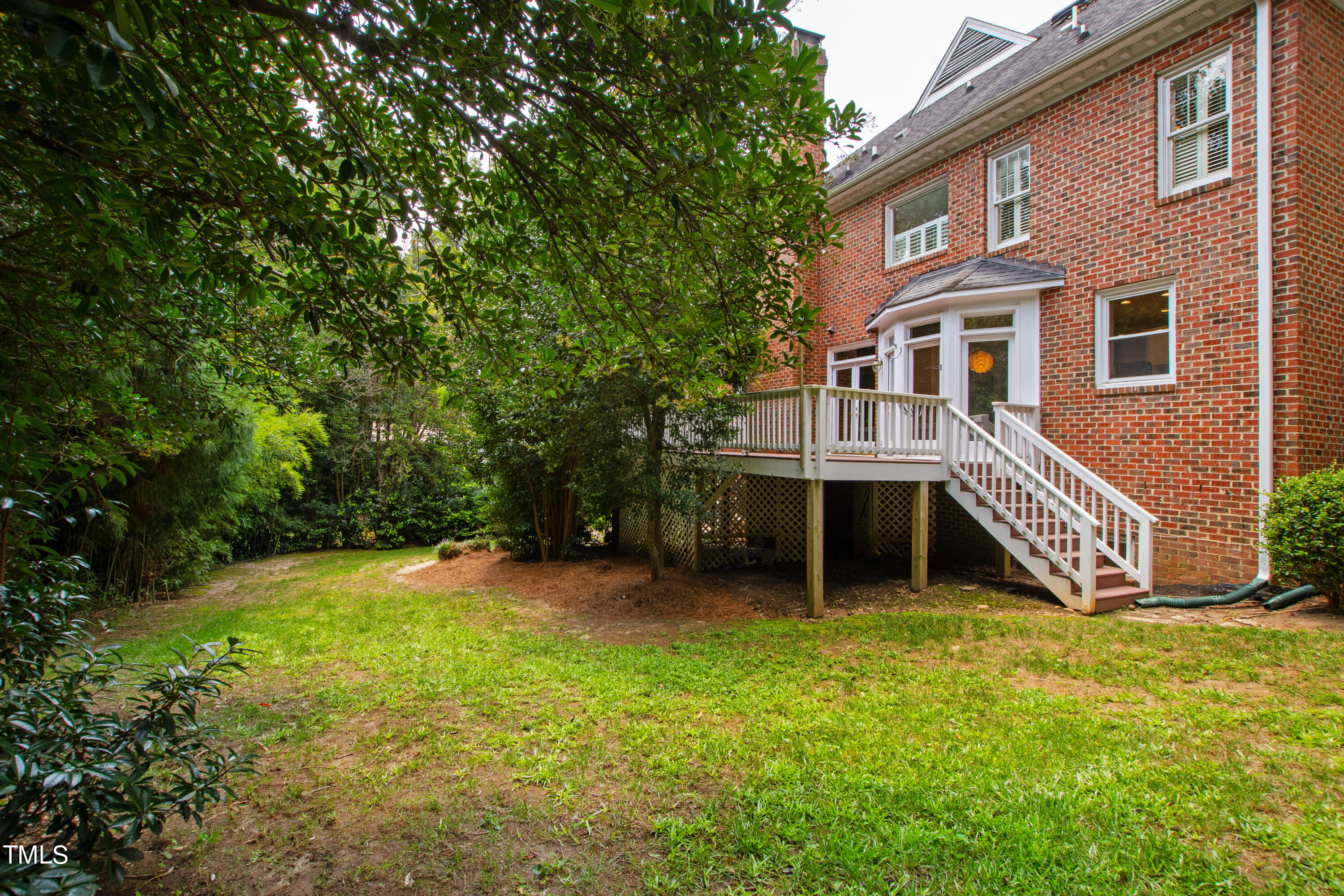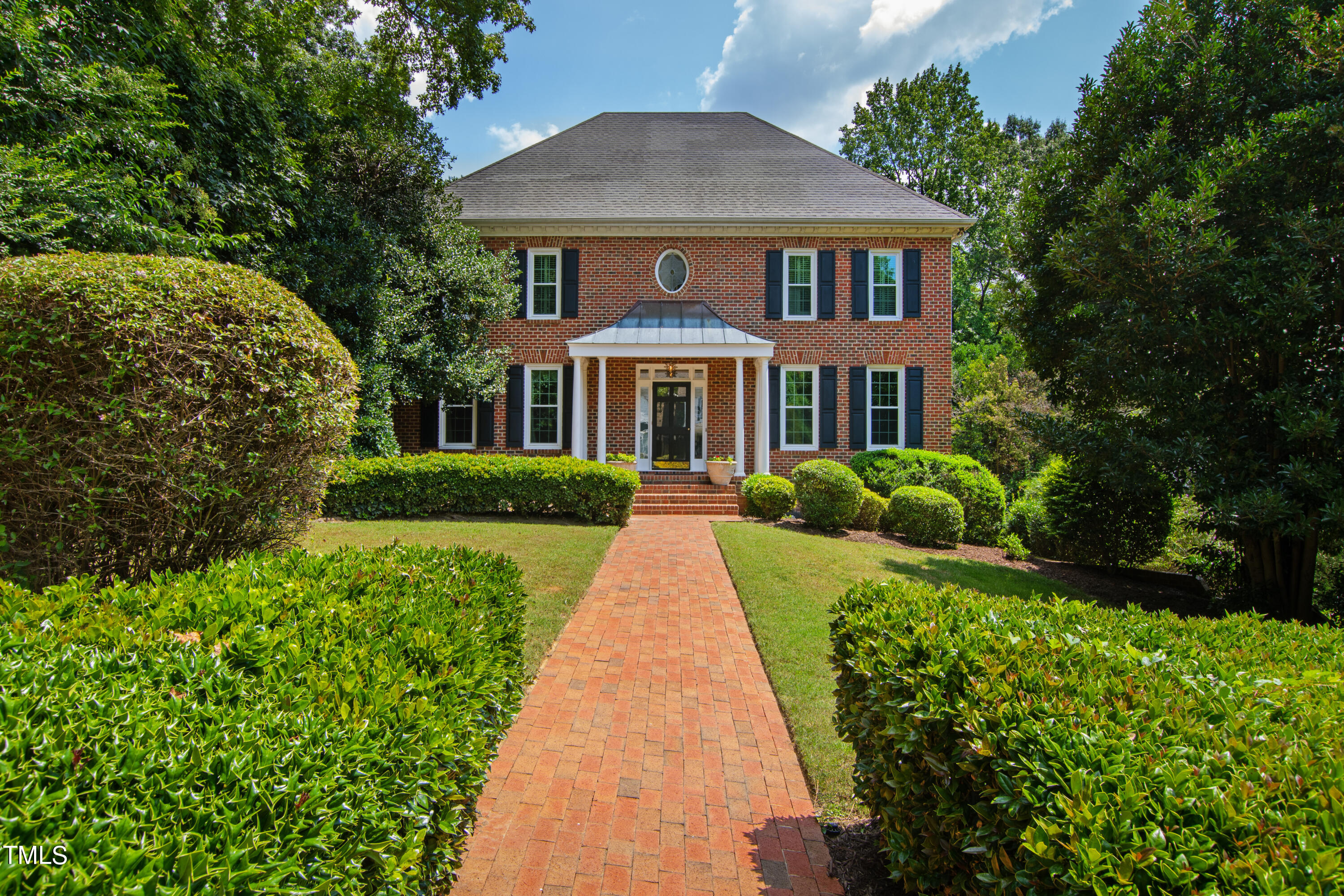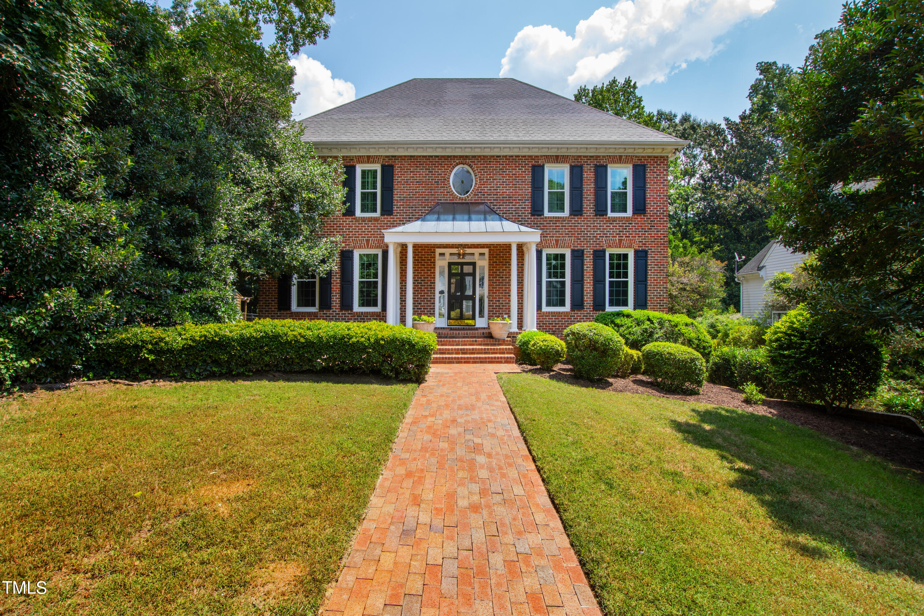Come visit this warm and inviting traditional brick two-story home located on a quaint cul-de-sac in desirable West Raleigh. Inside you will discover amenities such as 9-foot ceilings, arched doorways, window transoms, oak hardwood flooring, detailed moldings, and a 2-car garage. Recent updates include a renovated kitchen with subway tiled backsplash, marble countertops and stainless-steel appliances. The formal areas open to a gracious foyer with a flighted stairway to the second floor. The family room is spacious and features a wood-burning fireplace with a decorative mantle plus bookshelves and cabinets. The second level features three guest rooms and a primary suite with a renovated primary bath. The lower- level bonus room with a full bath is ideal for games, toys or a space for a home work-out center.