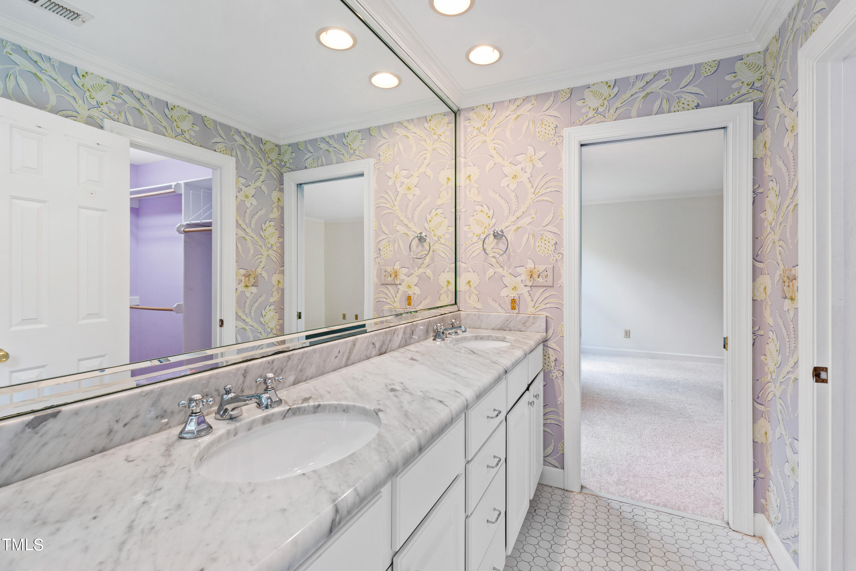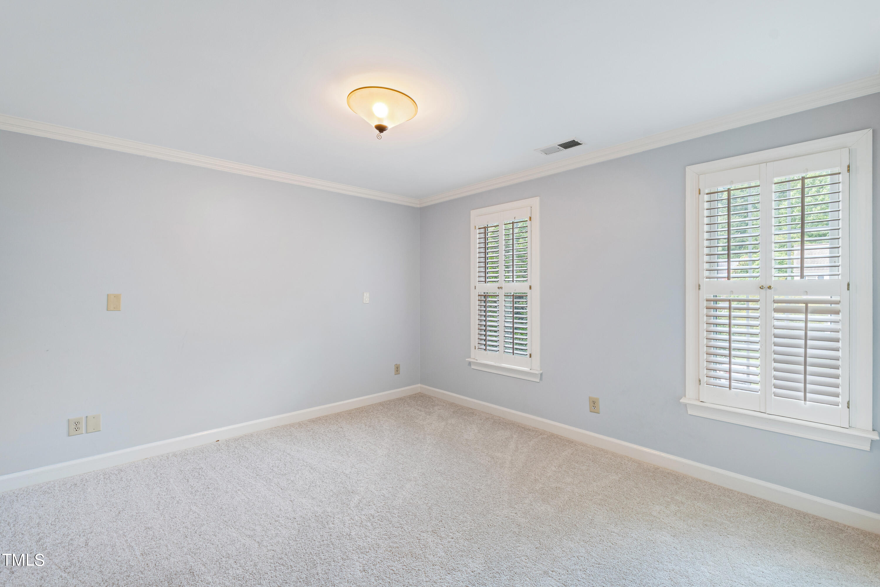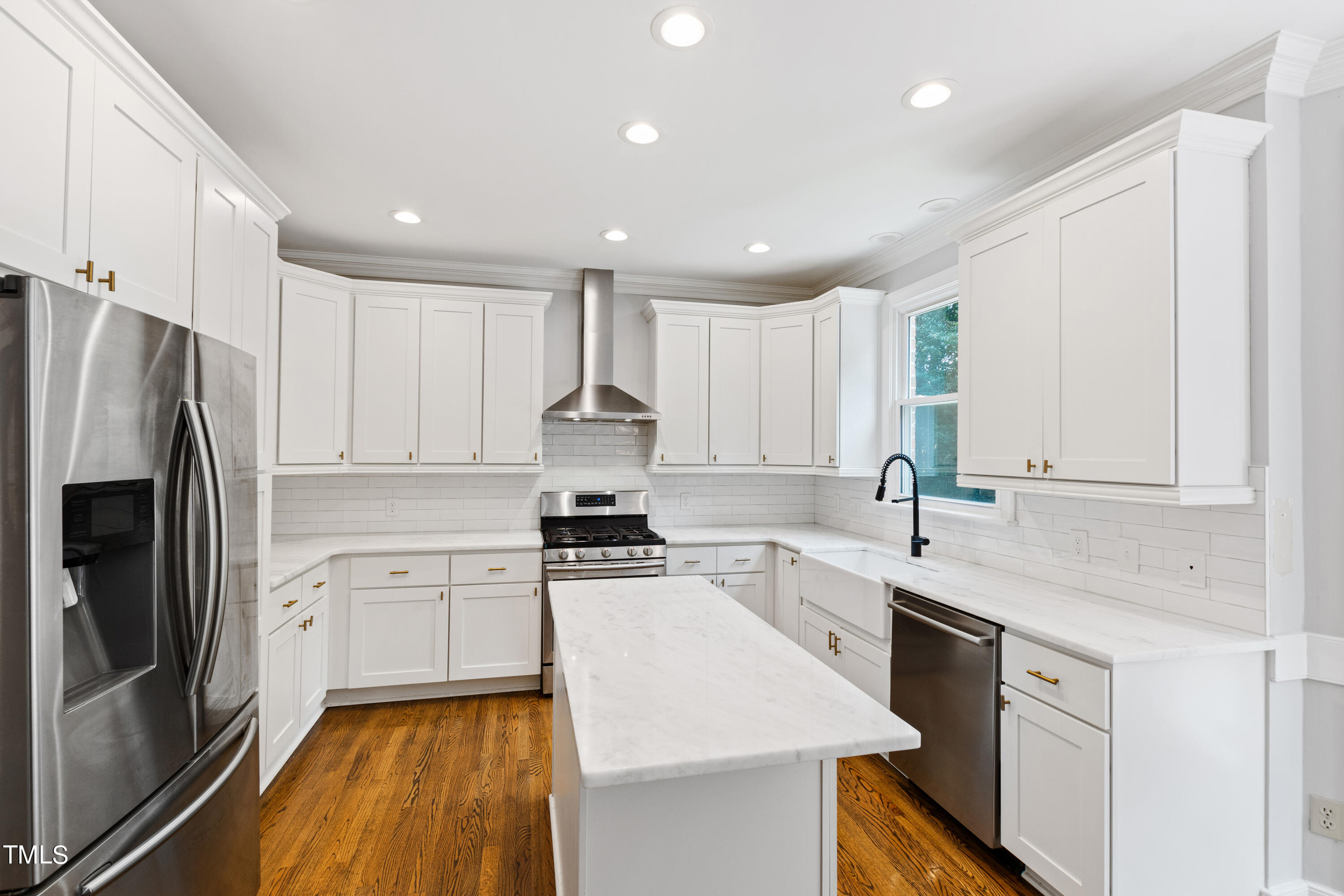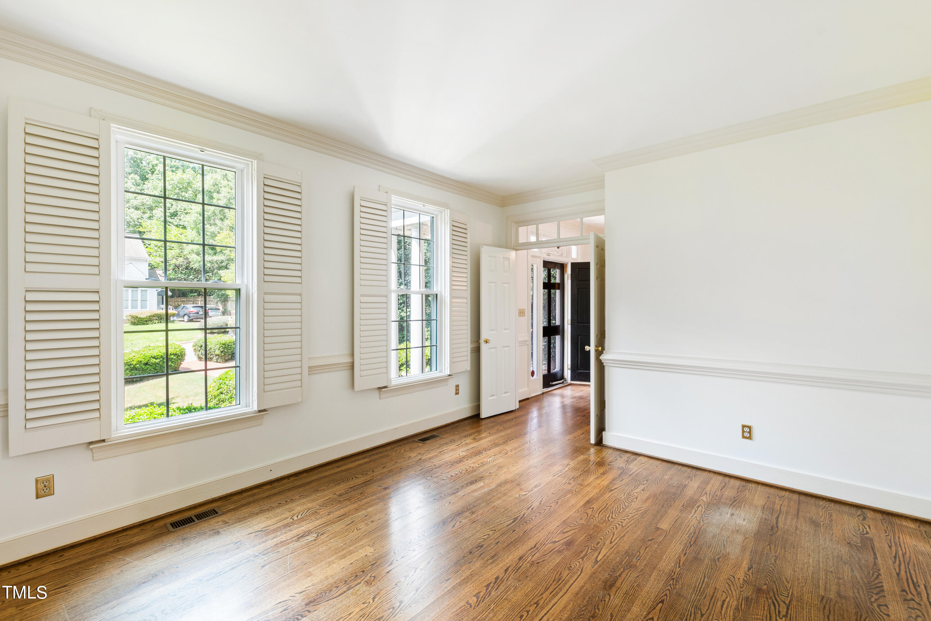 Come visit this warm and inviting traditional brick two-story home located on a quaint cul-de-sac in desirable West Raleigh. Inside you will discover amenities such as 9-foot ceilings, arched doorways, window transoms, oak hardwood flooring, detailed moldings, and a 2-car garage. Recent updates include a renovated kitchen with subway tiled backsplash, marble countertops and stainless-steel appliances. The formal areas open to a gracious foyer with a flighted stairway to the second floor. The family room is spacious and features a wood-burning fireplace with a decorative mantle plus bookshelves and cabinets. The second level features three guest rooms and a primary suite with a renovated primary bath. The lower- level bonus room with a full bath is ideal for games, toys or a space for a home work-out center.