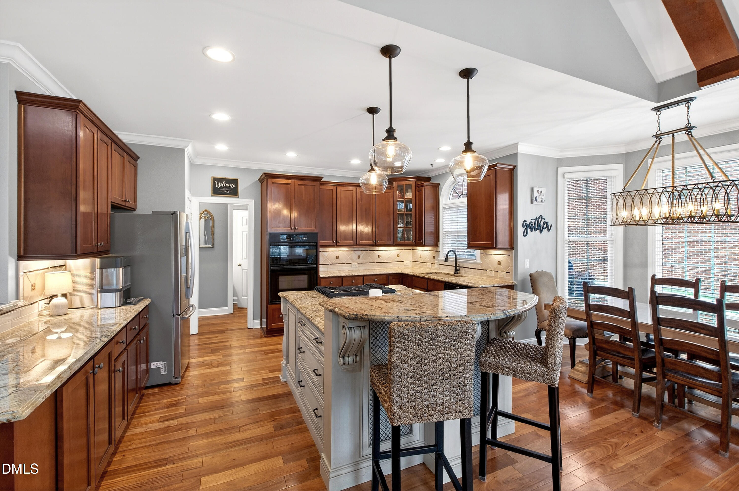 Featuring brick on three sides, a three-car garage, and a finished basement, this property offers exceptional curb appeal and versatility. The open main living and dining areas create a seamless flow, ideal for both everyday living and entertaining. Step outside to the covered deck--complete with ceiling heaters and convenient access to the gas grill--overlooking a private back yard with a gas fire pit and an invisible fence that encloses the entire yard for pets.