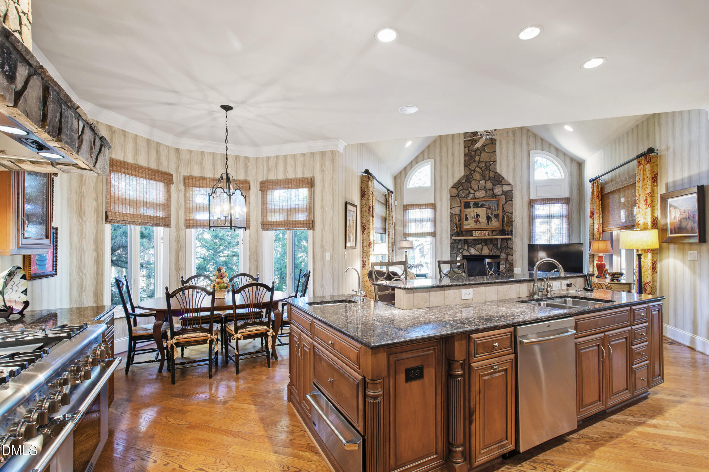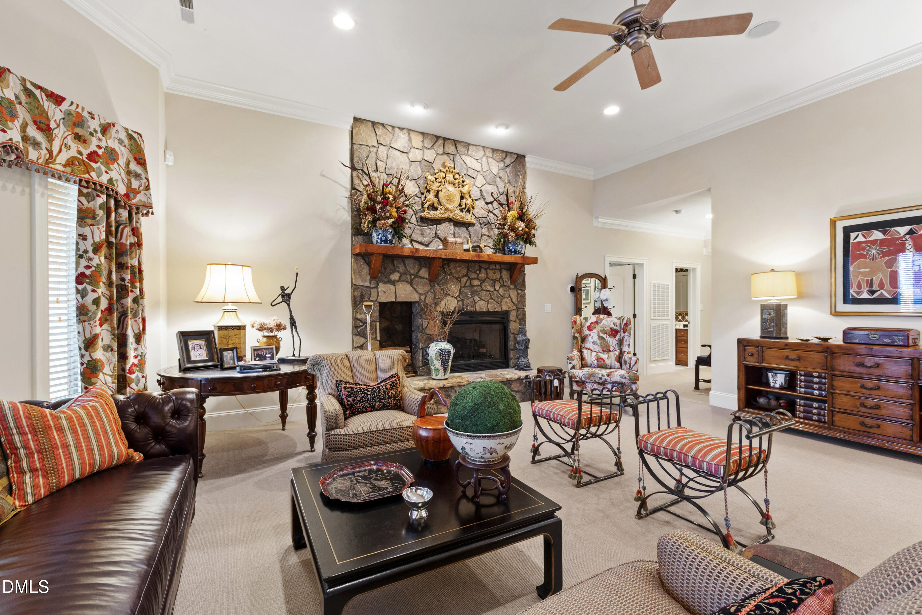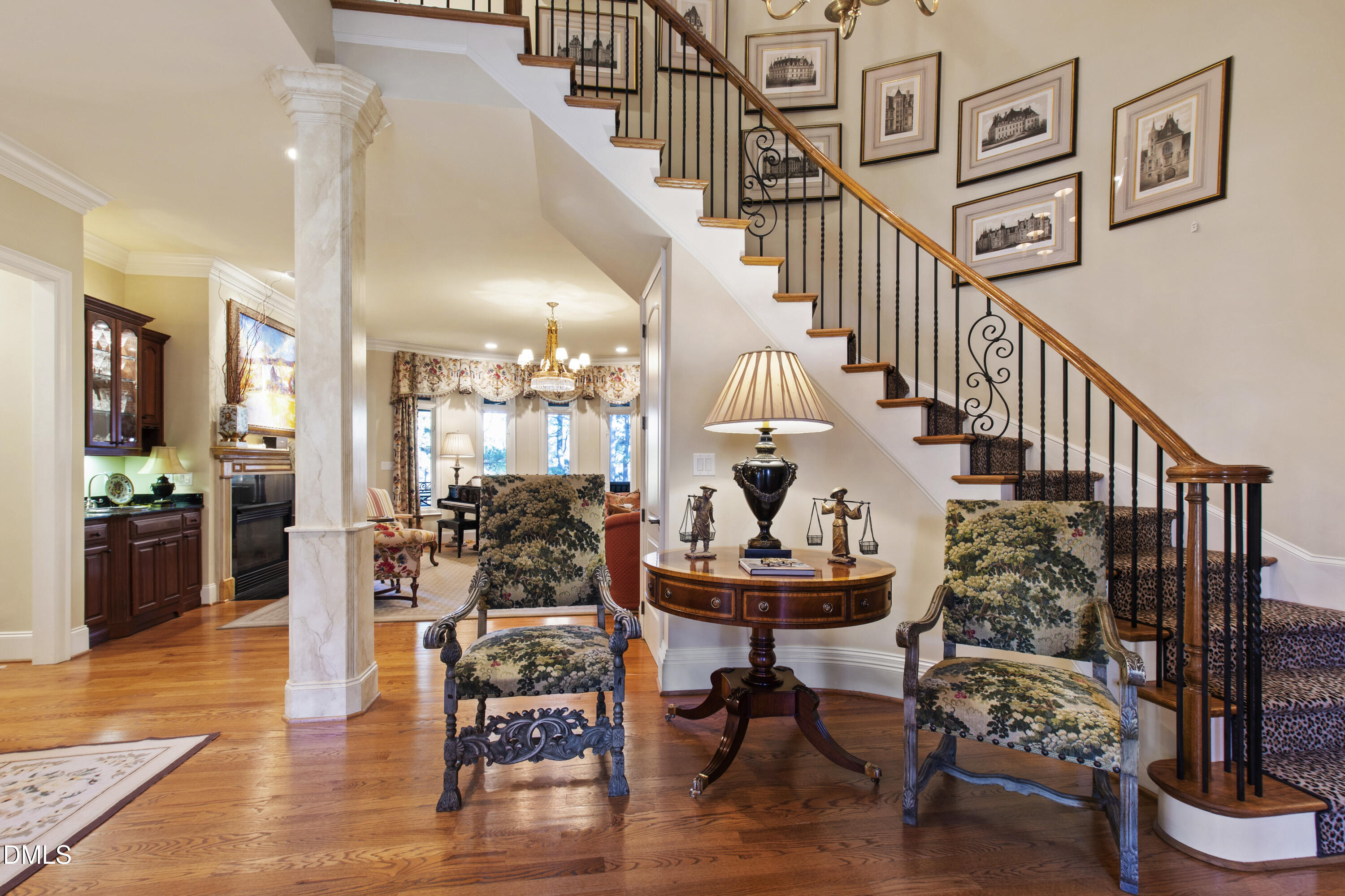 Nestled along the 5th hole of Wakefield's PGA Tour golf course, this extraordinary home blends refined elegance with resort-style living. Designed for both grand entertaining and intimate everyday moments, three levels of thoughtfully curated space offer something for everyone. The walk-out lower level feels like a private club -- complete with a billiards room, dedicated gym, wine room, English pub-style bar, and a covered patio anchored by a striking fire-and-water feature. It's an entertainer's dream and a retreat all its own. The main level offers effortless flow, with an open kitchen, catering kitchen, and expansive gathering spaces that connect seamlessly to a multi-season ghost-screened porch overlooking the course. Whether hosting a crowd or enjoying a quiet evening, the setting is unforgettable. Upstairs, ensuite bedrooms with private sitting areas and a generous bonus room provide comfort and flexibility, while architectural details, charming alcoves, and clever storage add character throughout. This is more than a home -- it's a lifestyle.