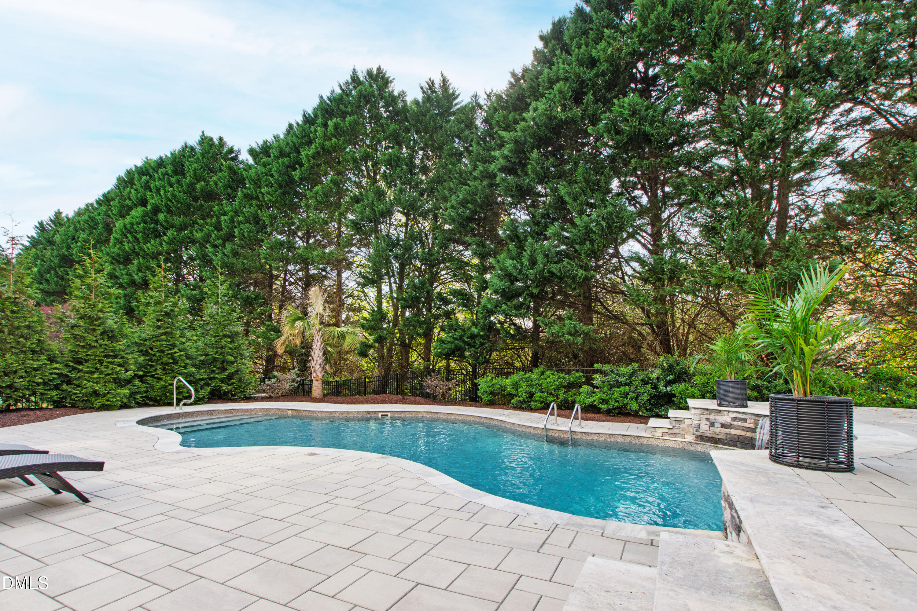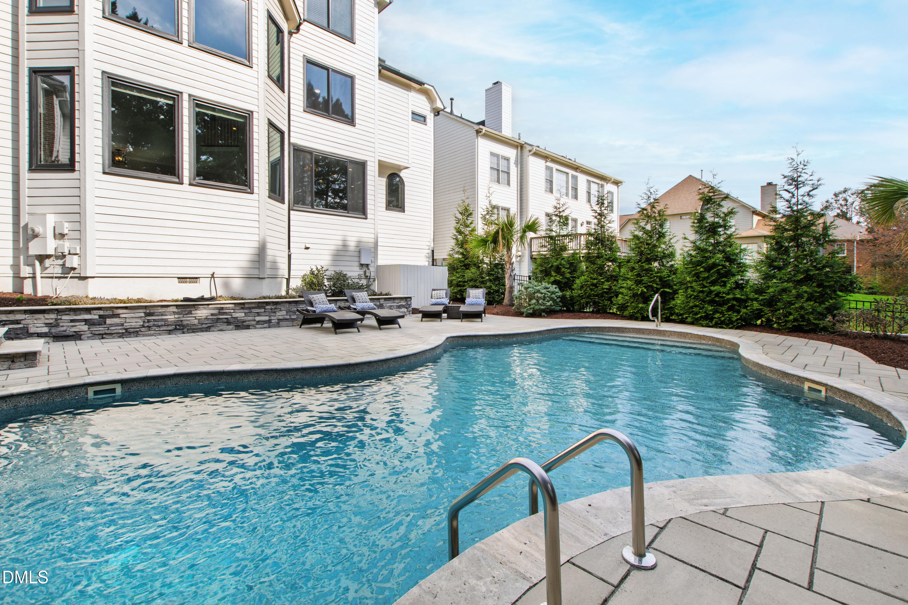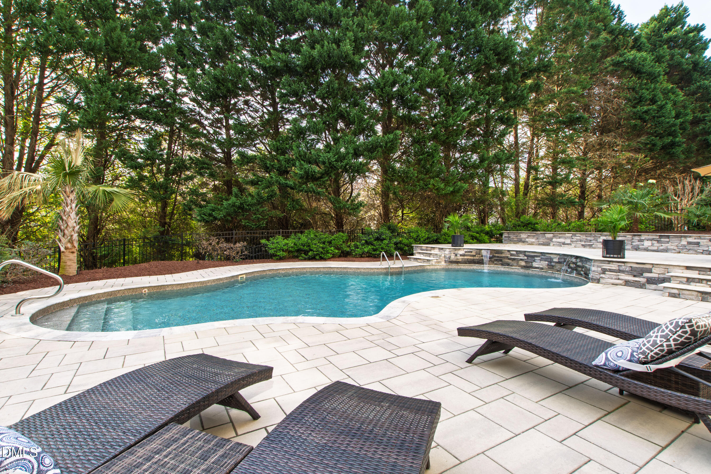 Anchored towards the end of a quiet cul-de-sac in Wakefield, elevated distinction unfolds at 12408 Cilcain Court. Enduring architectural character mixes with a carefully curated, modern refresh to create a home that feels grounded yet forward-looking. Set on a manicured, fenced-in lot, this abode's presence is both refined and memorable, offering a sense of arrival from the moment you approach. As soon as you cross the threshold, you're enveloped into a contemporary, three-level layout designed for both connection and retreat. An optimally-positioned sitting room seamlessly flows into a striking dining room space, creating an easy rhythm for everyday life and effortless entertaining. At the center of the home, a thoughtfully redesigned kitchen brings together form and function, featuring a central island with gas cooktop, crisp white granite surfaces, a sleek backsplash, and stainless steel appliances. This heart of the home then effortlessly flows into a dramatic two-story family room, where expansive windows invite endless natural light. As you make your way upstairs, you're greeted by a true escape in the primary suite, complete with three walk-in closets and a private balcony. Three additional generously sized bedrooms, each with a dedicated ensuite, offer comfort and separation in equal measure. The third floor presents a flexible bonus area ideally positioned for a media room, office, or creative space - the opportunities truly have no bounds. Escape to the backyard where the experience becomes unparalleled. A stunning pool with an impressive waterfall feature is surrounded by extensive, layered stonework and expansive patio space perfectly designed for gathering or unwinding. A covered side porch provides a quiet setting for enjoying North Carolina evenings, while integrated storage throughout keeps everyday items discreetly tucked away. Recent enhancements reflect the significant investment and care of this home's current owners, including the installation of top-of-the-range windows and doors, a newly replaced driveway, hardwood flooring added to the upper level, and custom cabinetry in the primary closets. Additional upgrades such as epoxy garage flooring, exterior lighting, a water heater replacement in 2023, further contribute to the home's condition and livability. Meticulously maintained and extensively enhanced, 12408 Cilcain Court offers a rare combination of substance and style - customly crafted for those who appreciate quality without compromise.