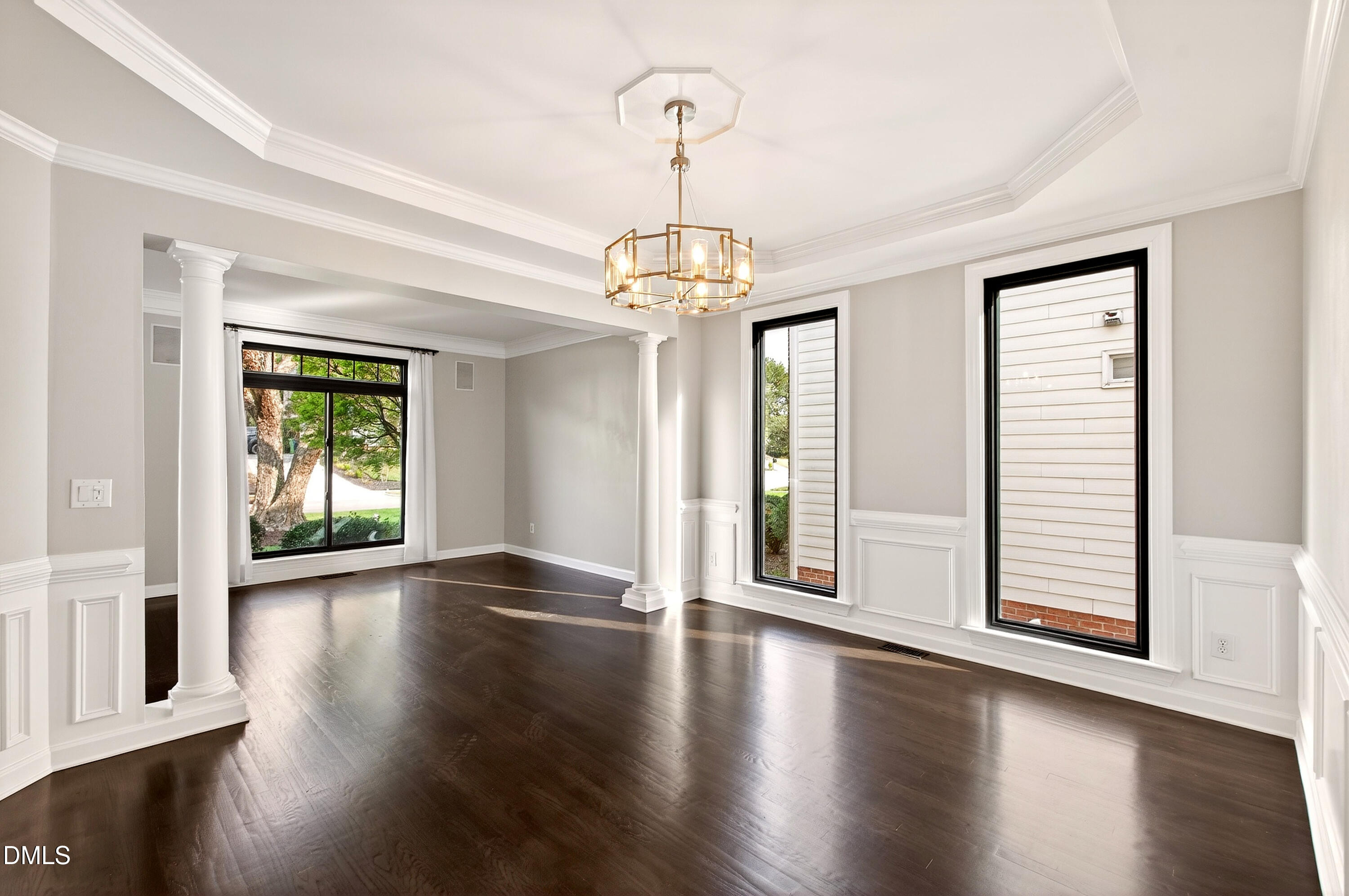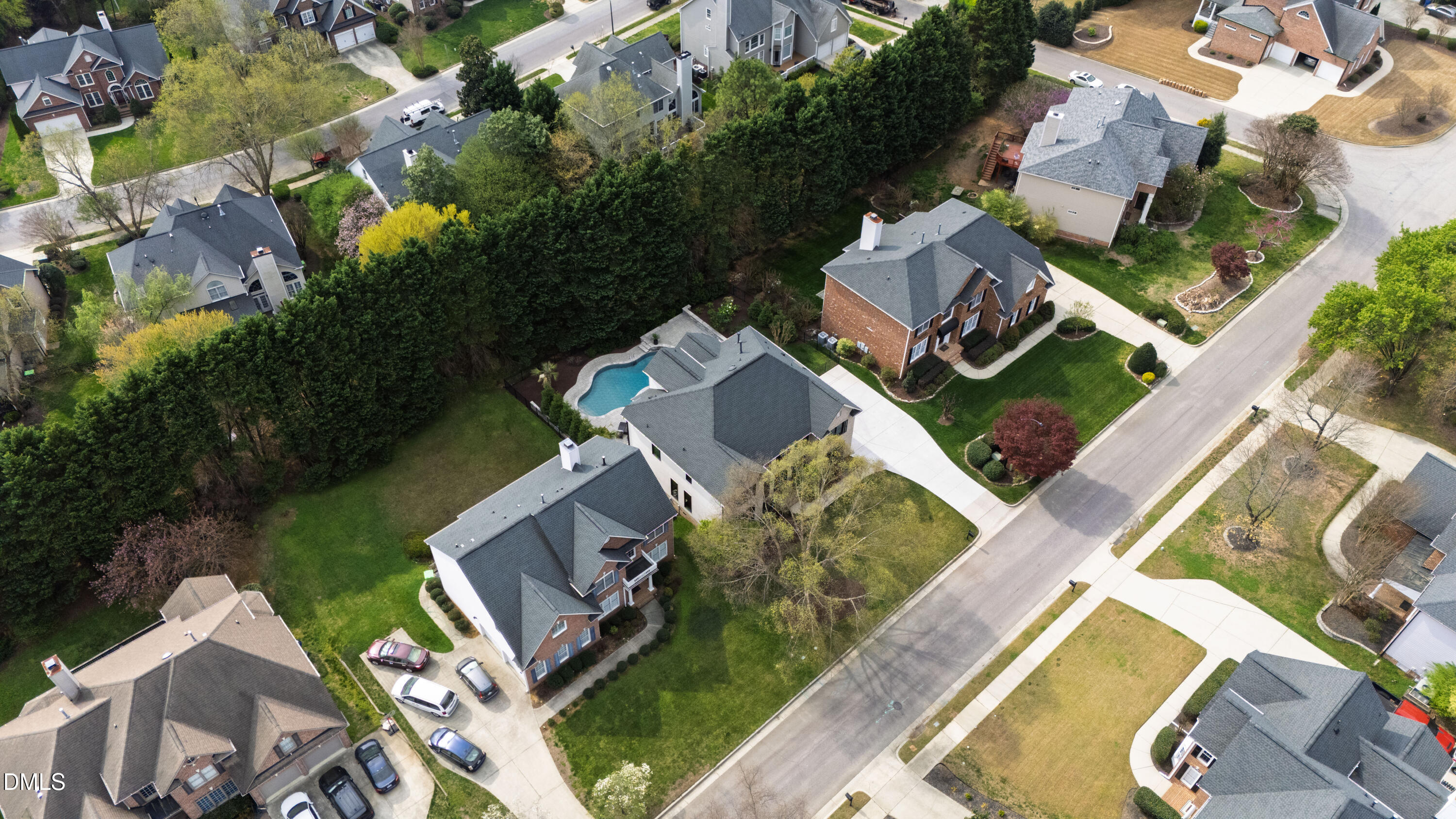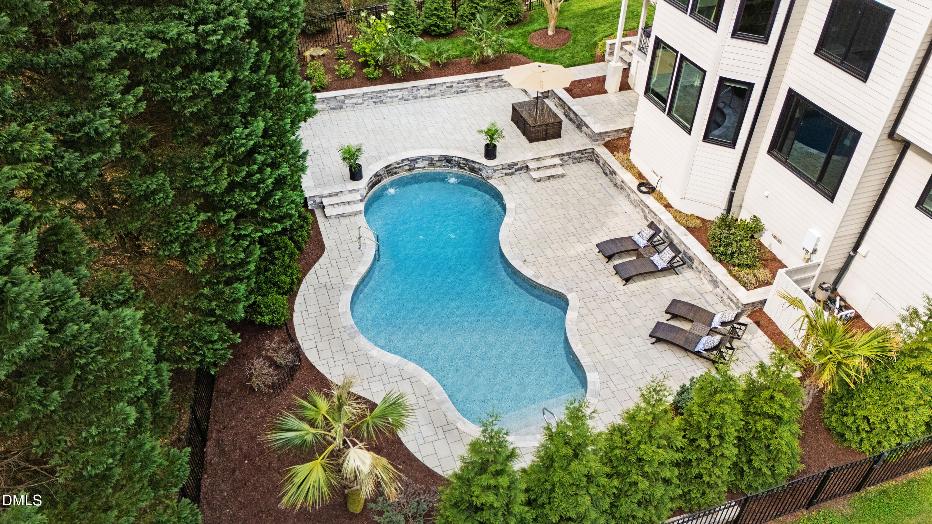 Anchored towards the end of a quiet cul-de-sac in Wakefield, elevated distinction unfolds at 12408 Cilcain Court. Enduring architectural character mixes with a carefully curated, modern refresh to create a home that feels grounded yet forward-looking. Set on a manicured, fenced-in lot, this abode's presence is both refined and memorable, offering a sense of arrival from the moment you approach. As soon as you cross the threshold, you're enveloped into a contemporary, three-level layout designed for both connection and retreat. An optimally-positioned sitting room seamlessly flows into a striking dining room space, creating an easy rhythm for everyday life and effortless entertaining. At the center of the home, a thoughtfully redesigned kitchen brings together form and function, featuring a central island with gas cooktop, crisp white granite surfaces, a sleek backsplash, and stainless steel appliances. This heart of the home then effortlessly flows into a dramatic two-story family room, where expansive windows invite endless natural light. As you make your way upstairs, you're greeted by a true escape in the primary suite, complete with three walk-in closets and a private balcony. Three additional generously sized bedrooms, each with a dedicated ensuite, offer comfort and separation in equal measure. The third floor presents a flexible bonus area ideally positioned for a media room, office, or creative space - the opportunities truly have no bounds. Escape to the backyard where the experience becomes unparalleled. A stunning pool with an impressive waterfall feature is surrounded by extensive, layered stonework and expansive patio space perfectly designed for gathering or unwinding. A covered side porch provides a quiet setting for enjoying North Carolina evenings, while integrated storage throughout keeps everyday items discreetly tucked away. Recent enhancements reflect the significant investment and care of this home's current owners, including the installation of top-of-the-range windows and doors, a newly replaced driveway, hardwood flooring added to the upper level, and custom cabinetry in the primary closets. Additional upgrades such as epoxy garage flooring, exterior lighting, a water heater replacement in 2023, further contribute to the home's condition and livability. Meticulously maintained and extensively enhanced, 12408 Cilcain Court offers a rare combination of substance and style - customly crafted for those who appreciate quality without compromise.