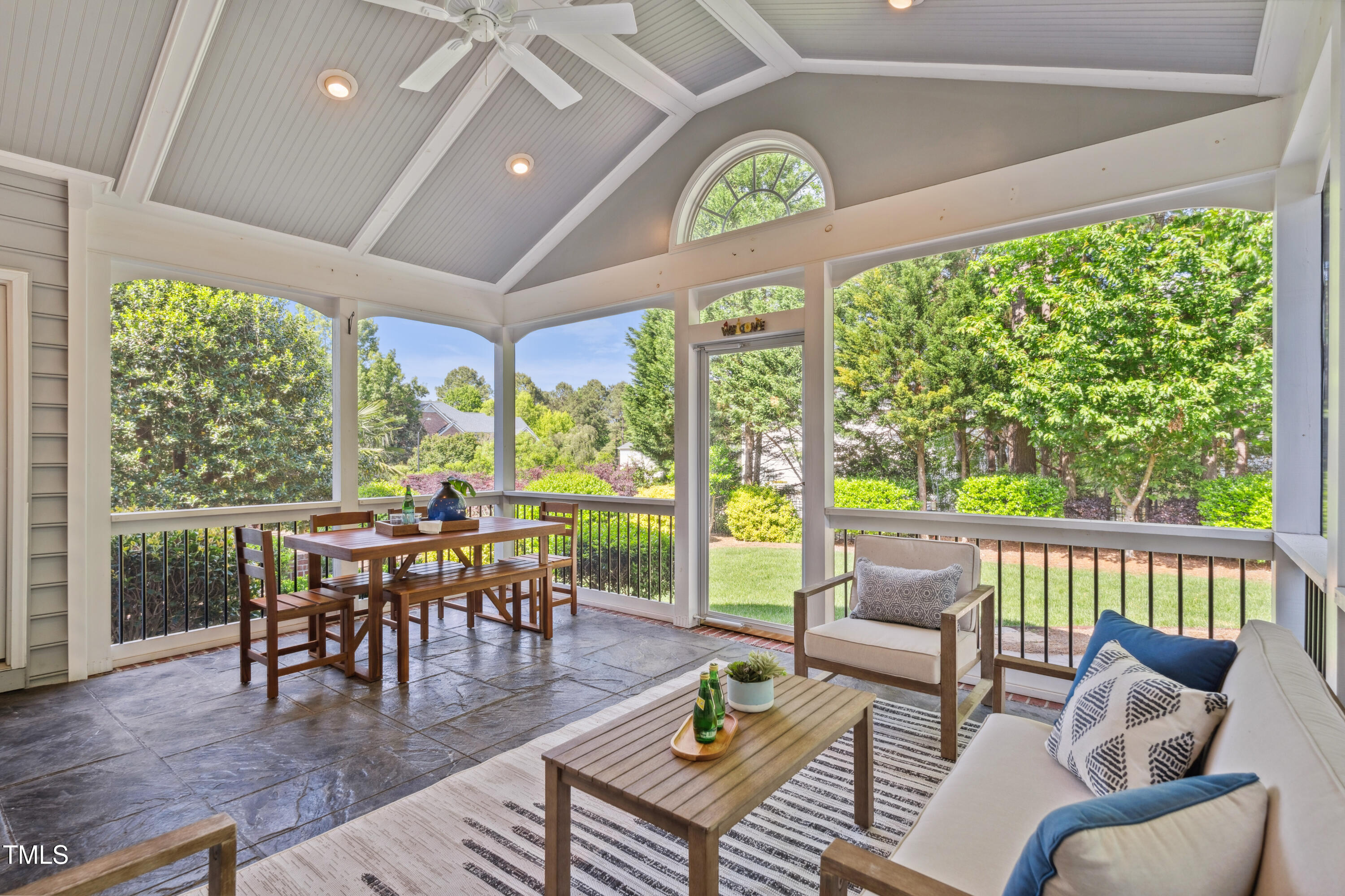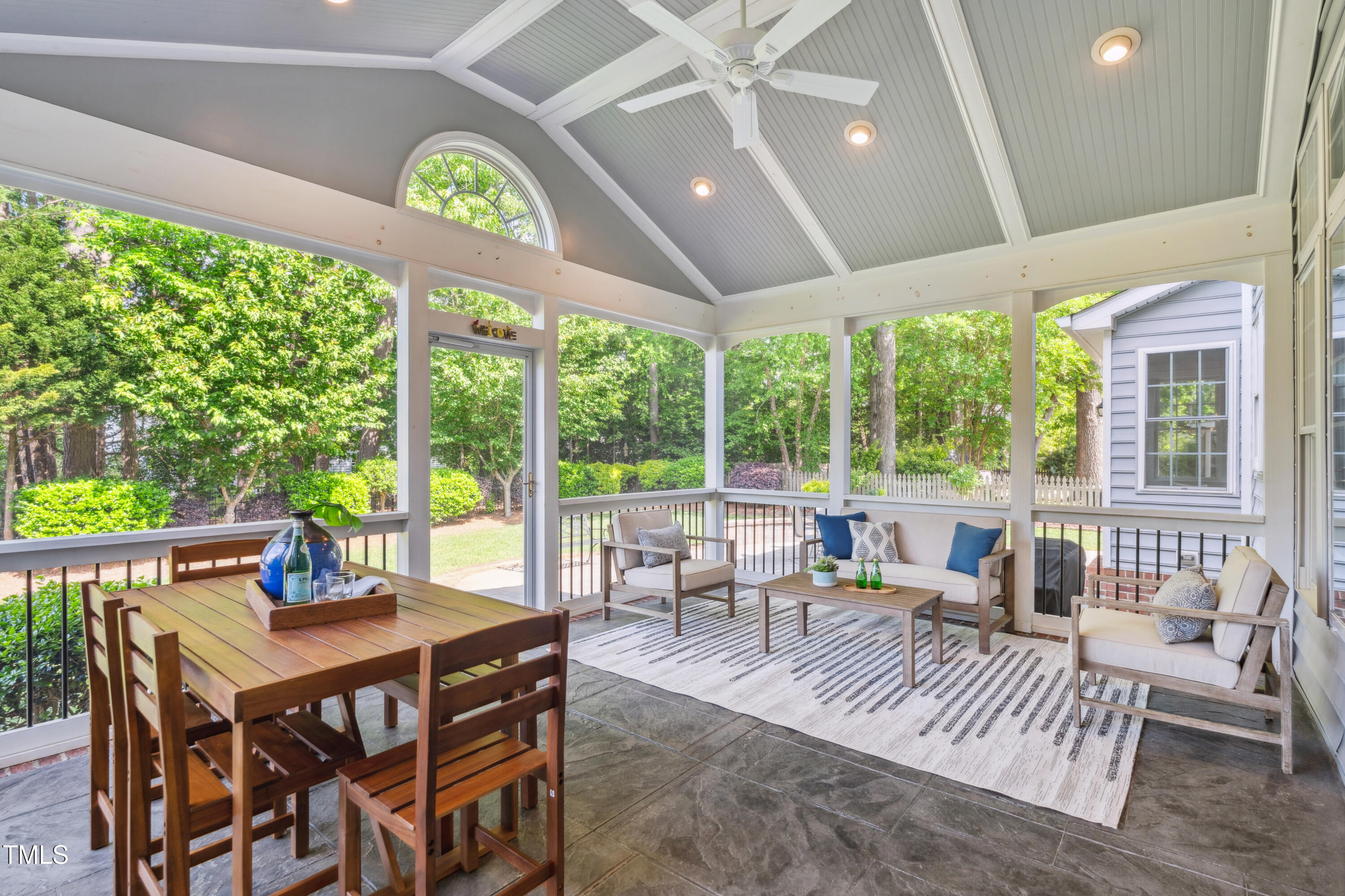 A versatile main-level den provides the ideal space for movie nights or easily converts into a fifth bedroom. Step outside to your expansive screened-in porch or your finished sunroom with natural brick flooring and enjoy peaceful evenings overlooking the professionally hardscaped patio and lush, manicured lawn.