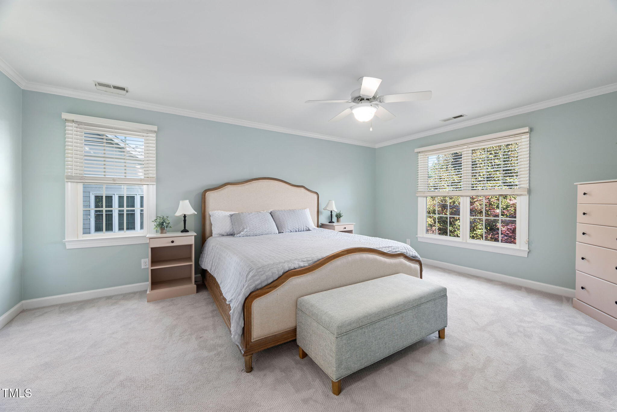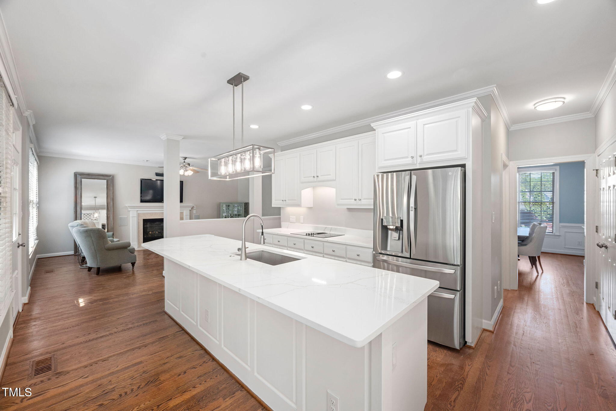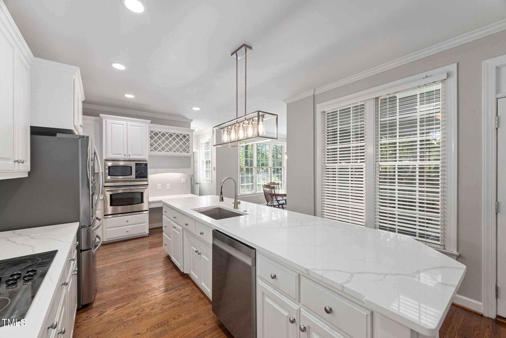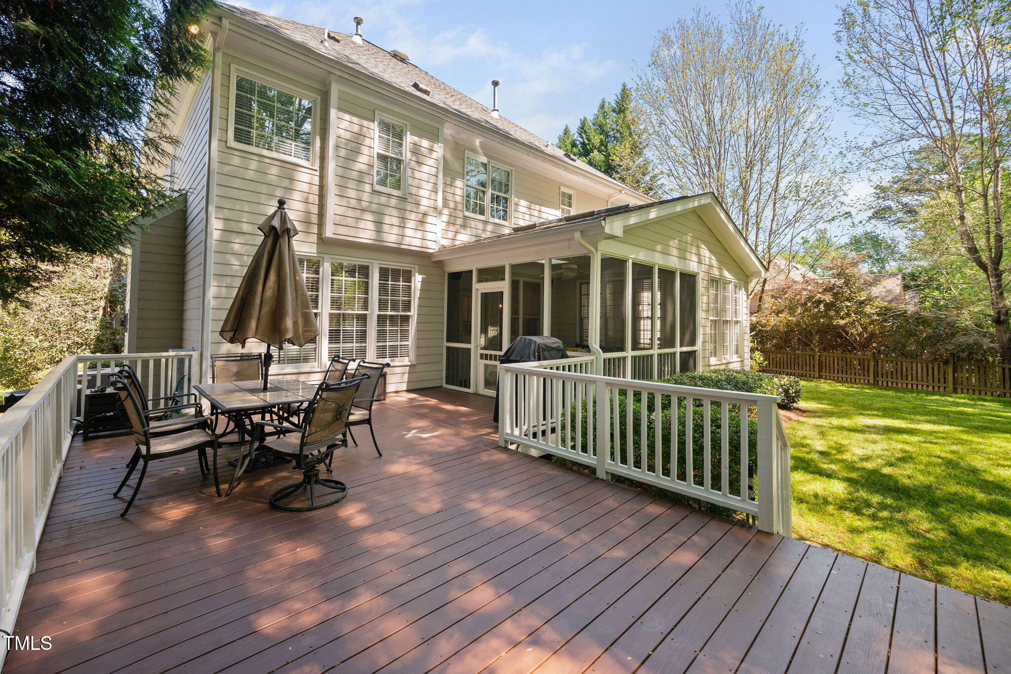 Welcome to this stunning Dixon-Kirby home at Cambridge at Regency. Step inside, the office or flex space, located to the right, boasts privacy doors adorned with decorative glass archways. On the left, is a formal dining room, ideal for entertaining. Traditional inviting entryway plus a staircase leads to the newly installed carpet upstairs. New paint throughout! The kitchen is a chef's dream w/fresh white cabinets, new quartz countertops, an oversized island, eat-in bar seating, SS appliances, large pantry & casual eating sunroom. A convenient first-floor laundry room includes a sink, cabinets plus a laundry chute. 1st floor w/refinished hardwoods and a family room with a fireplace focal point. The primary suite on the second floor offers a large WIC & an ensuite bathroom with dual sinks, new quartz countertops, jacuzzi tub, and sep shower. The 2nd floor also features 3 additional BRs, 1 BR with private bath & 2 BR's sharing a bath with dual sinks & tub/shower. Spacious bonus room with back stair access while the walk-up attic offers plenty of storage. A dual front-load 2 car garage with an electric charging station and garage sink. Private flat fenced backyard with a shed. Relax in the peaceful screened porch or enjoy a spacious deck. As part of the Regency community, you'll have access to a swim team, 2 neighborhood pools, tennis/pickleball courts, and miles of walking trails.