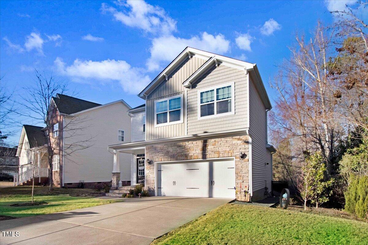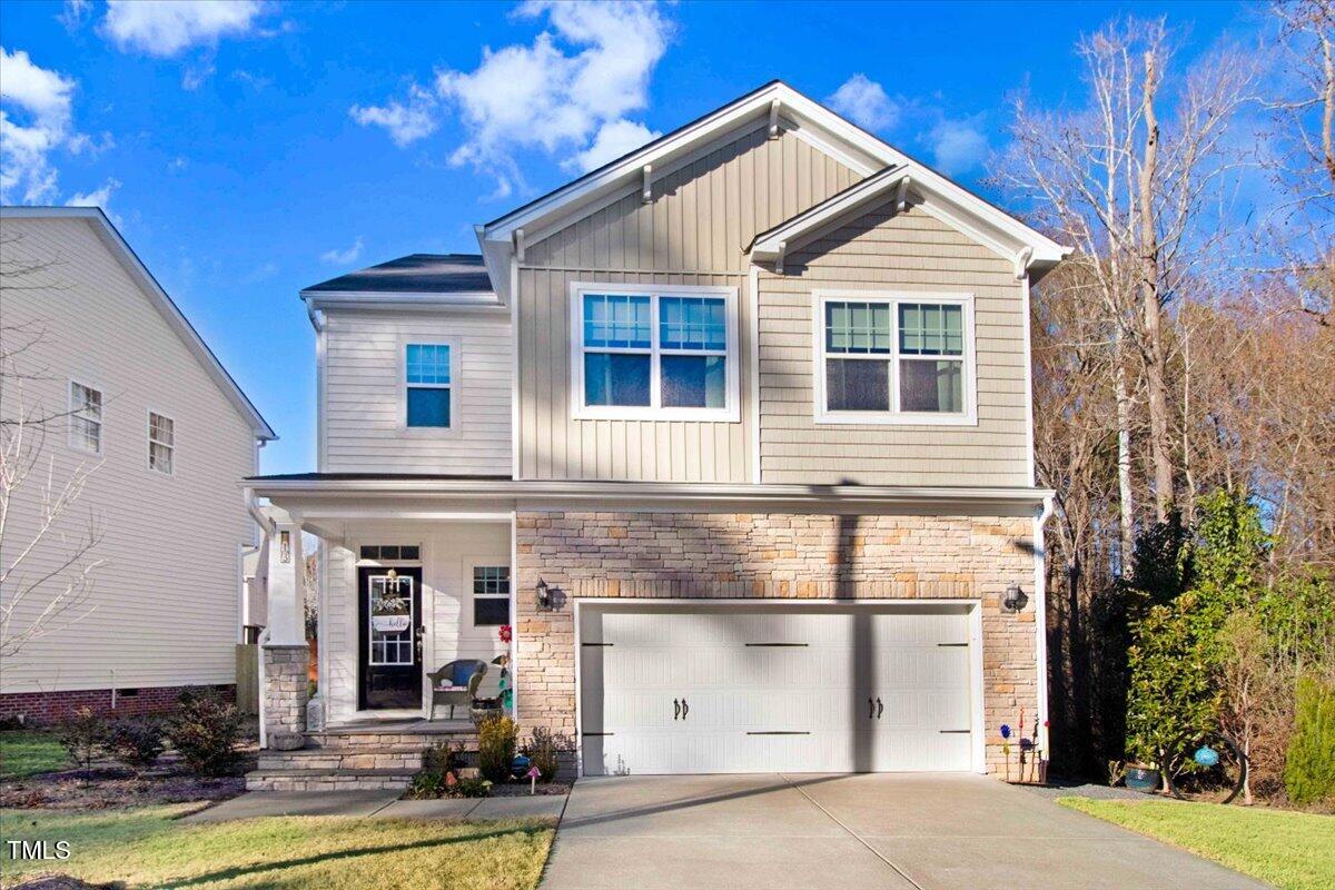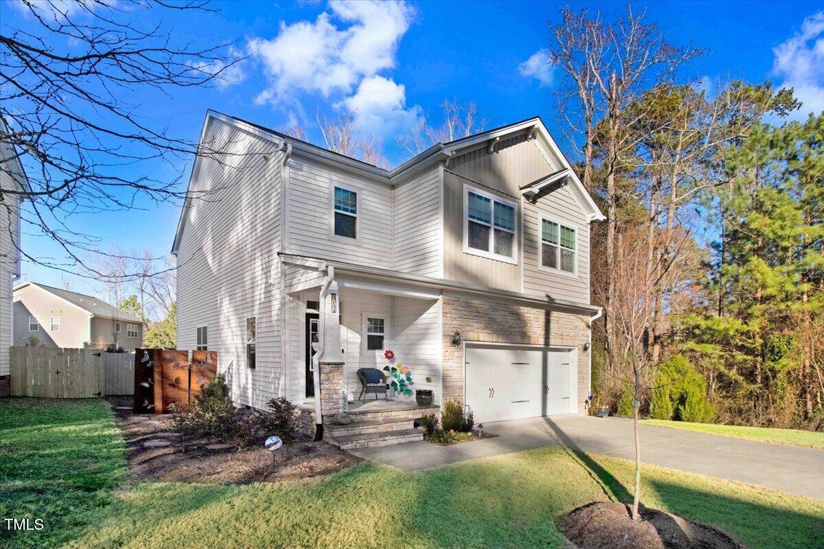 Welcome to your dream home! This beautifully maintained modern suburban gem with 2 car garage with ample storage. Clean lines, mix of siding and stonework, large windows 3 BR 2.5 BA home features the perfect blend of comfort, serenity and proximity to everything. Cozy front porch, neutral paint palette and gas fireplace is ideal for gathering. Open floorplan with generous primary suite upstairs. California Closets recently added have added smart storage and organized living. Slatwall garage storage, New Ceiling fans in BR, Newly added paver patio and architectural fencing allows the aesthetics and wildlife that is abundant in this peaceful culdesac. This home has a filter free top of the line HVAC system just installed (no maintenance) Includes a whole home Generac generator. New Washer/Dryer/Range. Say YES to this house! Seller planning to swap out refrigerator. Located .3 mi from American Tobacco Trail for cycling and walking!