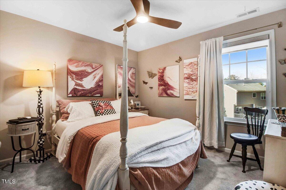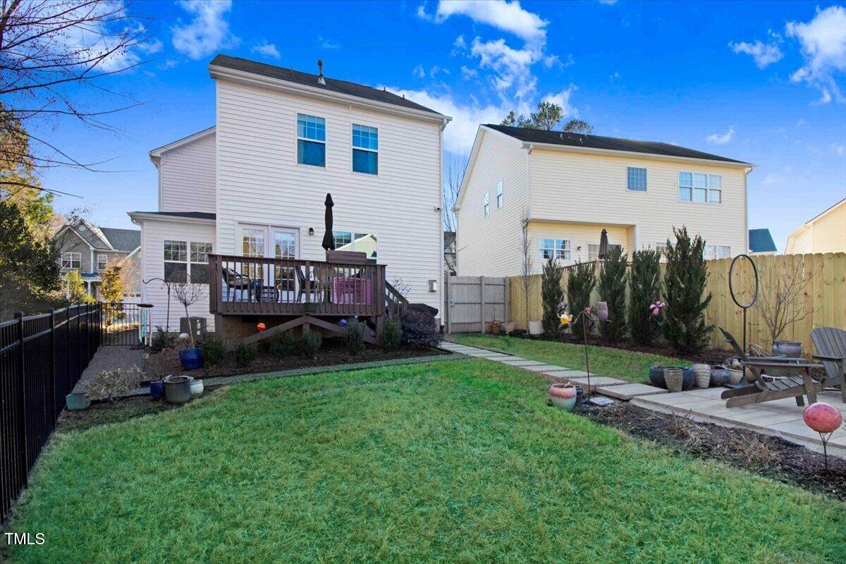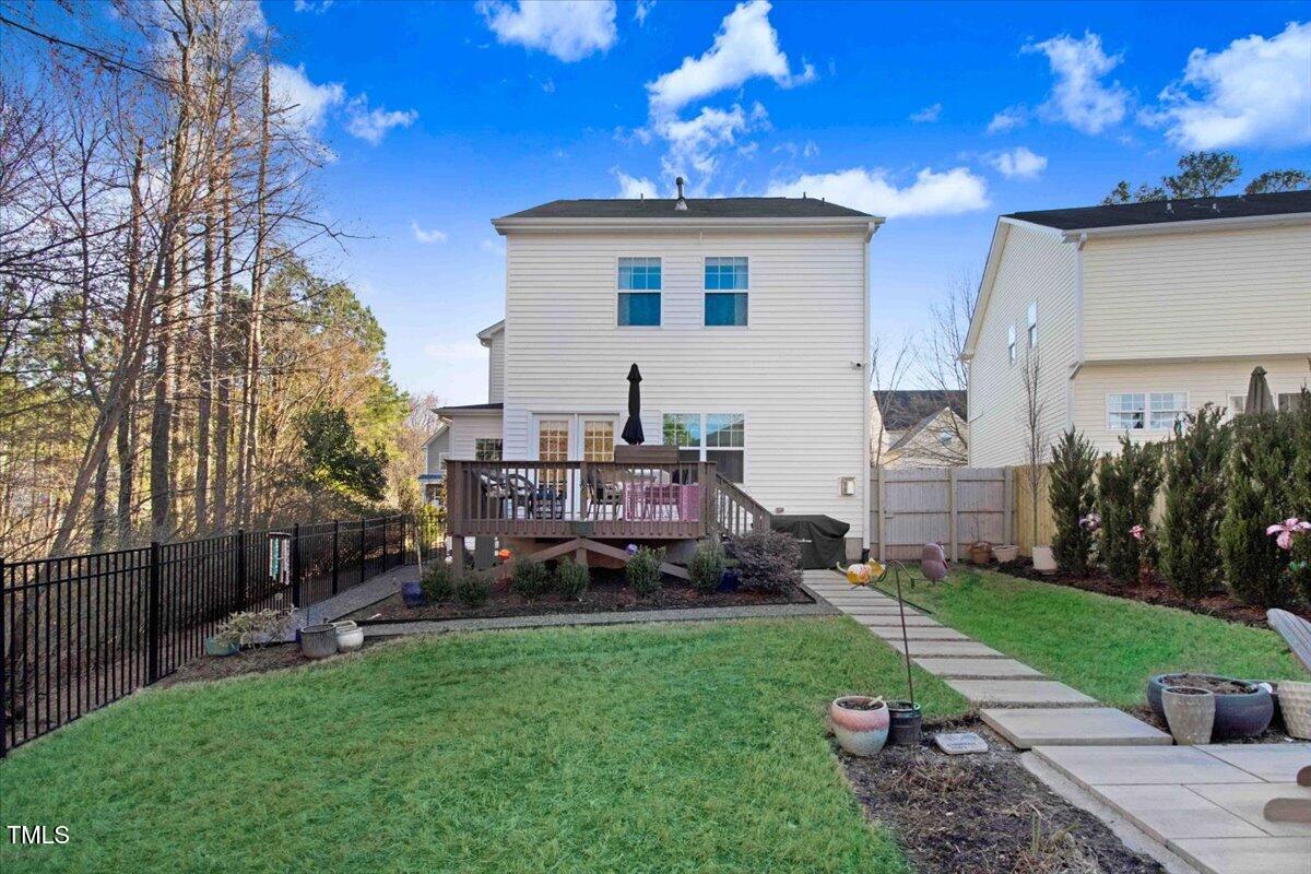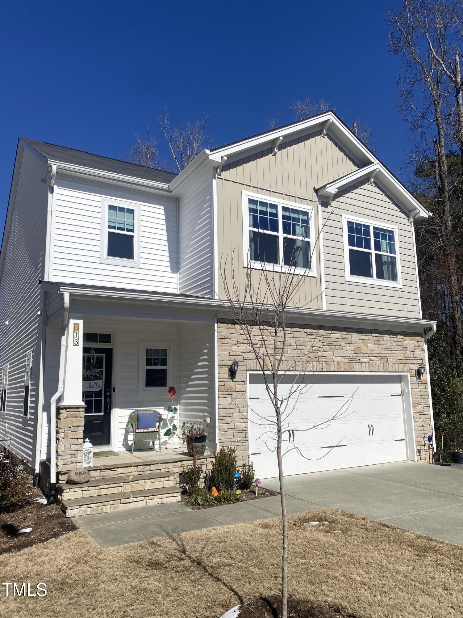 Welcome to your dream home! This beautifully maintained modern suburban gem with 2 car garage with ample storage. Clean lines, mix of siding and stonework, large windows 3 BR 2.5 BA home features the perfect blend of comfort, serenity and proximity to everything. Cozy front porch, neutral paint palette and gas fireplace is ideal for gathering. Open floorplan with generous primary suite upstairs. California Closets recently added have added smart storage and organized living. Slatwall garage storage, New Ceiling fans in BR, Newly added paver patio and architectural fencing allows the aesthetics and wildlife that is abundant in this peaceful culdesac. This home has a filter free top of the line HVAC system just installed (no maintenance) Includes a whole home Generac generator. New Washer/Dryer/Range. Say YES to this house! Seller planning to swap out refrigerator. Located .3 mi from American Tobacco Trail for cycling and walking!