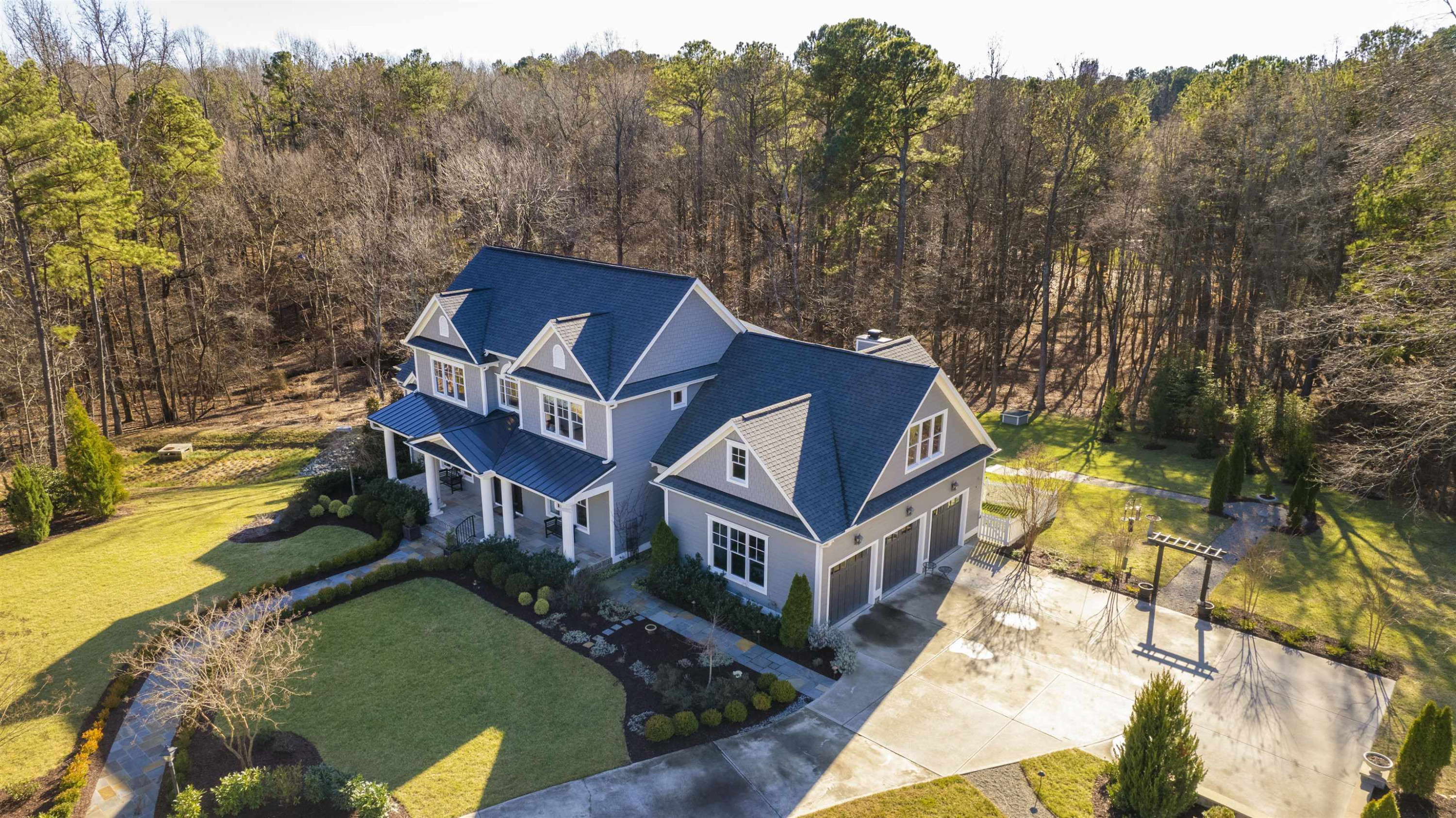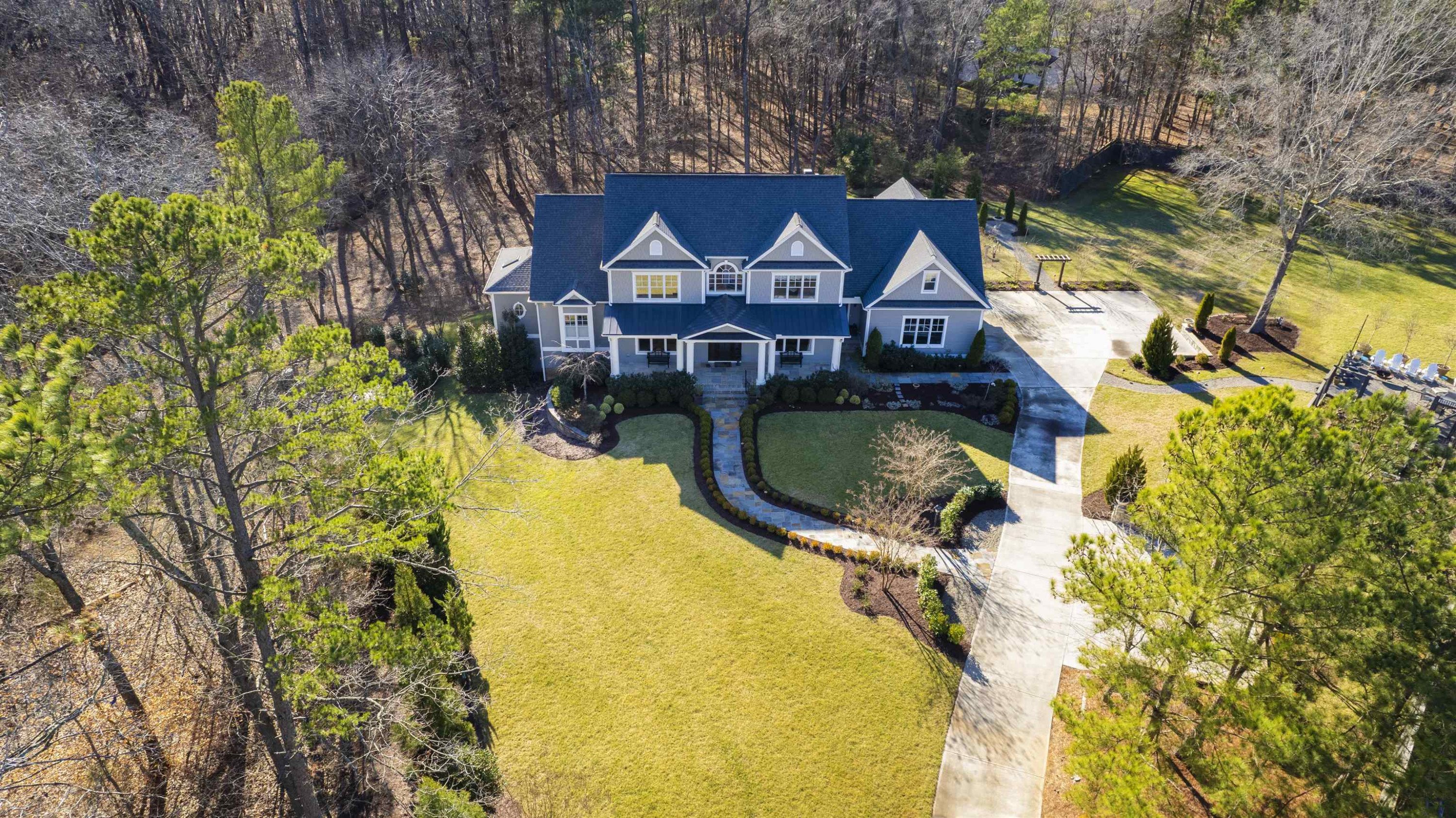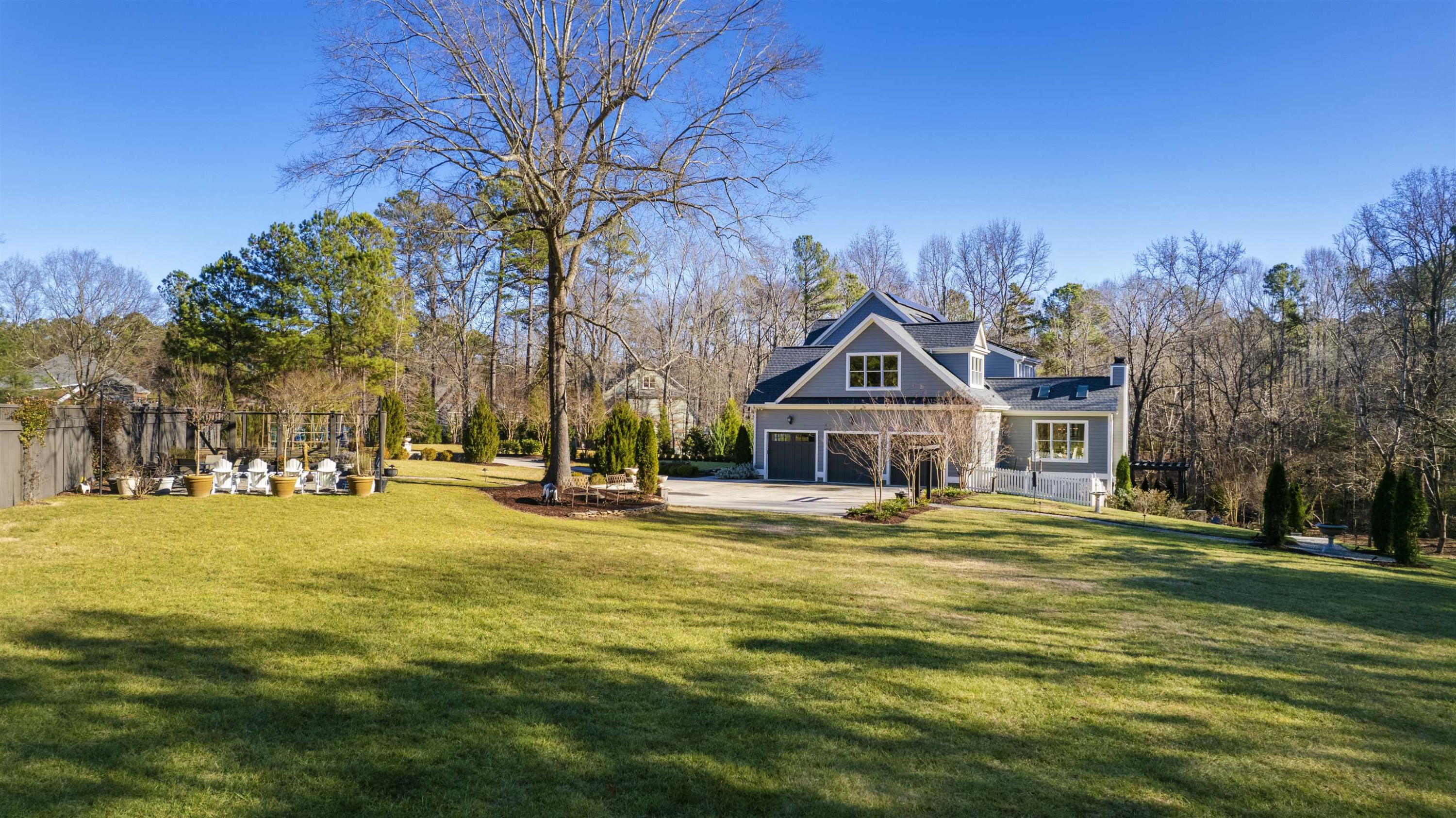 Occasionally an opportunity comes along unlike anything else on the market. This luxurious family estate sits on 5 acres in a premier location-- minutes from downtown Chapel Hill and I-40, and walkable to East Chapel Hill High School. The 7,545 square foot home includes a myriad of entertaining spaces, indoors and out. At the heart of the home is a dream kitchen featuring an expansive central island, Thermador appliances, large walk-in pantry, and loads of cabinet space. The main-level primary suite includes a large closet with center island, and a sumptuous master bath. There is also a main level suite which can serve as an office or guest room. The marvelous lower level includes a wet bar/kitchen, wine room, fitness center, media room, and a 6th bedroom and bath. Sophisticated finishes include pecky cypress and coffered ceilings, wide plank oak flooring, custom fireplace mantel, elegant millwork, trim and cabinetry. The home has many eco-friendly features, including low maintenance fiber cement exterior, an irrigation well, and a rooftop solar panel system.