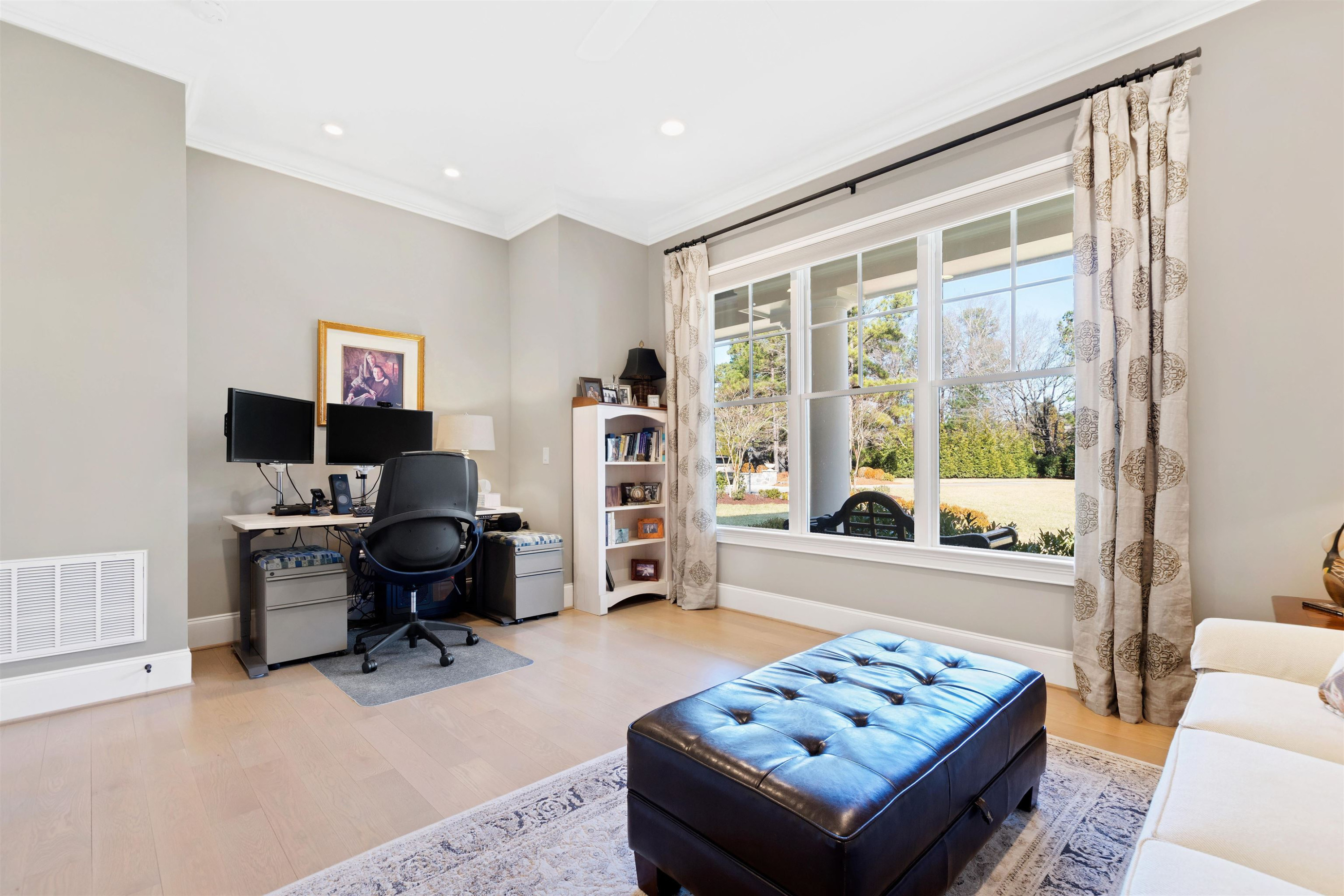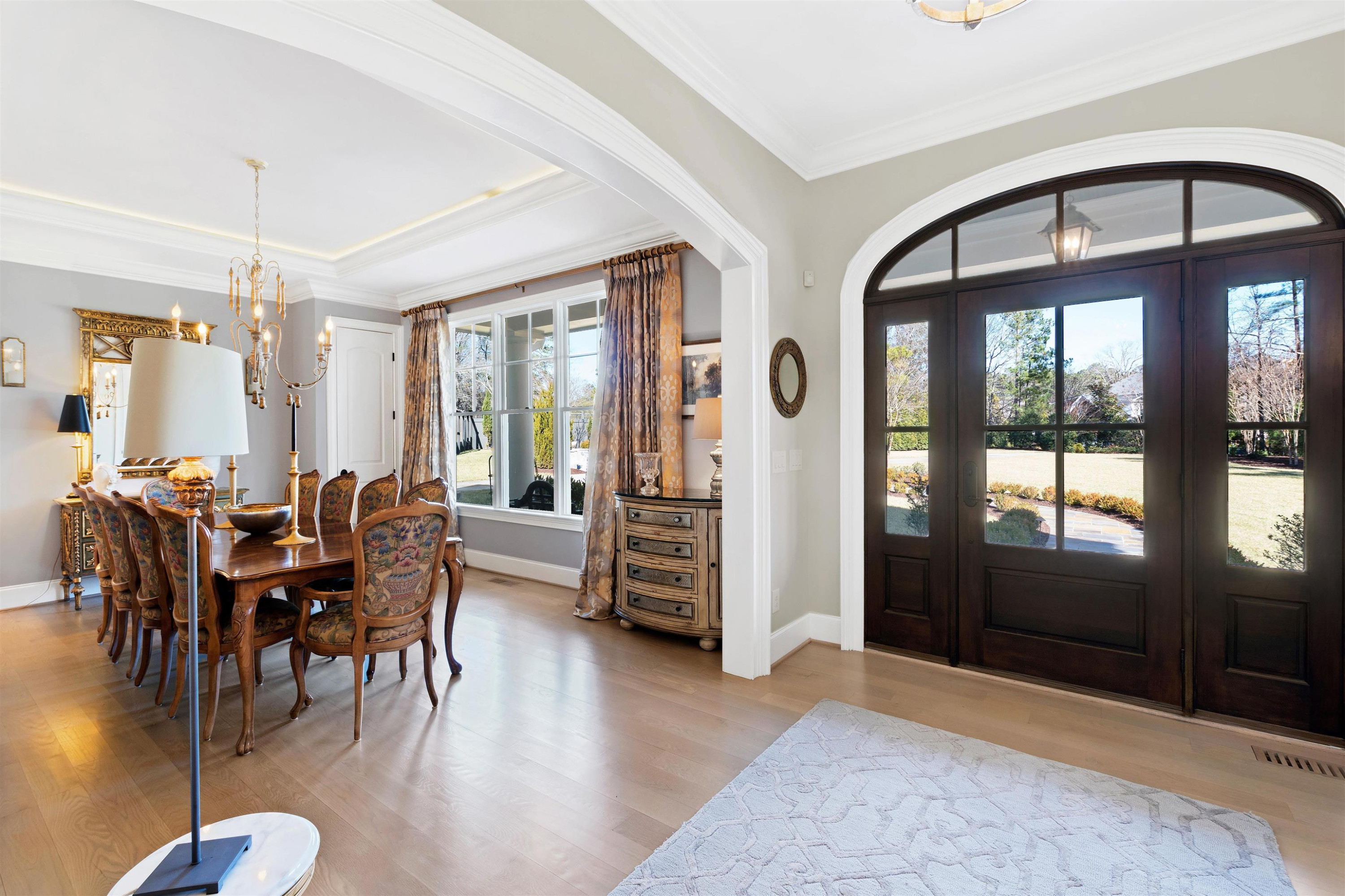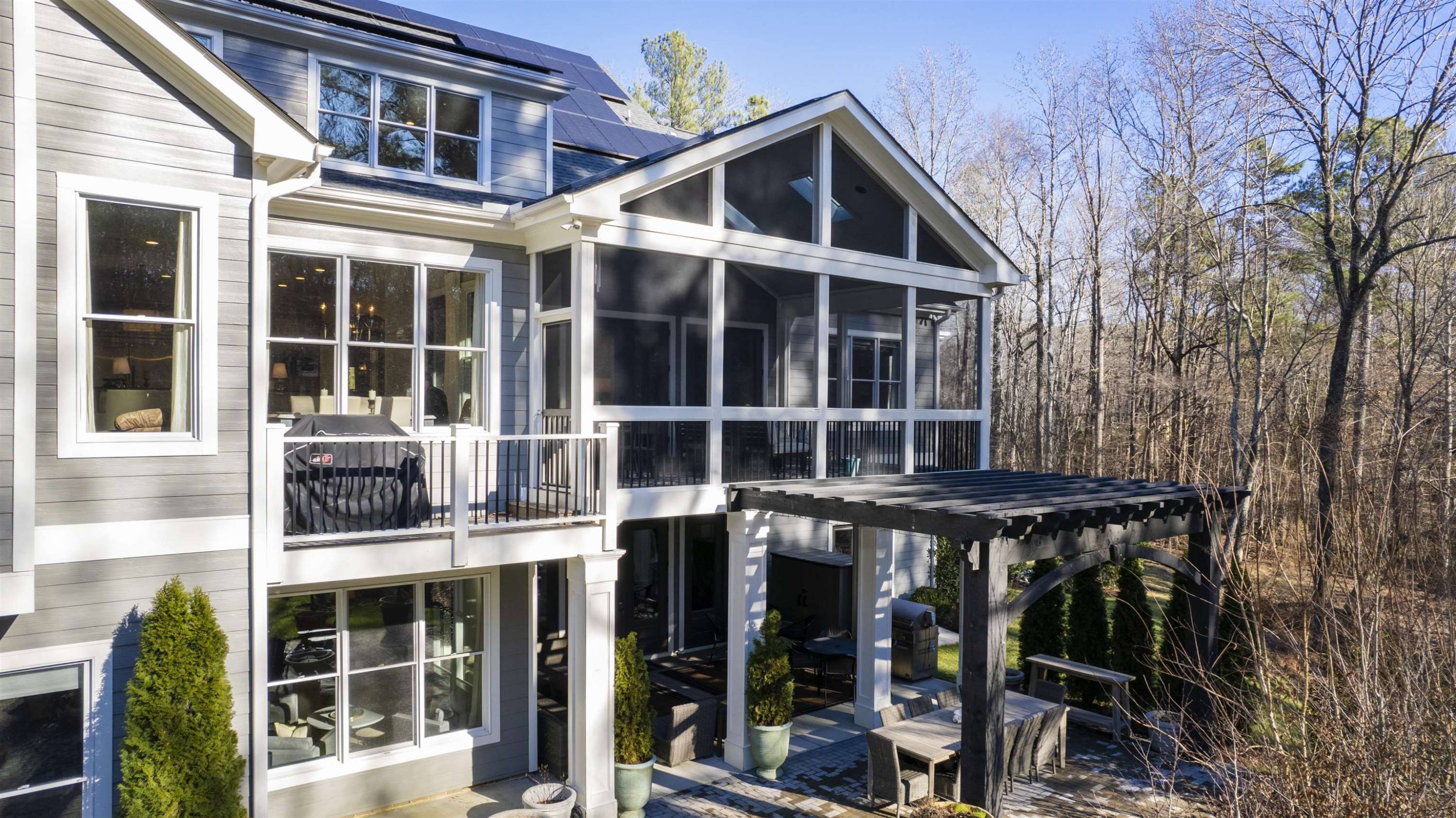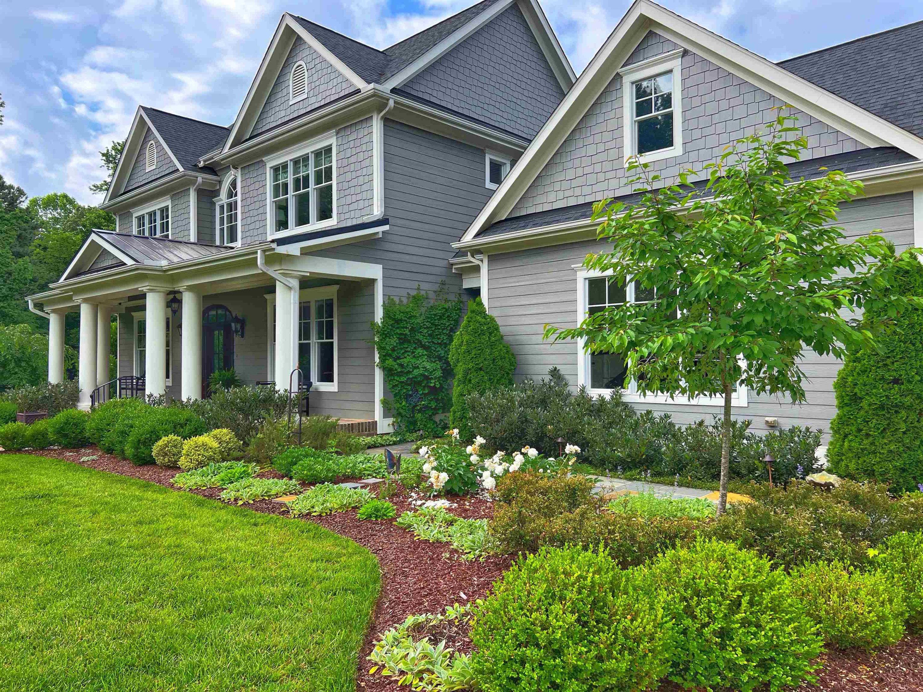 Occasionally an opportunity comes along unlike anything else on the market. This luxurious family estate sits on 5 acres in a premier location-- minutes from downtown Chapel Hill and I-40, and walkable to East Chapel Hill High School. The 7,545 square foot home includes a myriad of entertaining spaces, indoors and out. At the heart of the home is a dream kitchen featuring an expansive central island, Thermador appliances, large walk-in pantry, and loads of cabinet space. The main-level primary suite includes a large closet with center island, and a sumptuous master bath. There is also a main level suite which can serve as an office or guest room. The marvelous lower level includes a wet bar/kitchen, wine room, fitness center, media room, and a 6th bedroom and bath. Sophisticated finishes include pecky cypress and coffered ceilings, wide plank oak flooring, custom fireplace mantel, elegant millwork, trim and cabinetry. The home has many eco-friendly features, including low maintenance fiber cement exterior, an irrigation well, and a rooftop solar panel system.