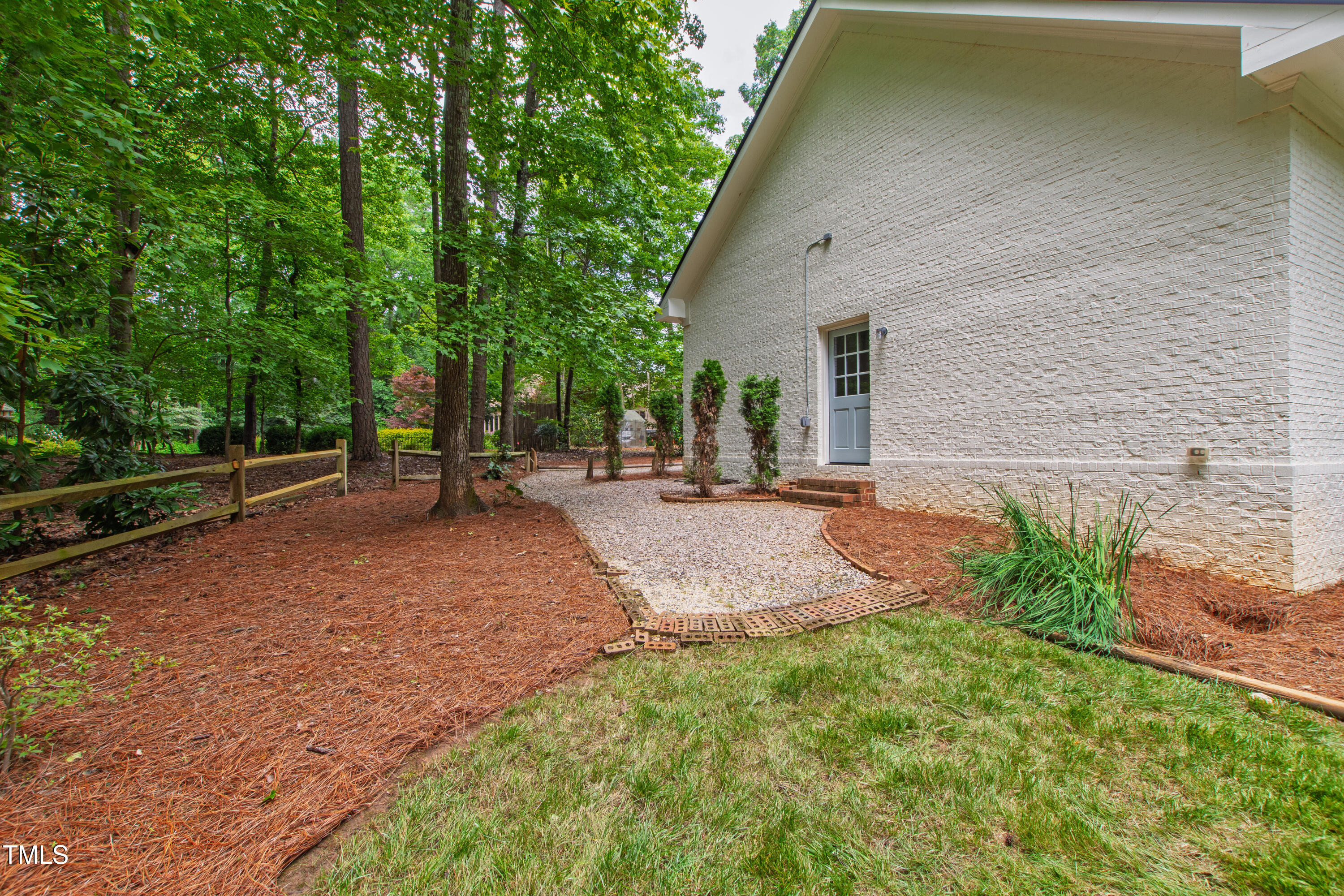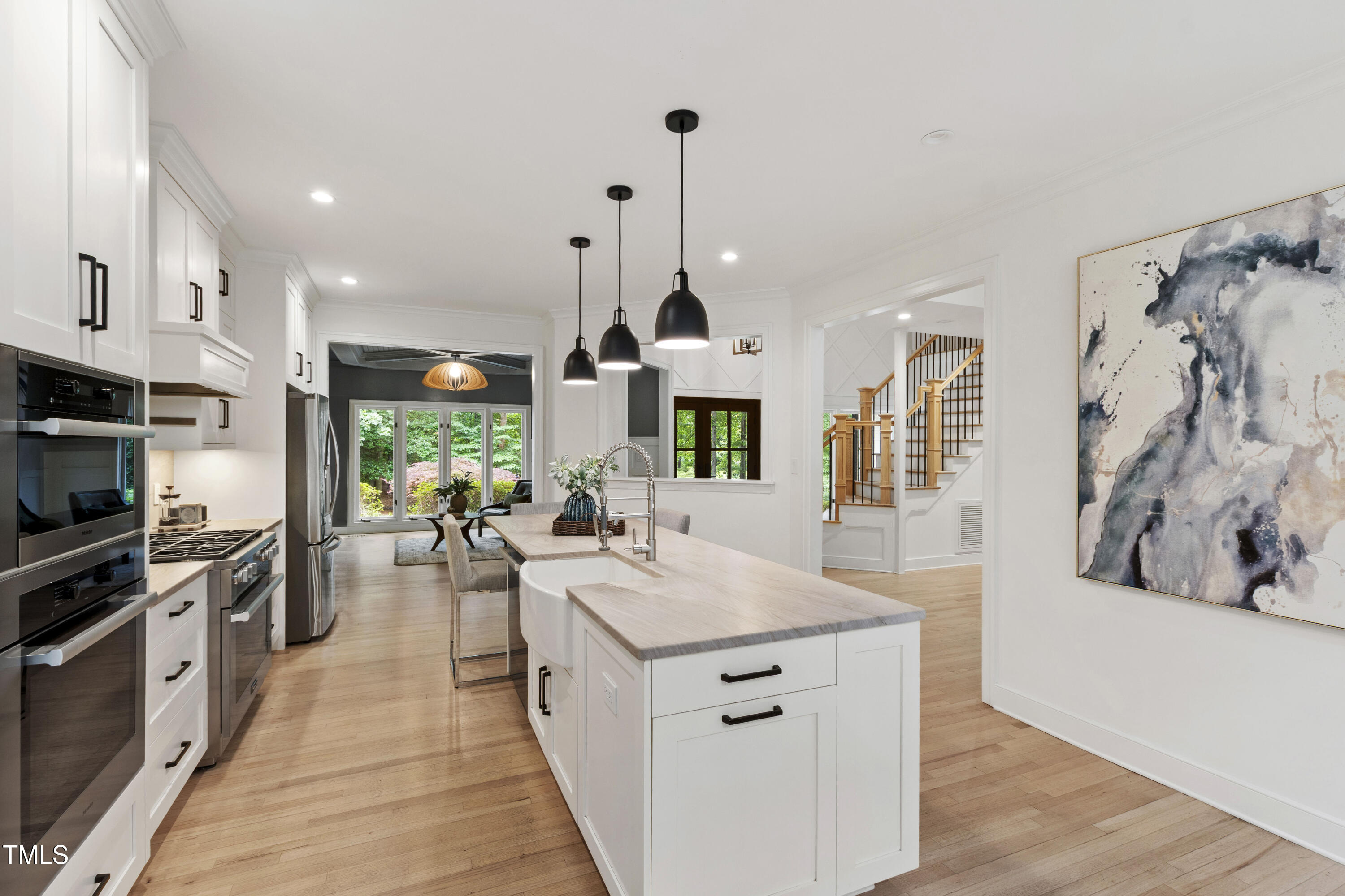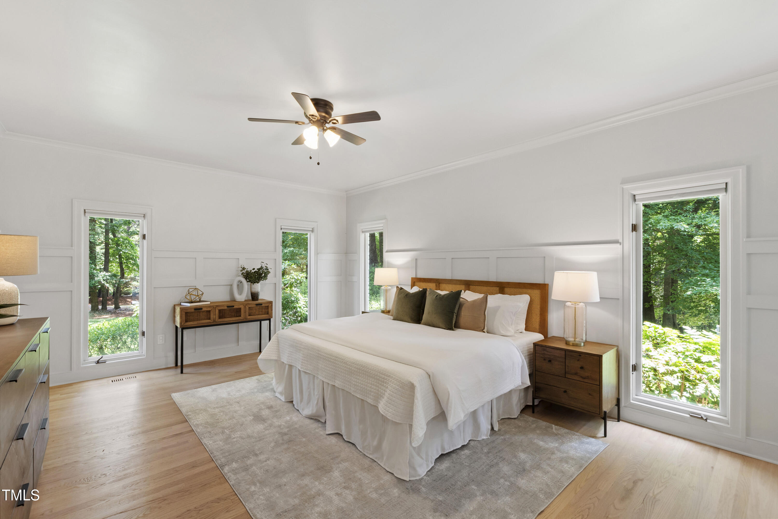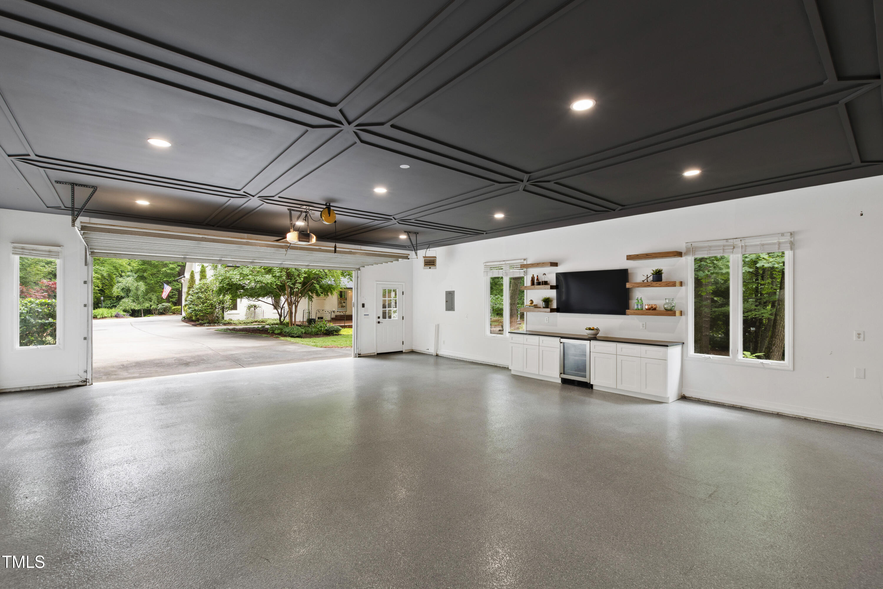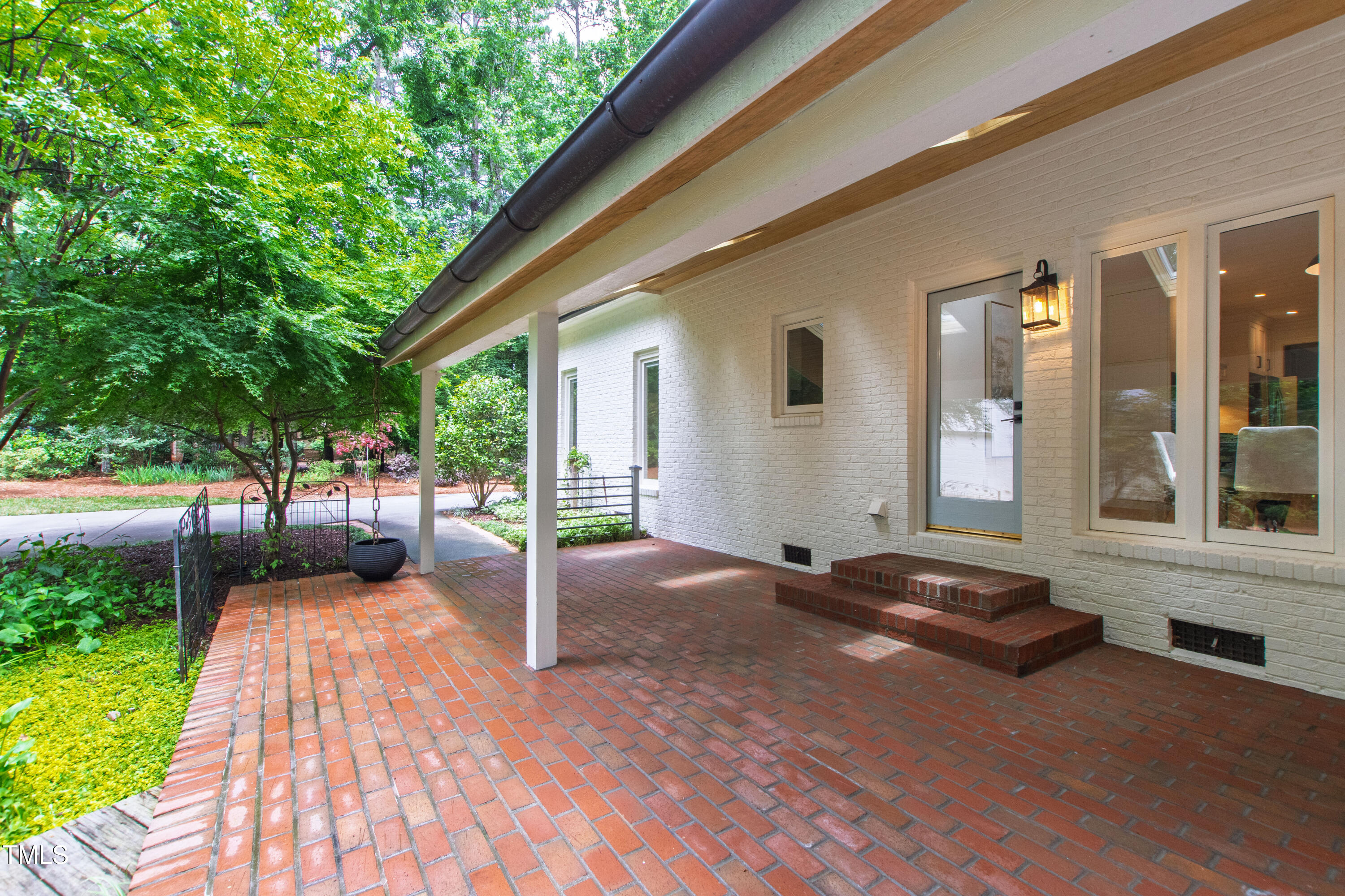 An architectural wonder awaits in this truly one of one property, where captivating modernity wraps in elegant grandeur - welcome to 1301 King Cross Court. Located in one of the most prestigious North Raleigh neighborhoods of Sheffield Manor, this five bedroom property offers unmatched tranquility with accessible convenience to an abundance of life's core amenities. Nestled on a private, strikingly landscaped 2 acre corner lot, this home exudes contemporary character through every touchpoint. The moment you step through the front door, you're greeted by an impressive, vaulted-ceiling family room anchored around a gas-log fireplace - the heart of the home. To the left, you'll find your own private retreat with the idyllic primary suite, boasting expansive dual closets and a sleek bathroom outfitted with a walk-in shower and soaking tub. To the right, the family room is flanked by a gourmet kitchen, sparing no expense with quartzite countertops, stainless steel Miele appliances, oversized farmhouse sink, plentiful cabinets and a seamlessly intertwined breakfast room. Cap the day in the unique and inviting Bourbon Room --an entertainer's delight that blends warmth, style, and character. The floor is completed by an additional bedroom, perfect for a lower level in-law room, home office, or first floor bonus space. Transporting upstairs, you're once again greeted by contemporary finishes and hardwood floors as three spacious bedrooms await, each with their own en-suite offering the ultimate in comfort and privacy for families or guests. An oversized bonus room, complete with a sleek wet bar and an additional flex space, is the perfect setting for movie nights, a game room or second floor entertaining. Outdoor living at its finest, the exterior of this home offers year-round use with a thoughtfully designed covered patio featuring an outdoor bar and grill. Unwind for a cozy evening or fresh summer night on the spacious deck that backs to the double-sided fireplace from the family room. Moving to the grounds, the expansive, beautifully maintained backyard offers plenty of room for anyone looking to add a pool -- yet the property is only a short walk to the community's swimming, tennis and pickleball courts, and scenic nature trails. With a brand new roof and pristine brick siding, this home is the epitome of a move-in ready property in ultimate condition. Rounding out the distinctive and exceptional design of this home, space abounds as you explore the property's generously-sized detached garage - a canvas of opportunity prime for transformation into your next working space, home gym, workshop, secondary garage, storage, or so much more. Every square foot of this stunning abode has been thoughtfully planned and detailed. A combination of remarkable luxury, impeccable condition, private space, and unbeatable accessibility - 1301 King Cross Court is the perfect balance of elegance and comfort for unparalleled, everyday living in an exceptional manner.