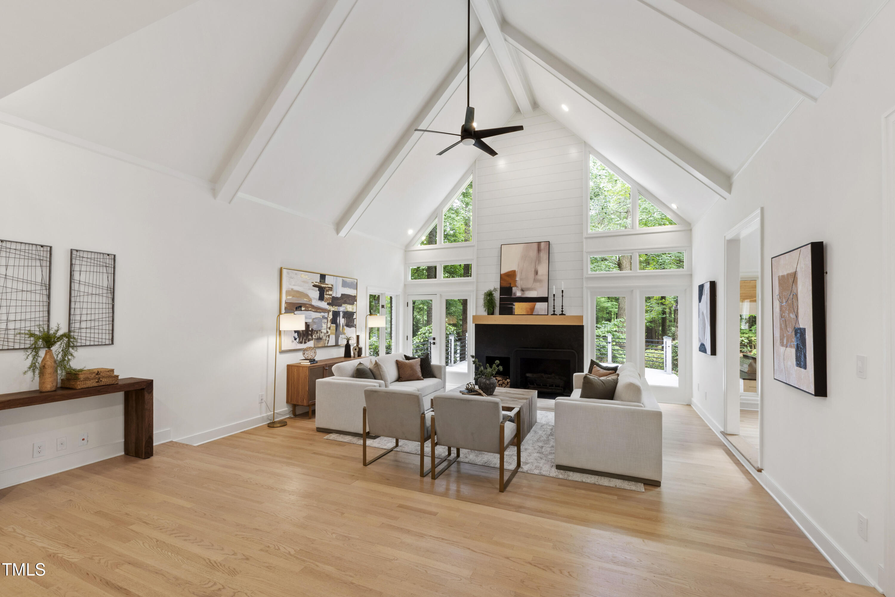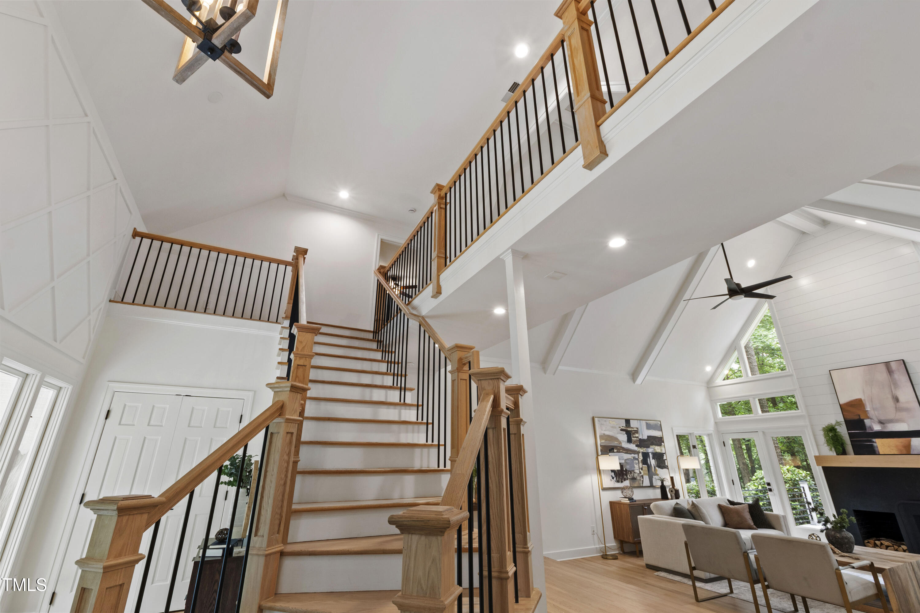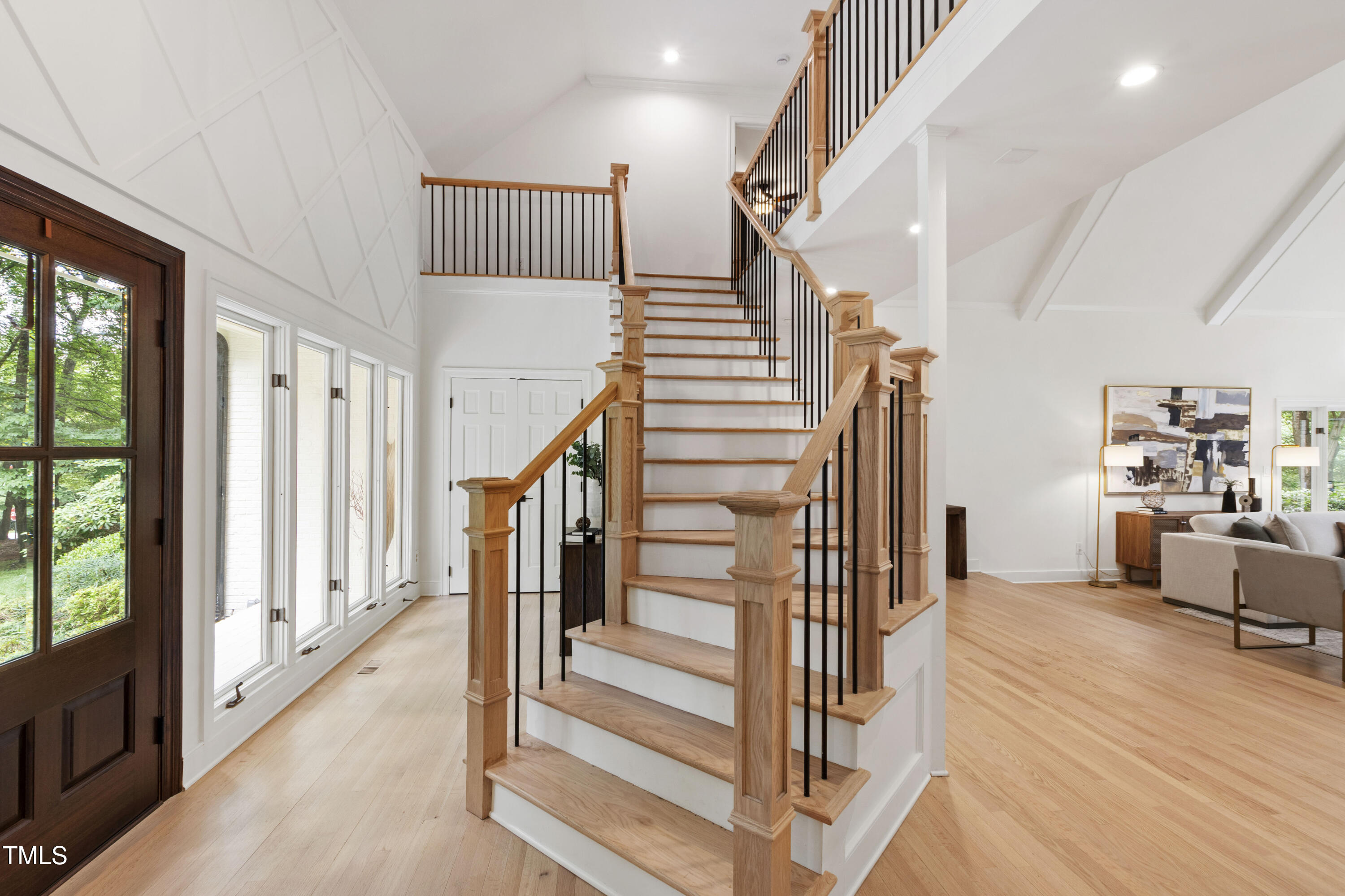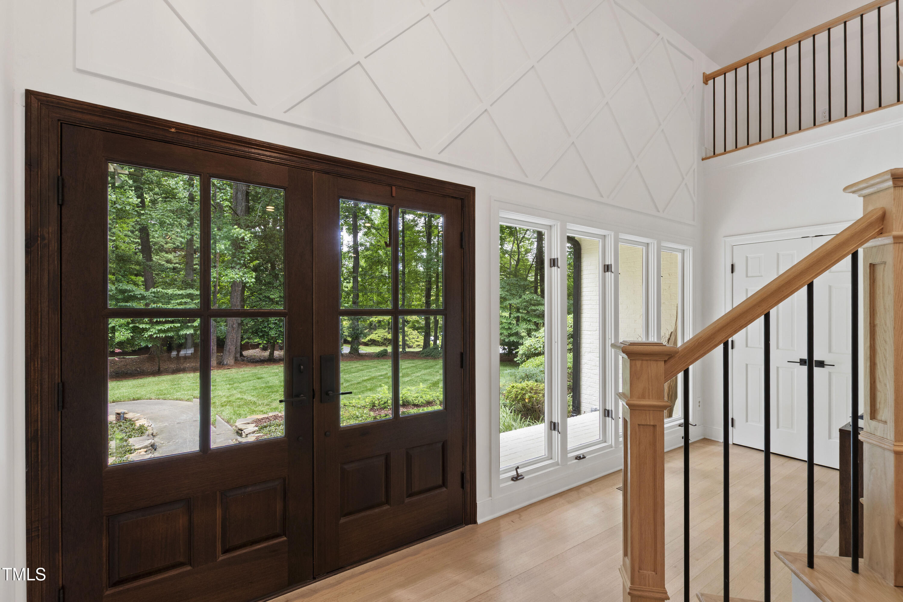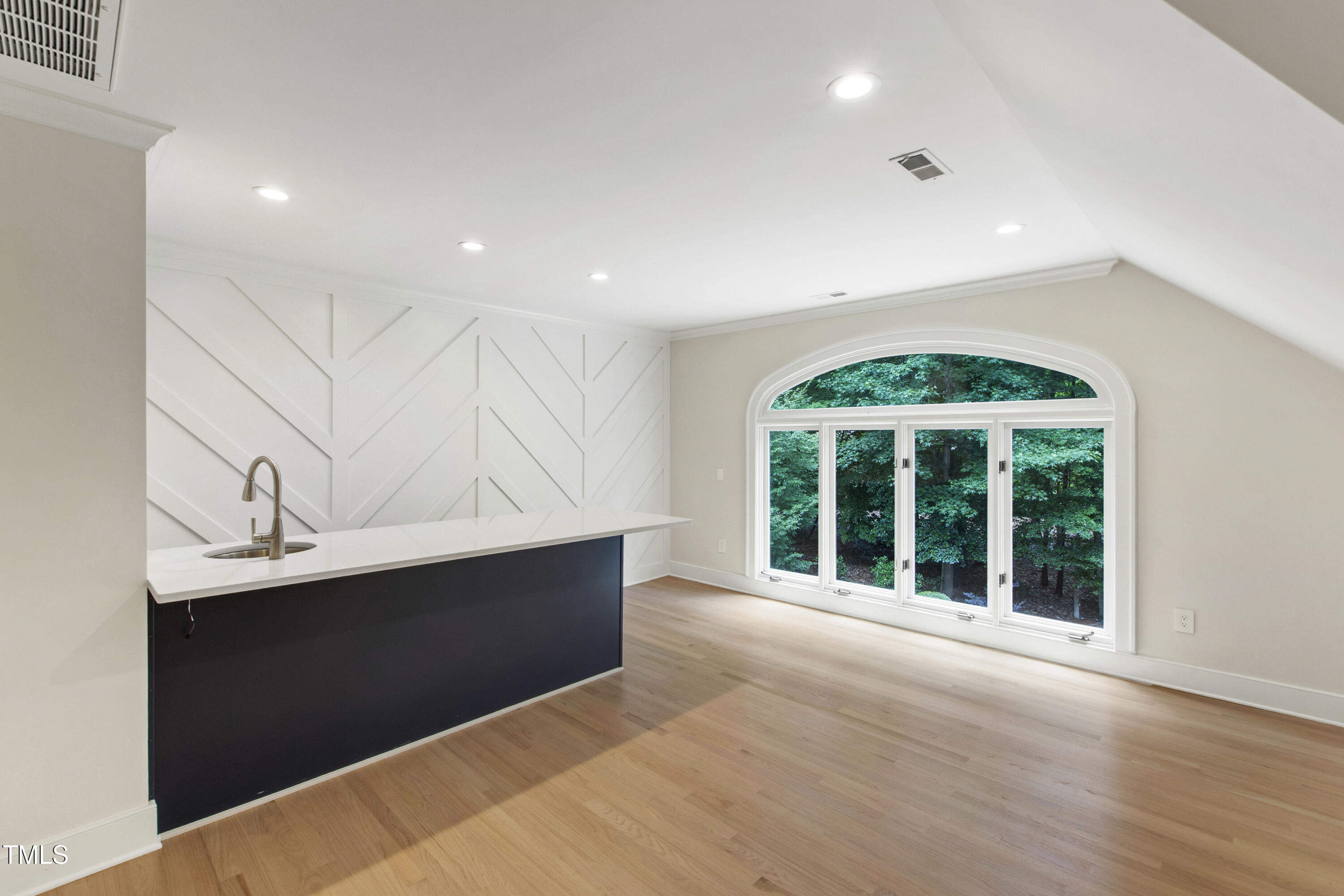 An architectural wonder awaits in this truly one of one property, where captivating modernity wraps in elegant grandeur - welcome to 1301 King Cross Court. Located in one of the most prestigious North Raleigh neighborhoods of Sheffield Manor, this five bedroom property offers unmatched tranquility with accessible convenience to an abundance of life's core amenities. Nestled on a private, strikingly landscaped 2 acre corner lot, this home exudes contemporary character through every touchpoint. The moment you step through the front door, you're greeted by an impressive, vaulted-ceiling family room anchored around a gas-log fireplace - the heart of the home. To the left, you'll find your own private retreat with the idyllic primary suite, boasting expansive dual closets and a sleek bathroom outfitted with a walk-in shower and soaking tub. To the right, the family room is flanked by a gourmet kitchen, sparing no expense with quartzite countertops, stainless steel Miele appliances, oversized farmhouse sink, plentiful cabinets and a seamlessly intertwined breakfast room. Cap the day in the unique and inviting Bourbon Room --an entertainer's delight that blends warmth, style, and character. The floor is completed by an additional bedroom, perfect for a lower level in-law room, home office, or first floor bonus space. Transporting upstairs, you're once again greeted by contemporary finishes and hardwood floors as three spacious bedrooms await, each with their own en-suite offering the ultimate in comfort and privacy for families or guests. An oversized bonus room, complete with a sleek wet bar and an additional flex space, is the perfect setting for movie nights, a game room or second floor entertaining. Outdoor living at its finest, the exterior of this home offers year-round use with a thoughtfully designed covered patio featuring an outdoor bar and grill. Unwind for a cozy evening or fresh summer night on the spacious deck that backs to the double-sided fireplace from the family room. Moving to the grounds, the expansive, beautifully maintained backyard offers plenty of room for anyone looking to add a pool -- yet the property is only a short walk to the community's swimming, tennis and pickleball courts, and scenic nature trails. With a brand new roof and pristine brick siding, this home is the epitome of a move-in ready property in ultimate condition. Rounding out the distinctive and exceptional design of this home, space abounds as you explore the property's generously-sized detached garage - a canvas of opportunity prime for transformation into your next working space, home gym, workshop, secondary garage, storage, or so much more. Every square foot of this stunning abode has been thoughtfully planned and detailed. A combination of remarkable luxury, impeccable condition, private space, and unbeatable accessibility - 1301 King Cross Court is the perfect balance of elegance and comfort for unparalleled, everyday living in an exceptional manner.