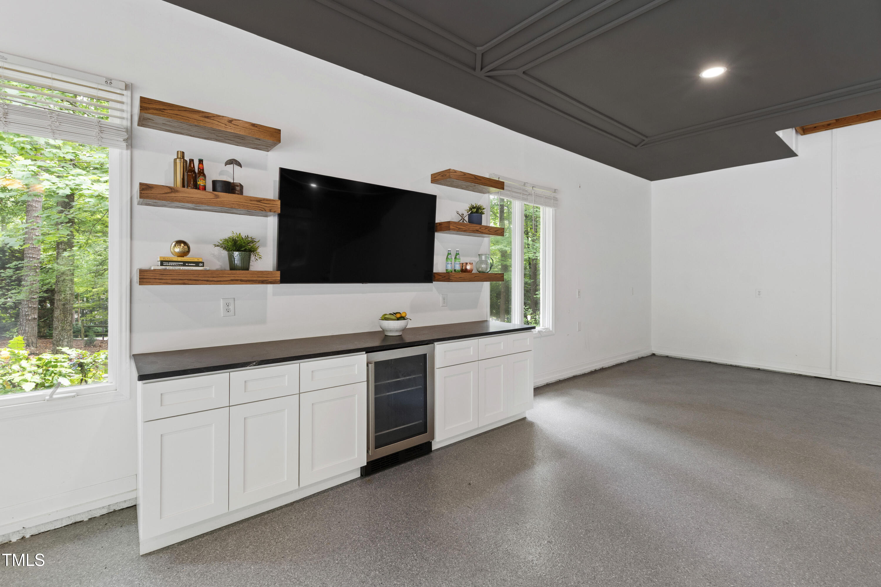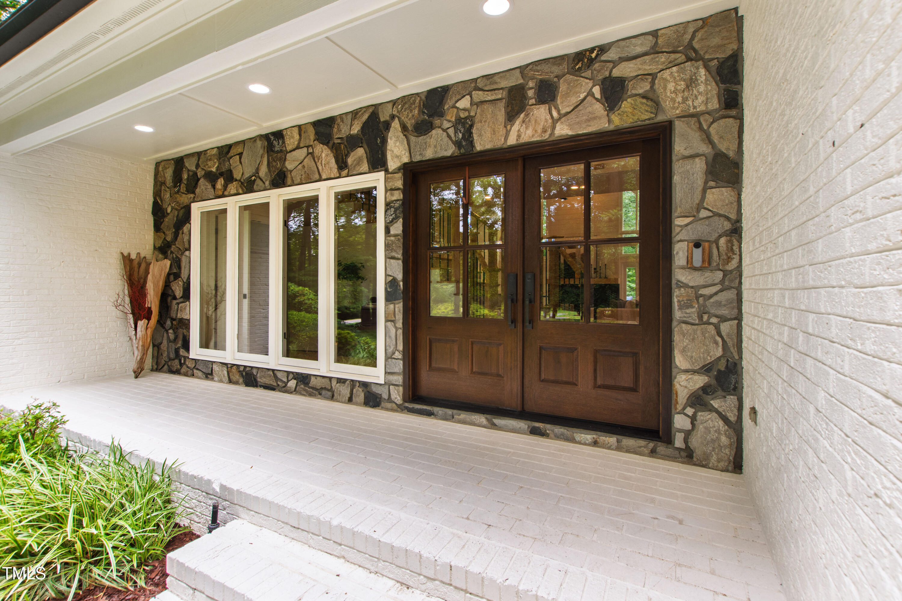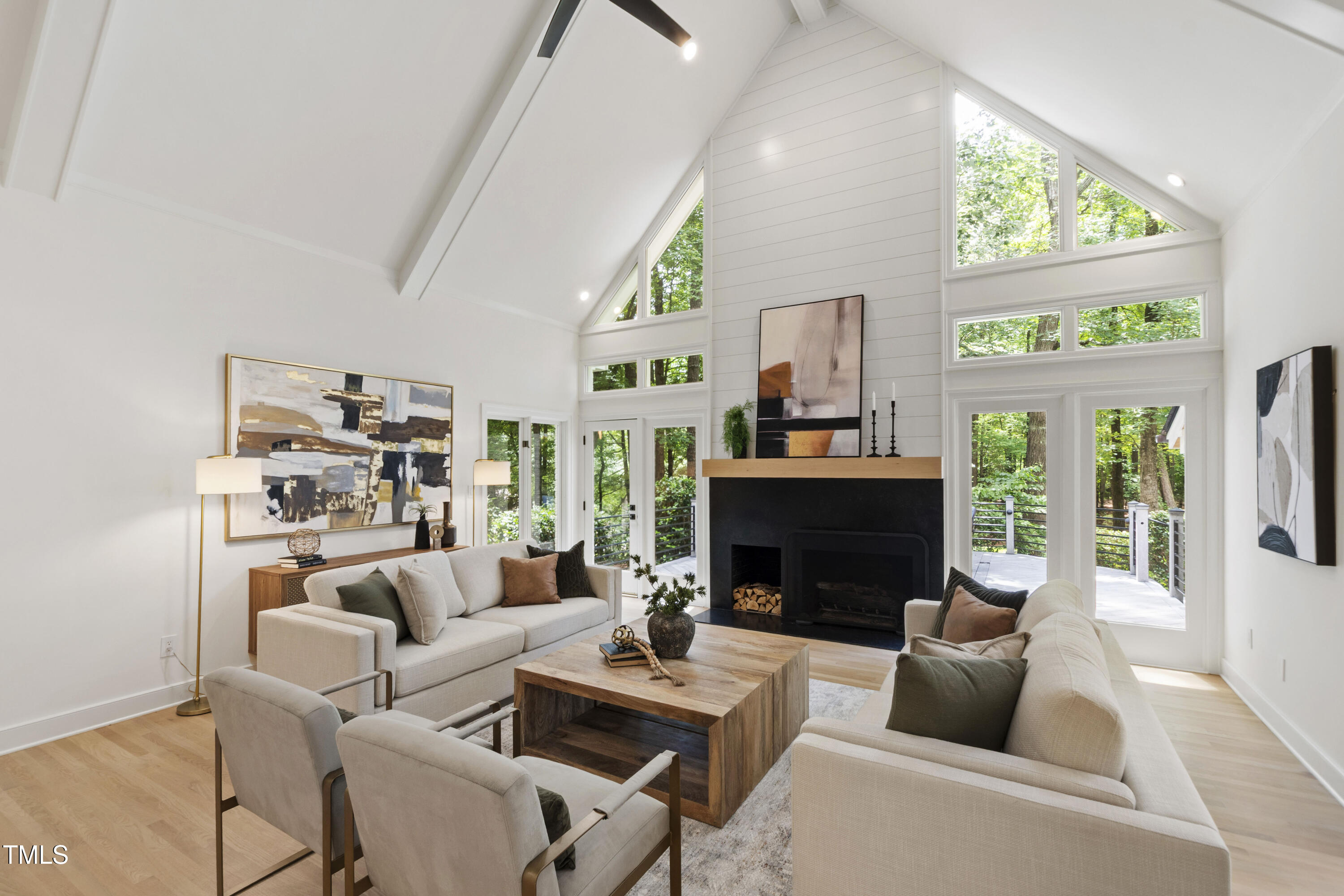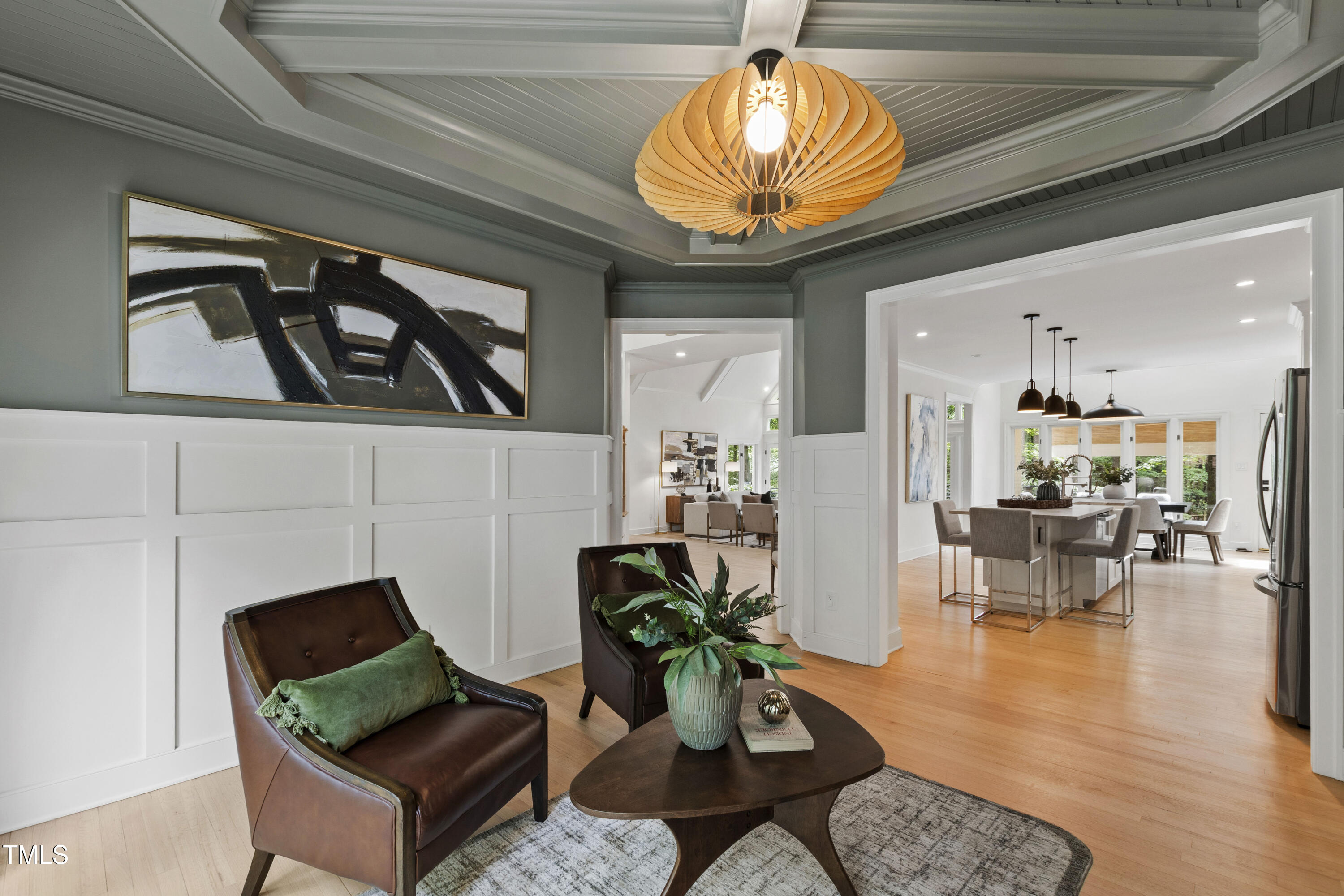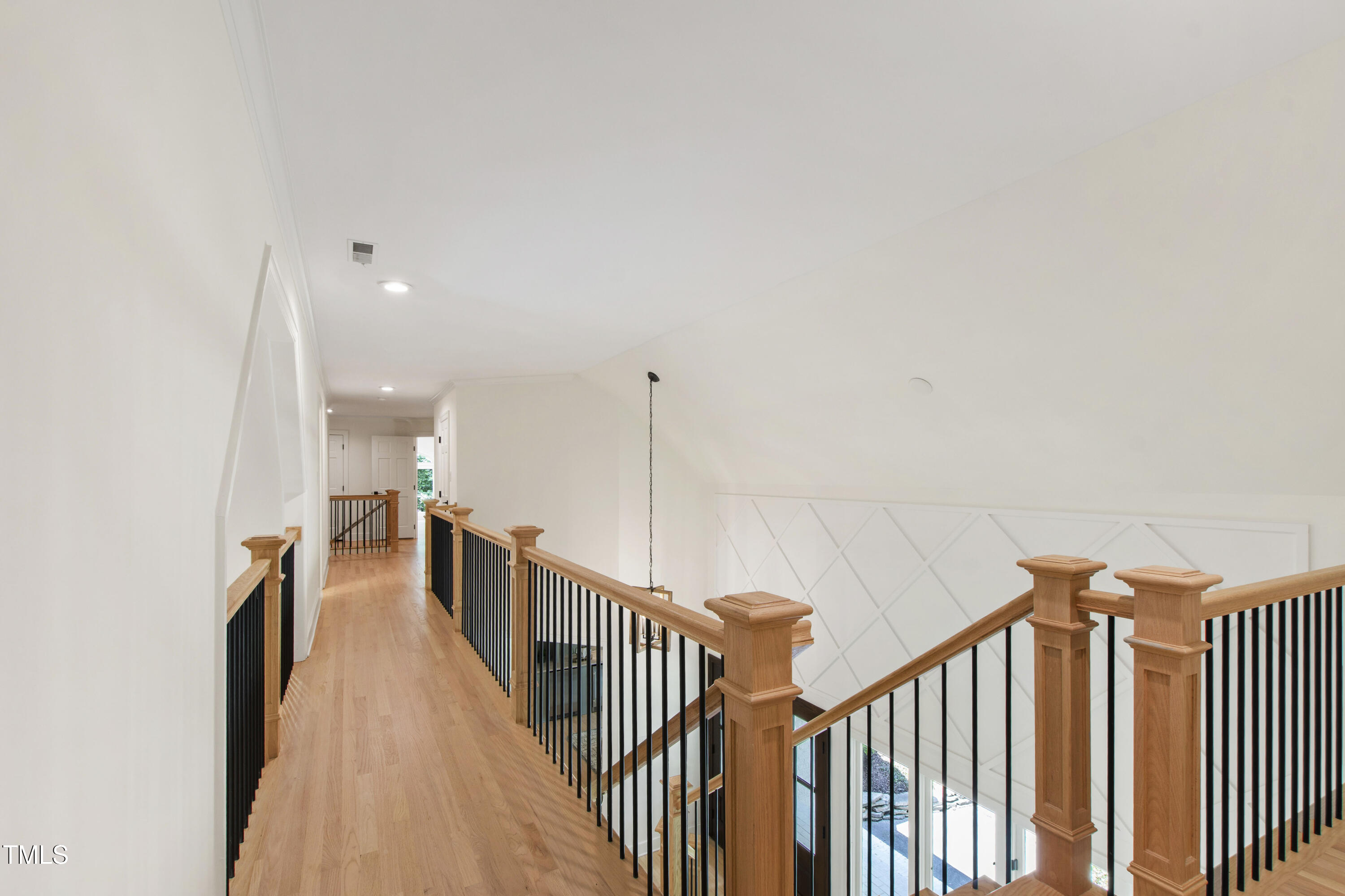 An architectural wonder awaits in this truly one of one property, where captivating modernity wraps in elegant grandeur - welcome to 1301 King Cross Court. Located in one of the most prestigious North Raleigh neighborhoods of Sheffield Manor, this five bedroom property offers unmatched tranquility with accessible convenience to an abundance of life's core amenities. Nestled on a private, strikingly landscaped 2 acre corner lot, this home exudes contemporary character through every touchpoint. The moment you step through the front door, you're greeted by an impressive, vaulted-ceiling family room anchored around a gas-log fireplace - the heart of the home. To the left, you'll find your own private retreat with the idyllic primary suite, boasting expansive dual closets and a sleek bathroom outfitted with a walk-in shower and soaking tub. To the right, the family room is flanked by a gourmet kitchen, sparing no expense with quartzite countertops, stainless steel Miele appliances, oversized farmhouse sink, plentiful cabinets and a seamlessly intertwined breakfast room. Cap the day in the unique and inviting Bourbon Room --an entertainer's delight that blends warmth, style, and character. The floor is completed by an additional bedroom, perfect for a lower level in-law room, home office, or first floor bonus space. Transporting upstairs, you're once again greeted by contemporary finishes and hardwood floors as three spacious bedrooms await, each with their own en-suite offering the ultimate in comfort and privacy for families or guests. An oversized bonus room, complete with a sleek wet bar and an additional flex space, is the perfect setting for movie nights, a game room or second floor entertaining. Outdoor living at its finest, the exterior of this home offers year-round use with a thoughtfully designed covered patio featuring an outdoor bar and grill. Unwind for a cozy evening or fresh summer night on the spacious deck that backs to the double-sided fireplace from the family room. Moving to the grounds, the expansive, beautifully maintained backyard offers plenty of room for anyone looking to add a pool -- yet the property is only a short walk to the community's swimming, tennis and pickleball courts, and scenic nature trails. With a brand new roof and pristine brick siding, this home is the epitome of a move-in ready property in ultimate condition. Rounding out the distinctive and exceptional design of this home, space abounds as you explore the property's generously-sized detached garage - a canvas of opportunity prime for transformation into your next working space, home gym, workshop, secondary garage, storage, or so much more. Every square foot of this stunning abode has been thoughtfully planned and detailed. A combination of remarkable luxury, impeccable condition, private space, and unbeatable accessibility - 1301 King Cross Court is the perfect balance of elegance and comfort for unparalleled, everyday living in an exceptional manner.